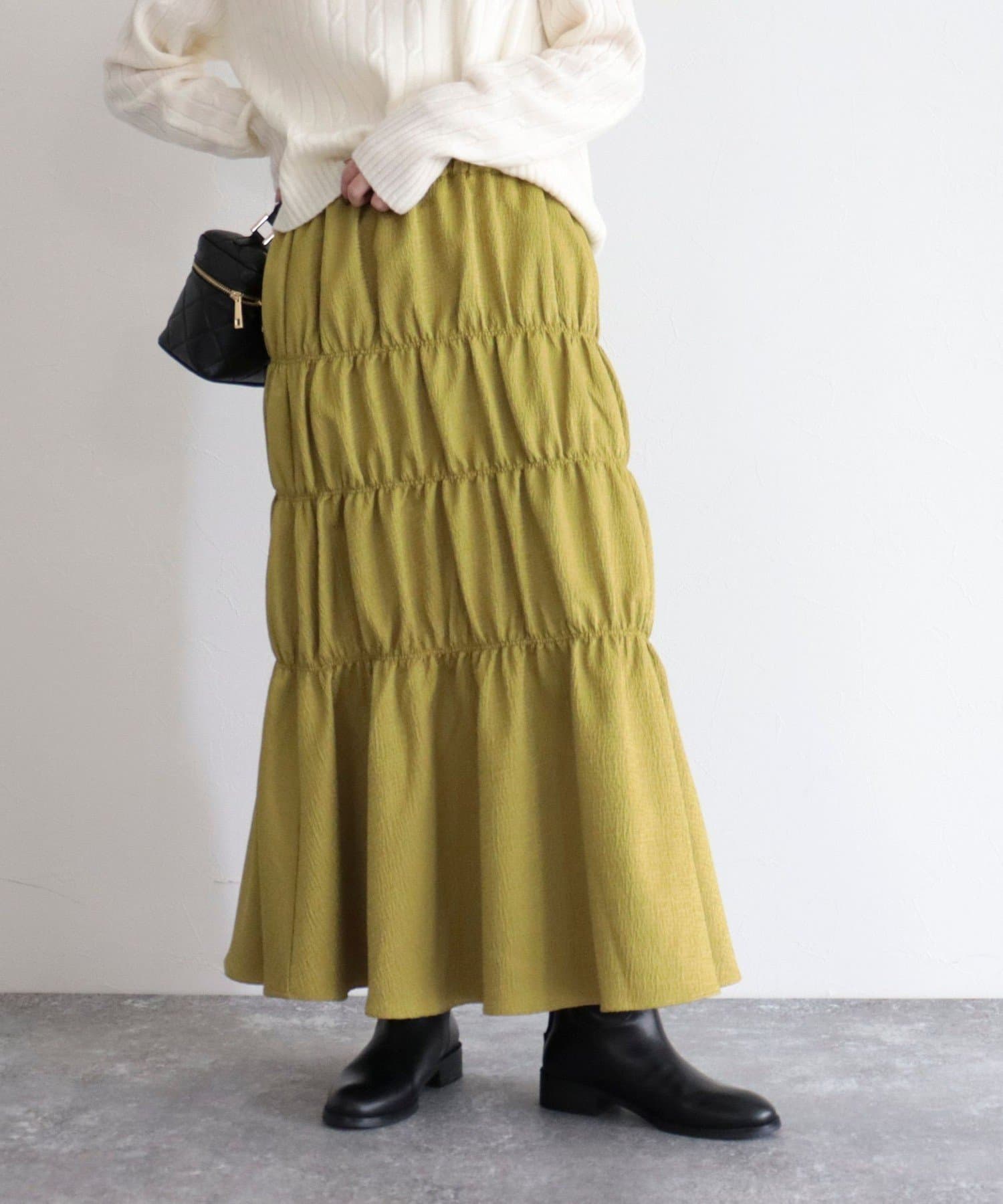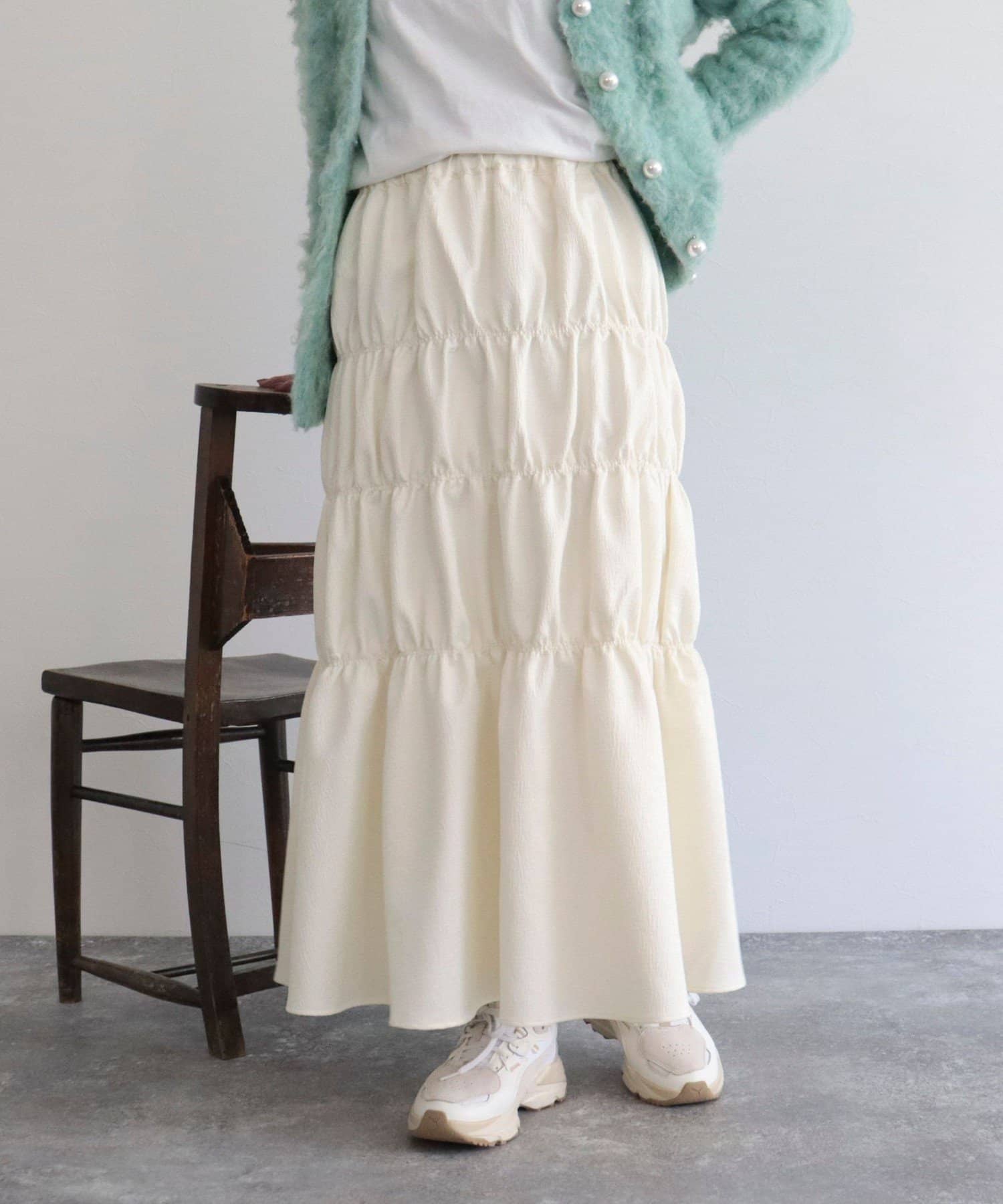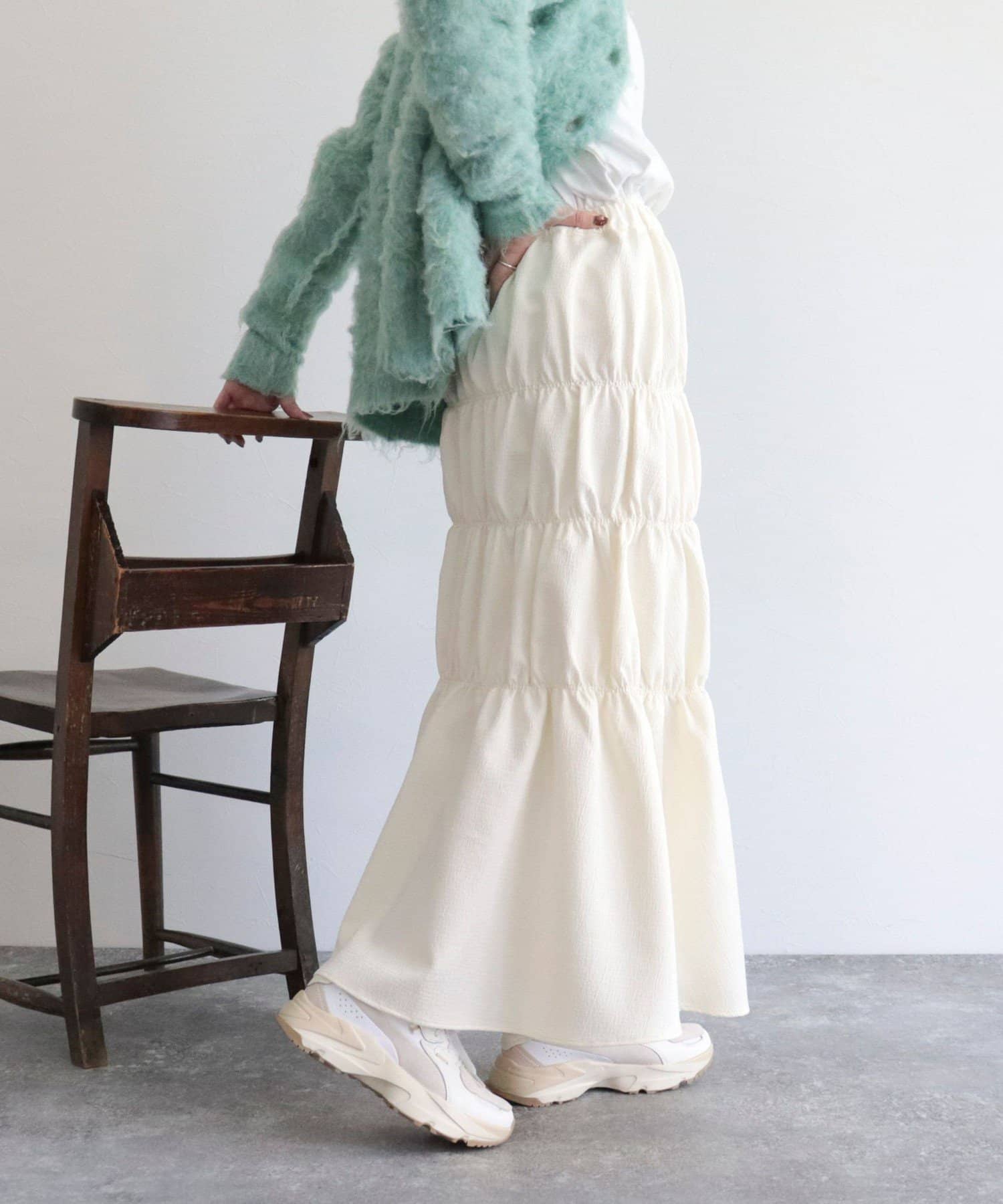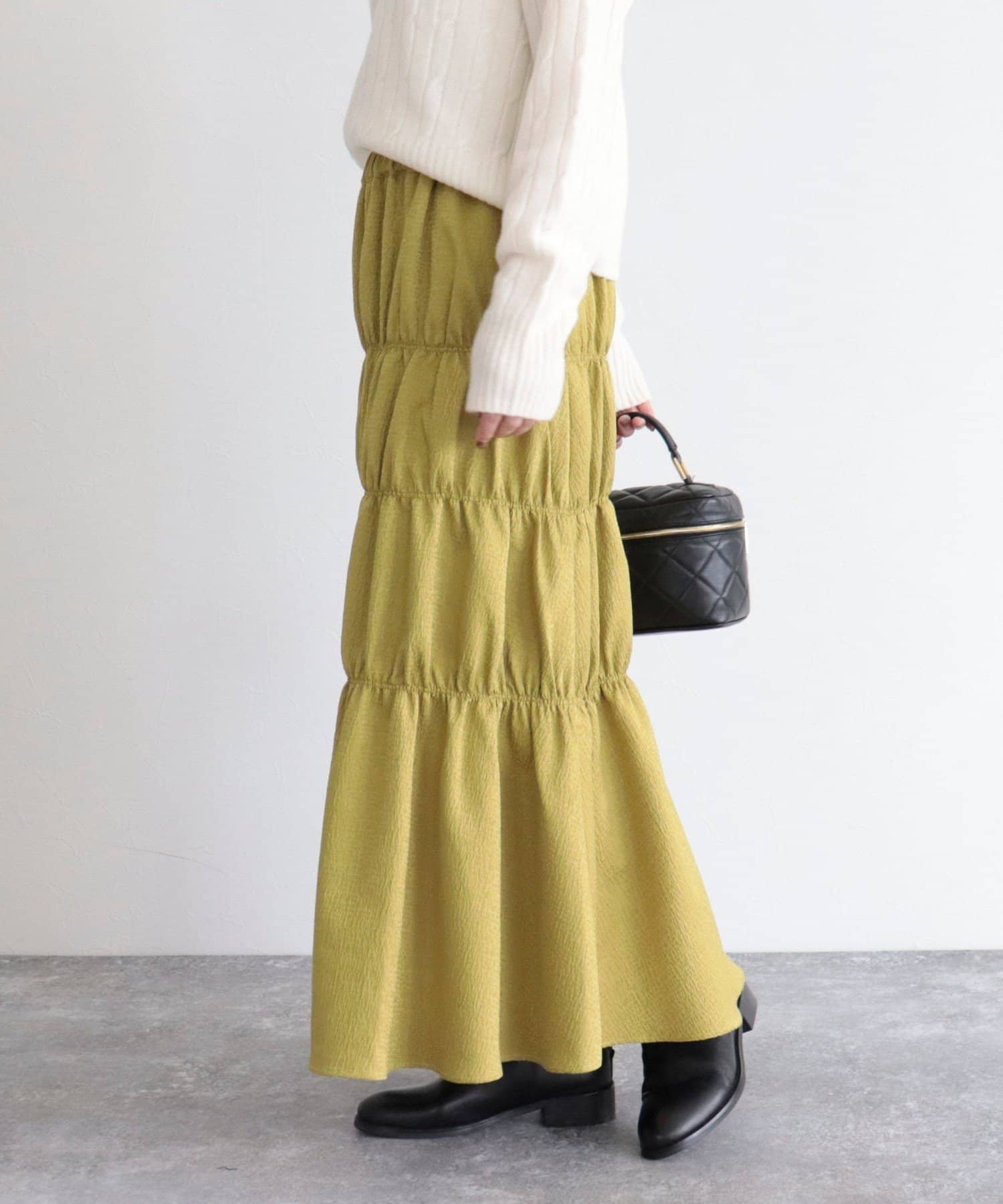 ・シャーリングの入ったシルエットが印象的なロングスカート