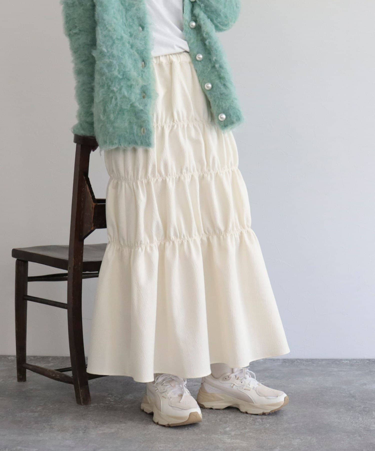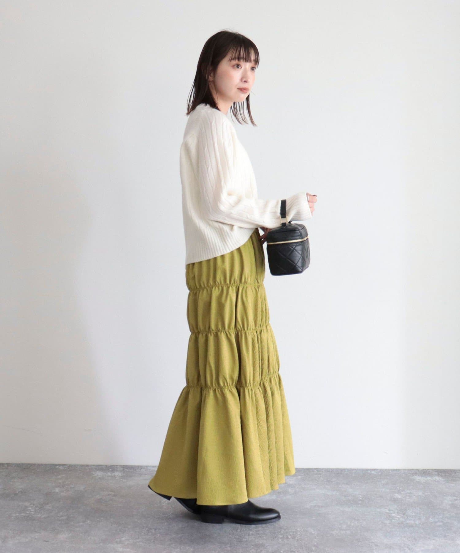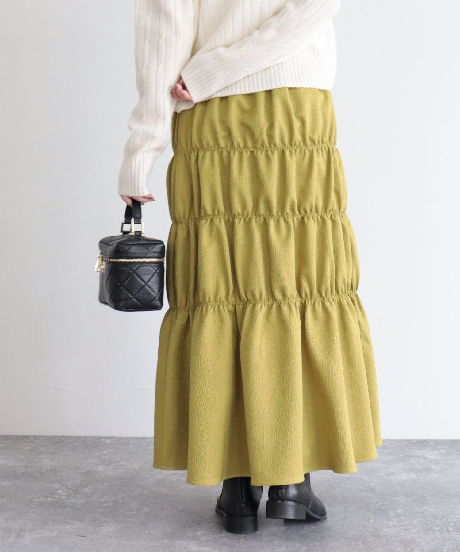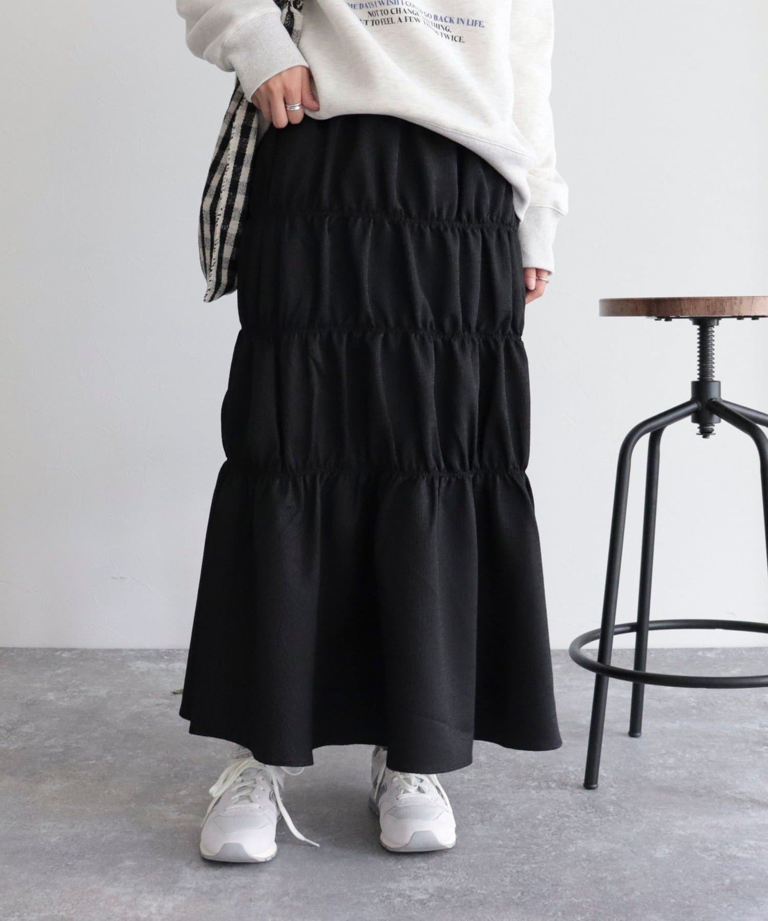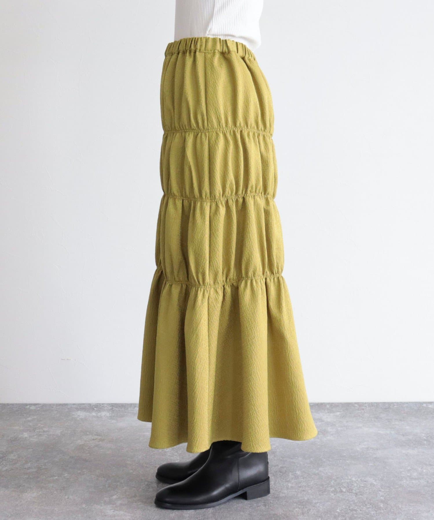 ・シャーリングの入ったシルエットが印象的なロングスカート