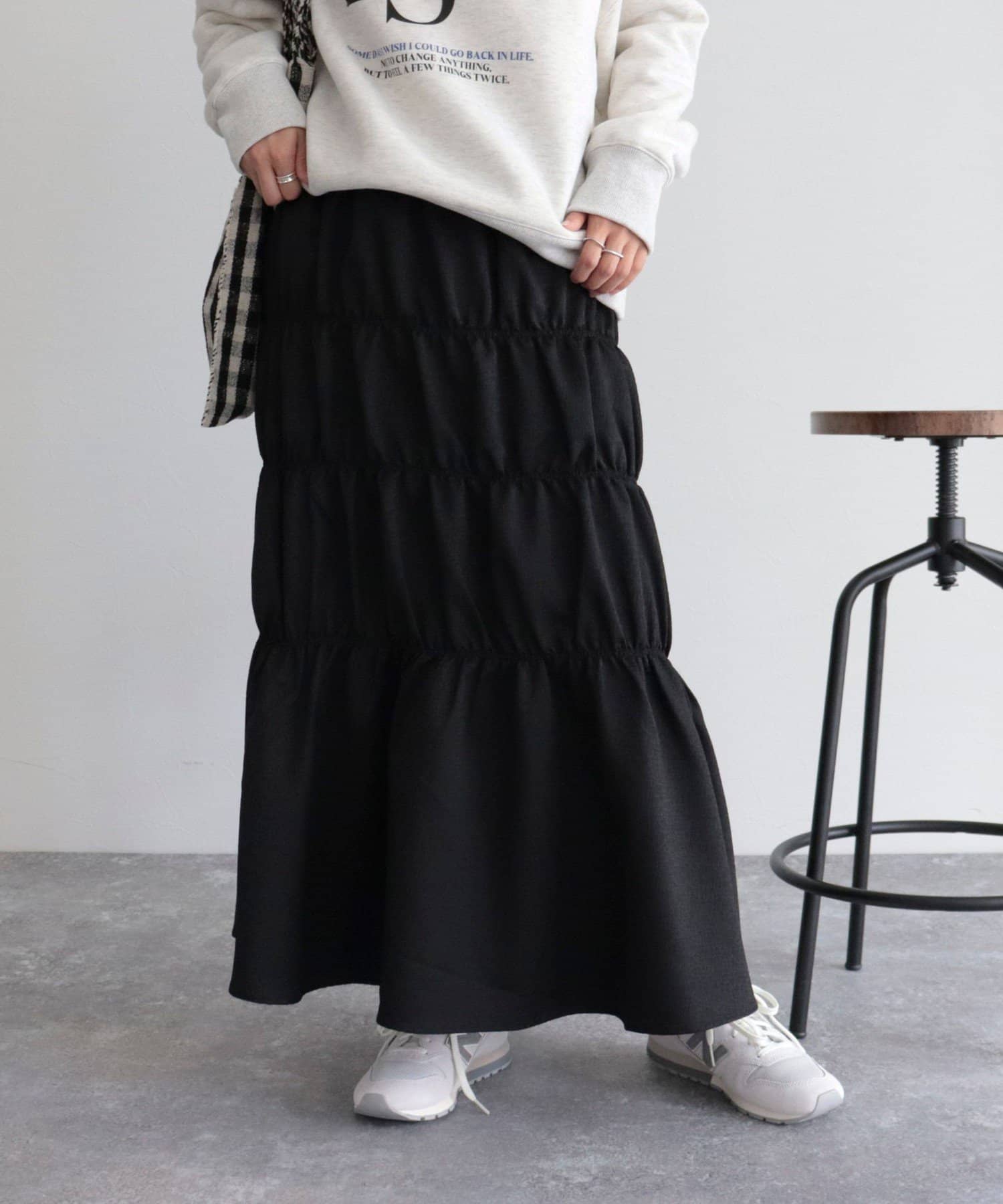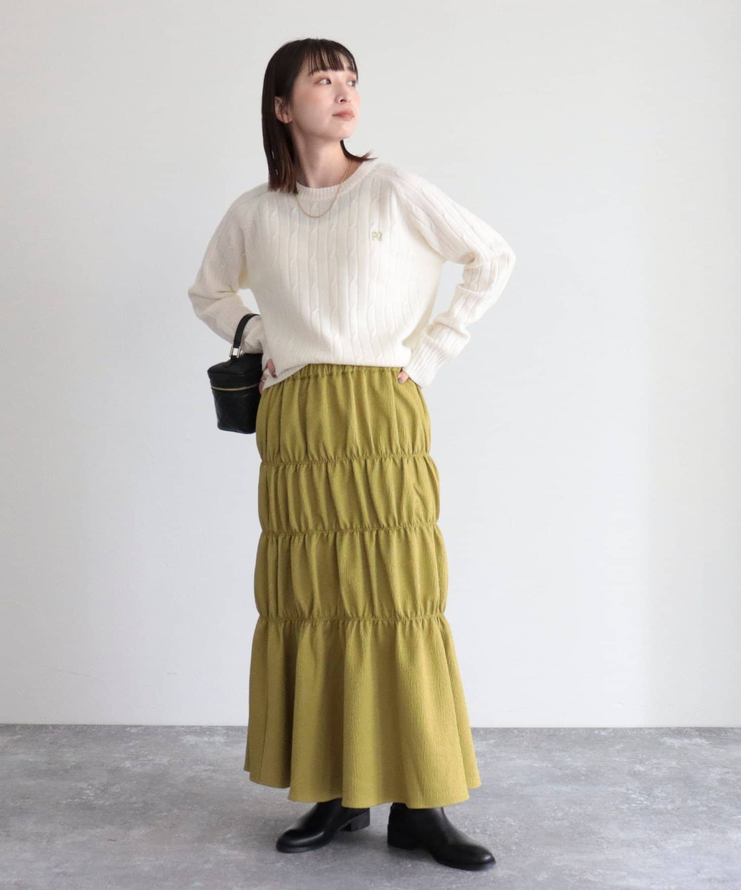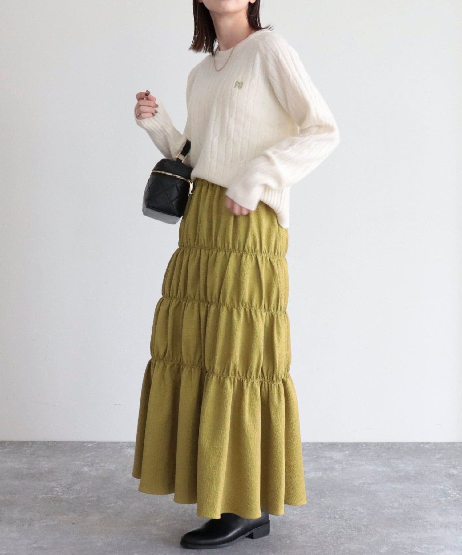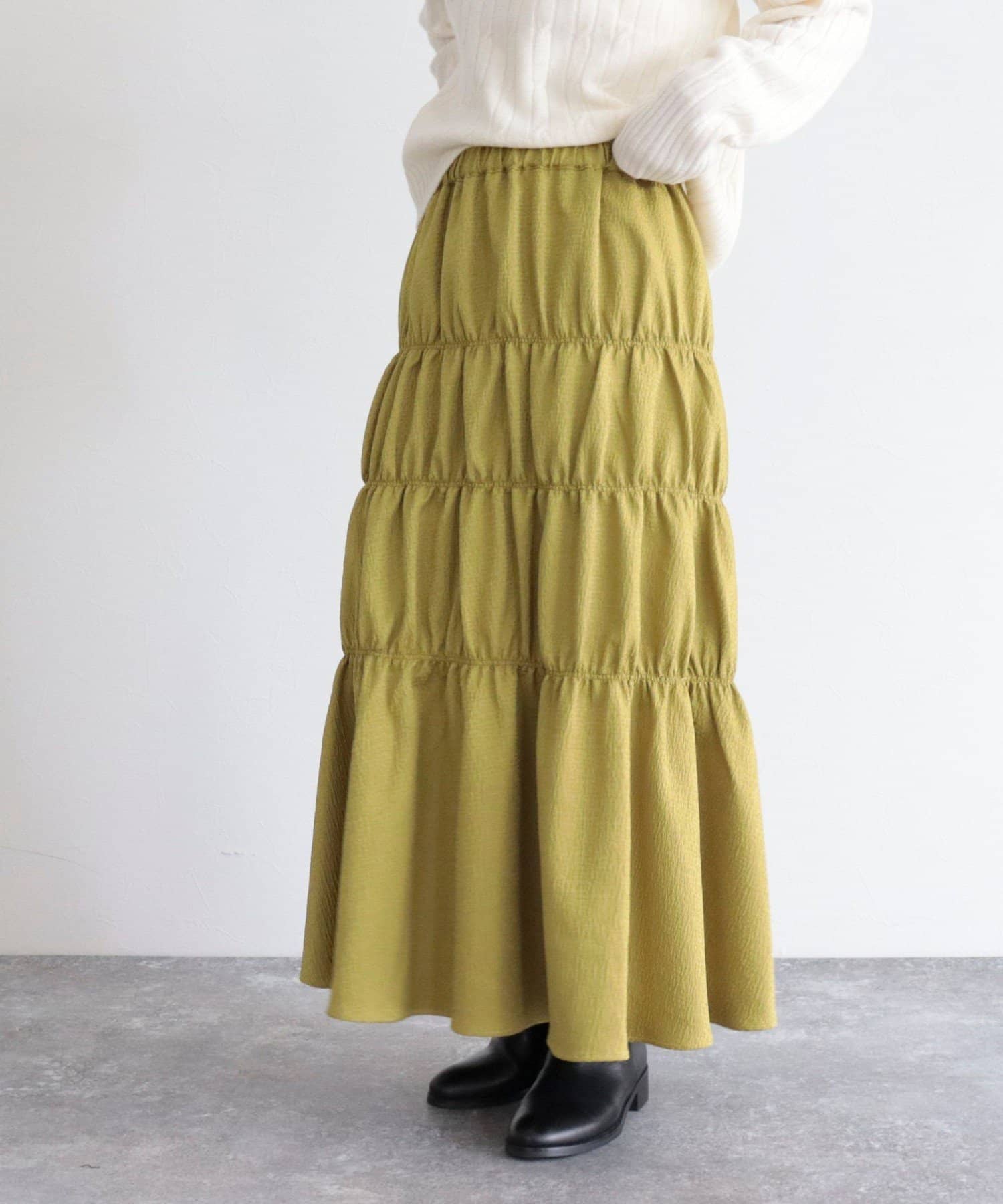 ・シャーリングの入ったシルエットが印象的なロングスカート