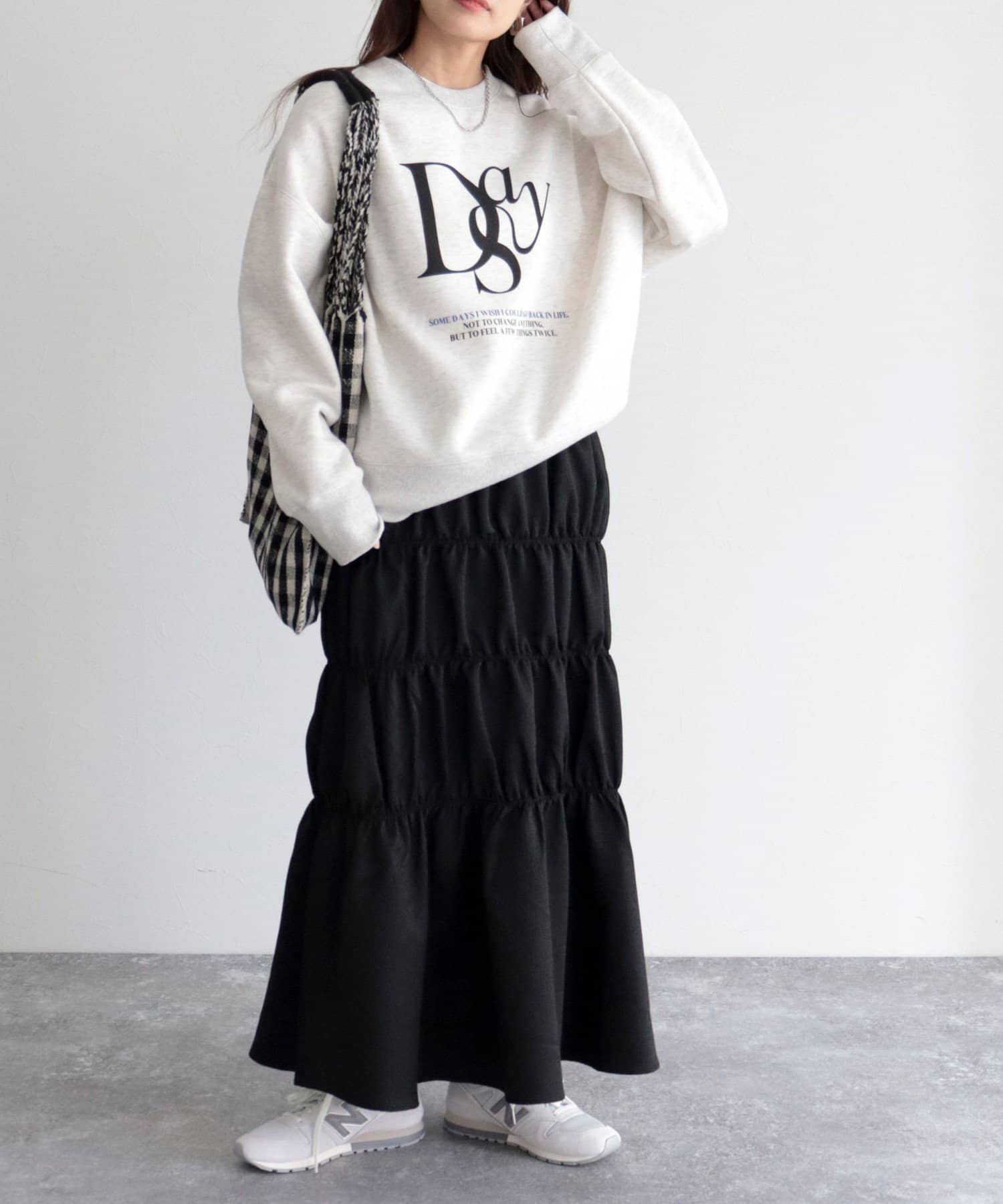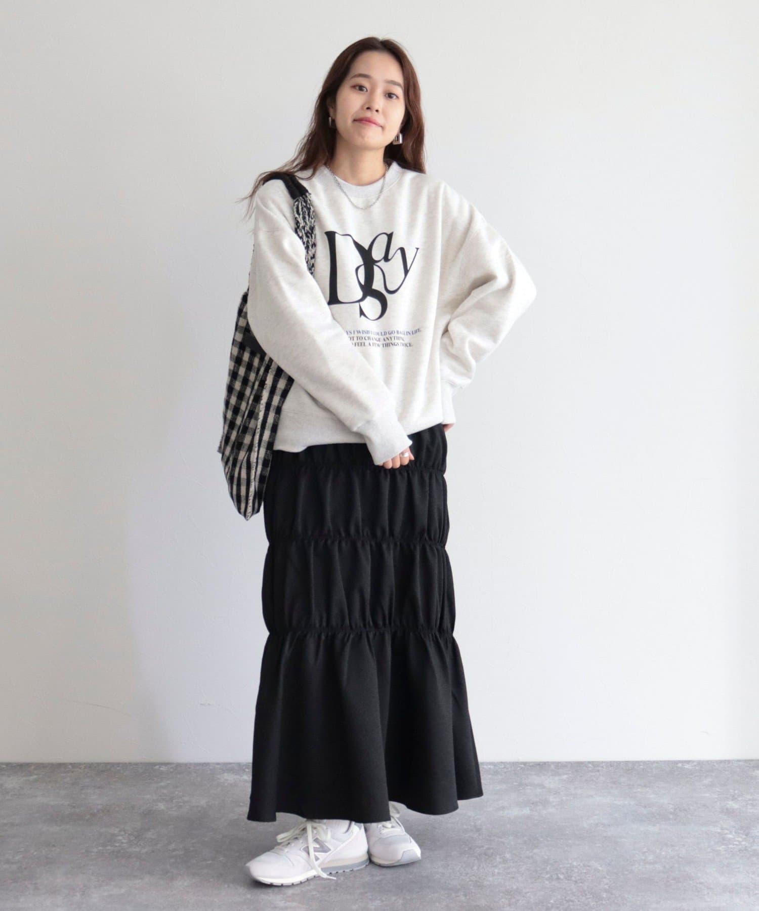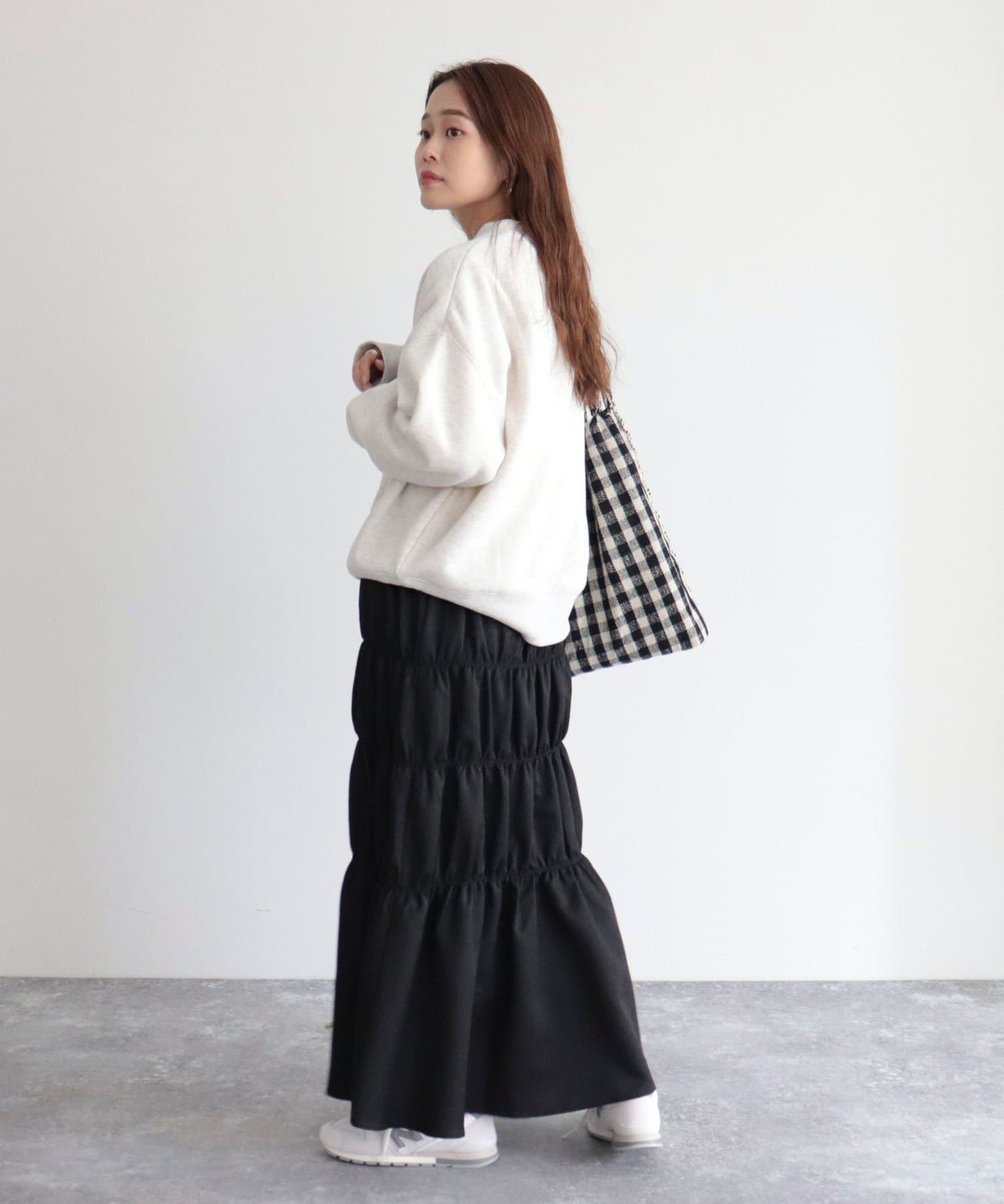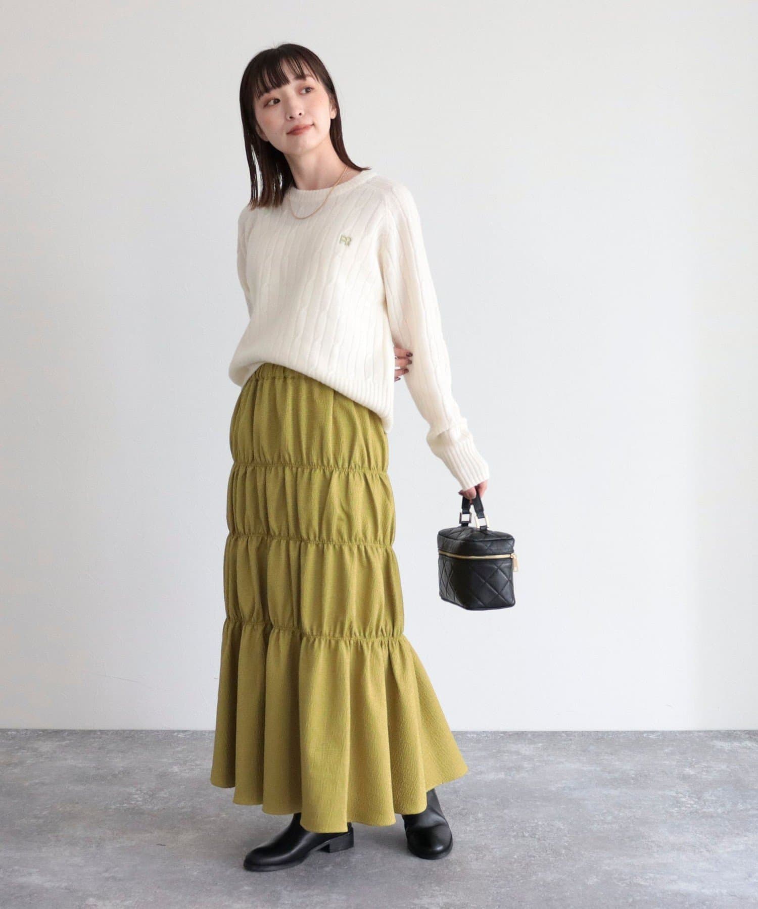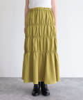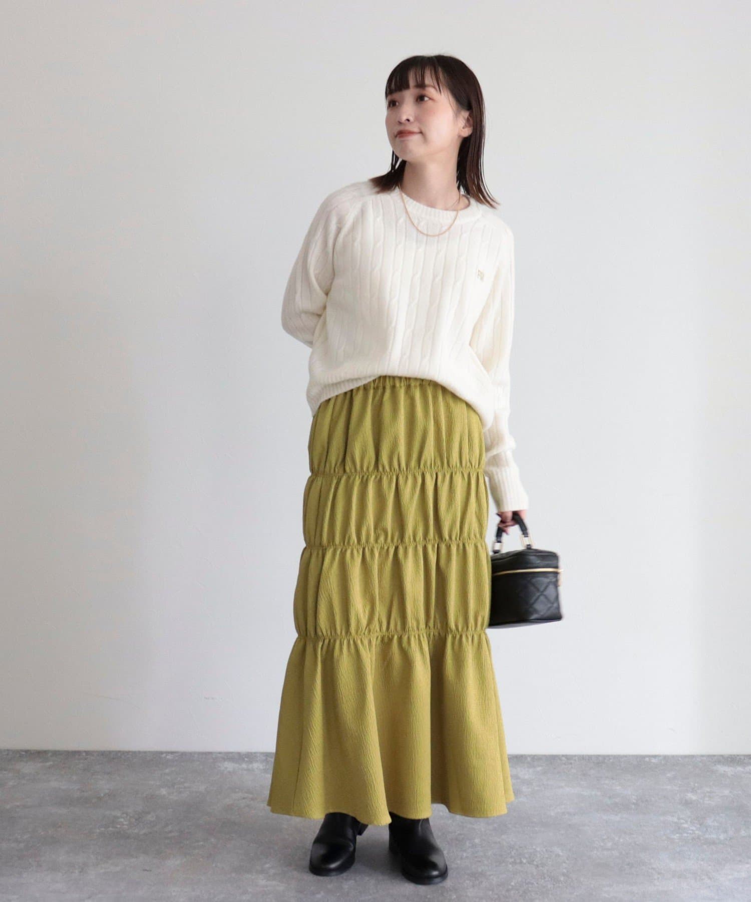 ・シャーリングの入ったシルエットが印象的なロングスカート