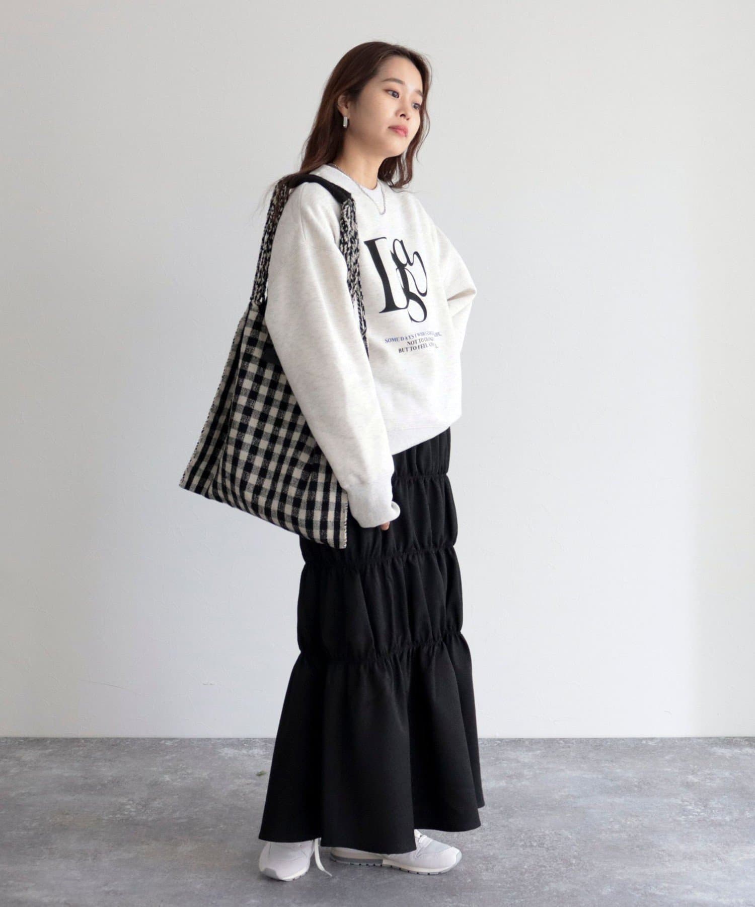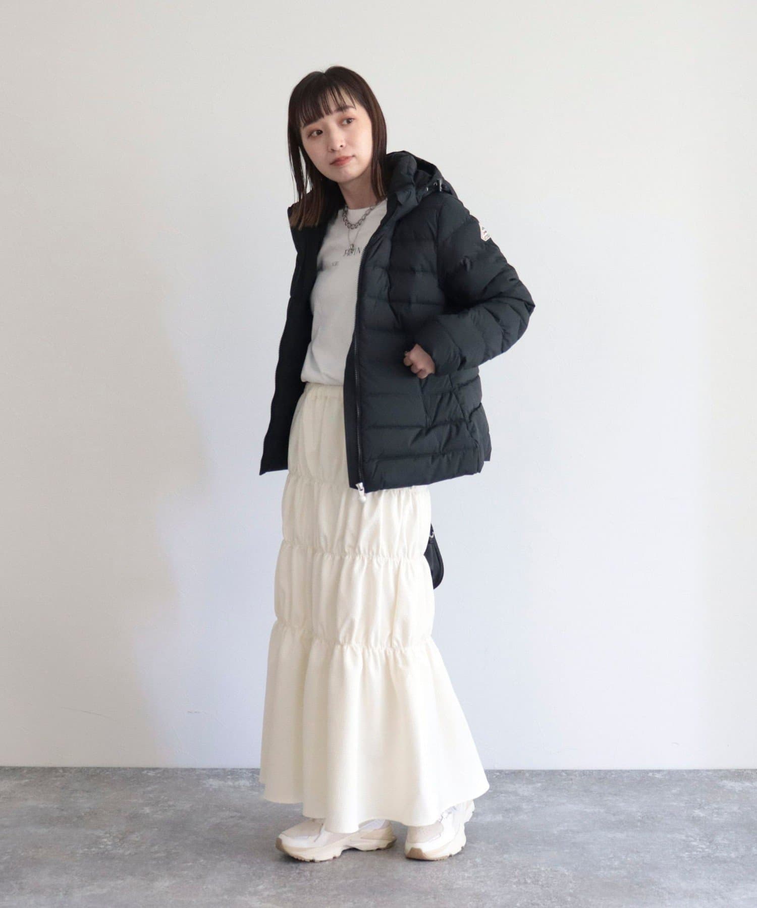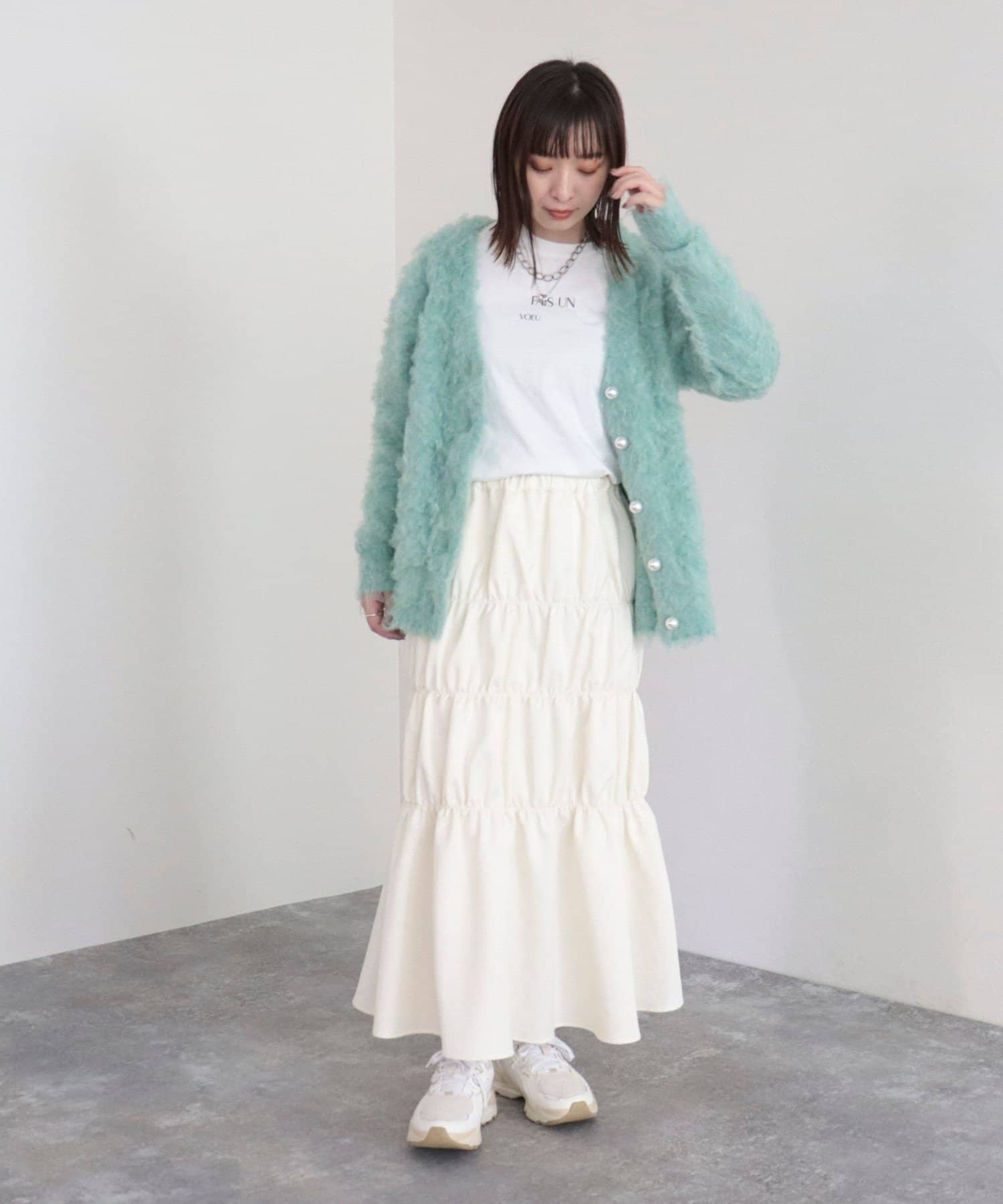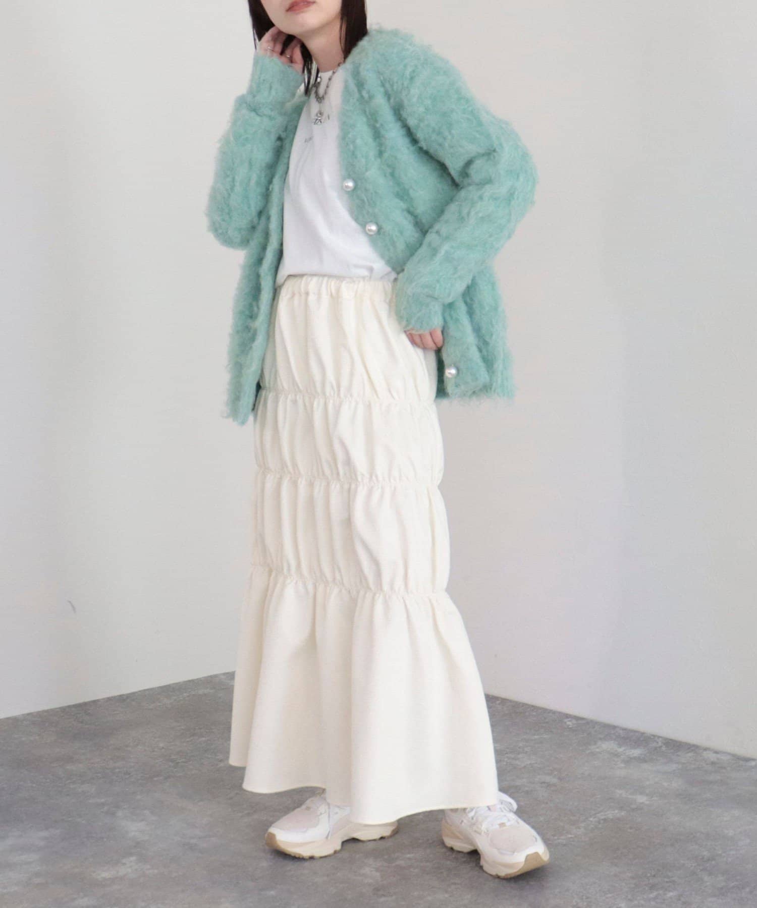 ・シャーリングの入ったシルエットが印象的なロングスカート
