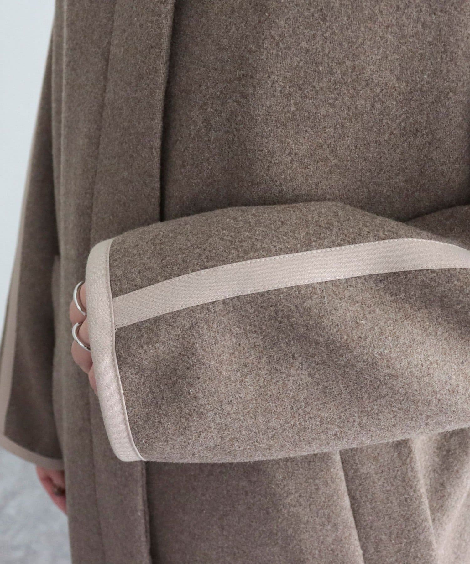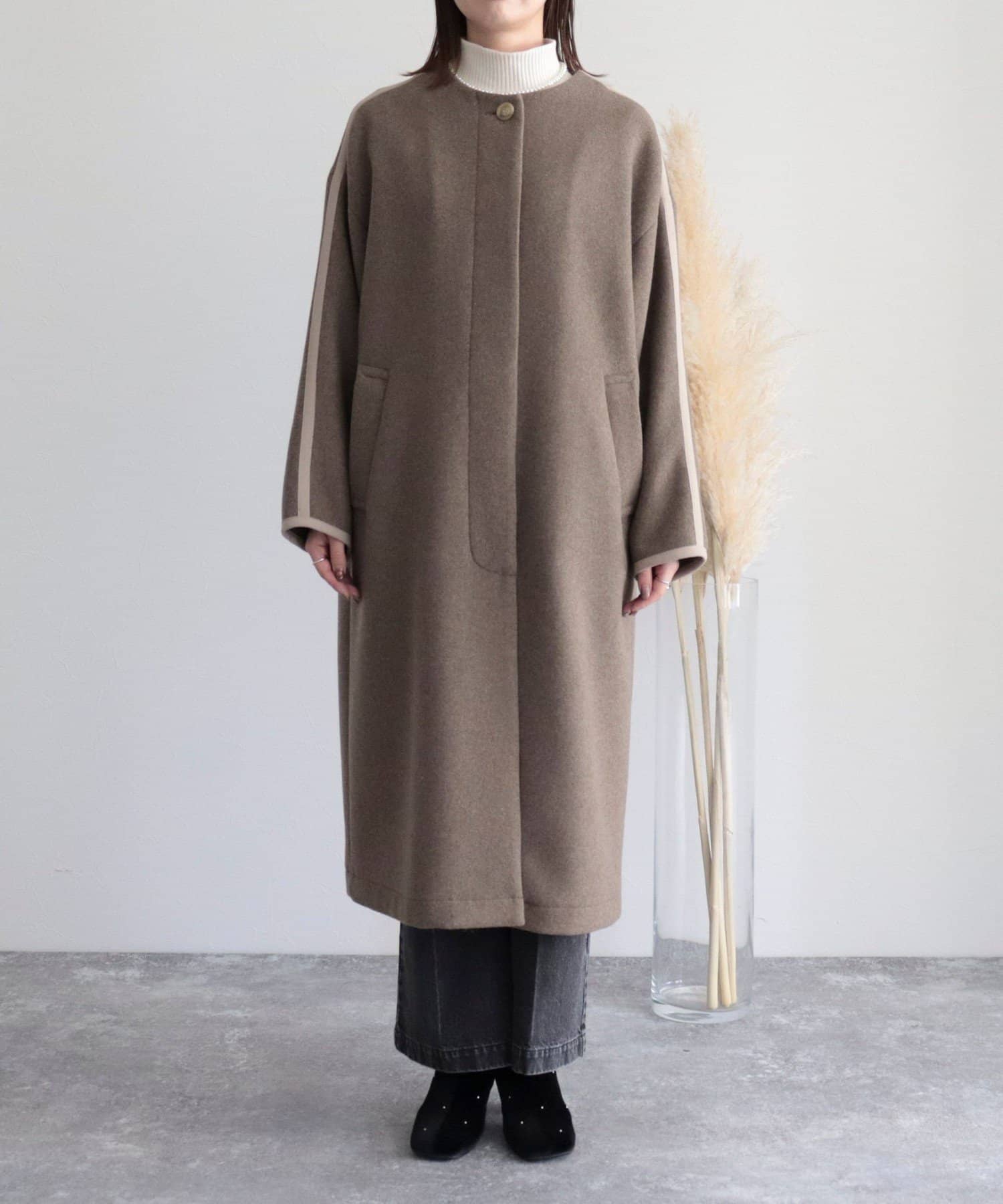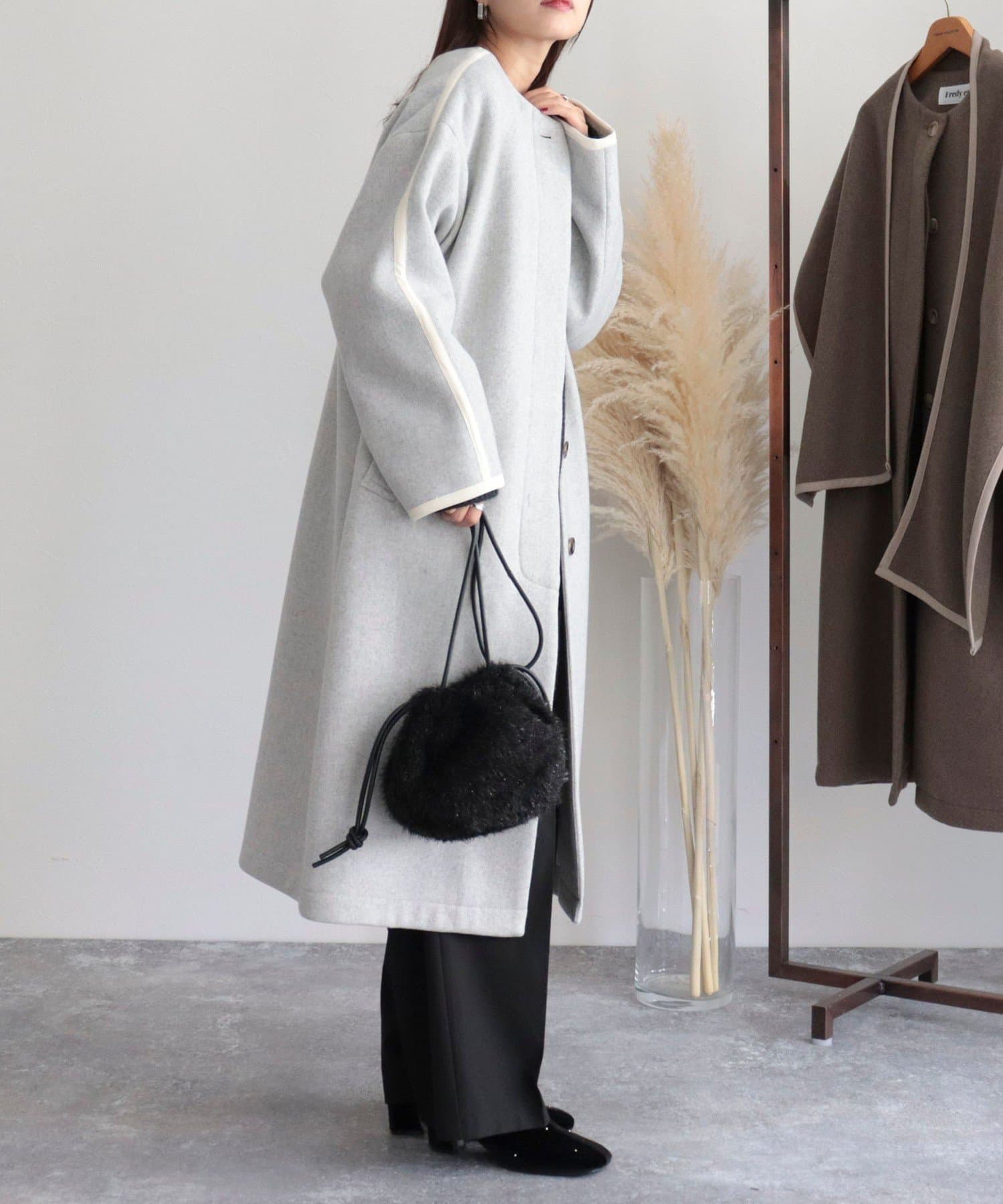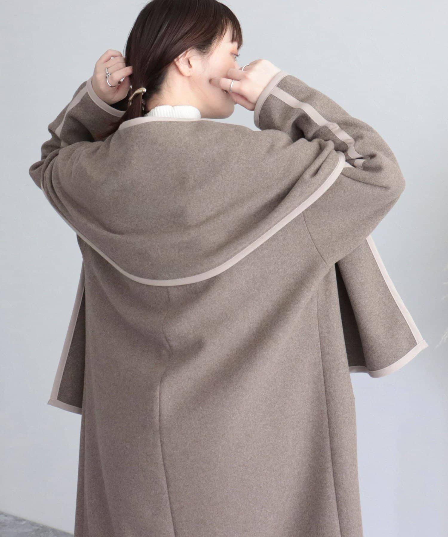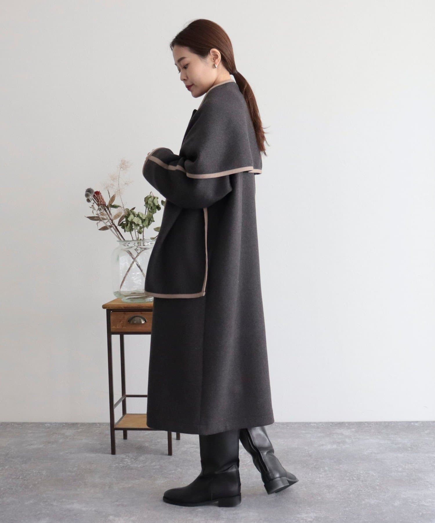 配色パイピングが今年らしい ストールとノーカラーコートのセットアイテム