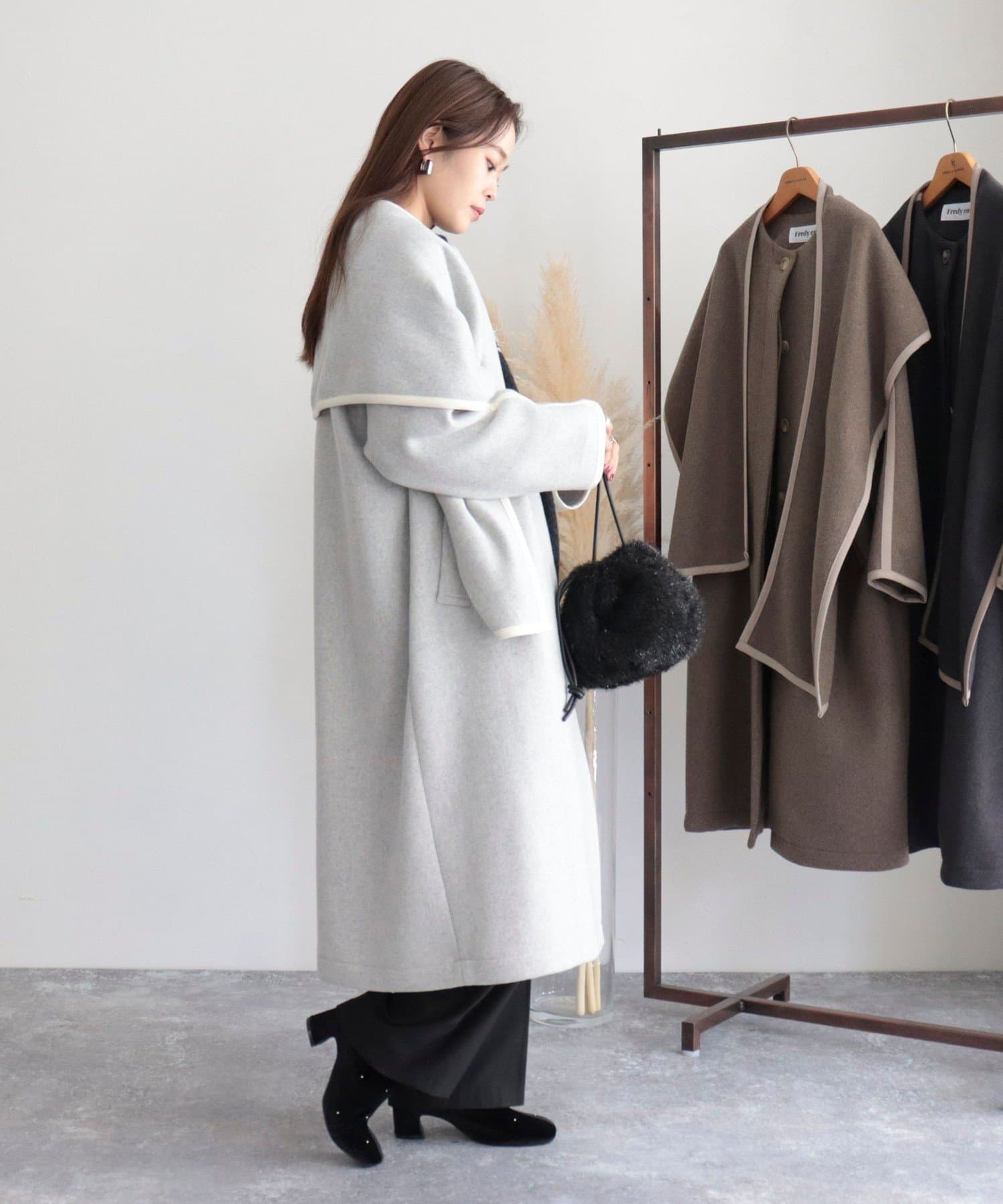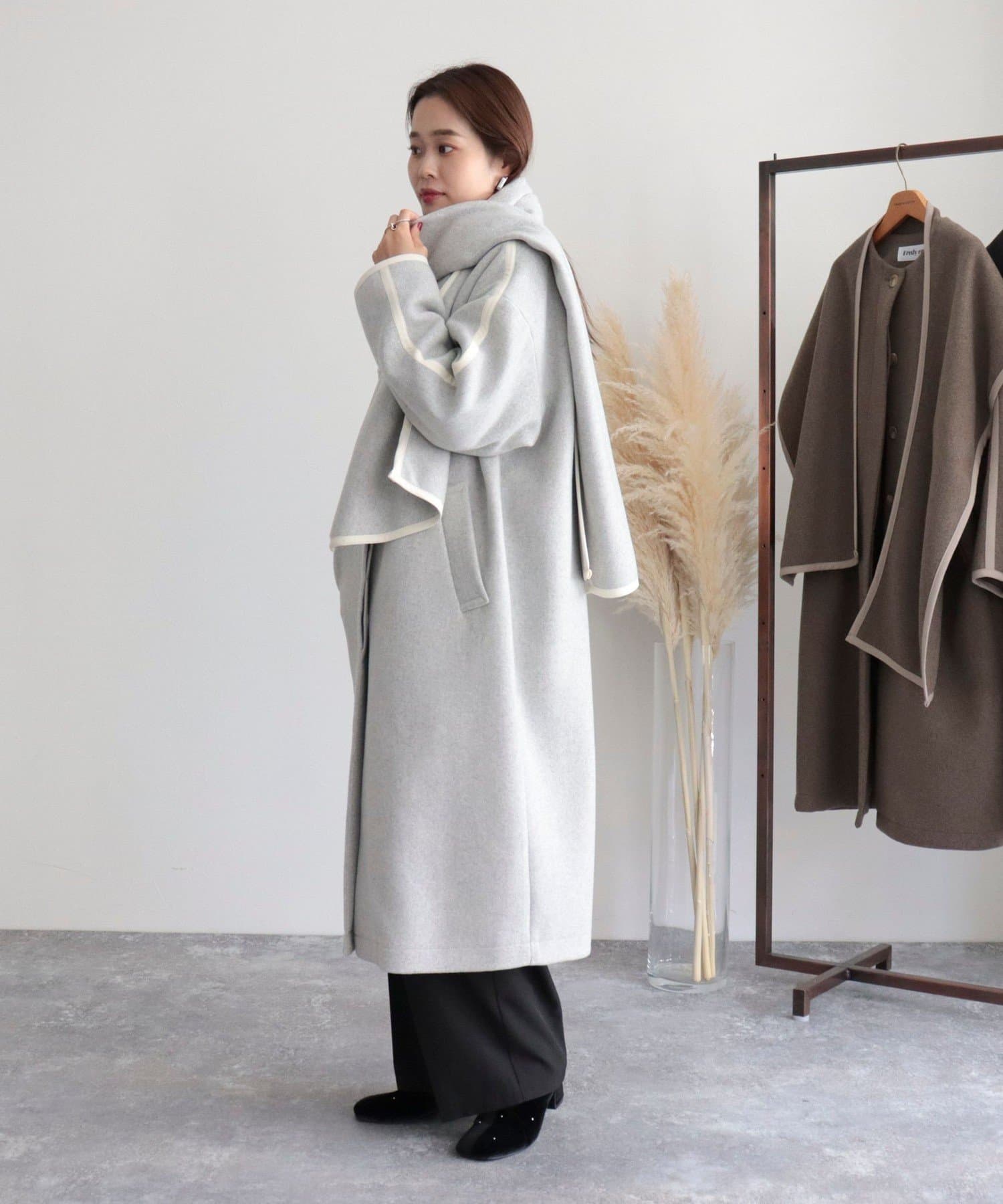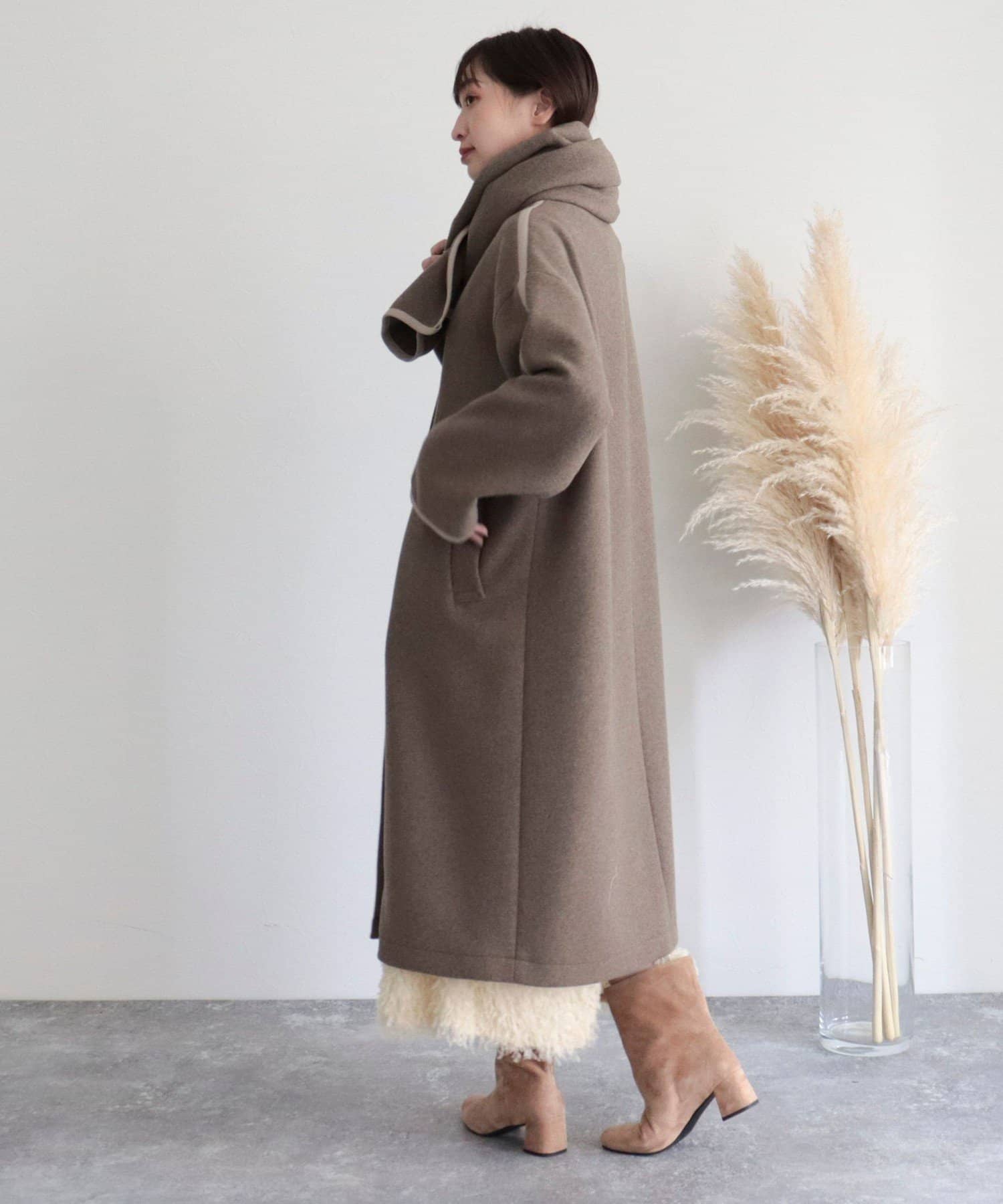 ・ロング丈でストールと統一感のあるアイテムなので、コートを主役にしたスタイリングもお楽しみいただけます