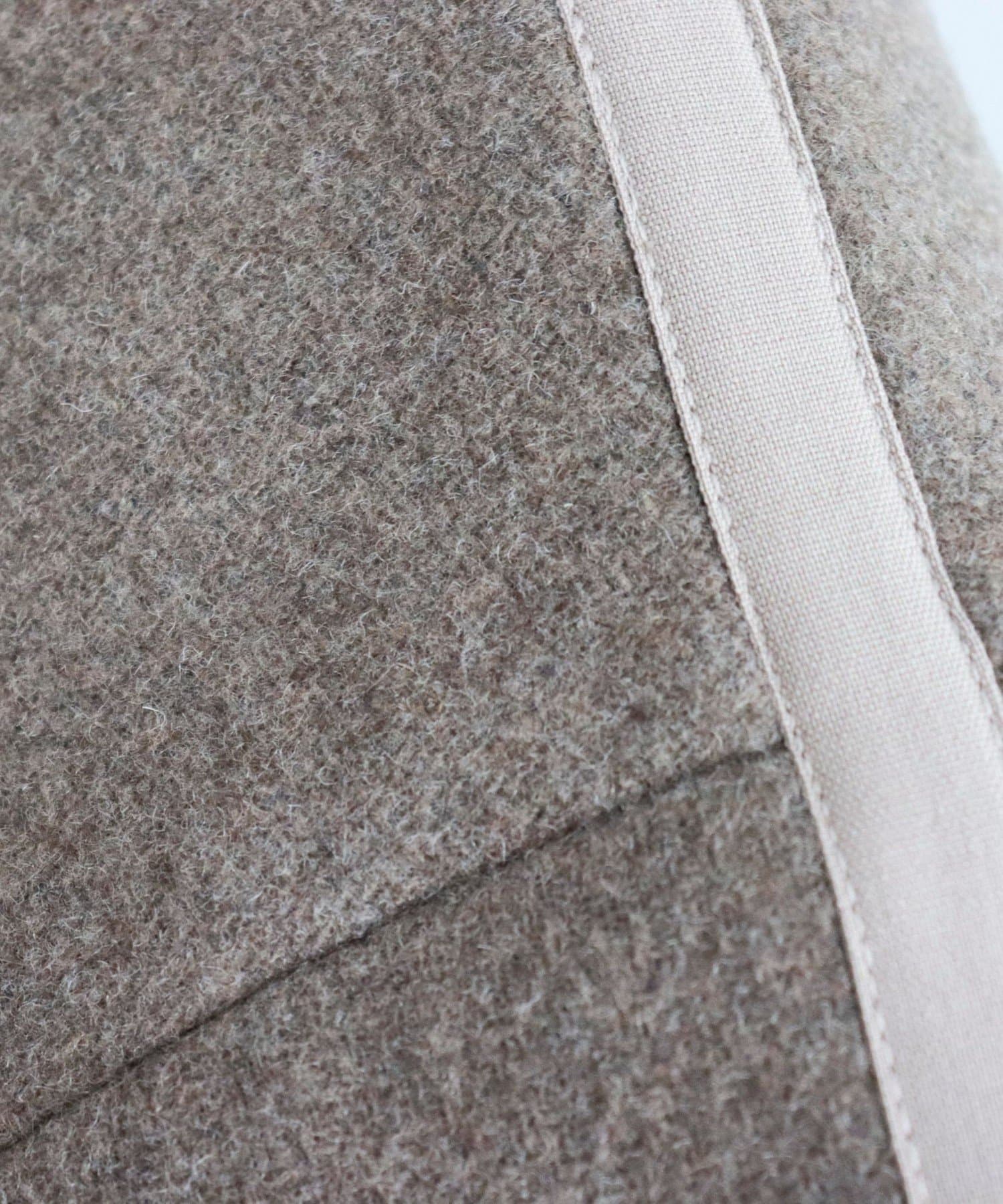 素材 (本体)毛53% ポリエステル30% アクリル14% ナイロン2% レーヨン1%(別布)ポリエステル100%(パイピング)ポリエステル74% レーヨン21% ポリウレタン5%