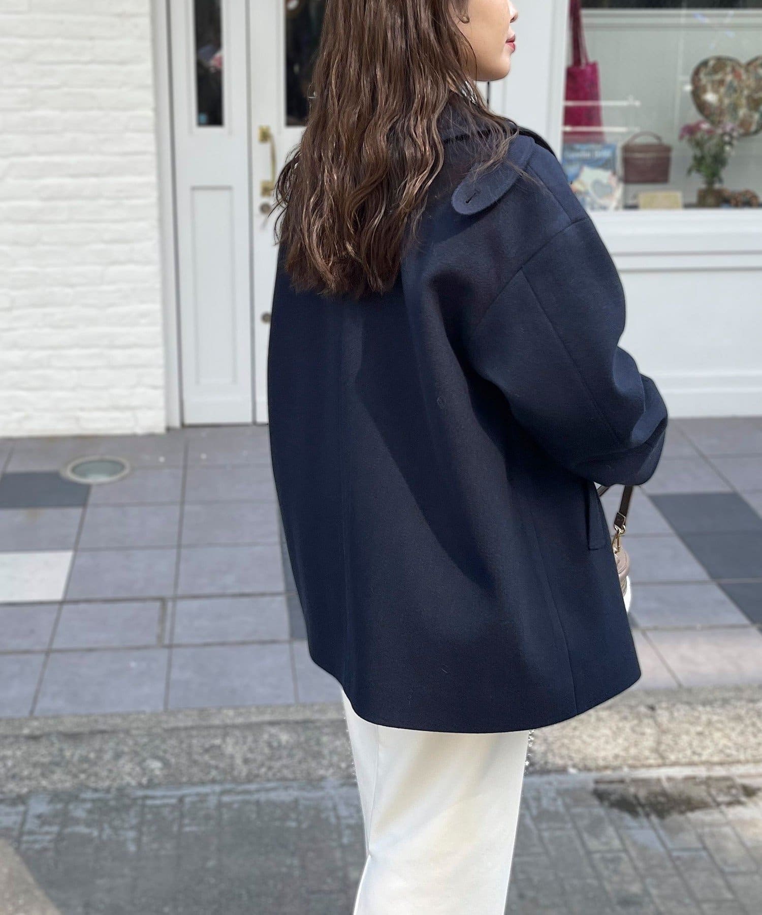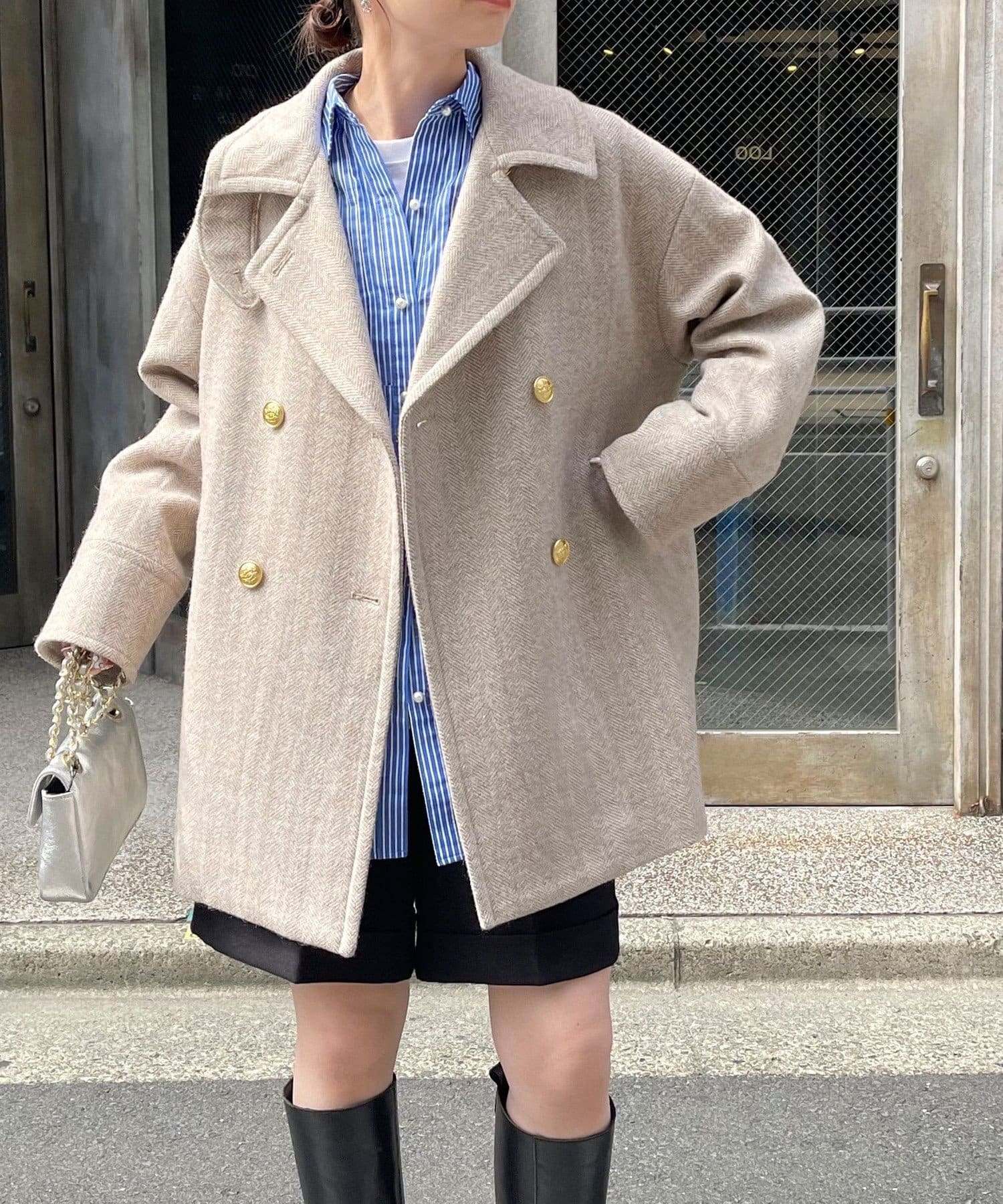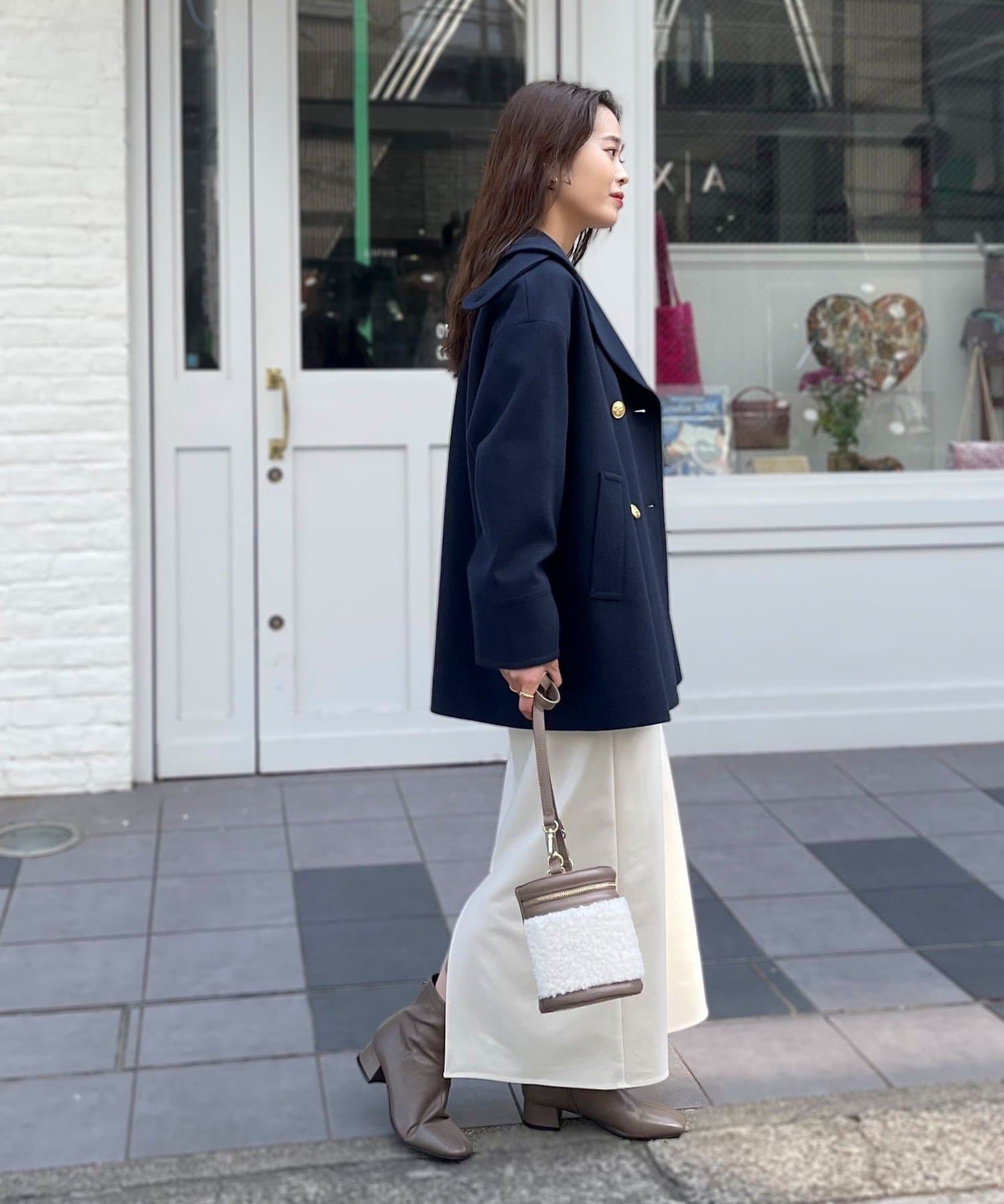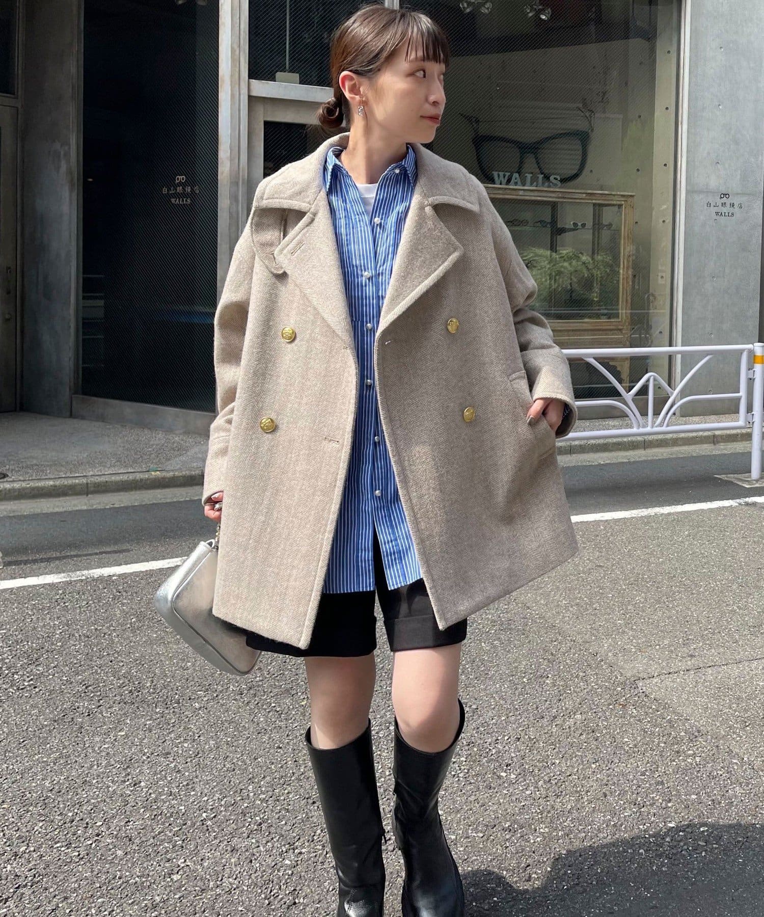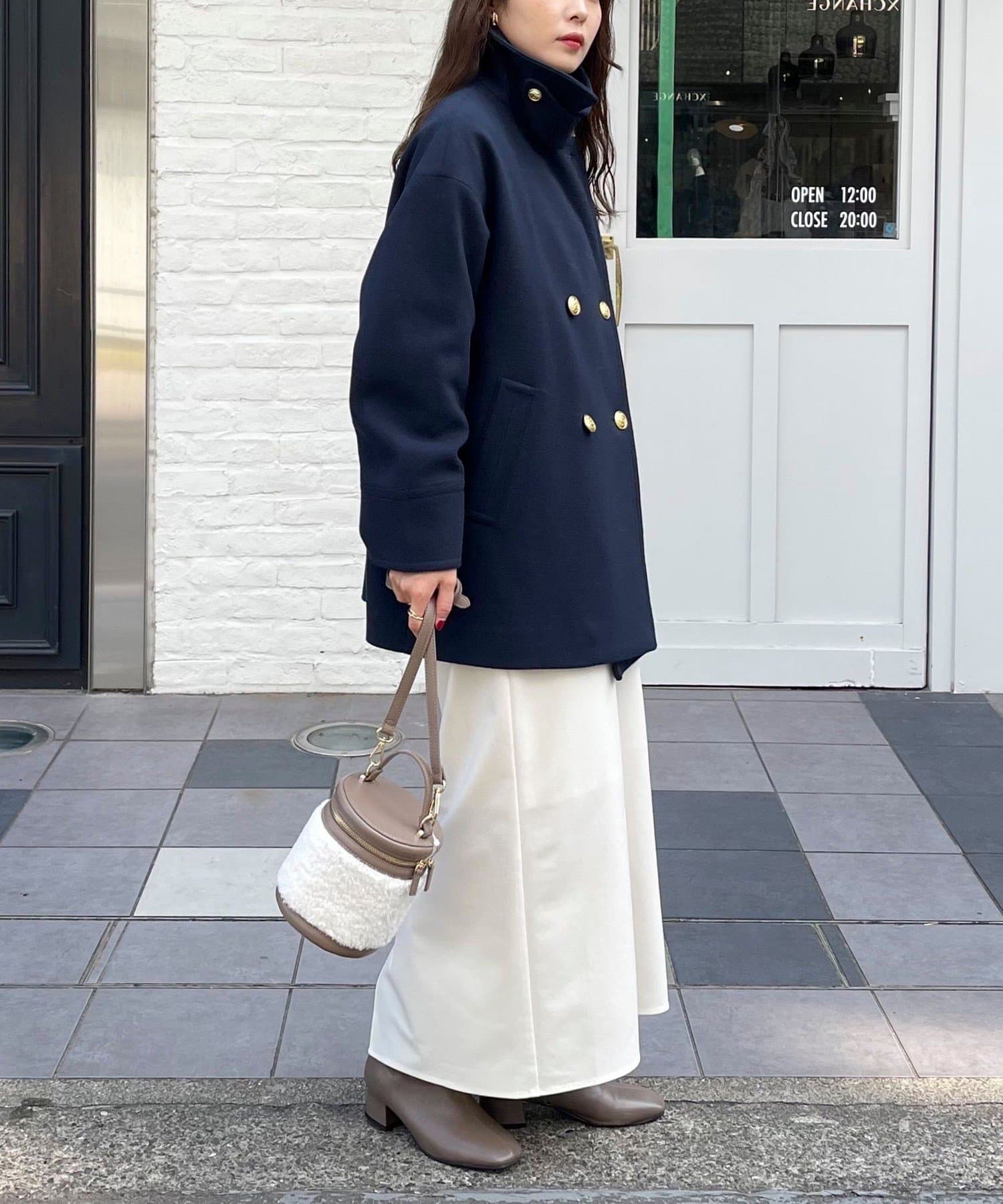 ・トレンド感のあるサイジングがポイントのミドル丈のピーコート