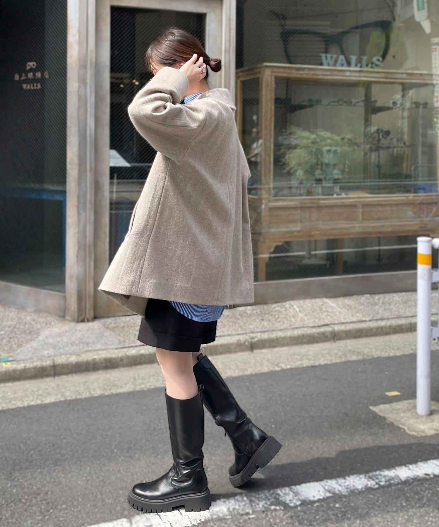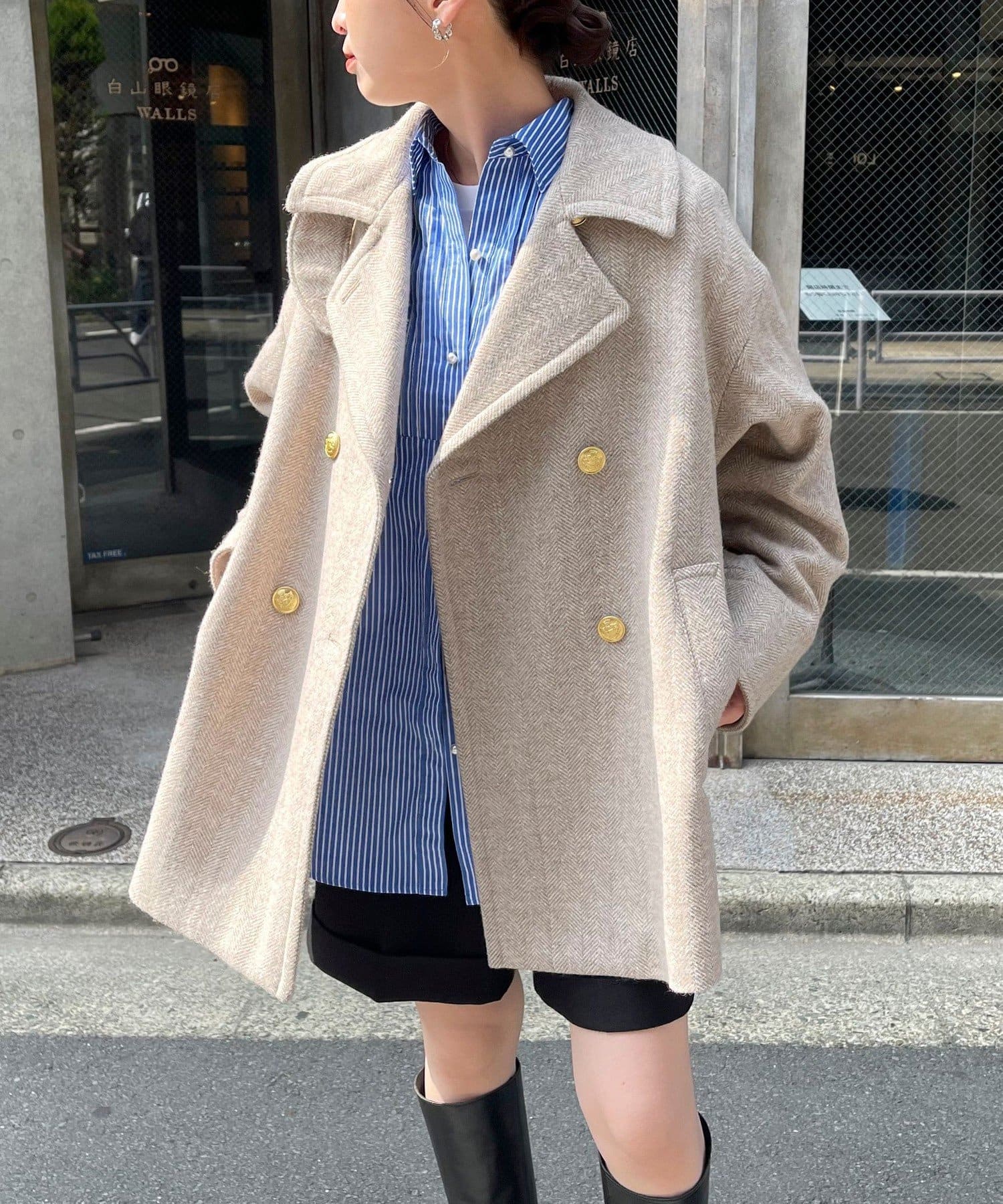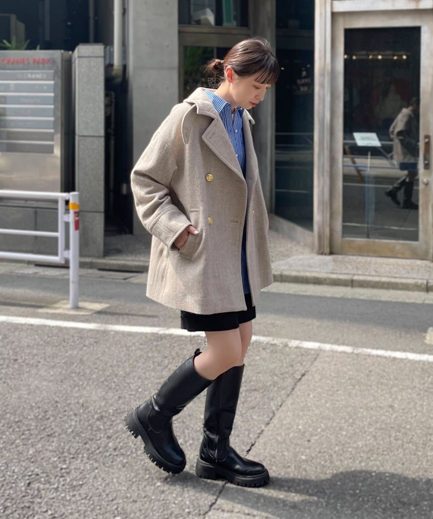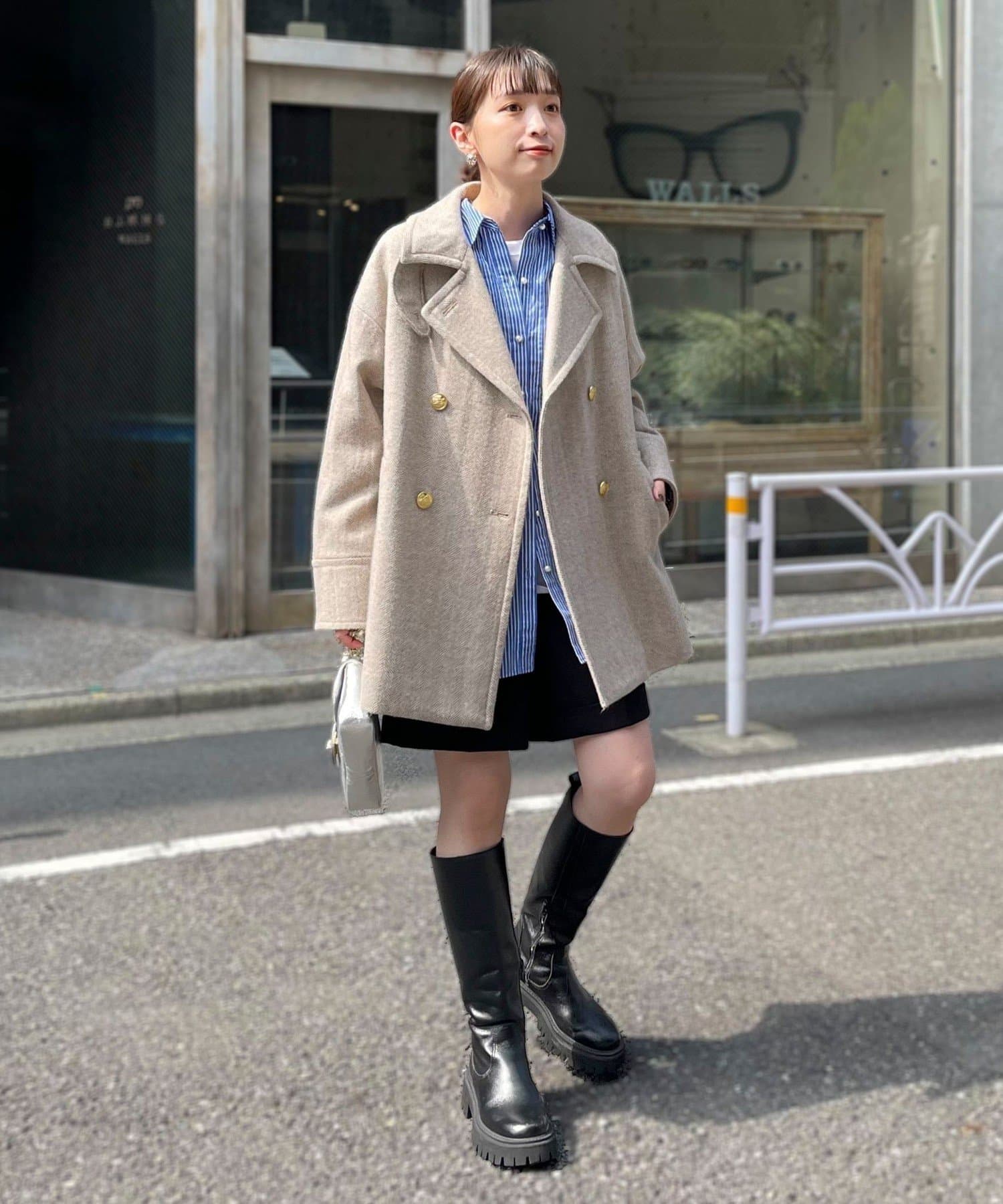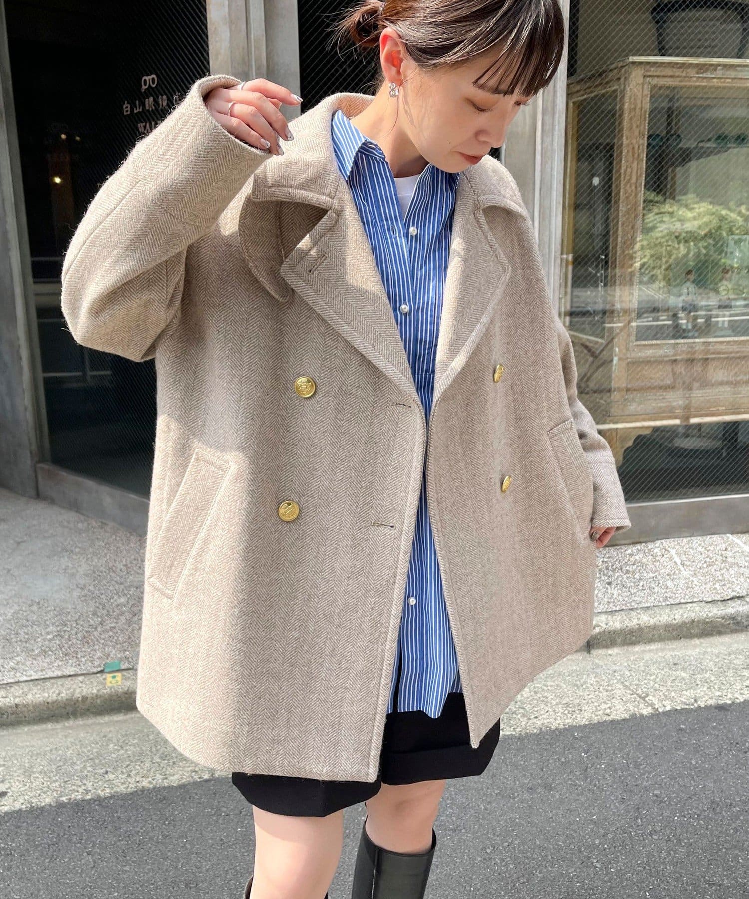 ・トレンド感のあるサイジングがポイントのミドル丈のピーコート