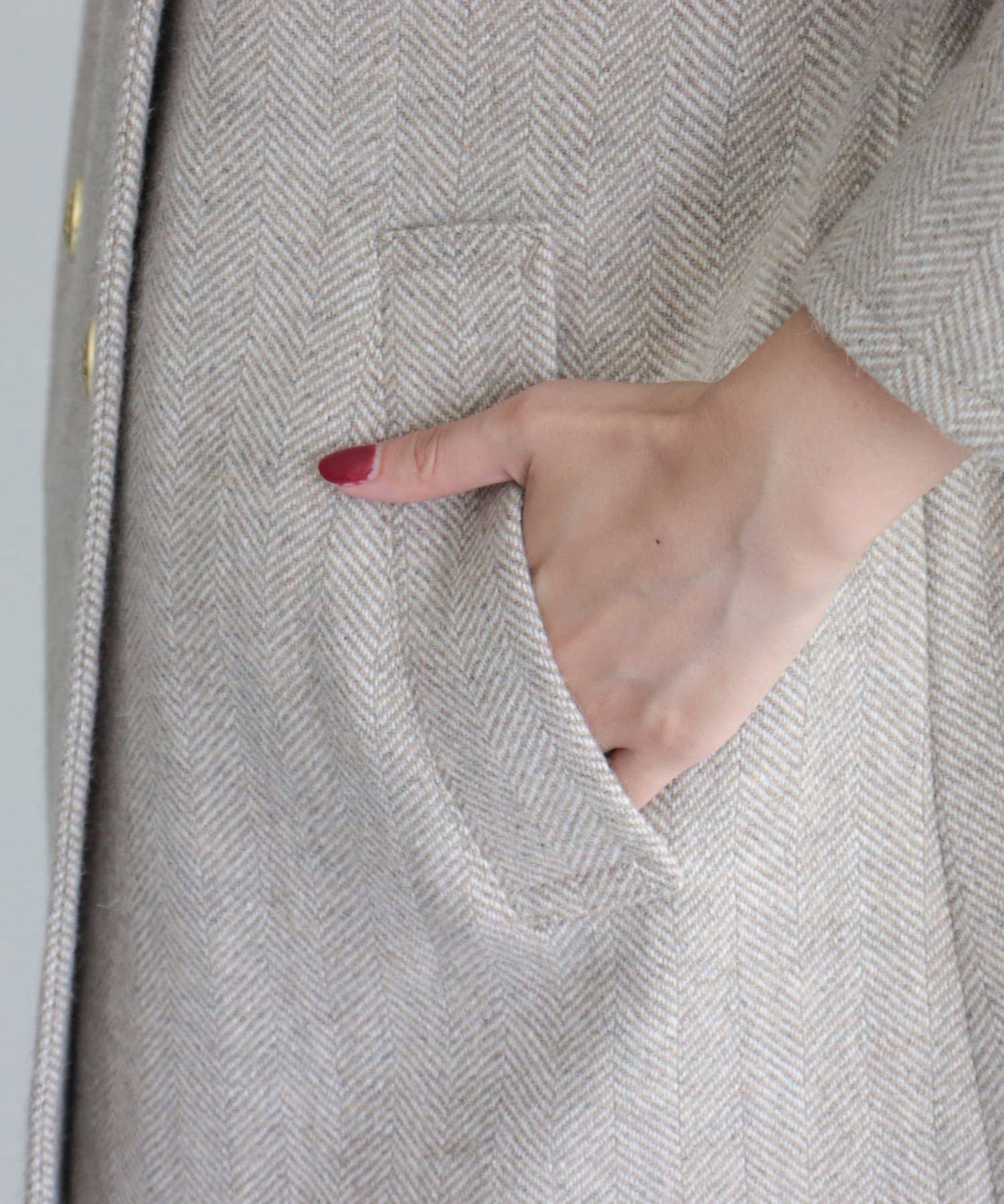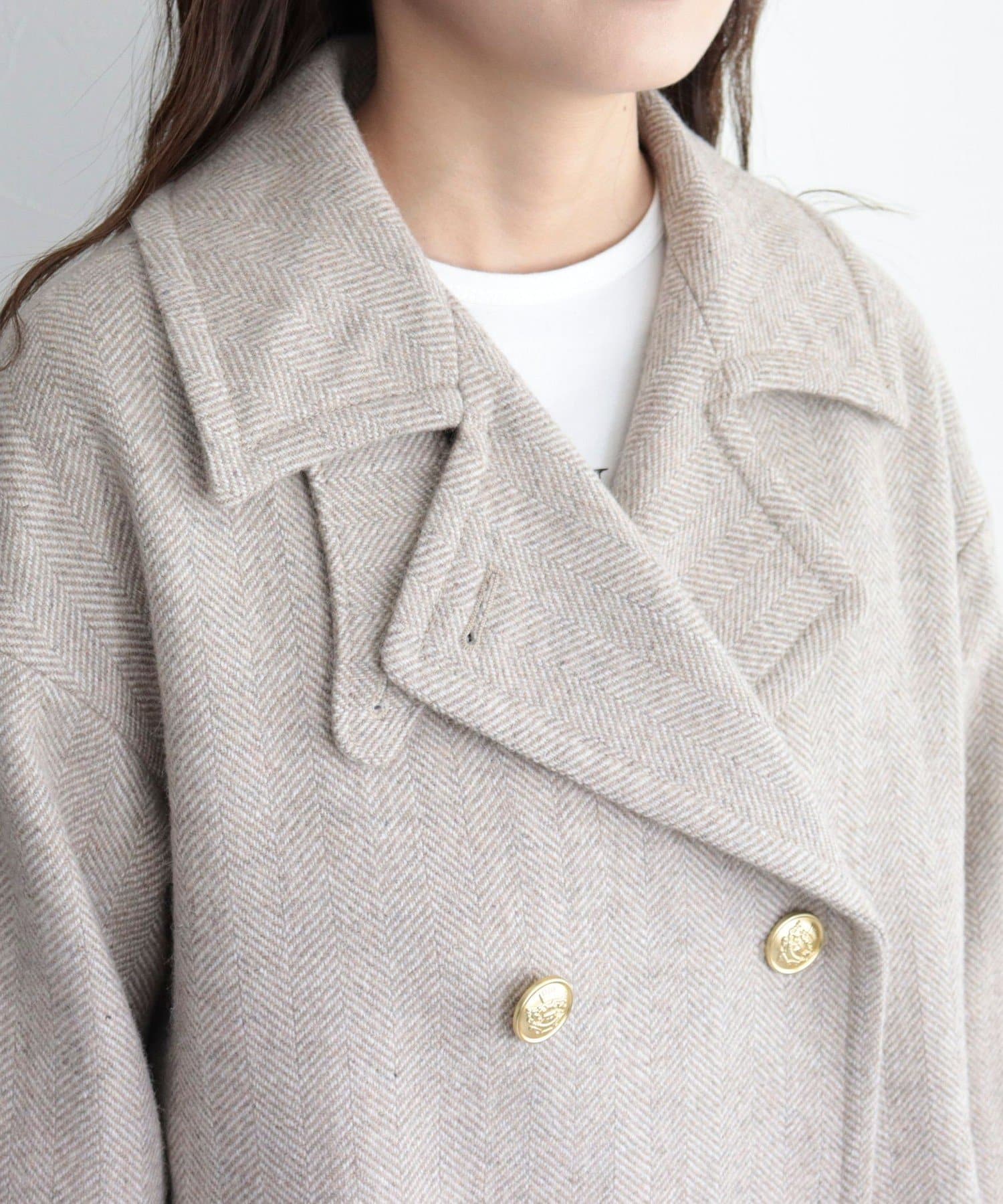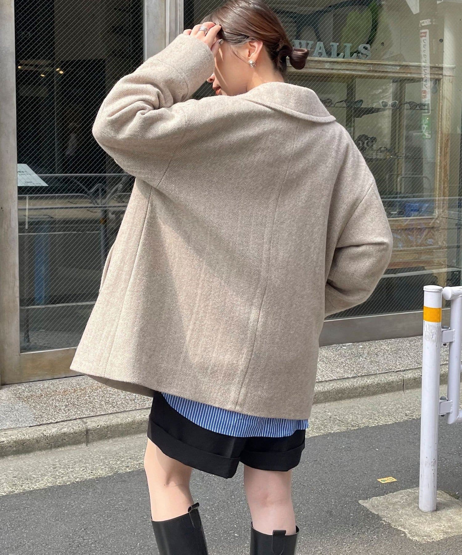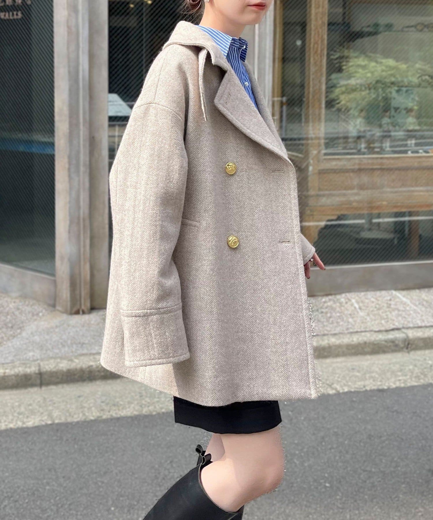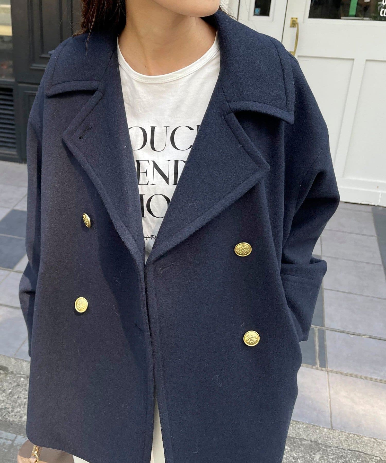 ・大きめの襟と金ボタンがアクセントになっており、今年らしく着映えするアウターになっています