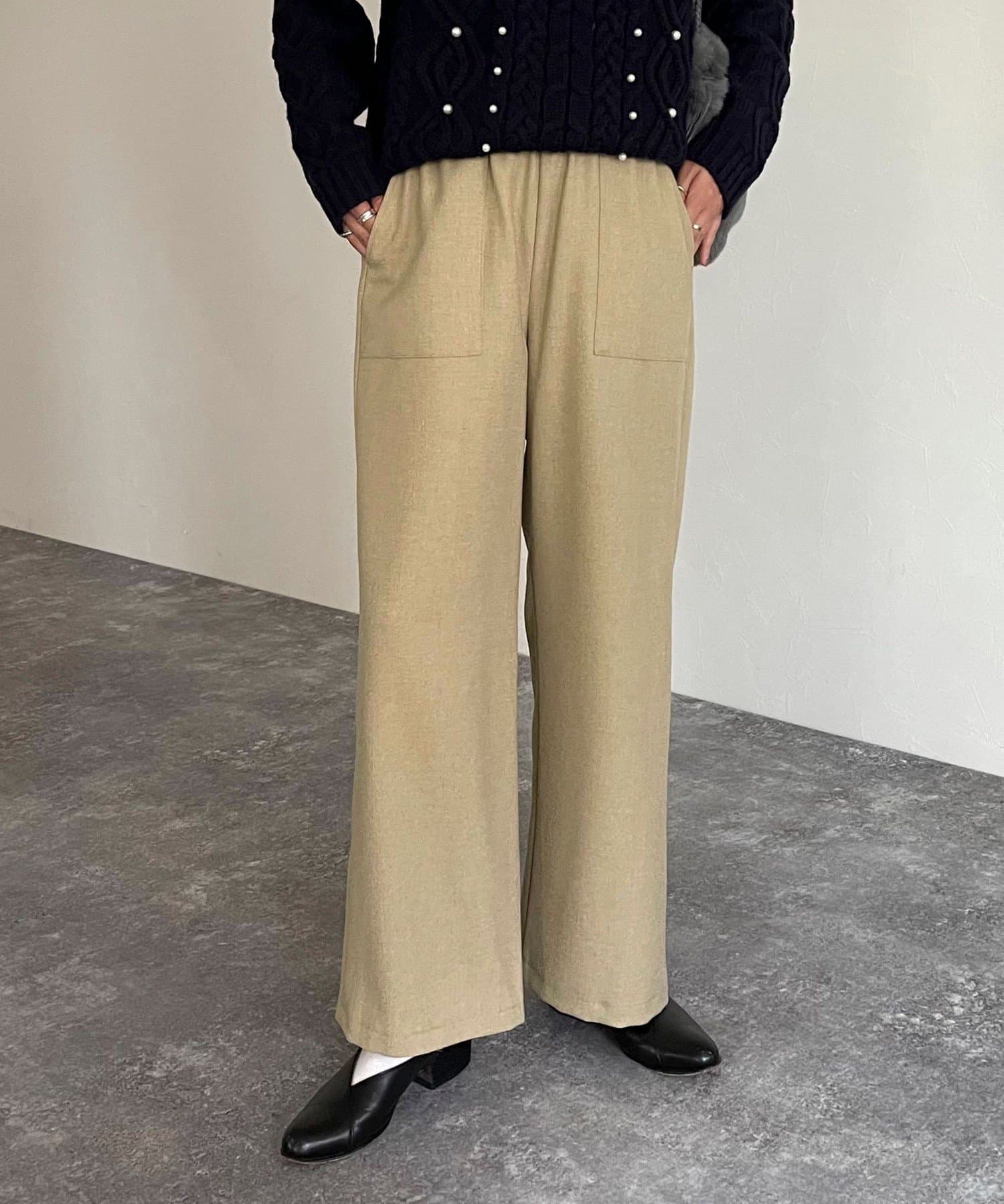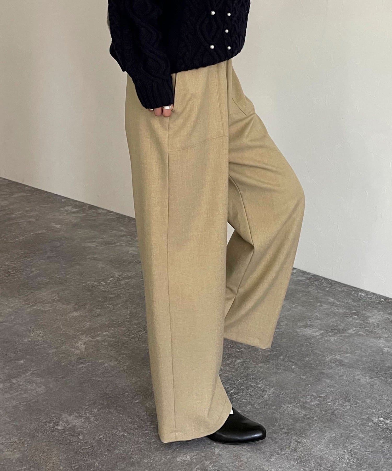 ウールライクスラブクロスセミワイドパンツ