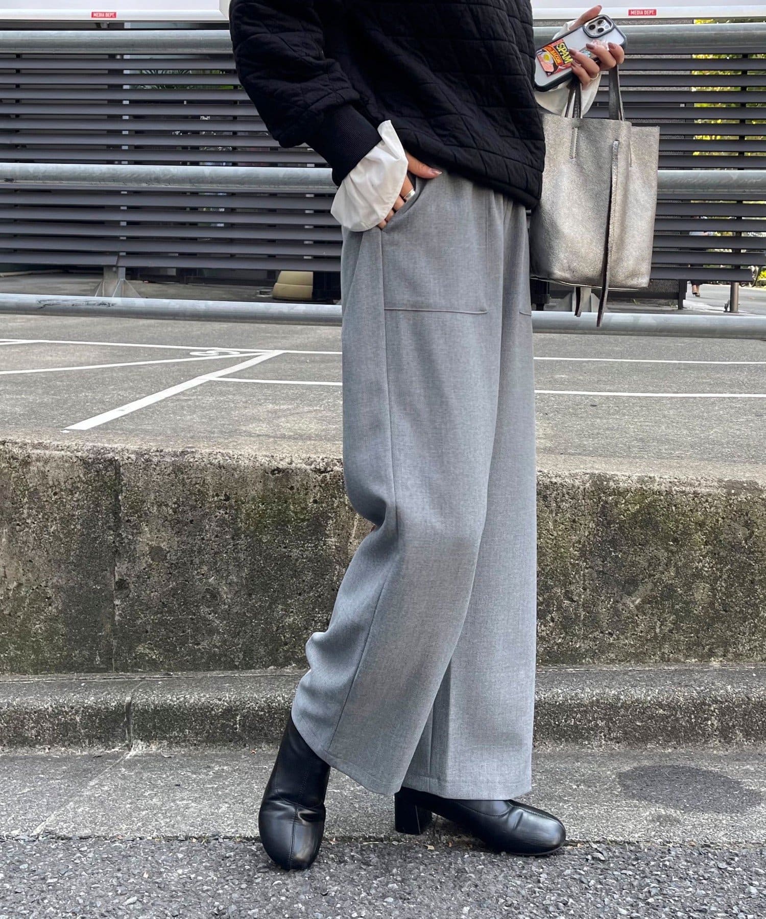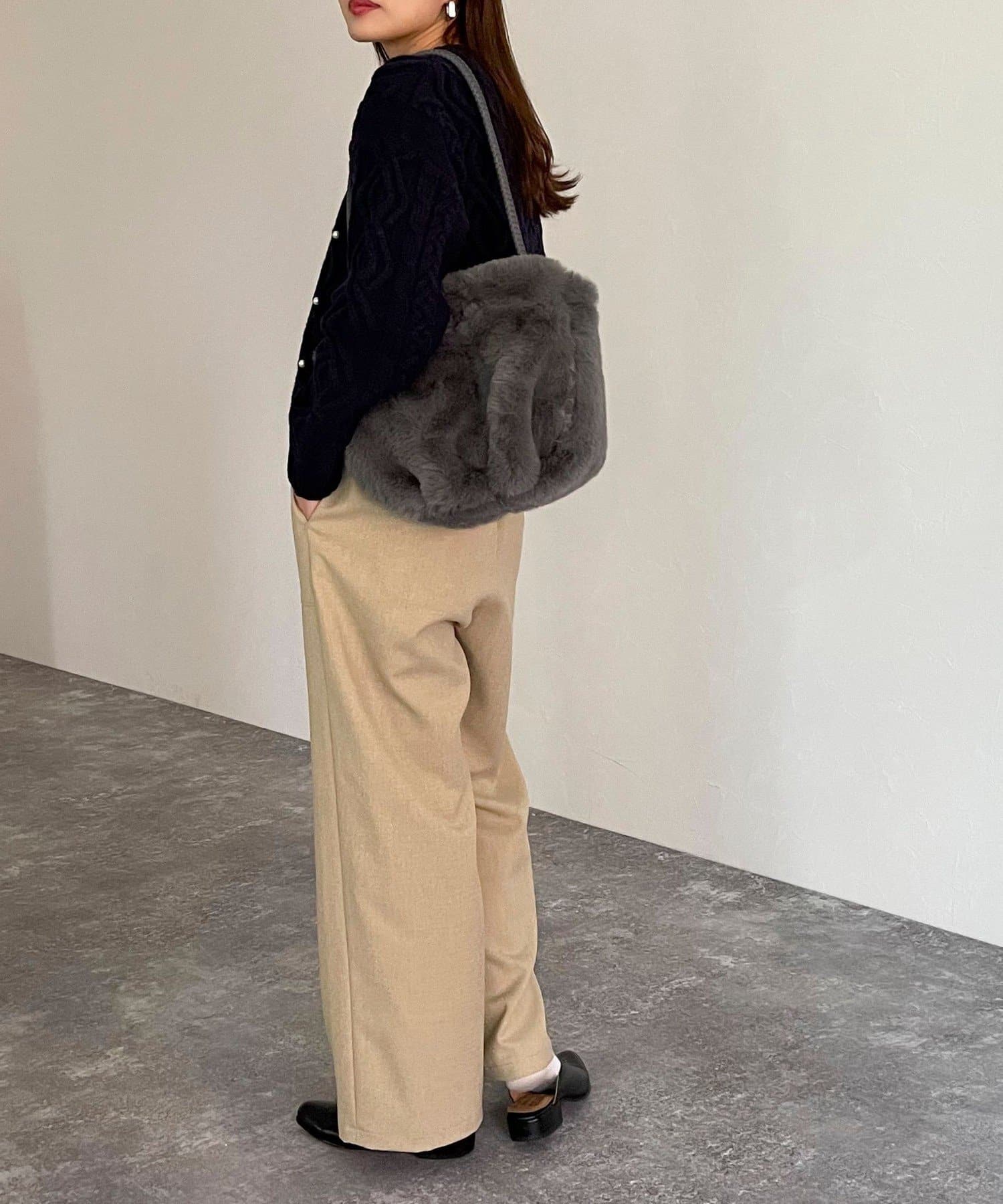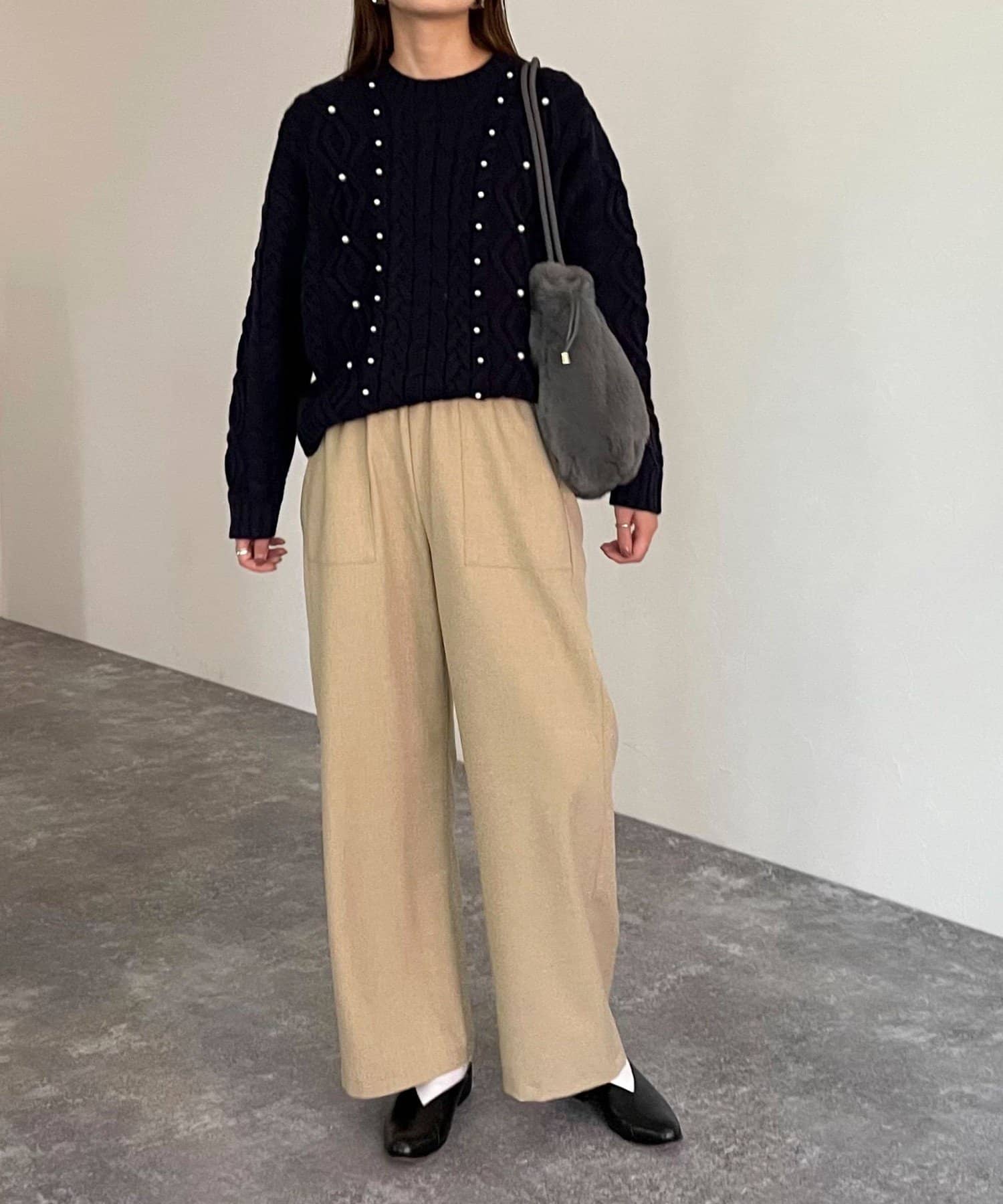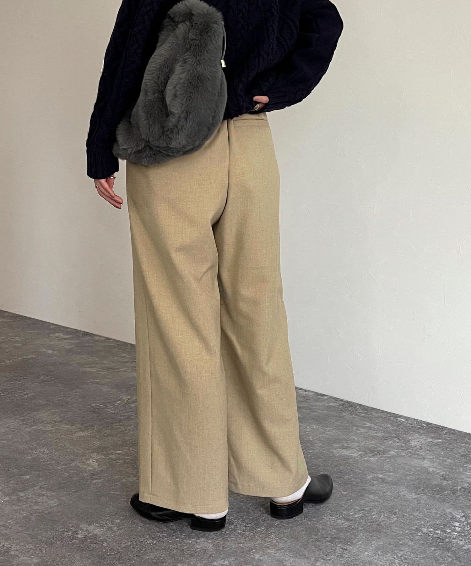 ・あたたかみのあるウールライクな素材を使用したセミワイドパンツ