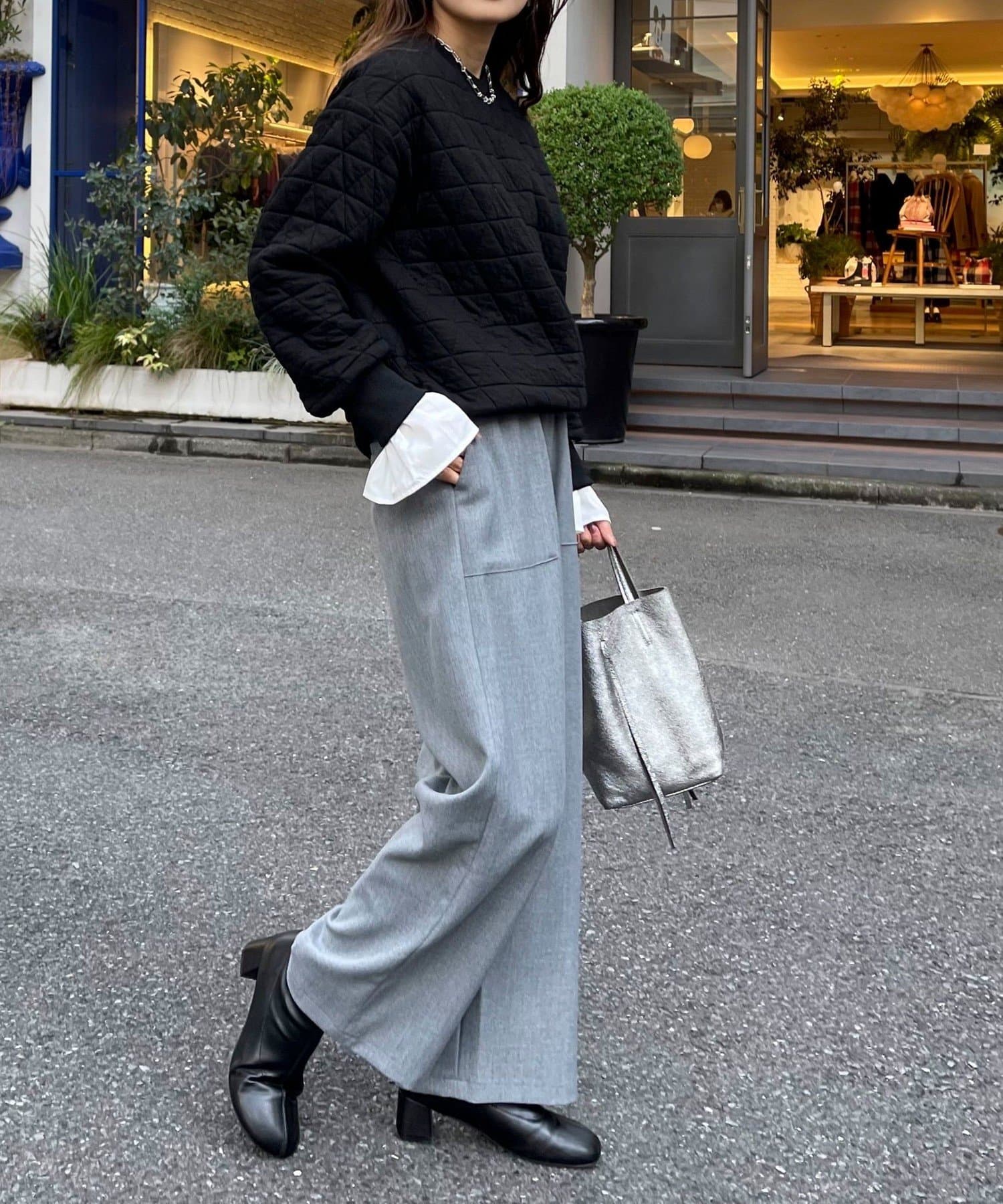 ・ベーシックなデザインなのでニットやジャケット合わせなど、幅広いコーディネートで活躍するアイテムです