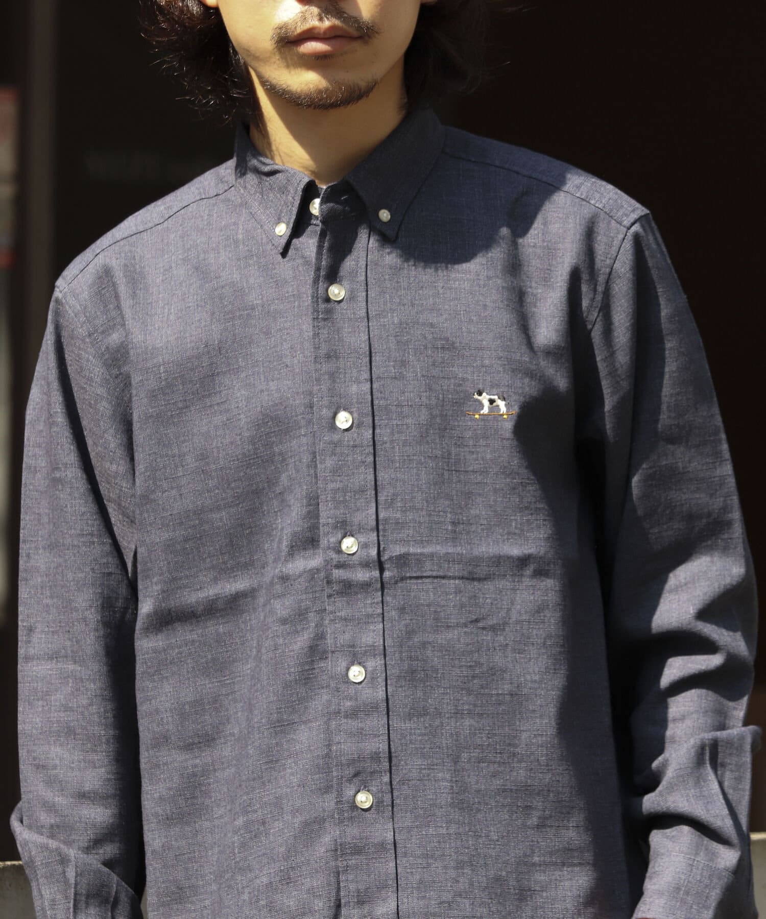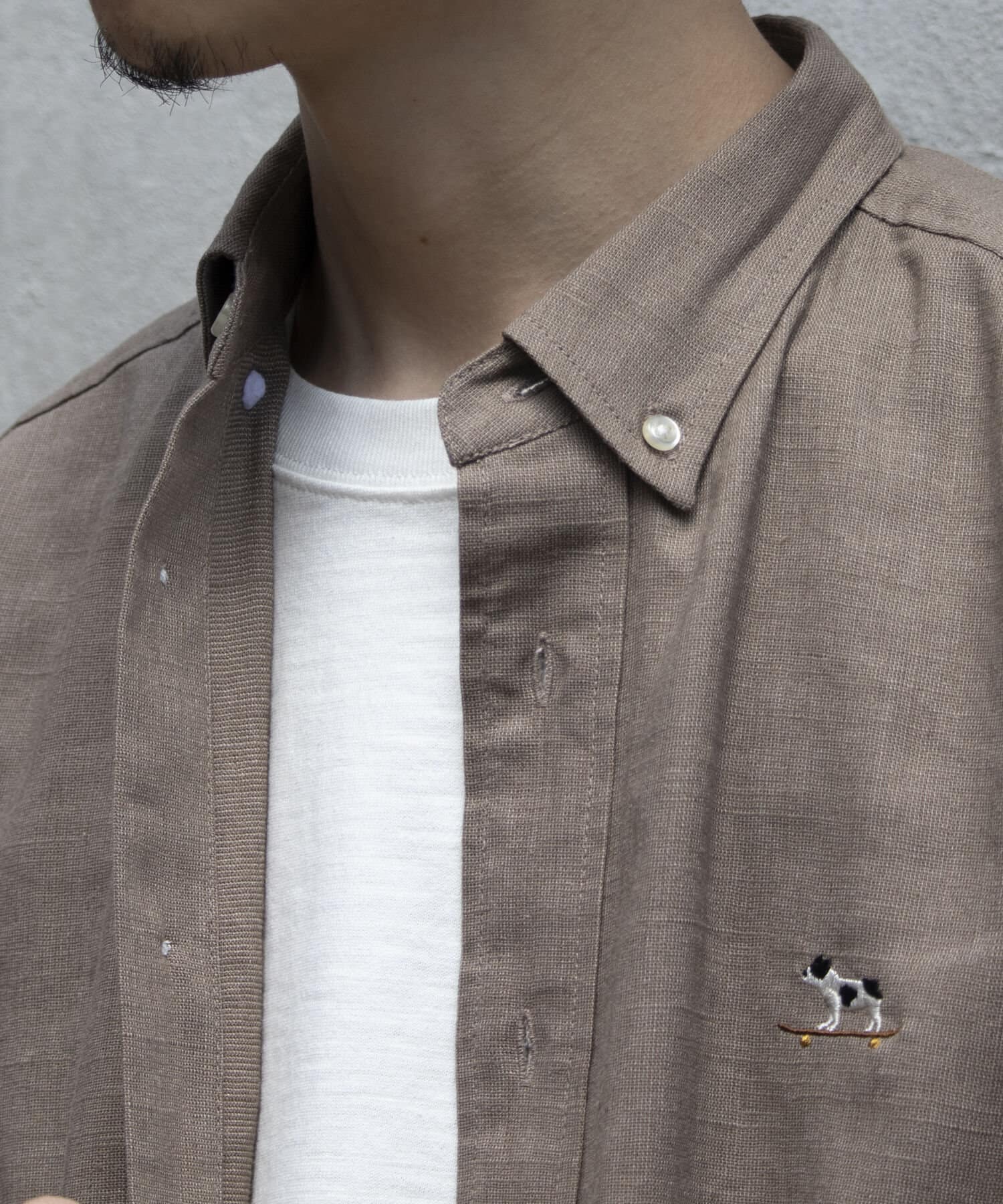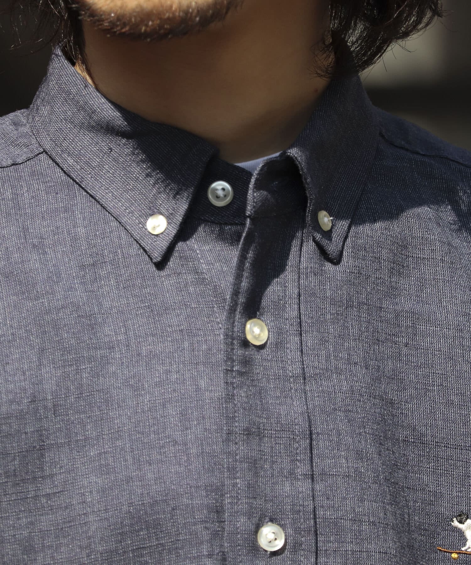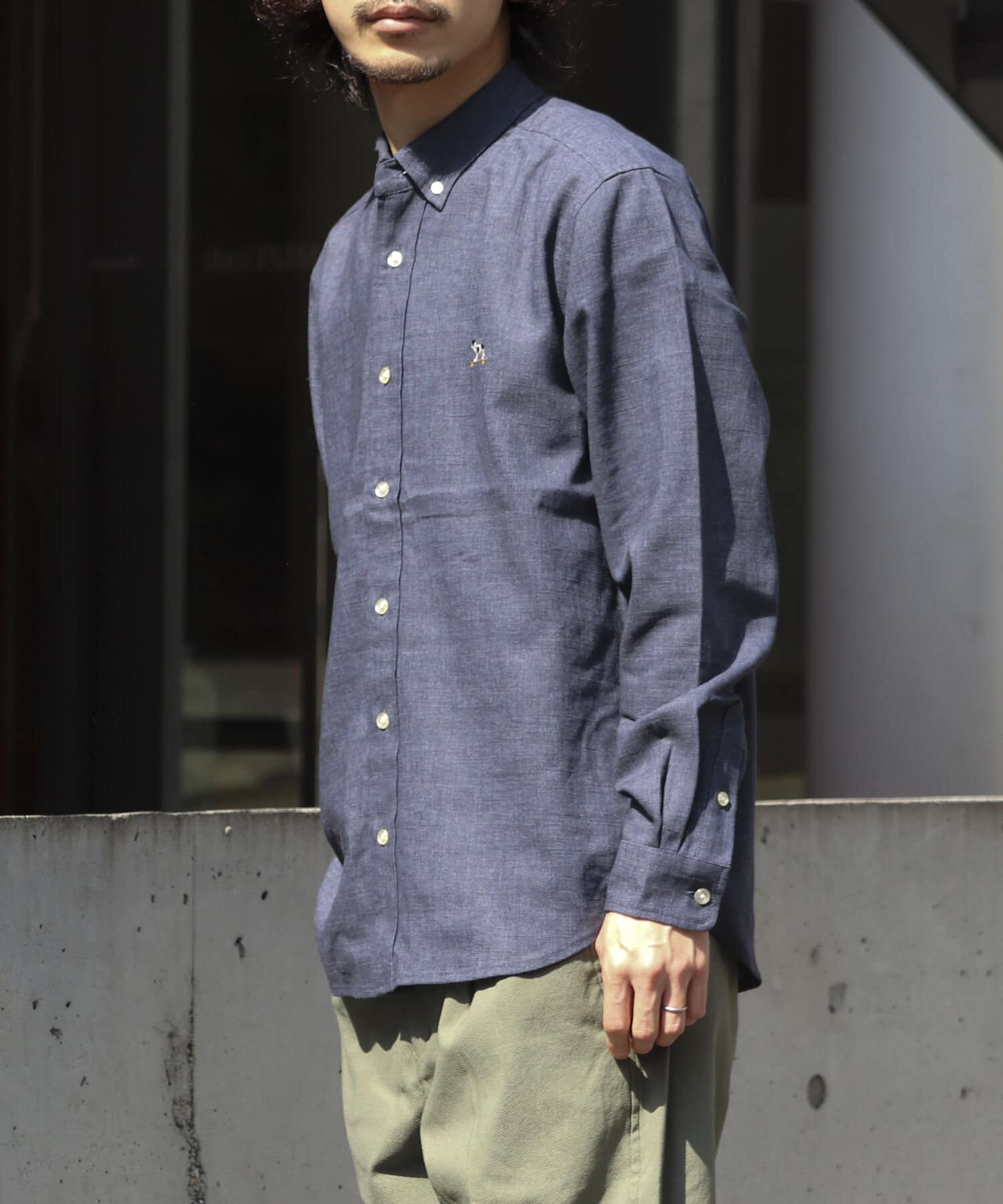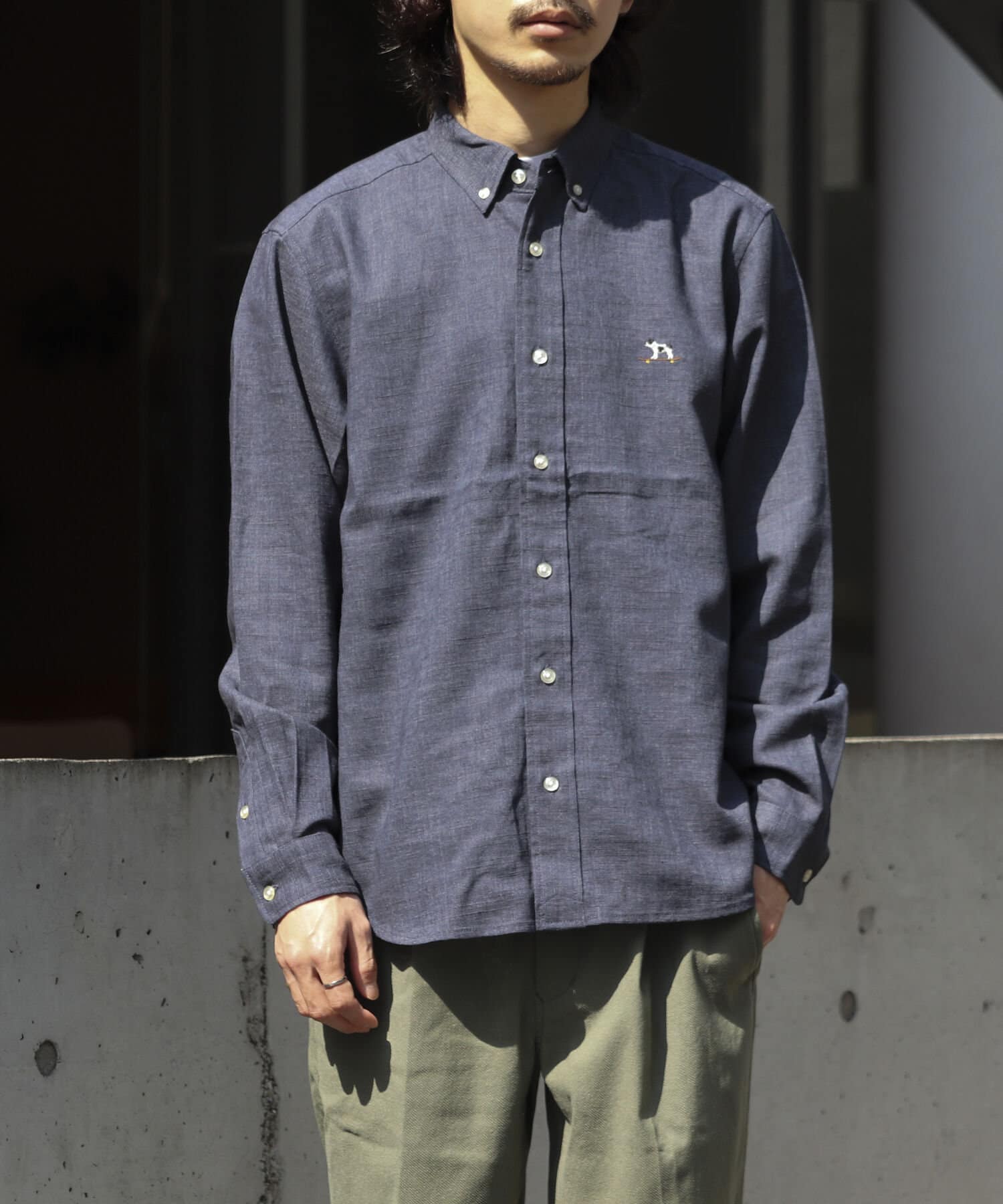 【GLOSTER】フレンチブルドッグ刺繍 ボタンダウンシャツ リネン混