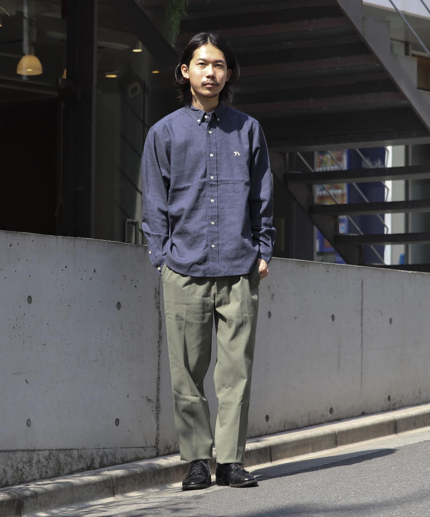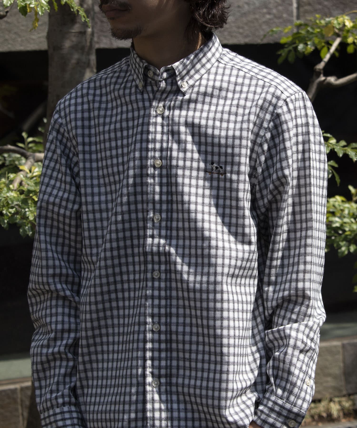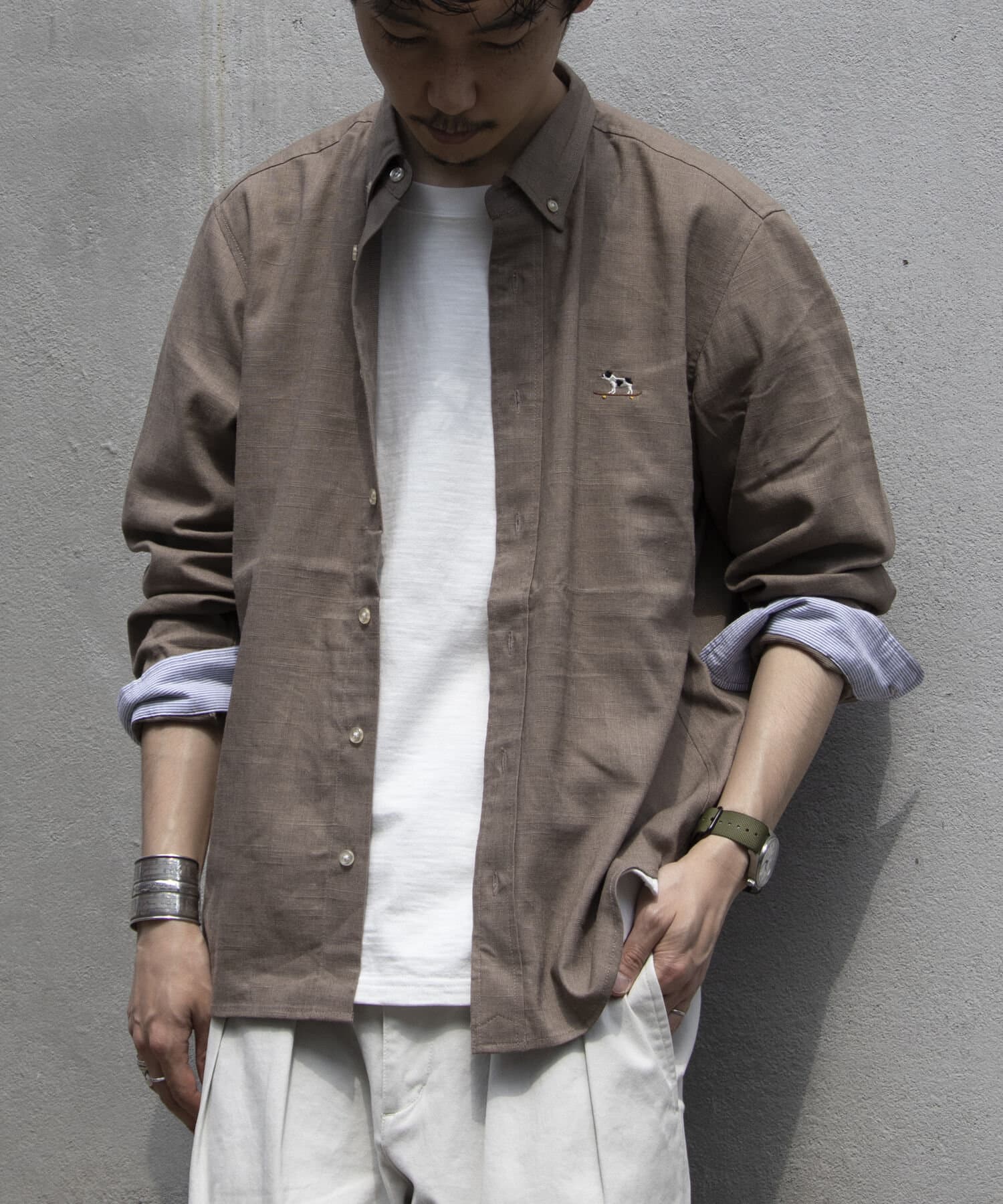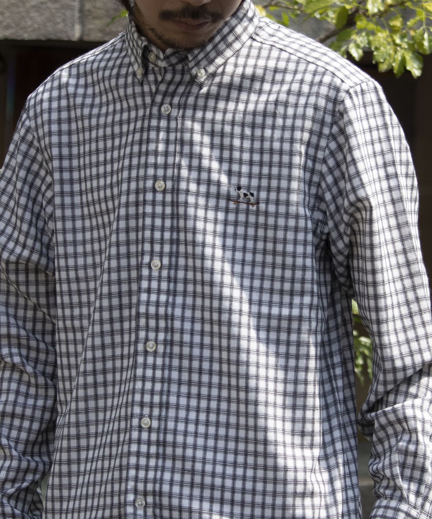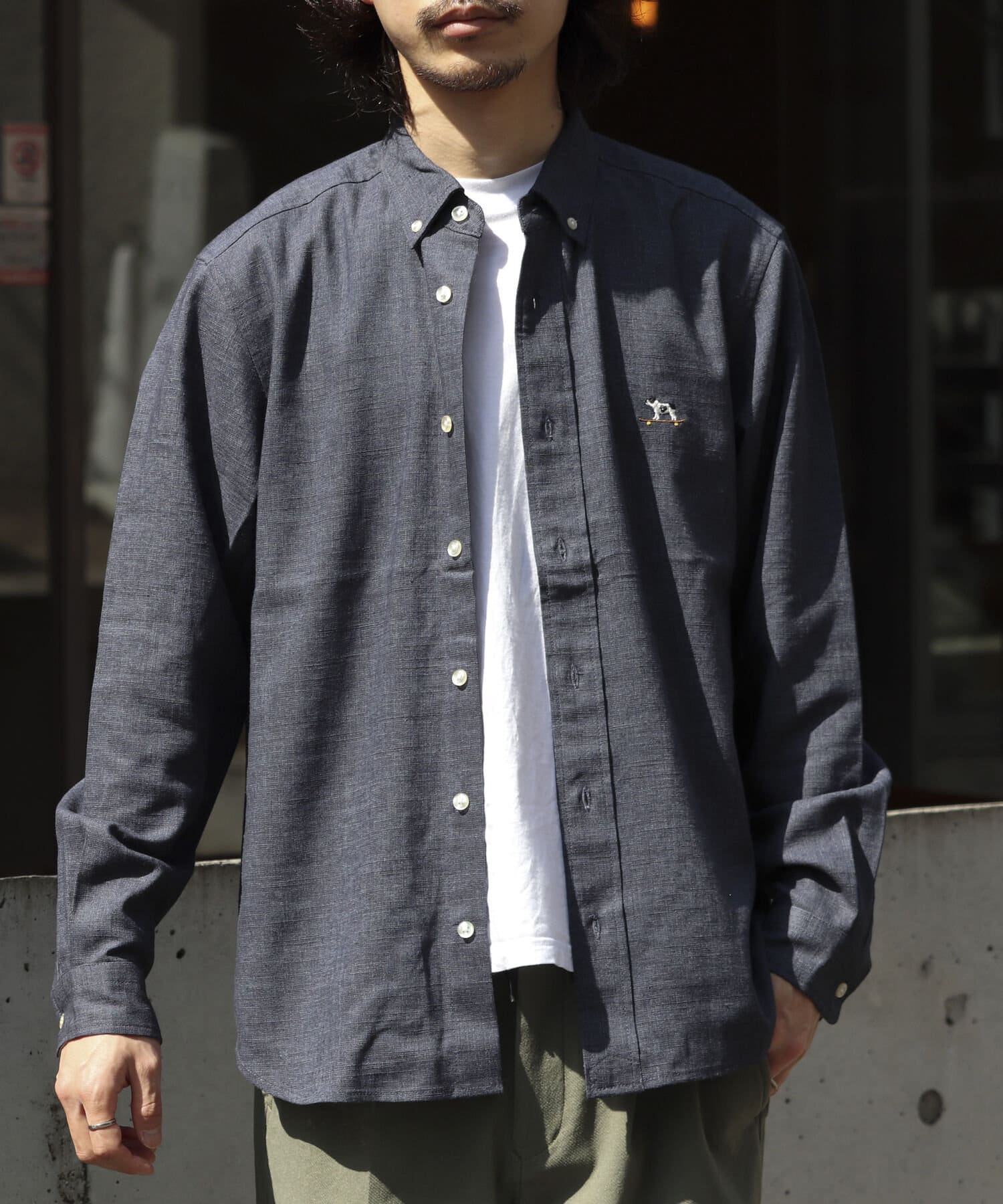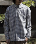 【GLOSTER】フレンチブルドッグ刺繍 ボタンダウンシャツ リネン混