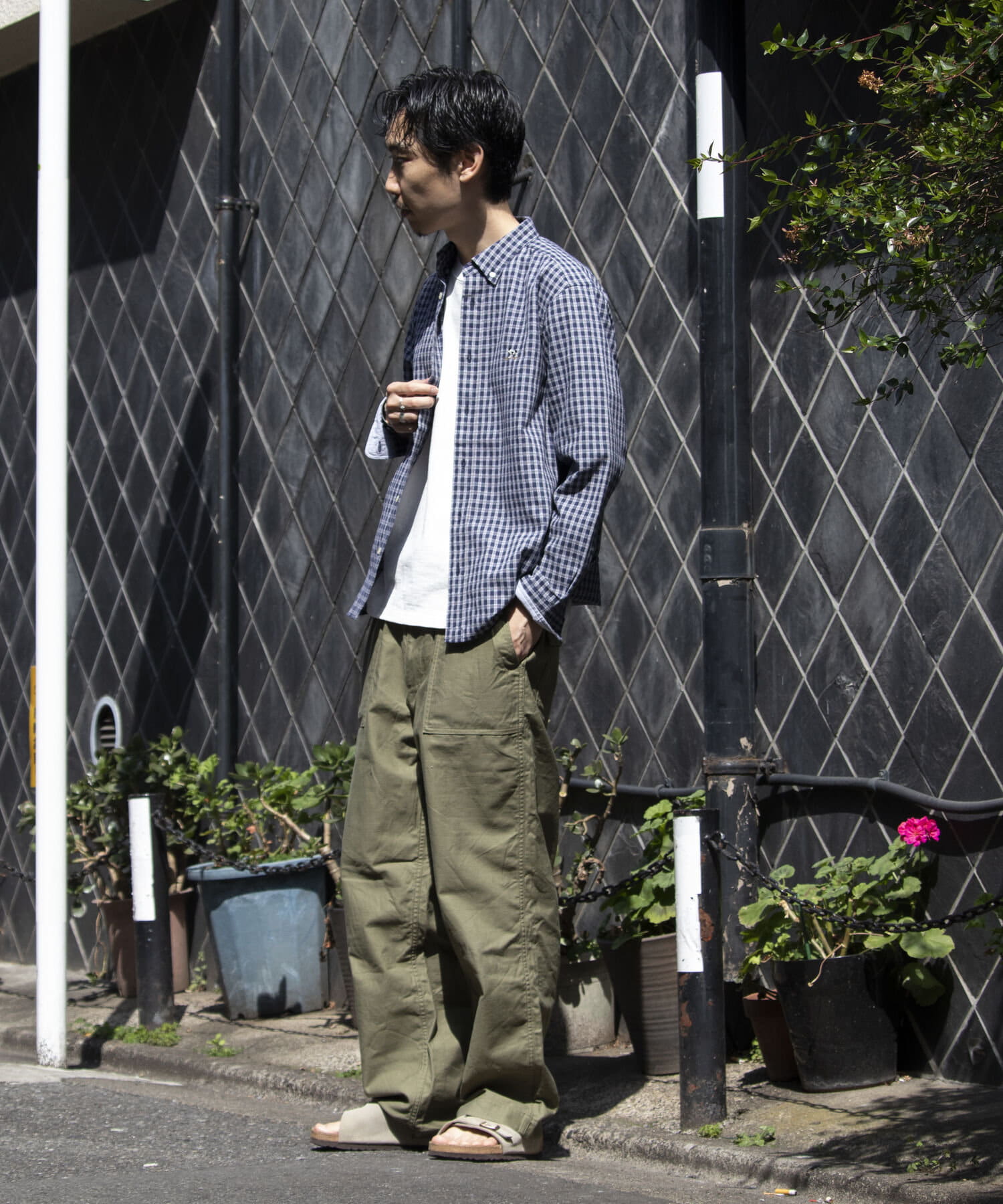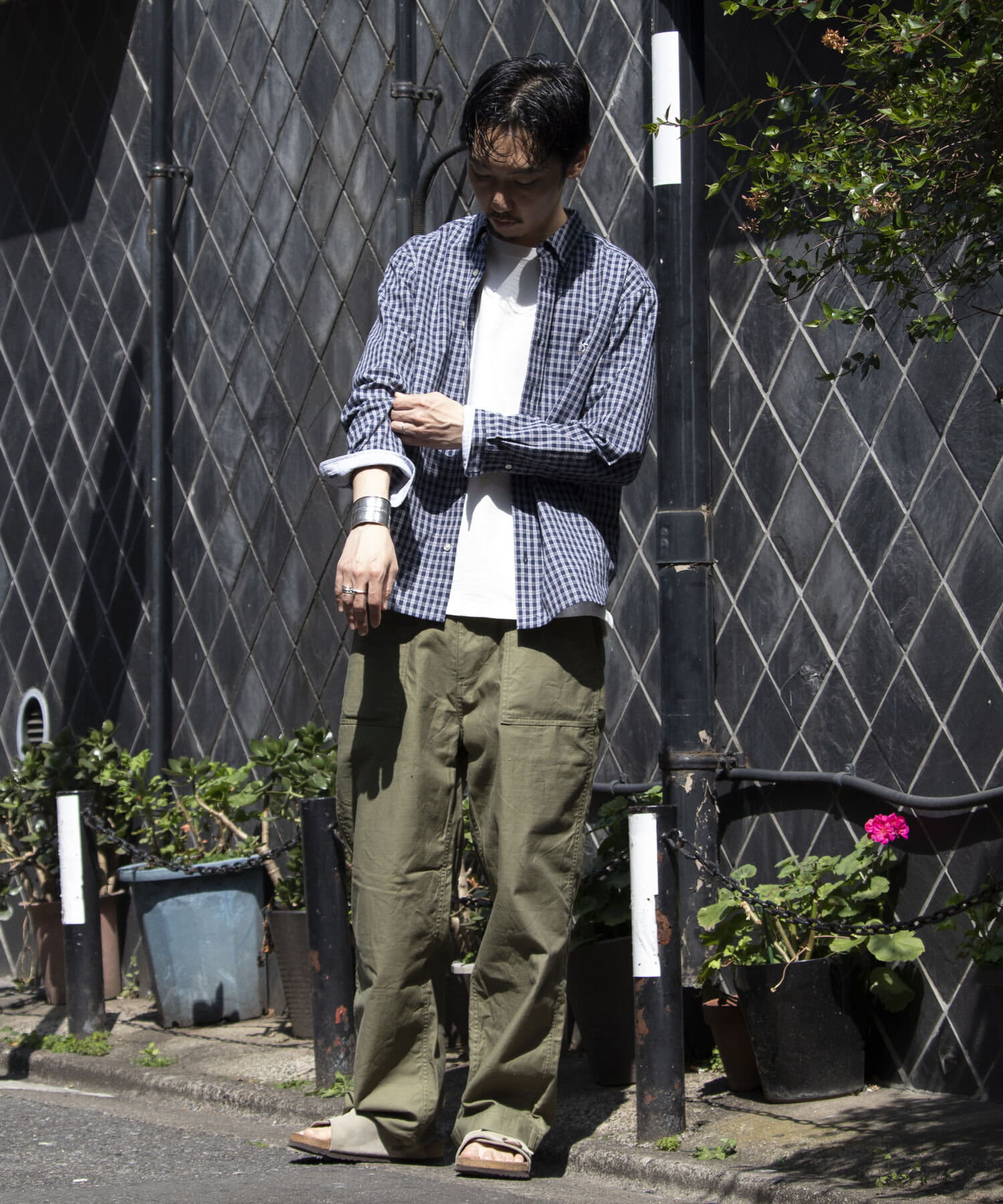 普遍的な洋服の礎であるワーク・ミリタリーをベースにエッセンスとして艶を加えて形にします。