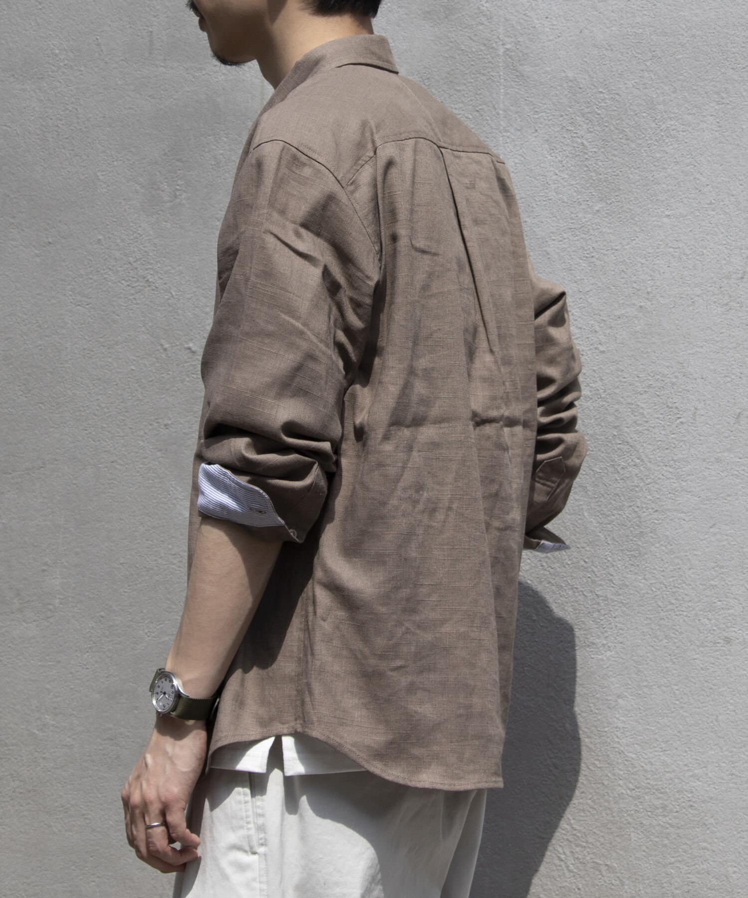 春夏に活躍間違いなしのボタンダウン仕様のリネン混の登場です。