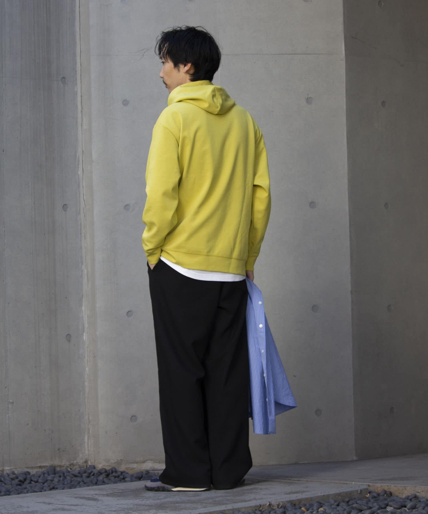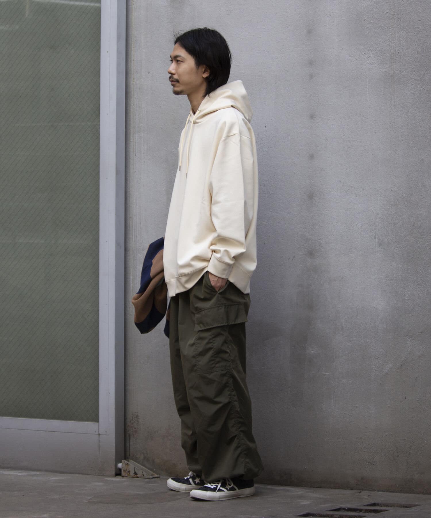適度なドロップショルダーと袖丈に合わせて、身幅と着丈のバランスを絶妙に調整しました。