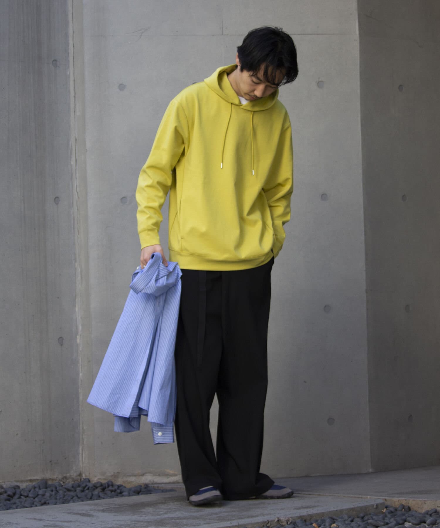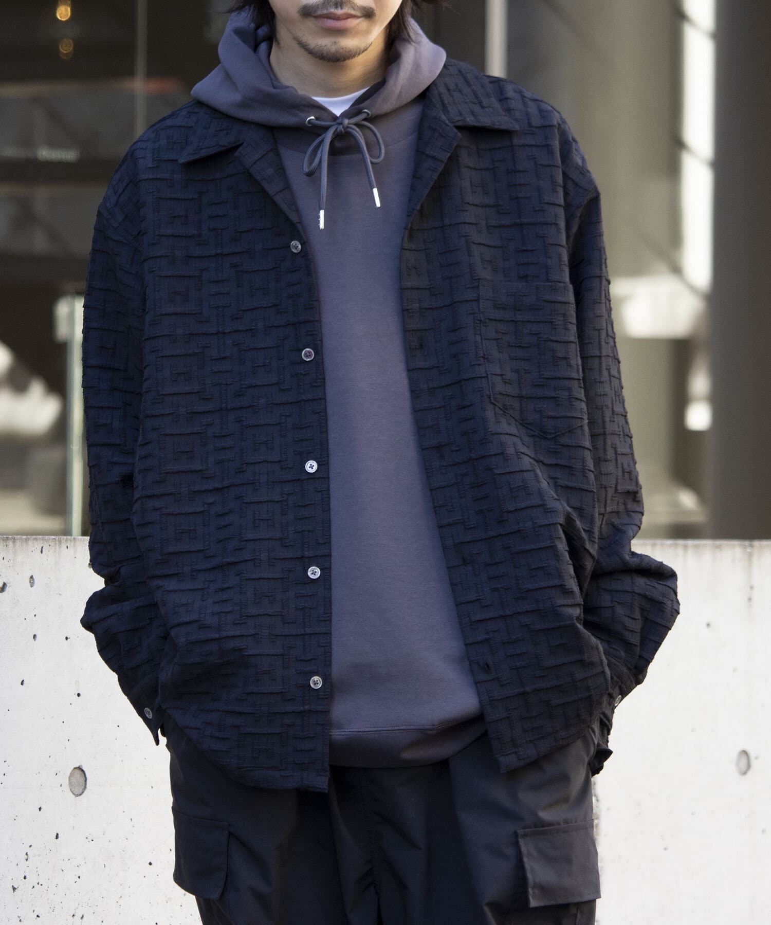 ダンボールニットは本来ボリュームが出過ぎる生地ですが、春夏シーズン向けに軽量化し、しなやかながらもシルエットが崩れにくい仕様にアップデート。