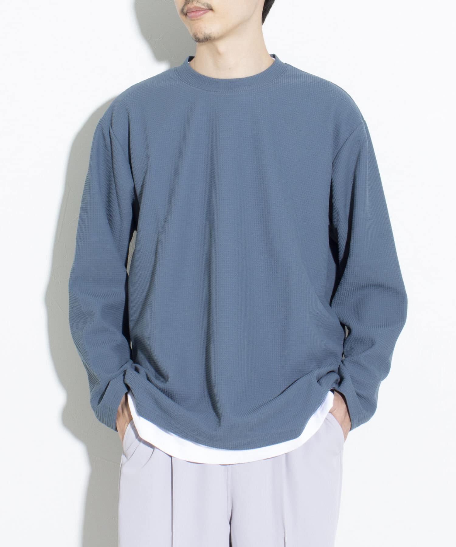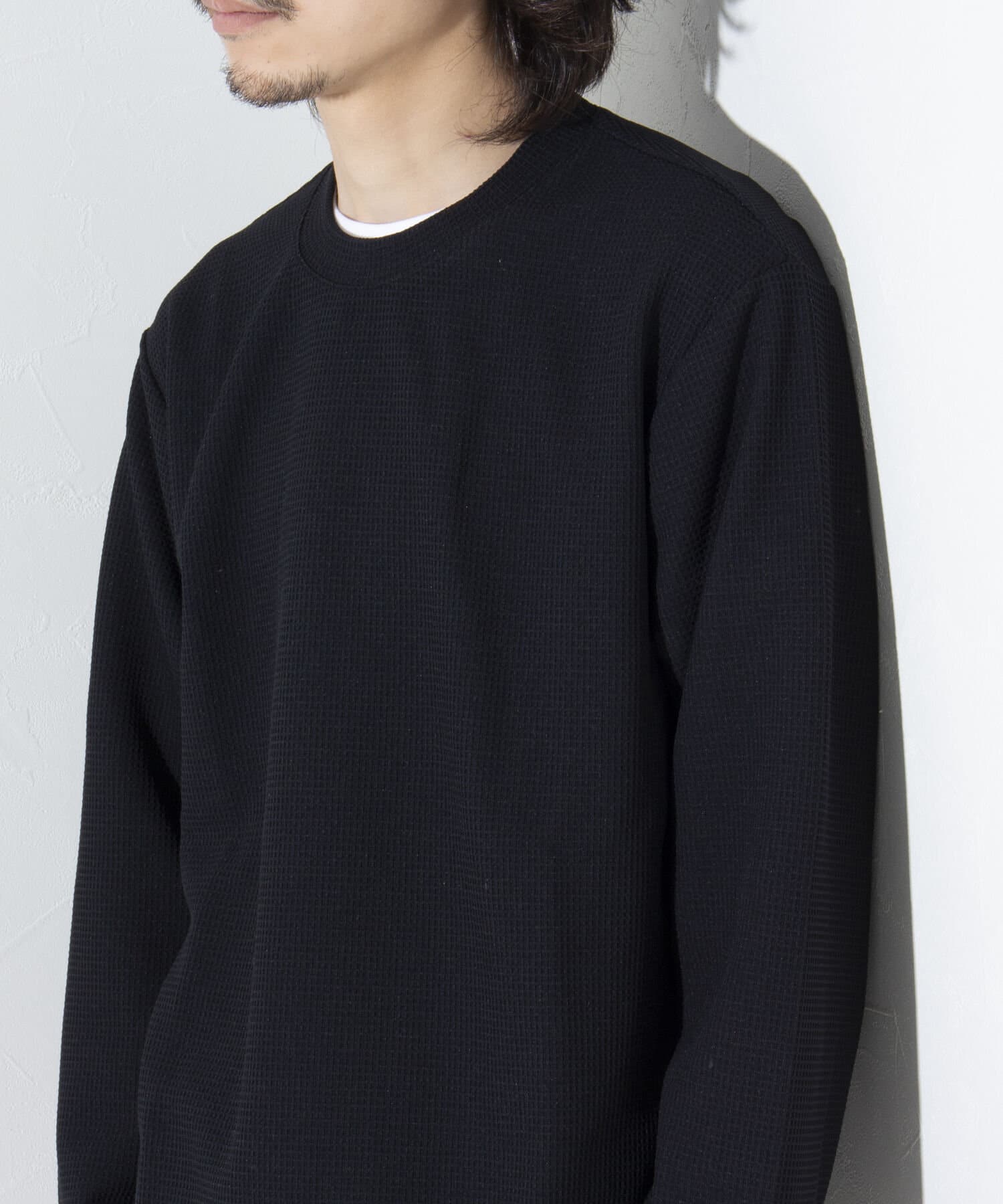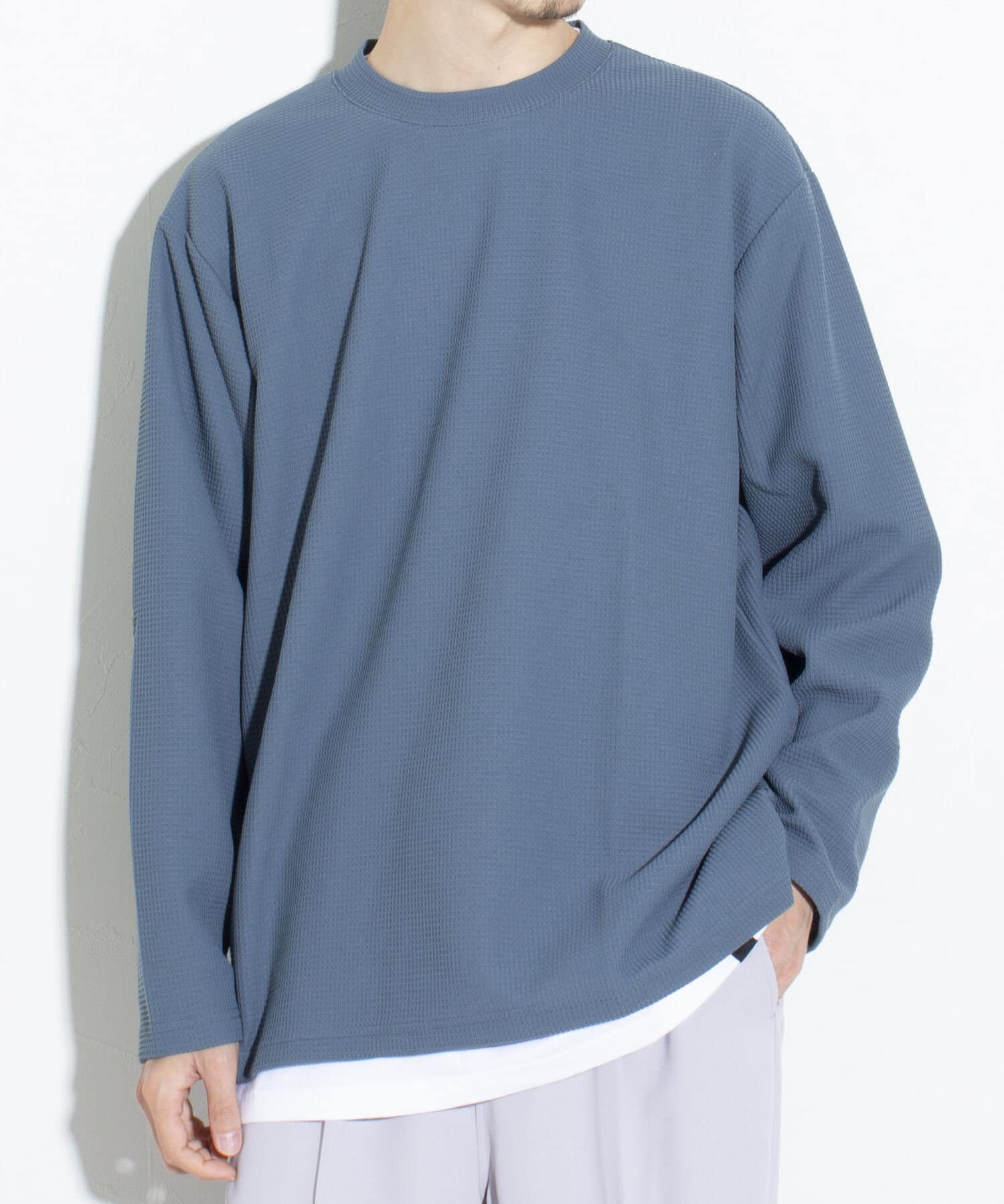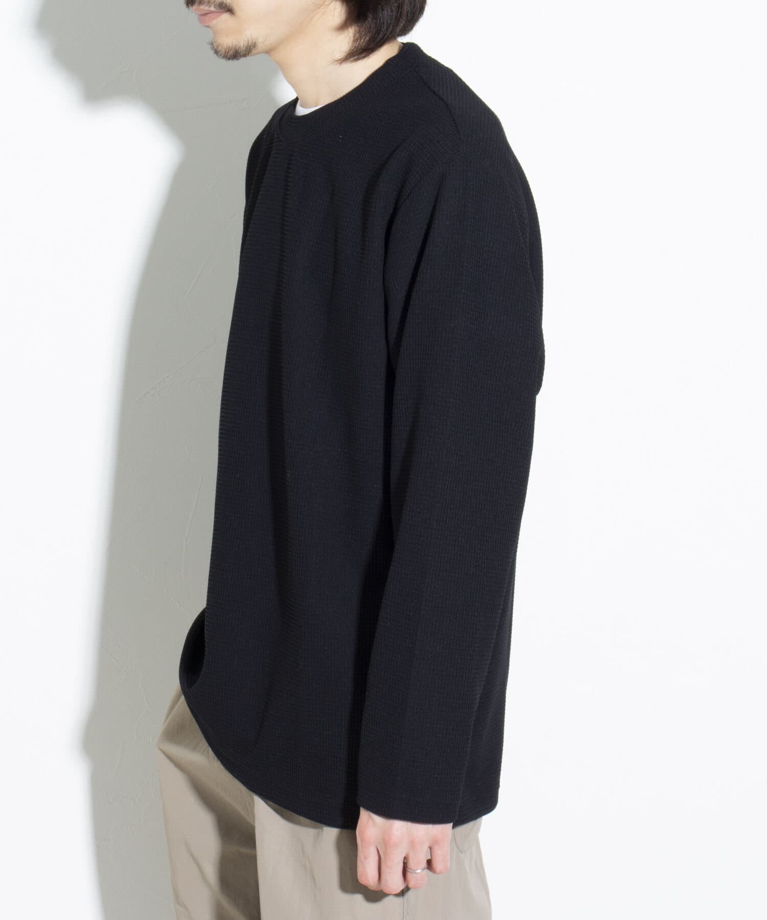 機能性抜群の生地を使ったTシャツ付きのクルーネックワッフルロンT