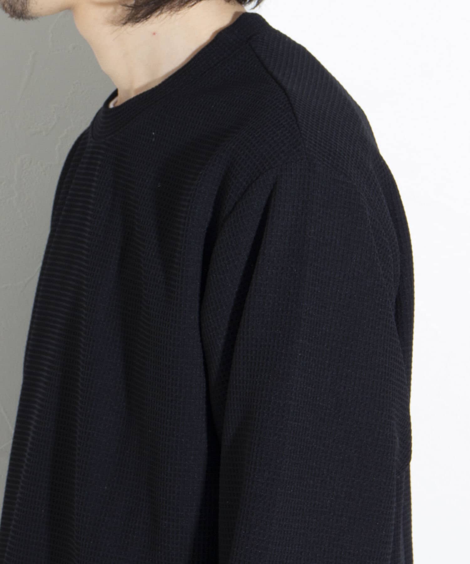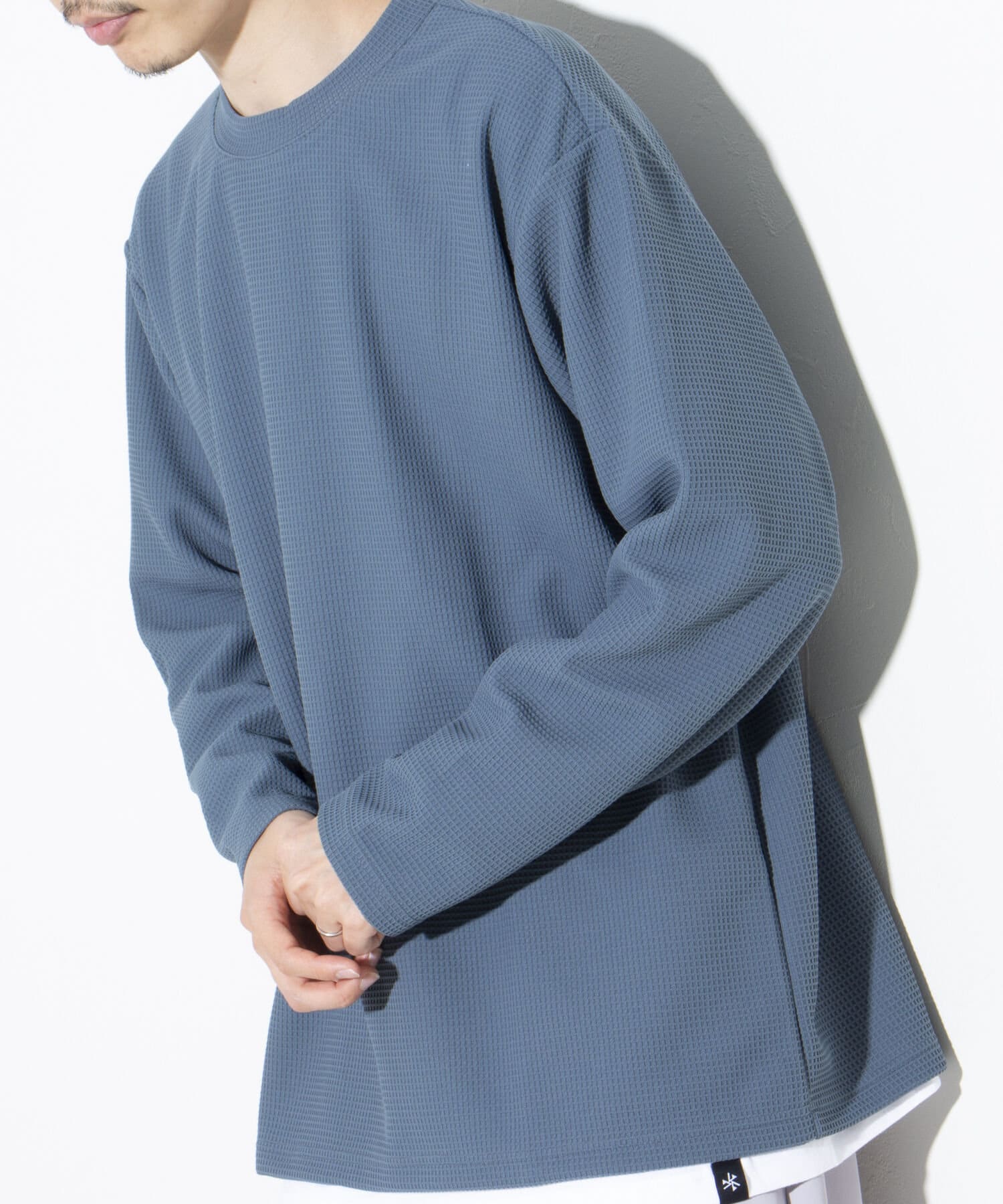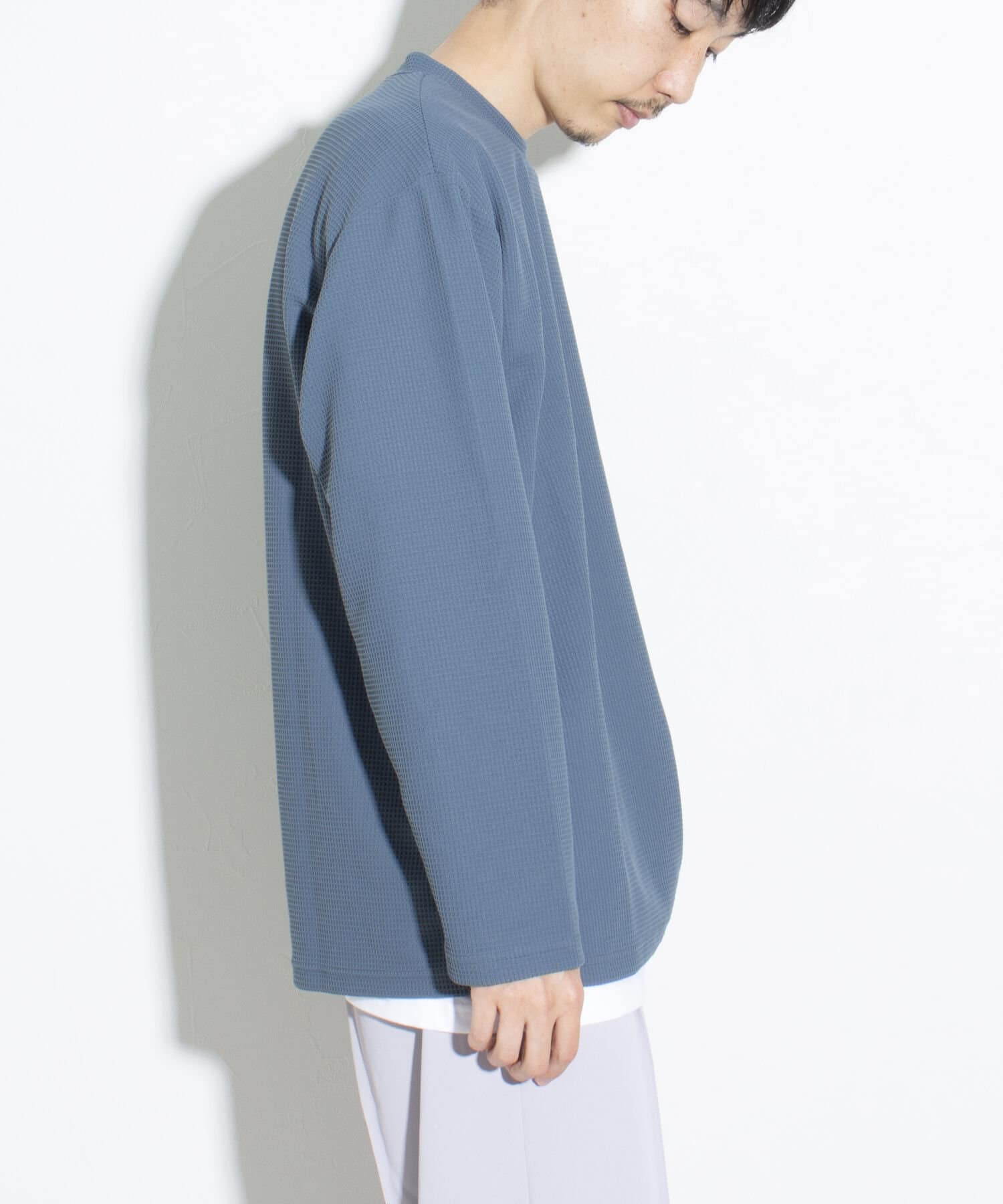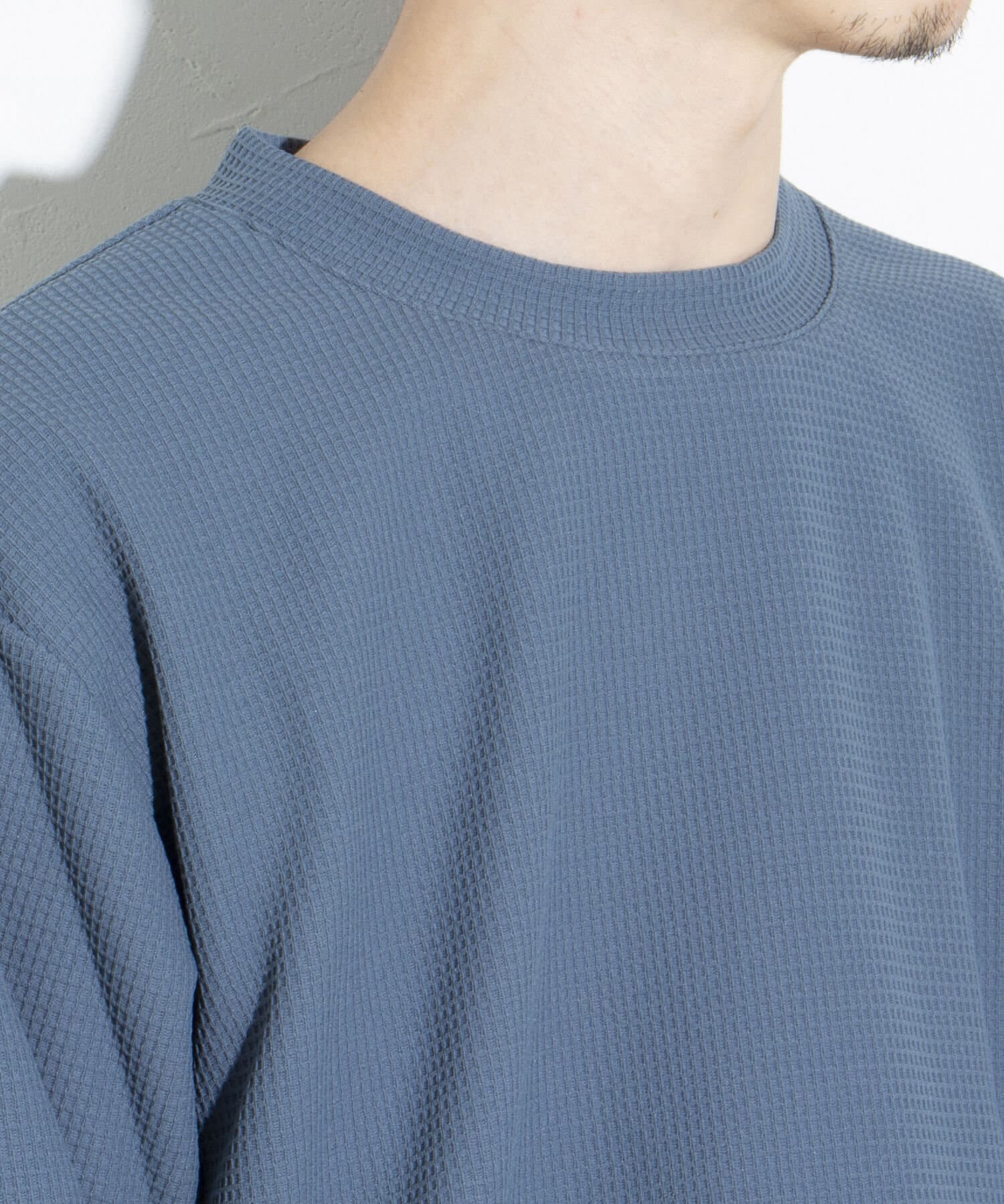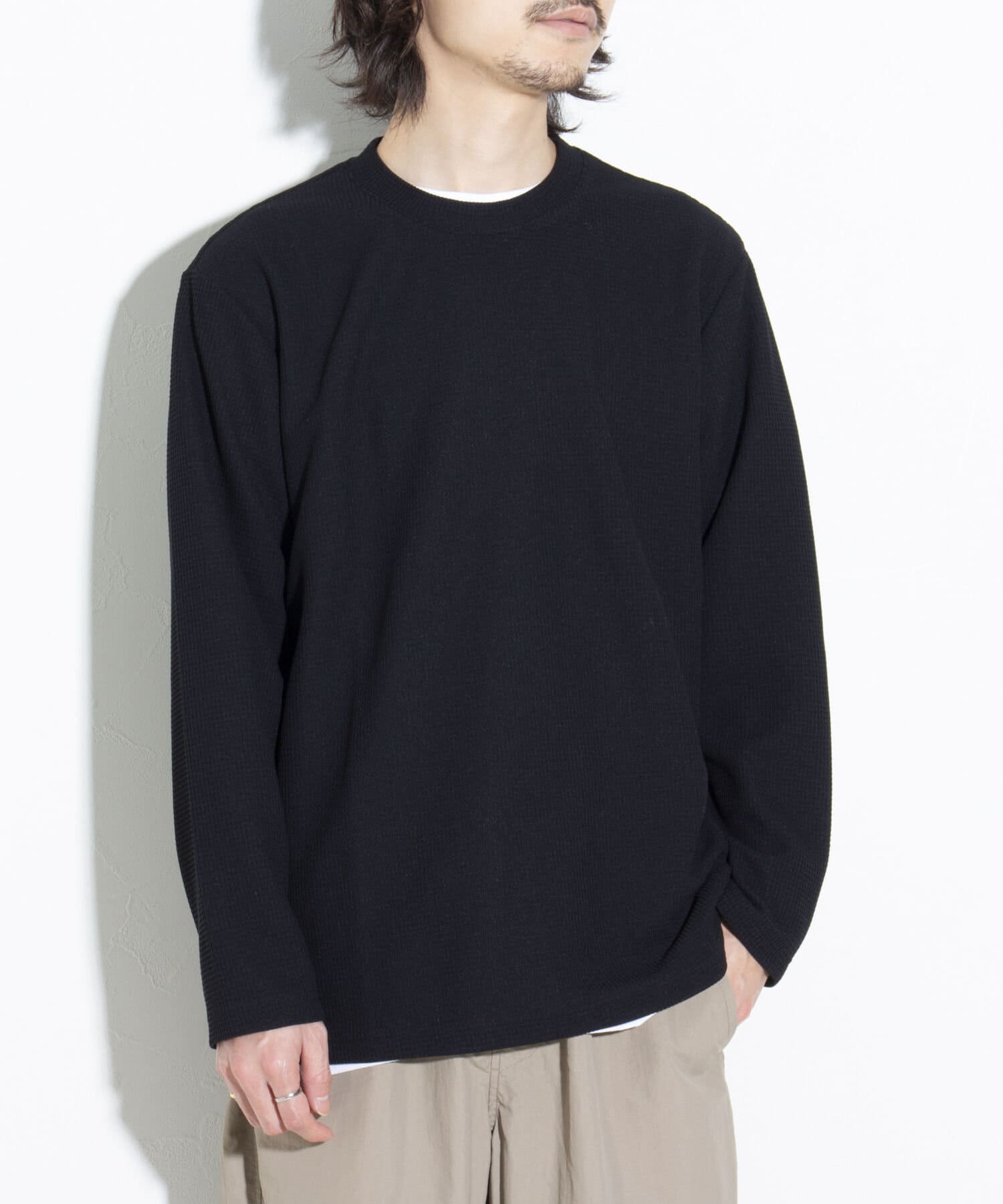 機能性抜群の生地を使ったTシャツ付きのクルーネックワッフルロンT