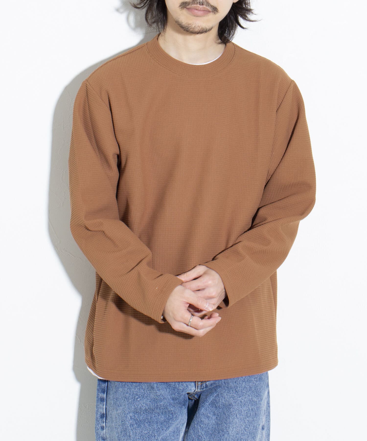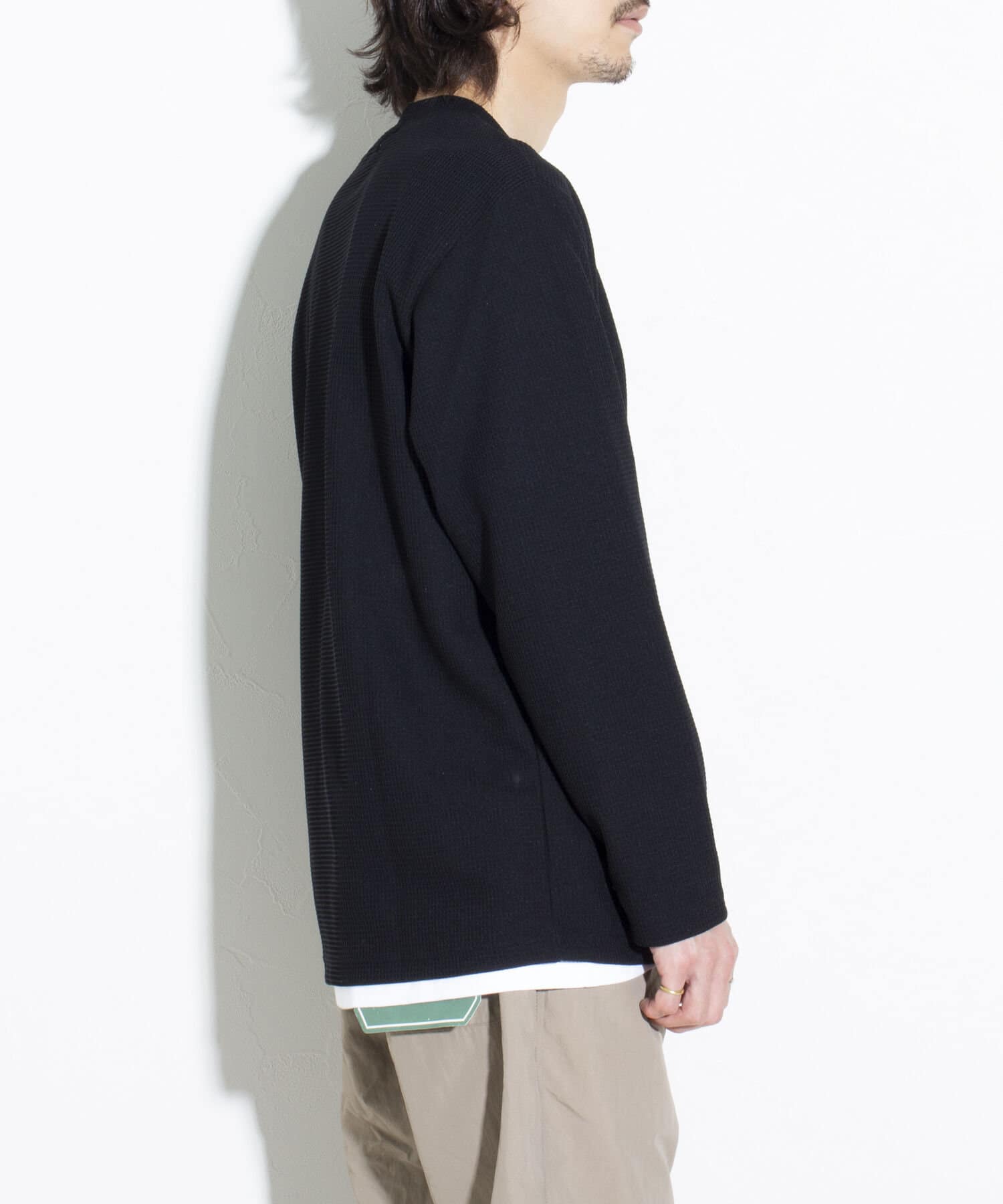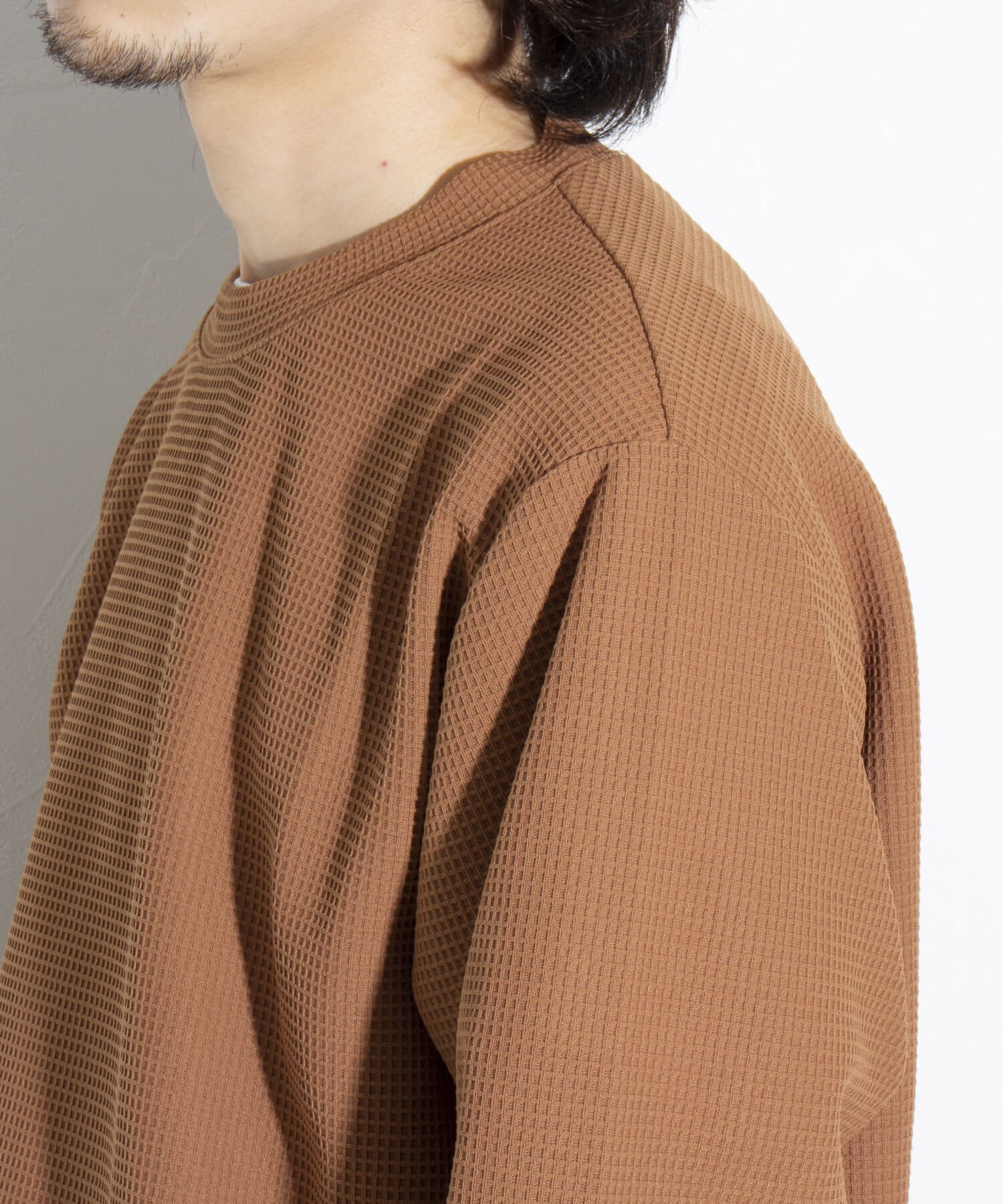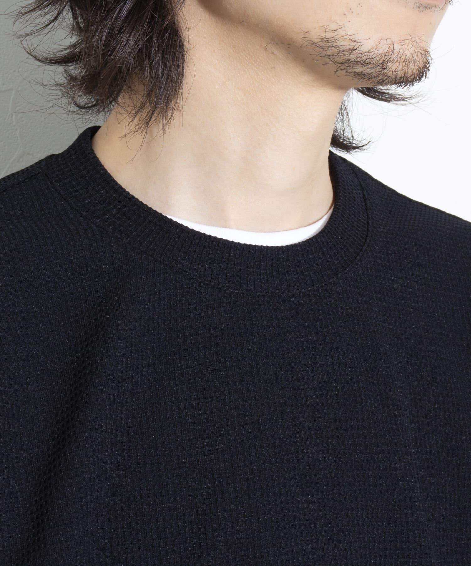 機能性抜群の生地を使ったTシャツ付きのクルーネックワッフルロンT