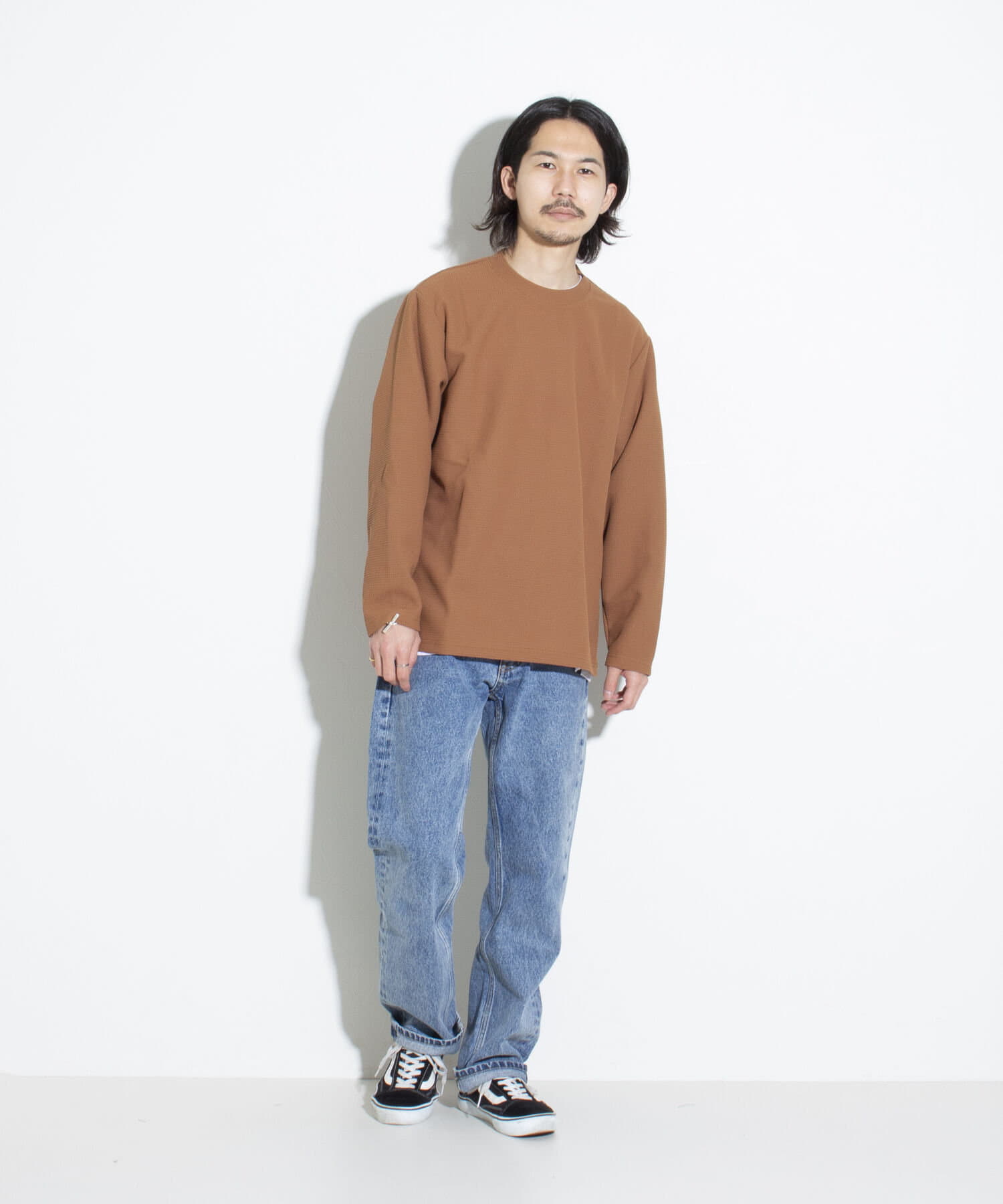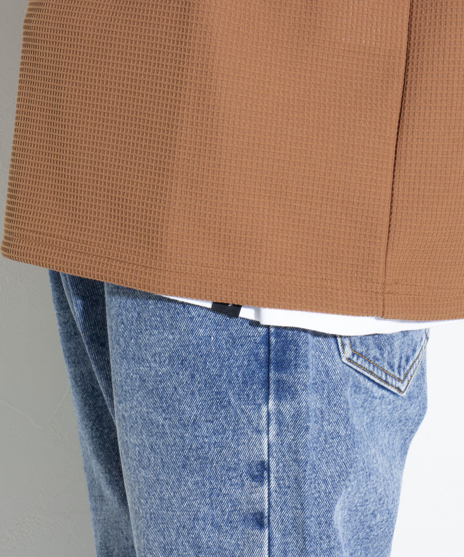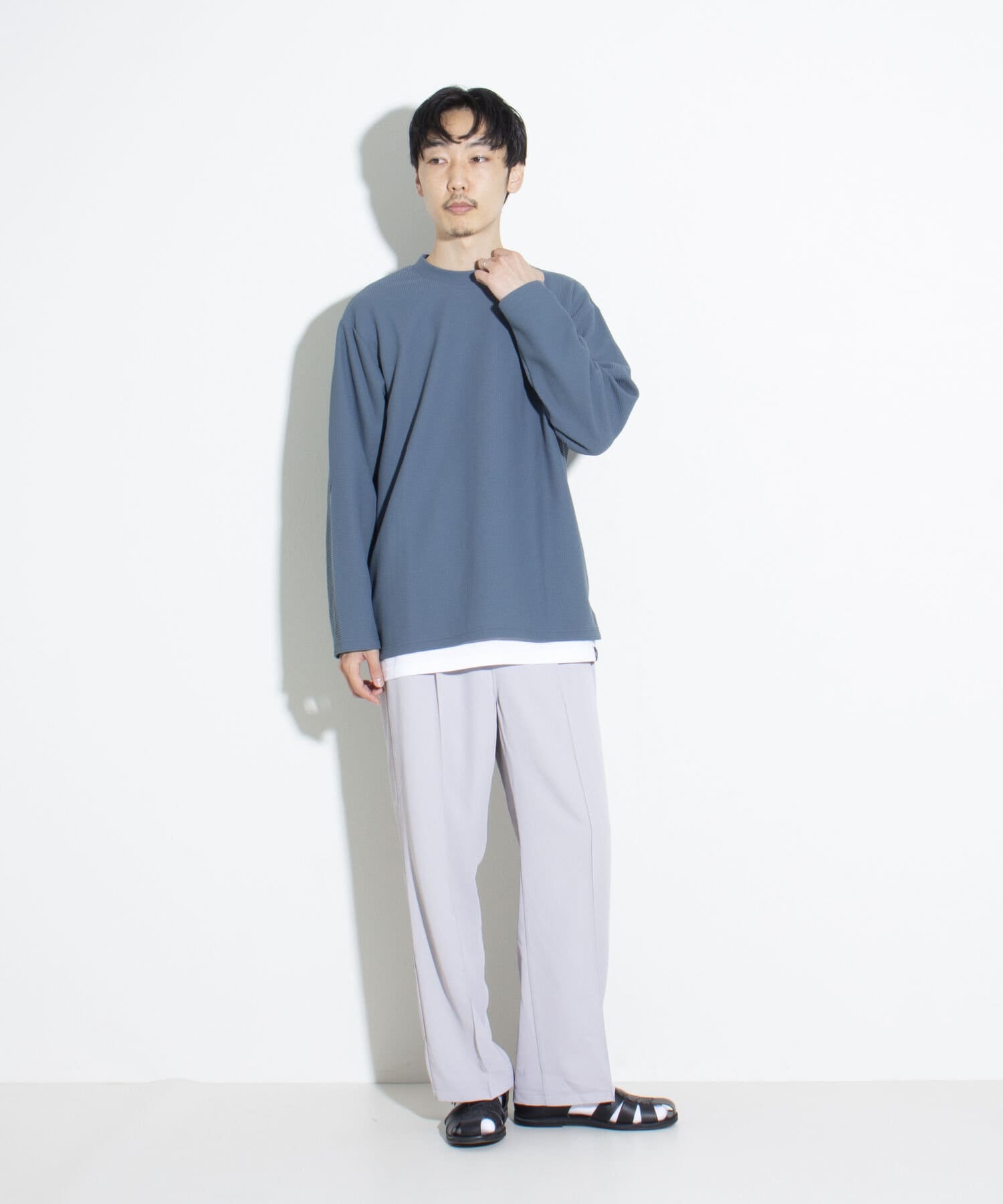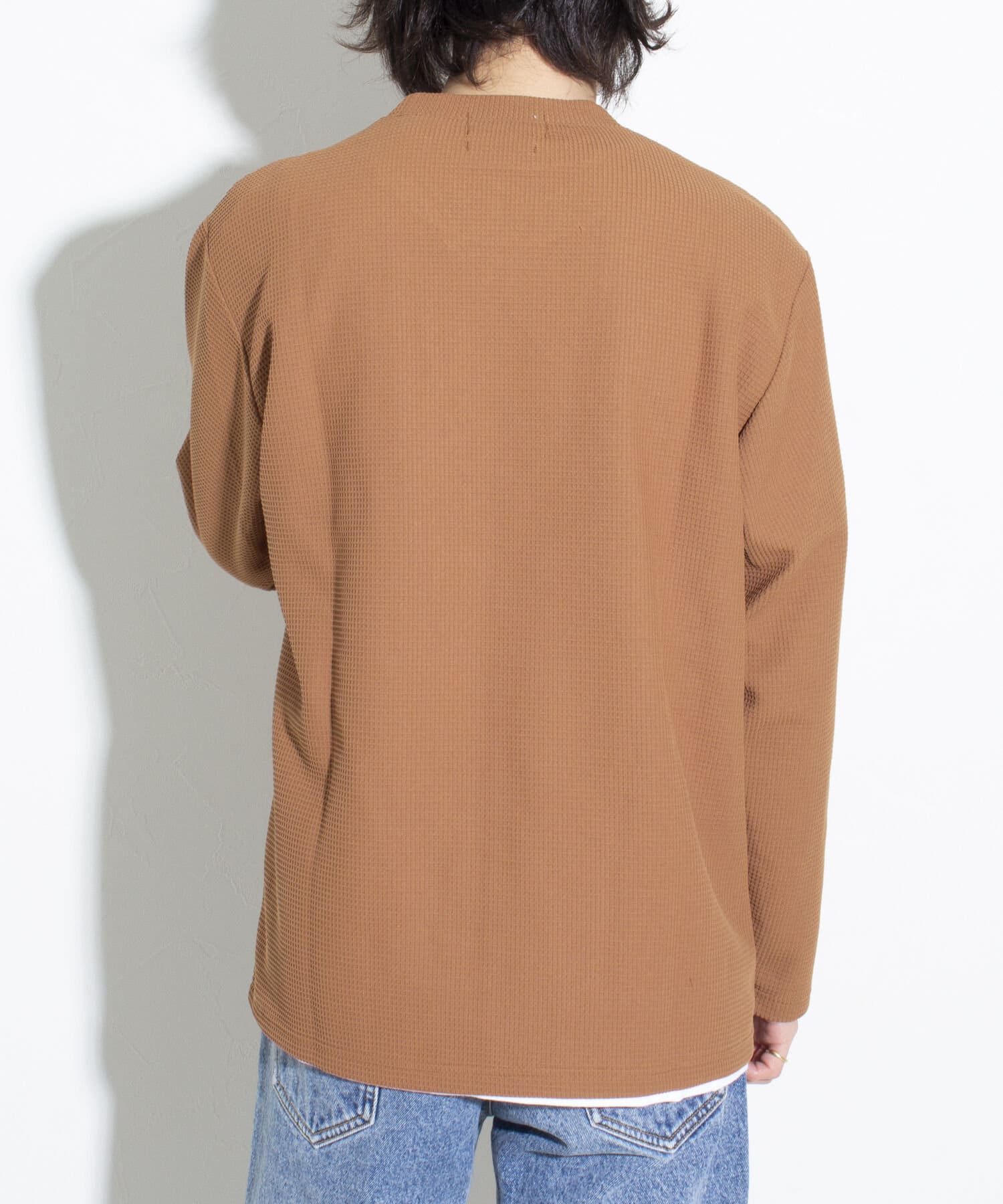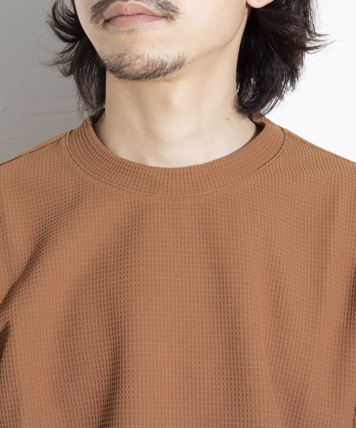 機能性抜群の生地を使ったTシャツ付きのクルーネックワッフルロンT