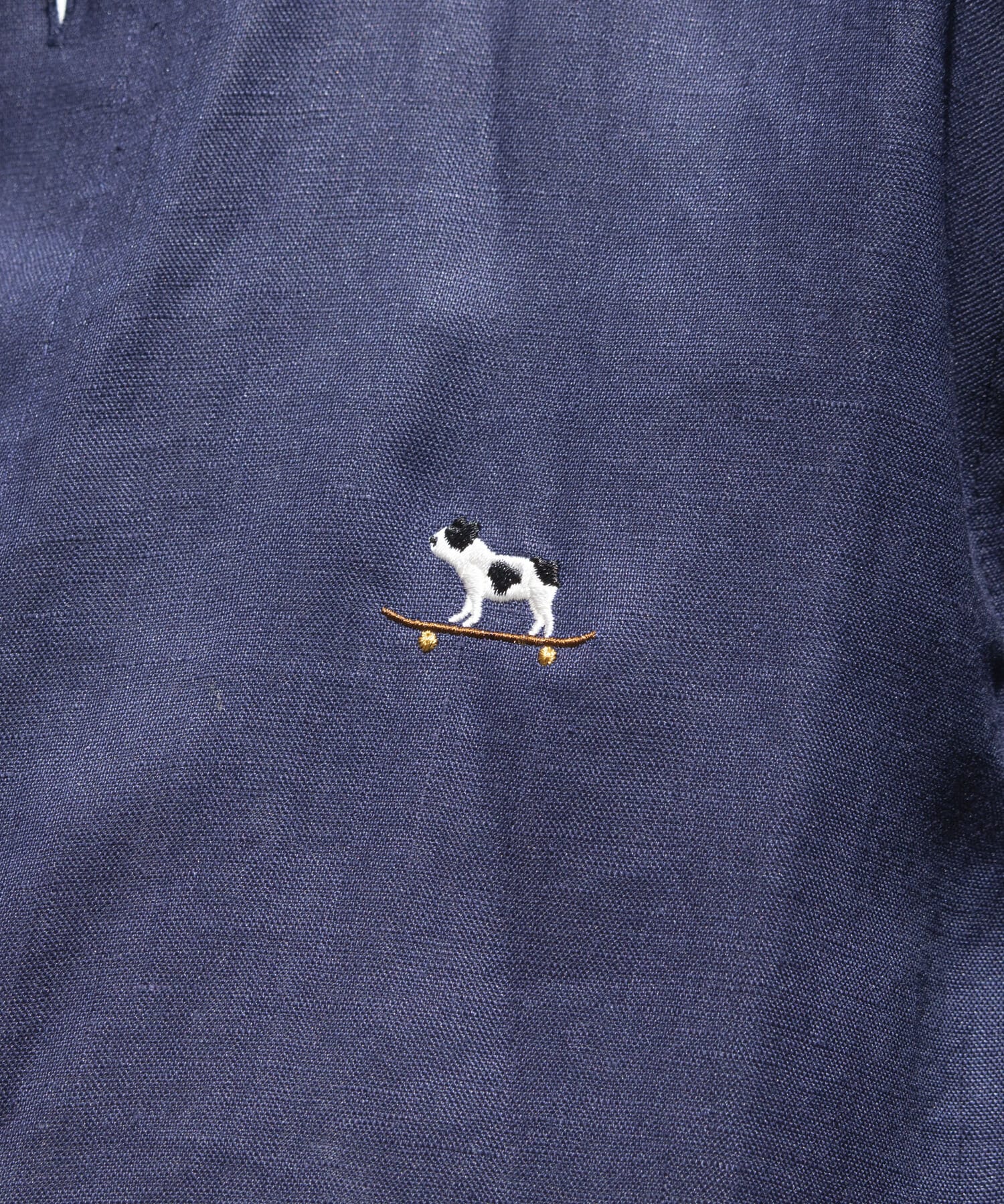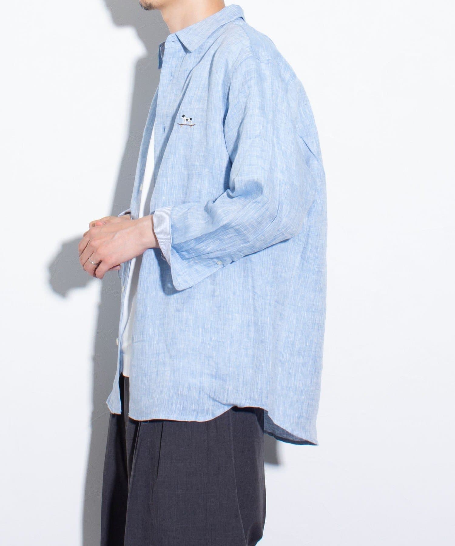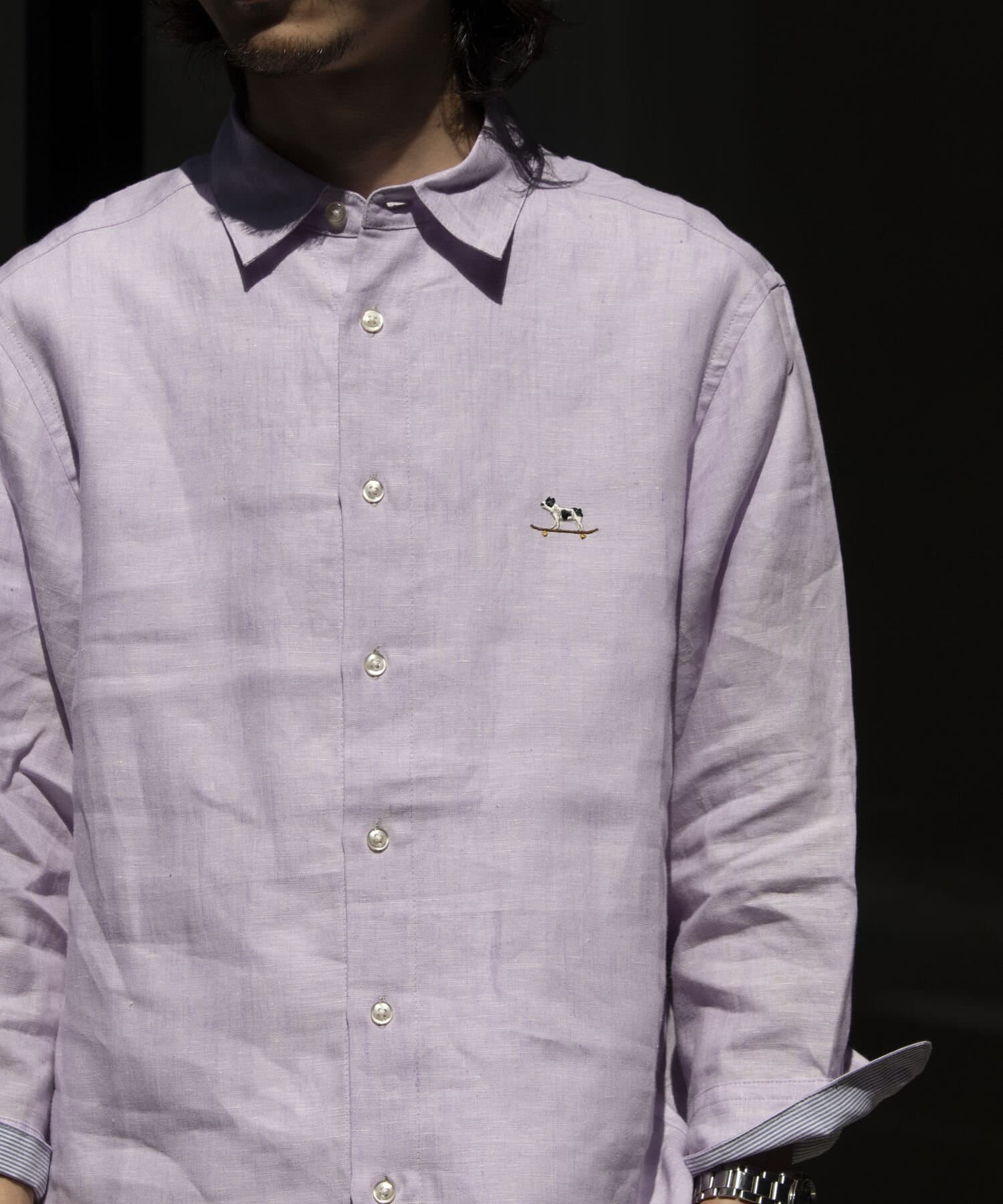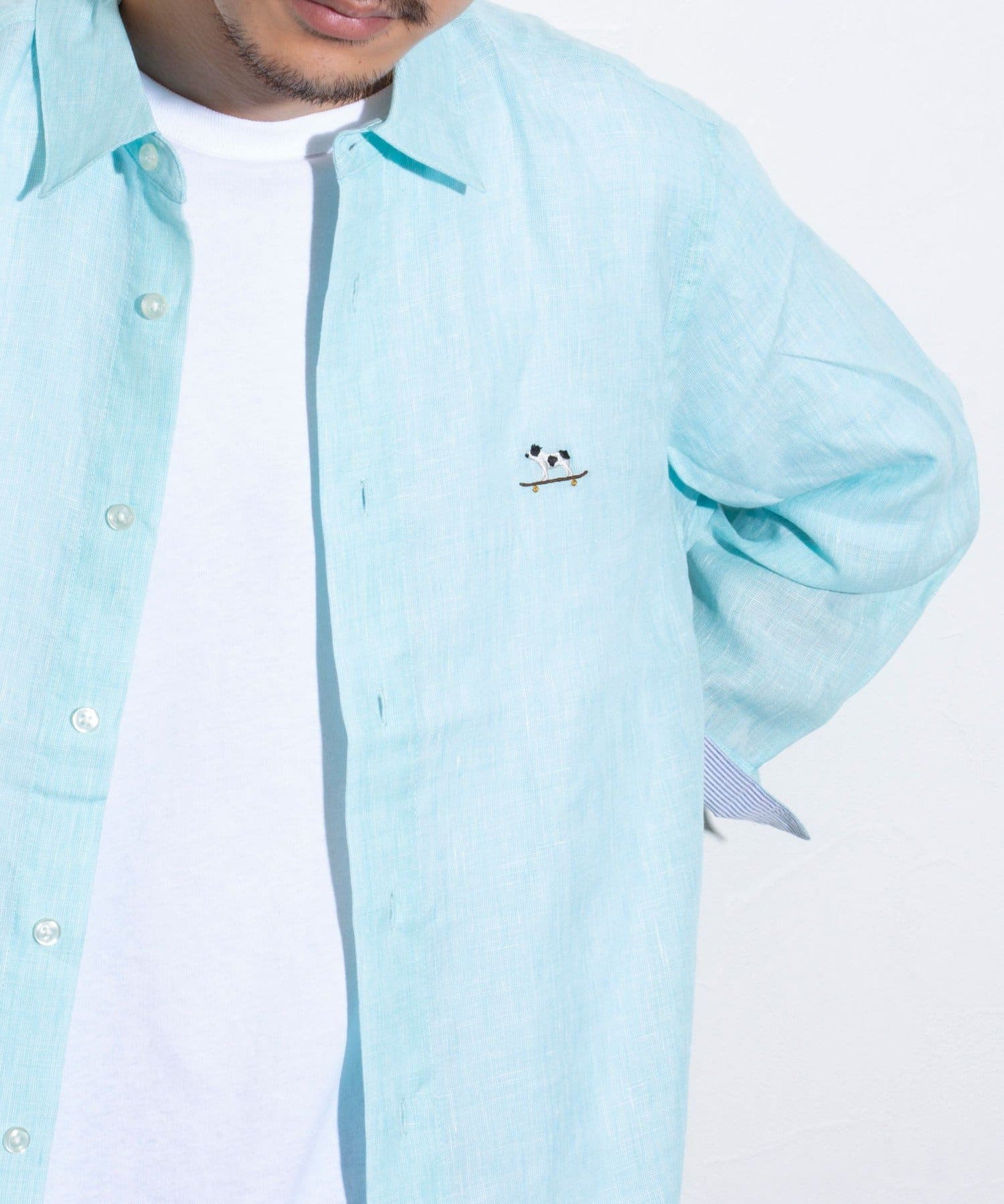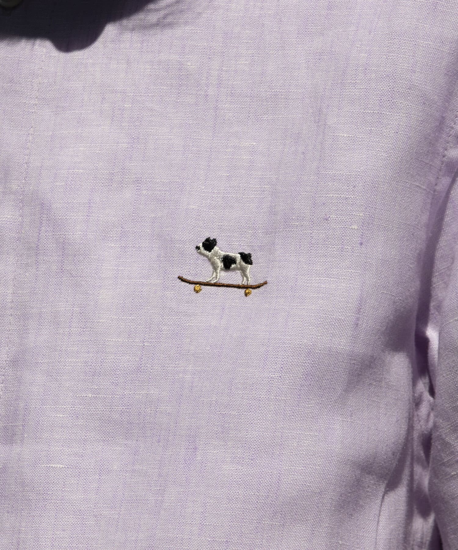 【GLOSTER】フレンチブルドッグ刺繍 レギュラーカラー7分袖リネンシャツ