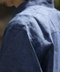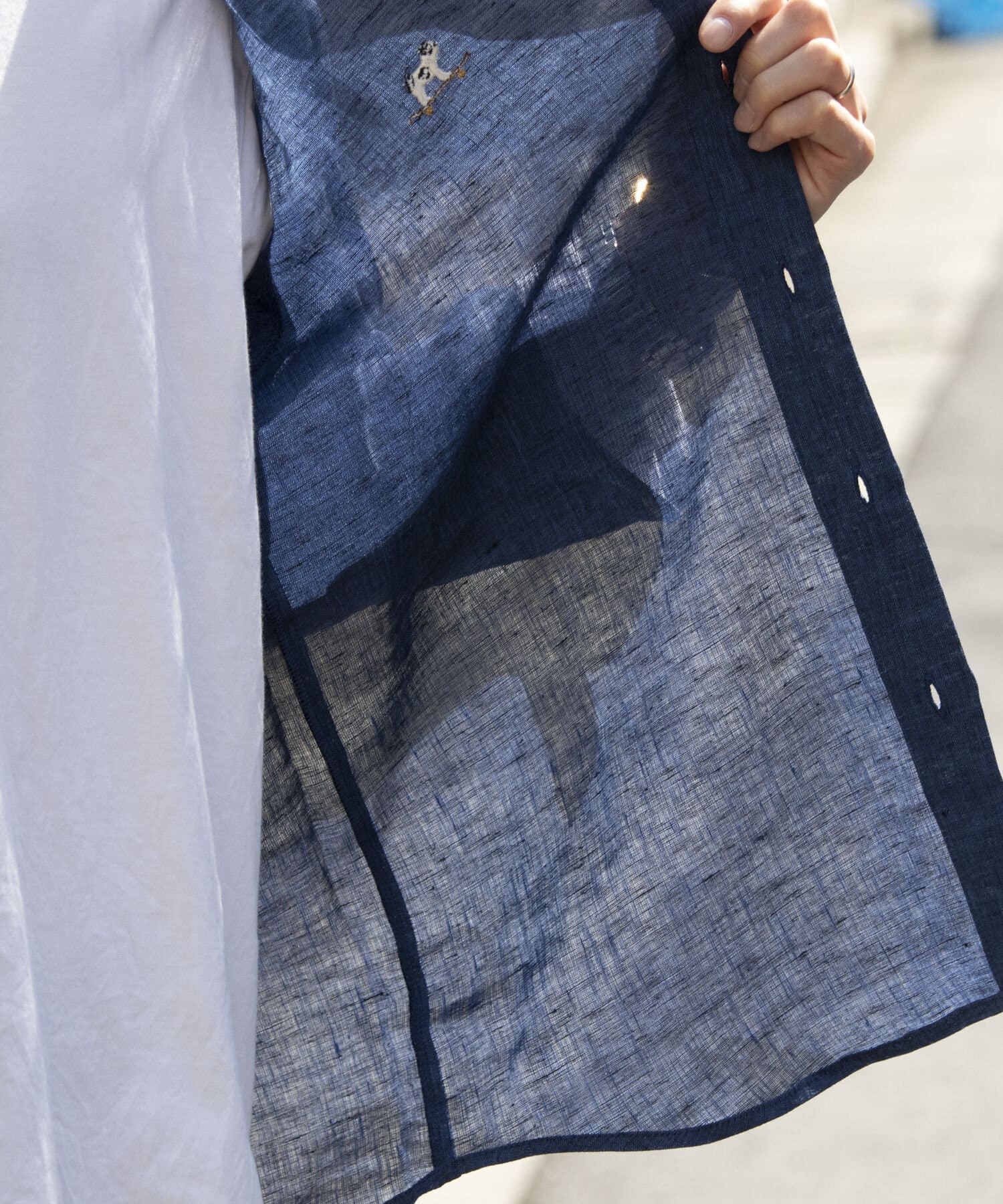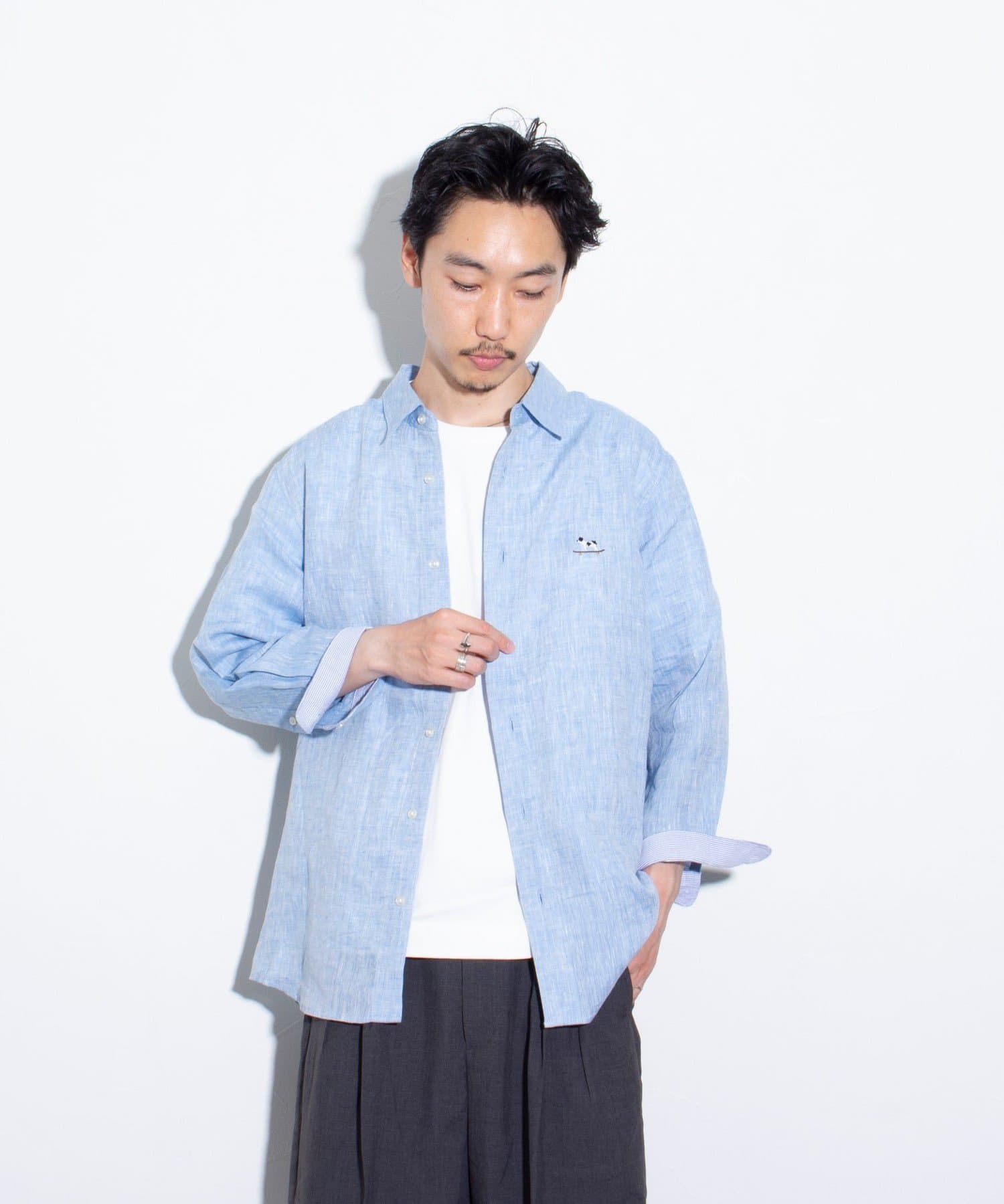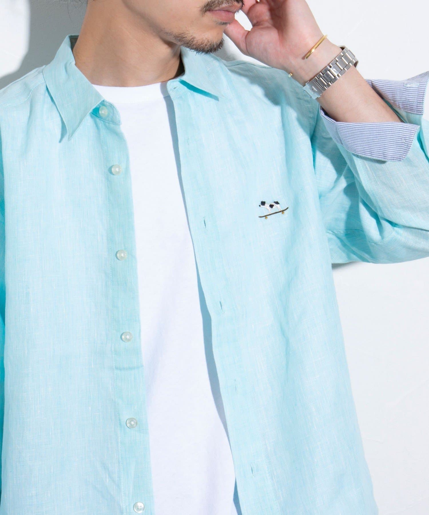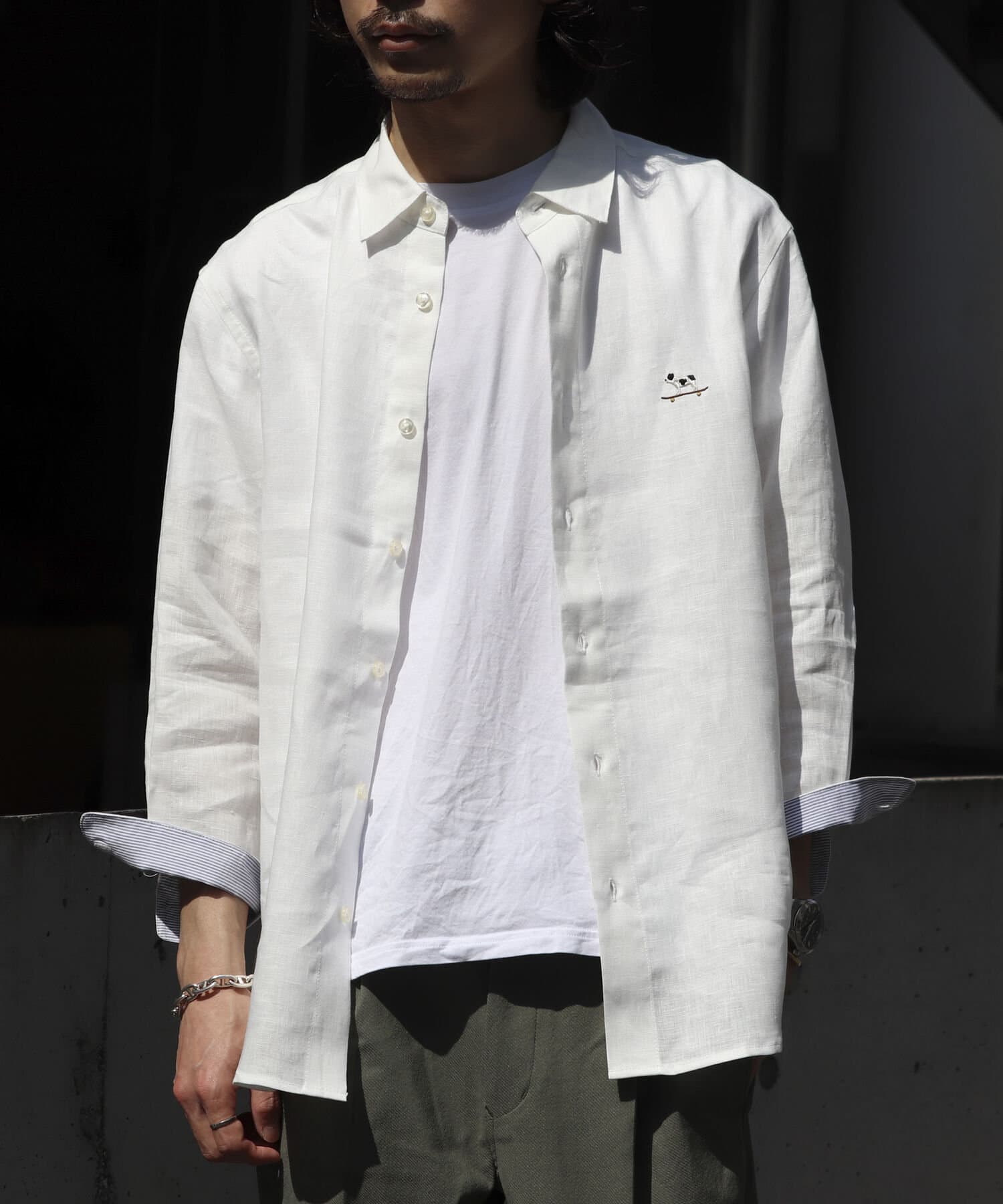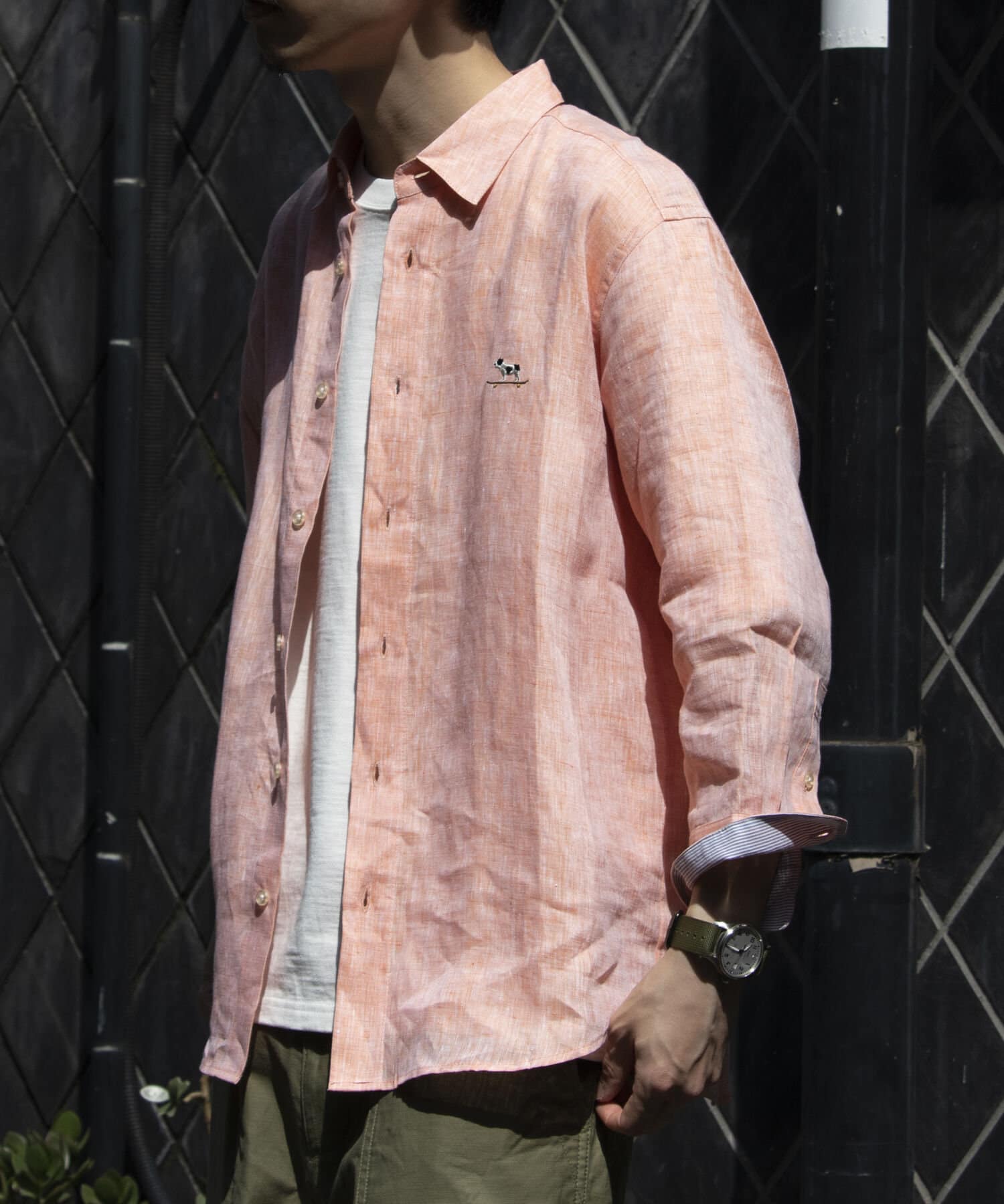 【GLOSTER】フレンチブルドッグ刺繍 レギュラーカラー7分袖リネンシャツ