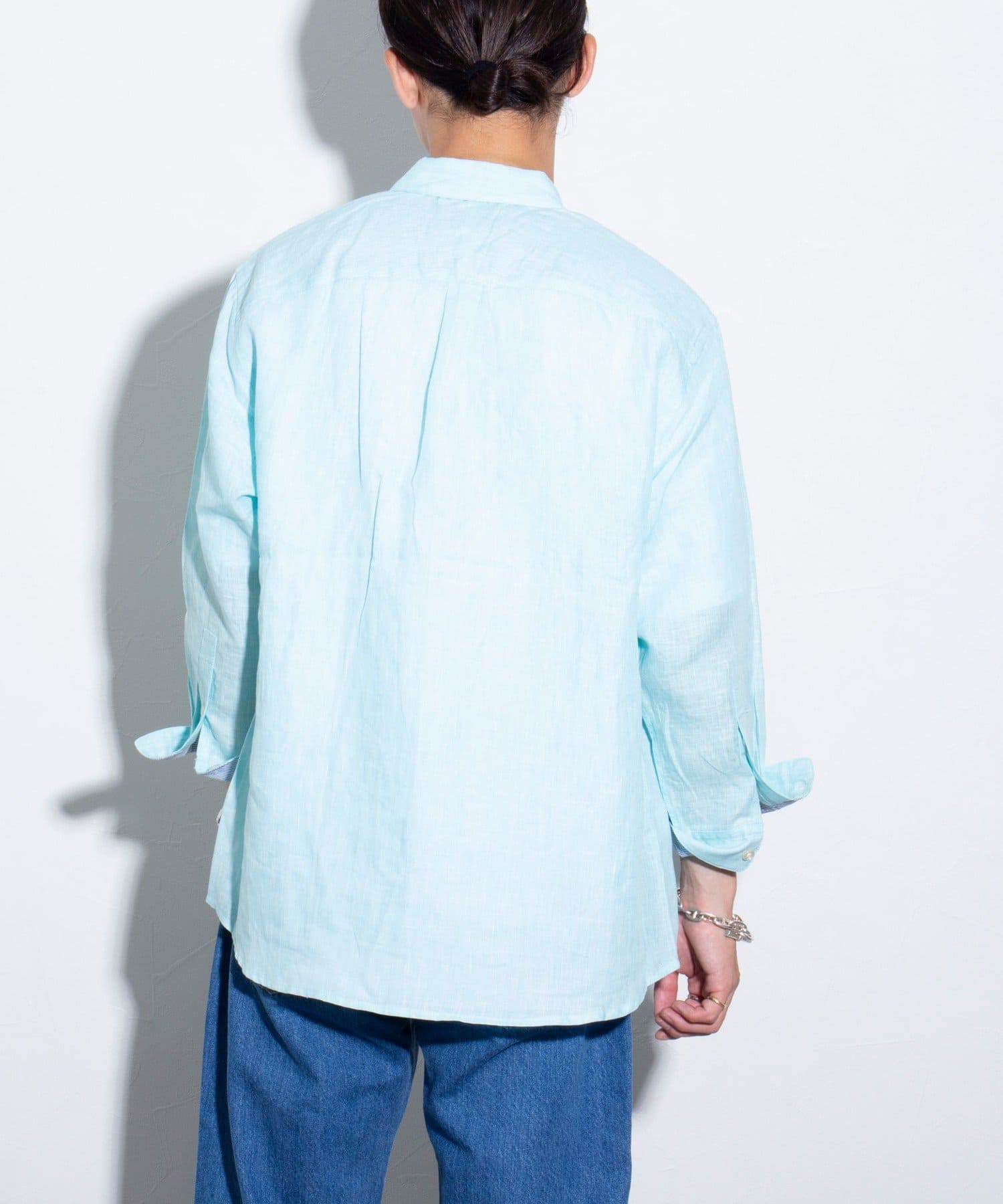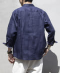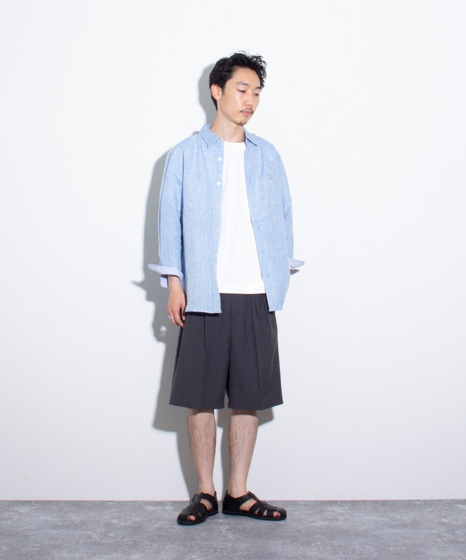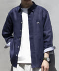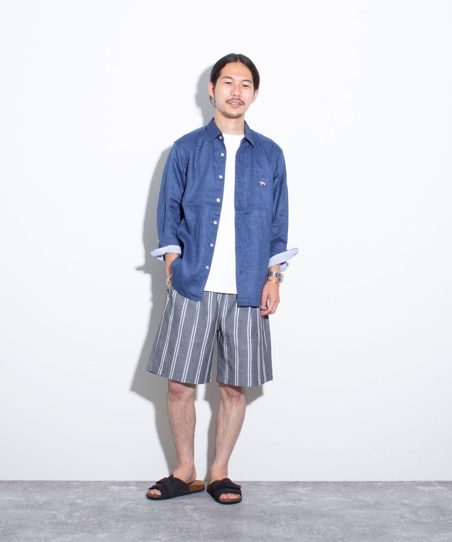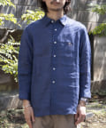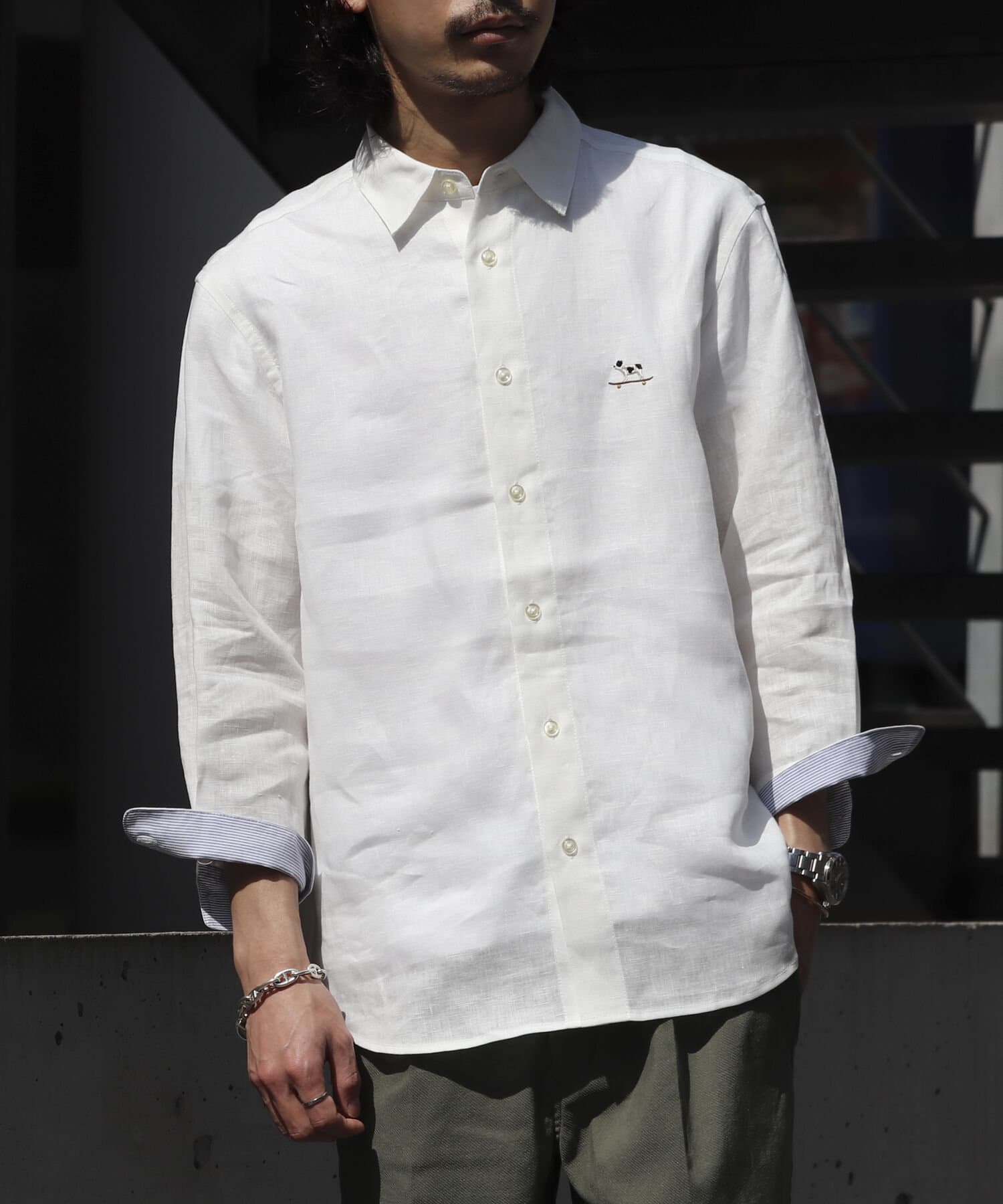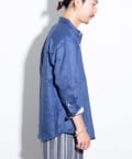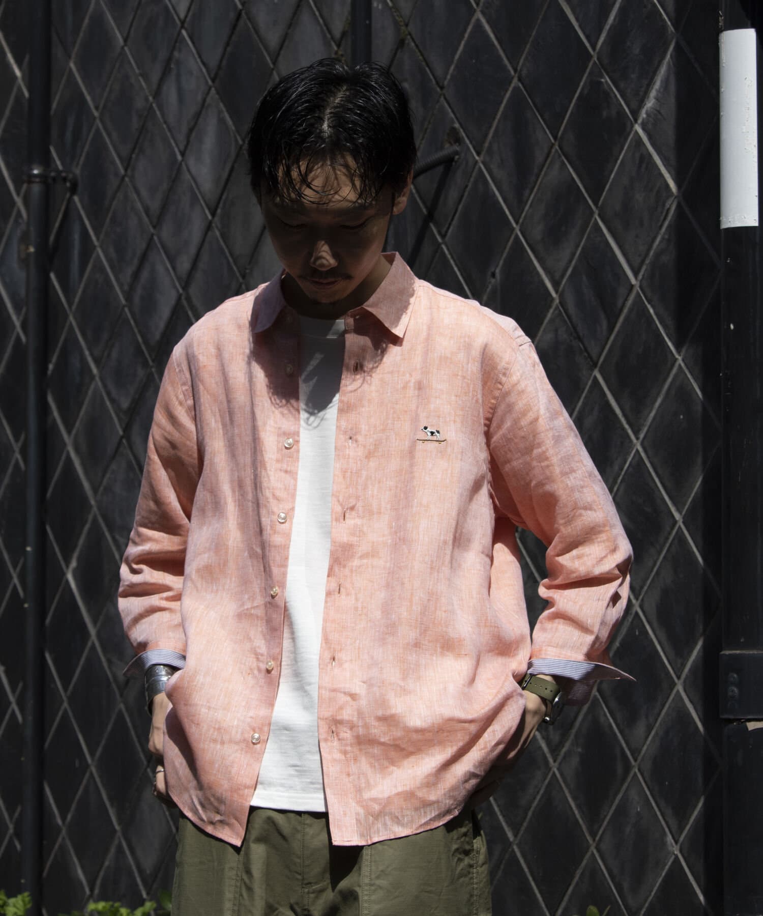 【GLOSTER】フレンチブルドッグ刺繍 レギュラーカラー7分袖リネンシャツ