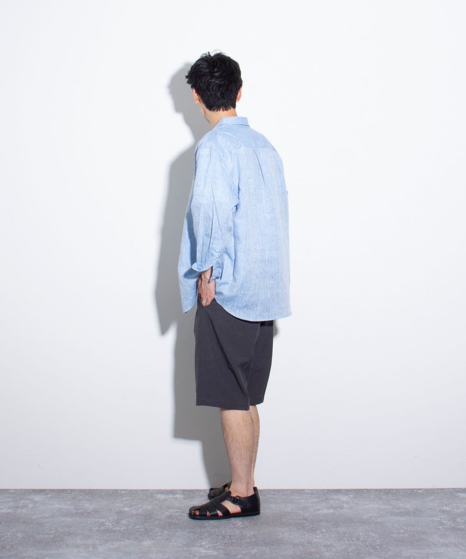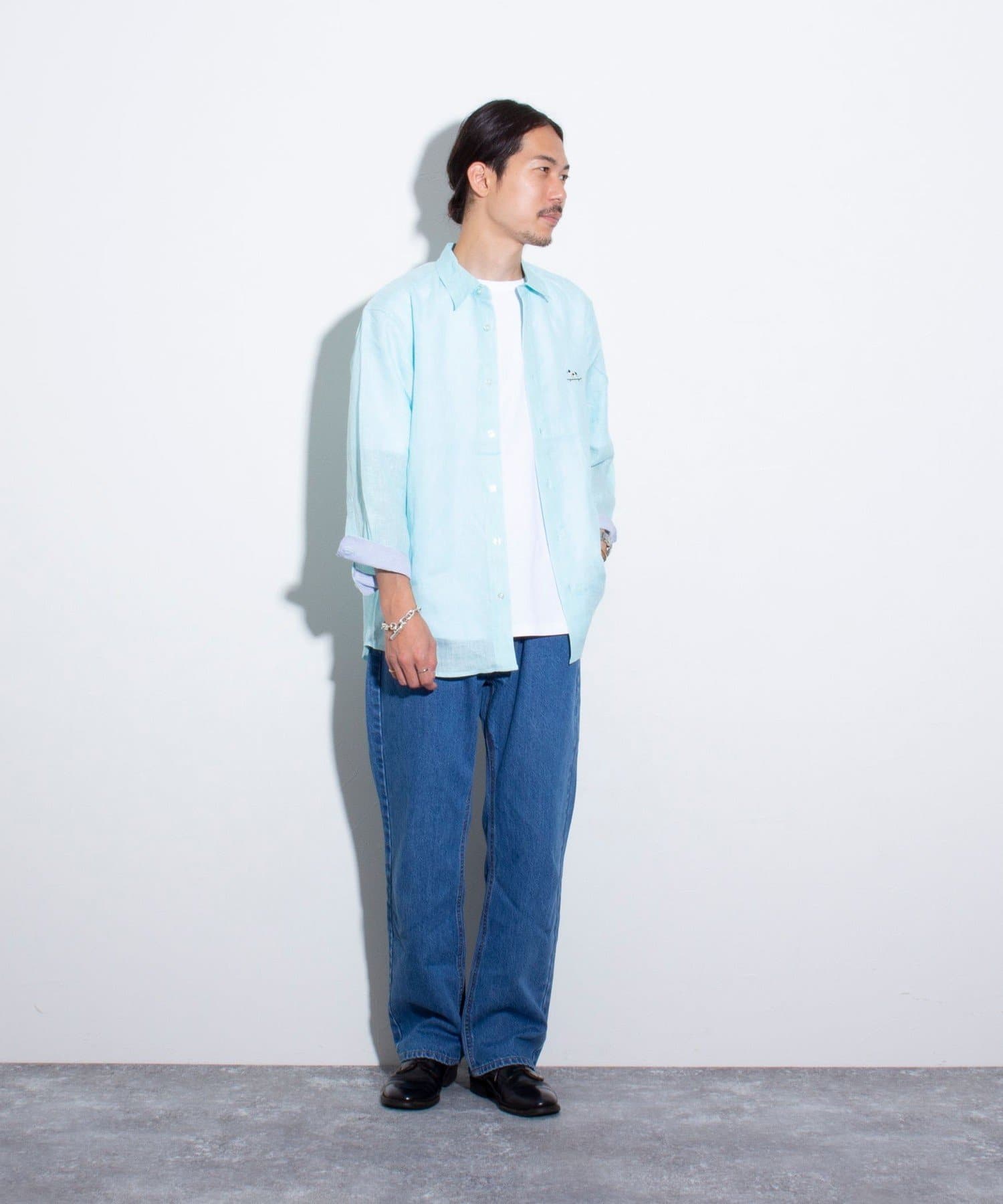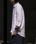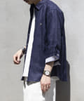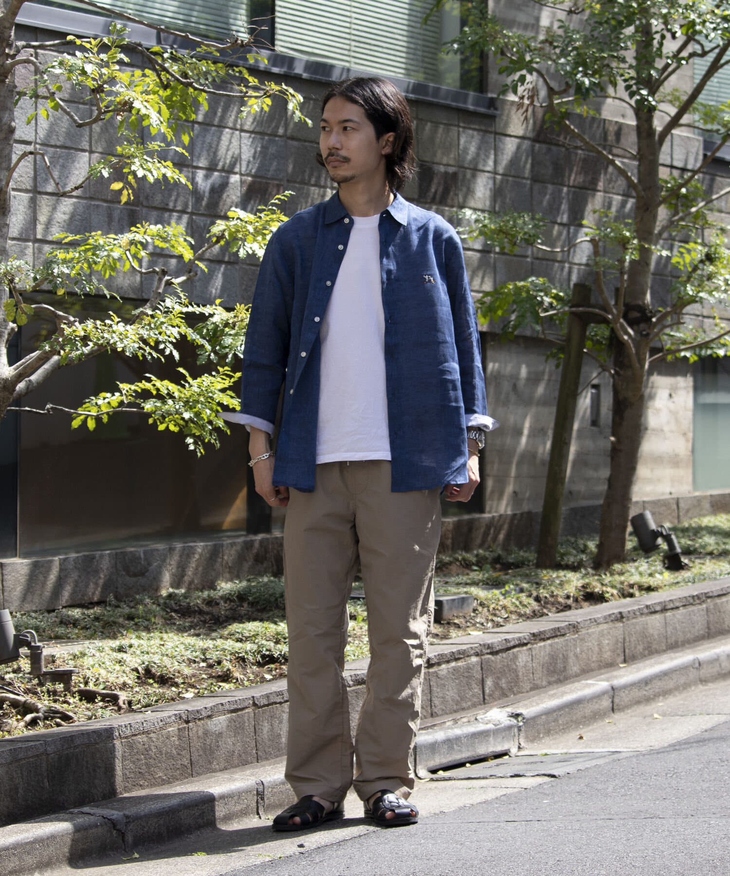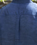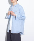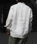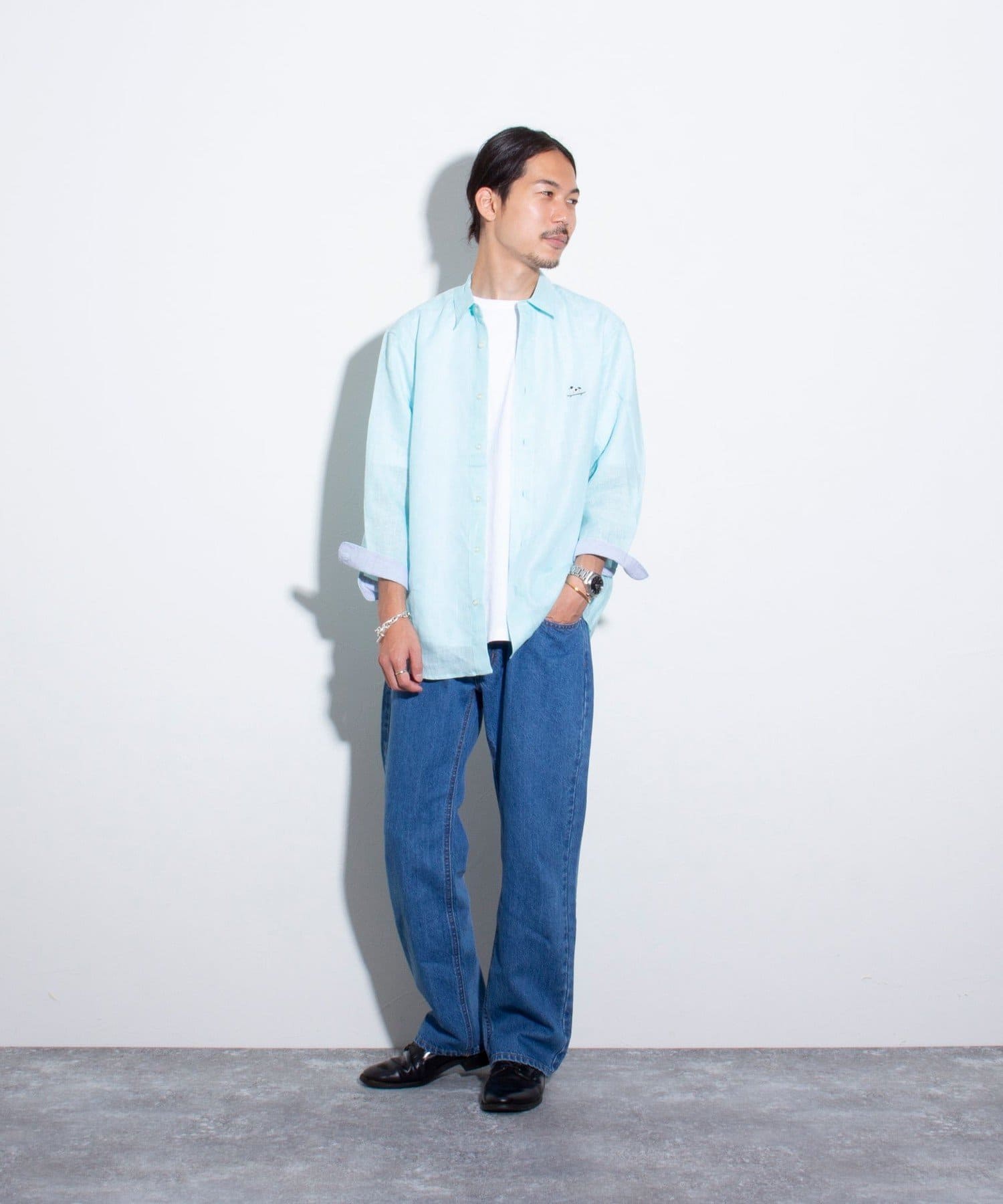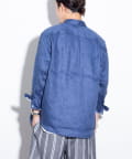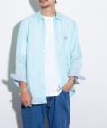 【GLOSTER】フレンチブルドッグ刺繍 レギュラーカラー7分袖リネンシャツ