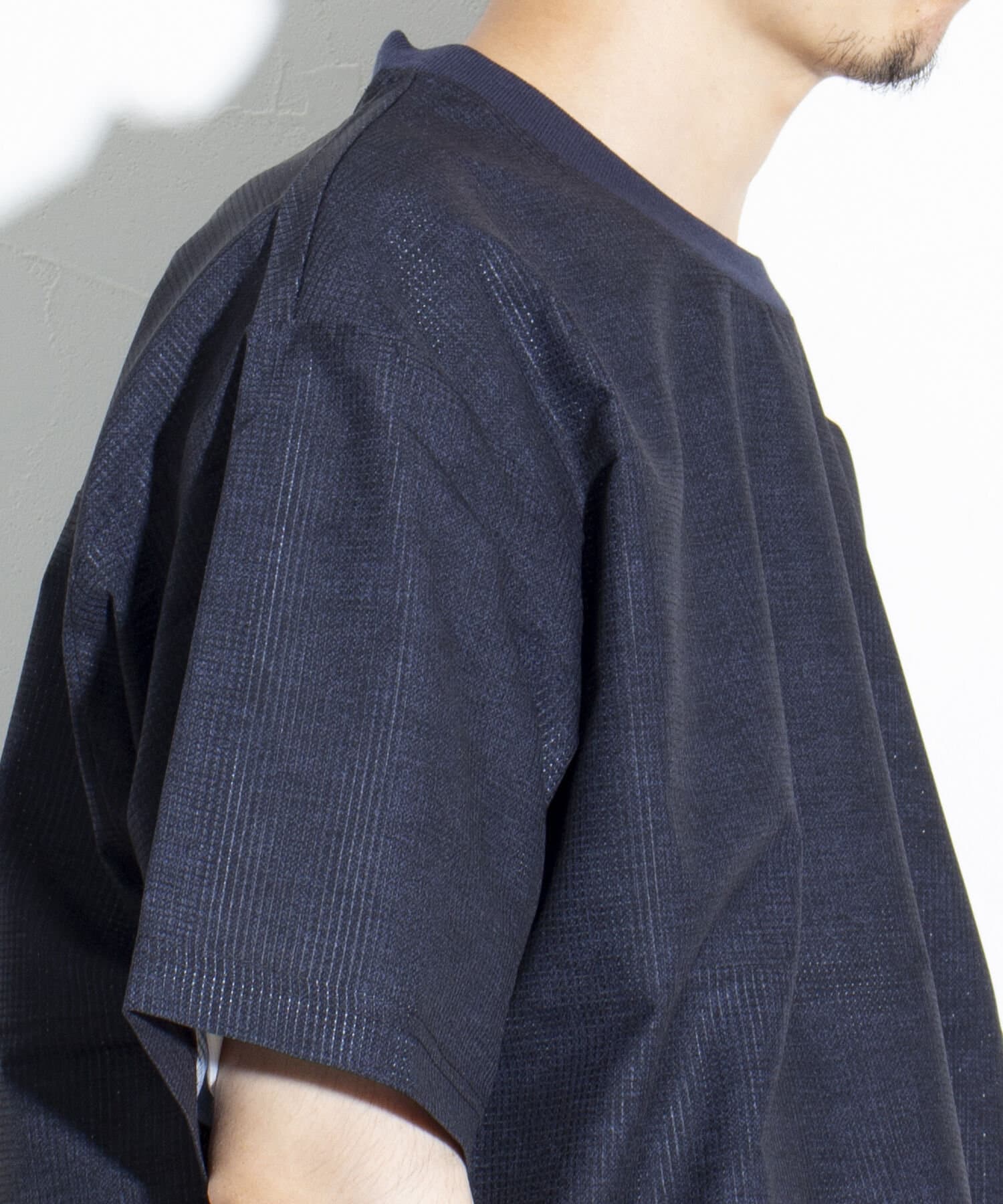 素材のエアリップは撥水性、通気性、ストレッチ性、軽量性のある素材を使用特殊な組織構造で小さな穴が開いているため、 通気性があり蒸れにくく、これからの暑い時期に最適なTシャツに仕上がりました。