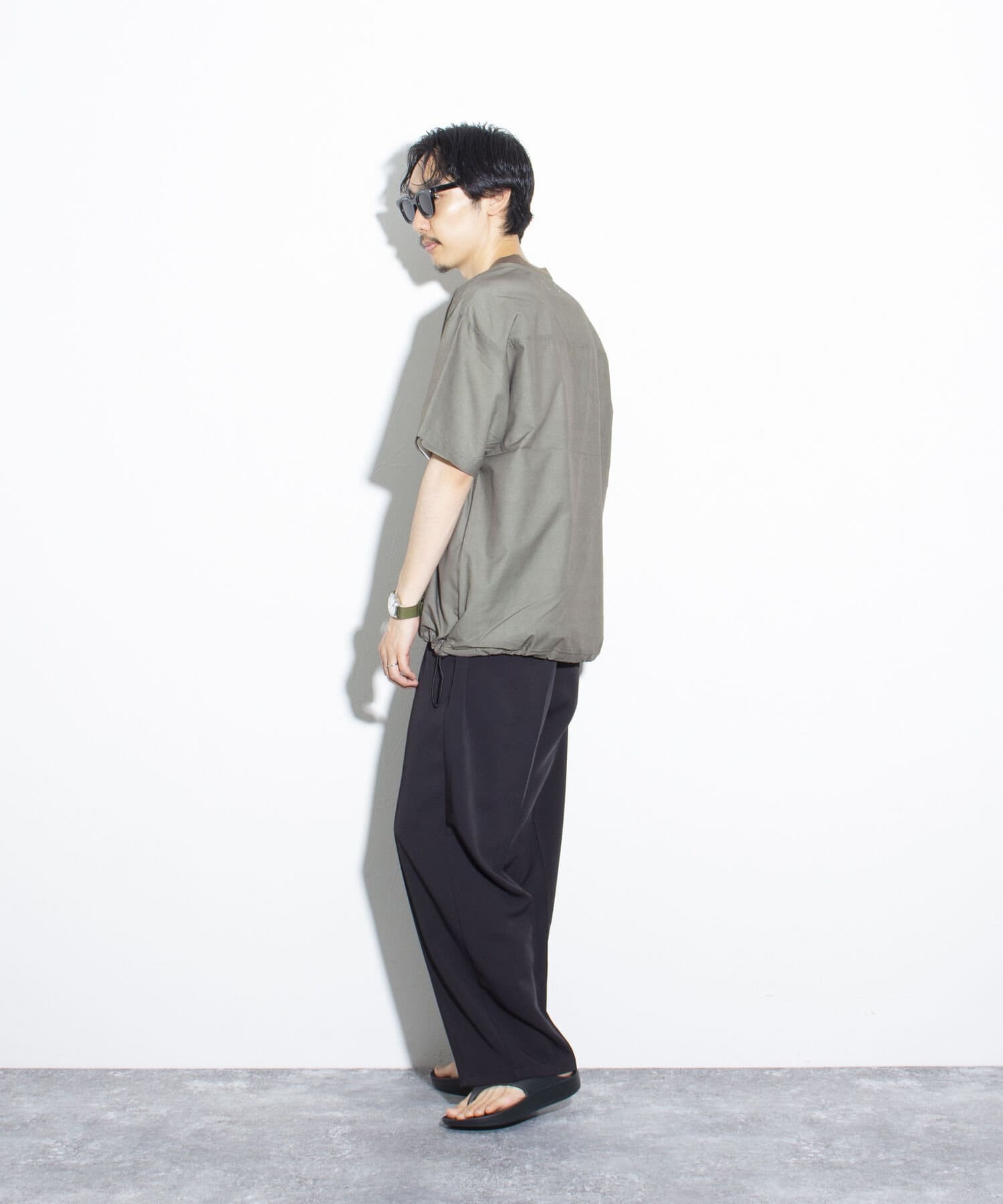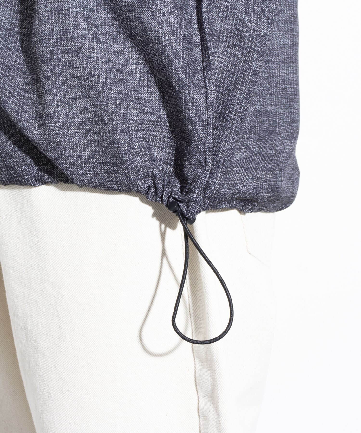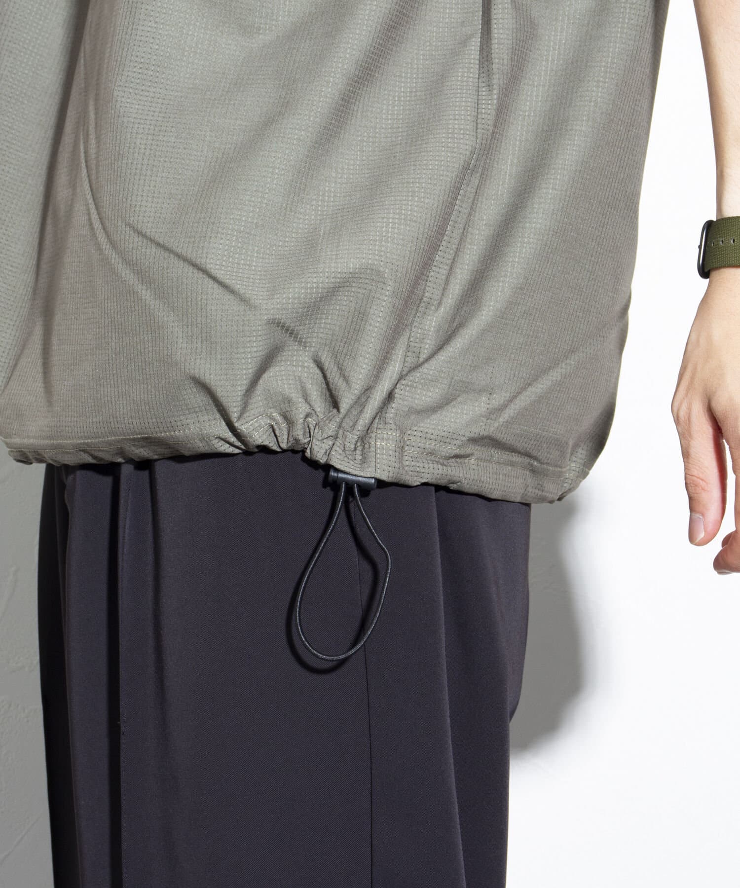 裾に付属したドローコードでシルエットを変えることが可能で、シンプルながらデザイン性を兼ね備えた1枚に仕上がっております。
