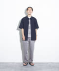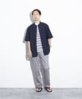 パンツはスラックスやタック入りのテーパードパンツと合わせたきれいめカジュアルスタイルが馴染みますが、チノやカーゴパンツやショーツなどのカジュアルスタイルにも馴染みます。