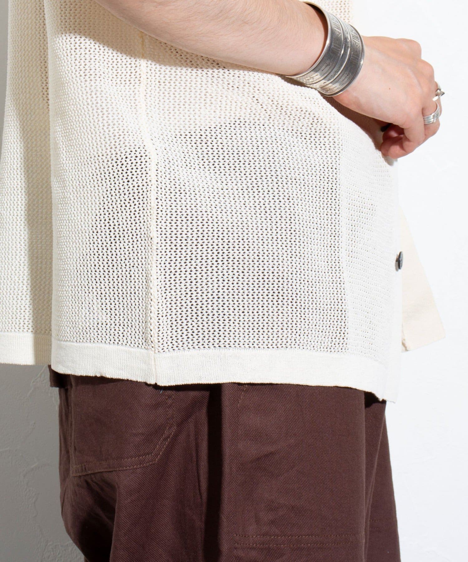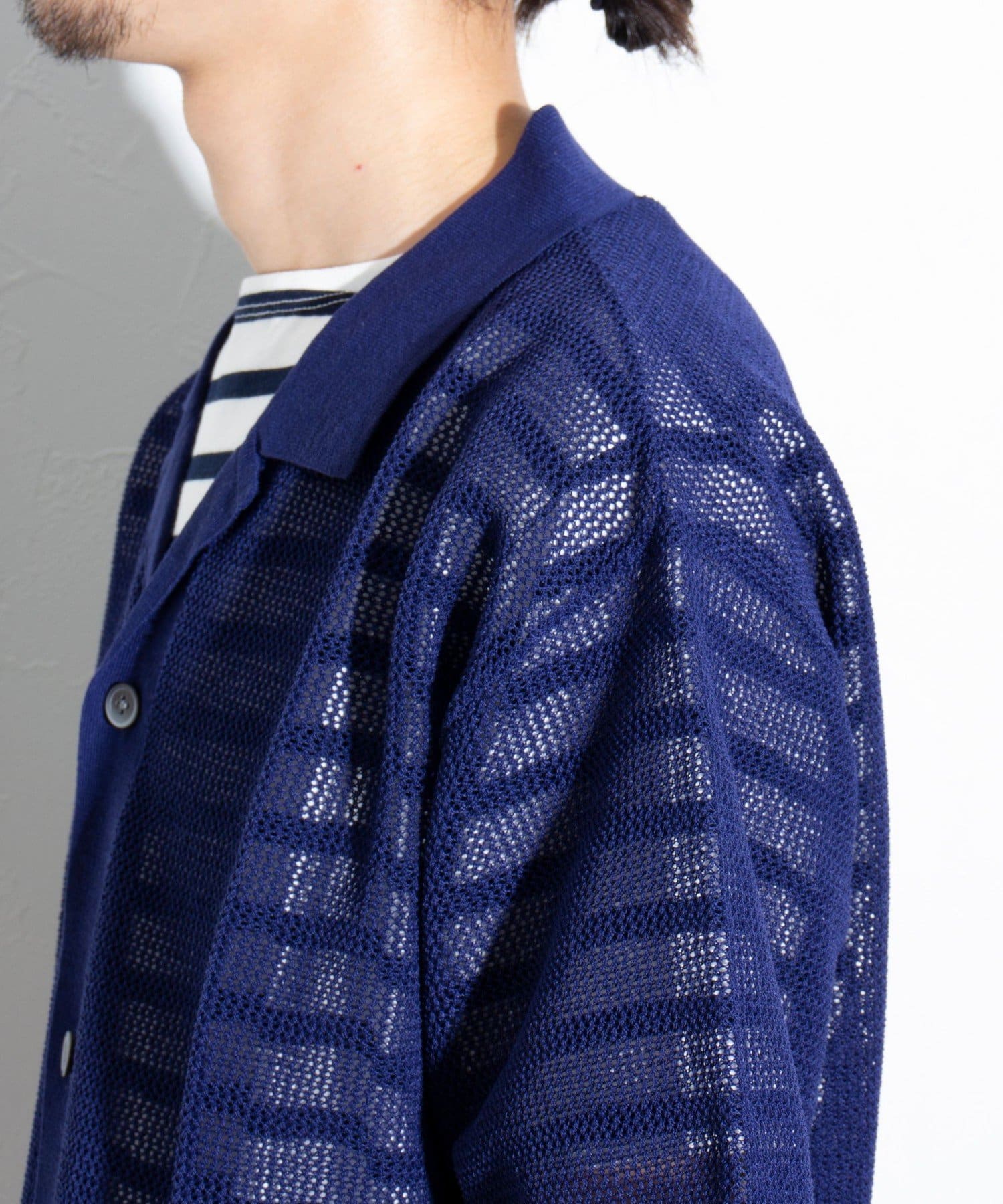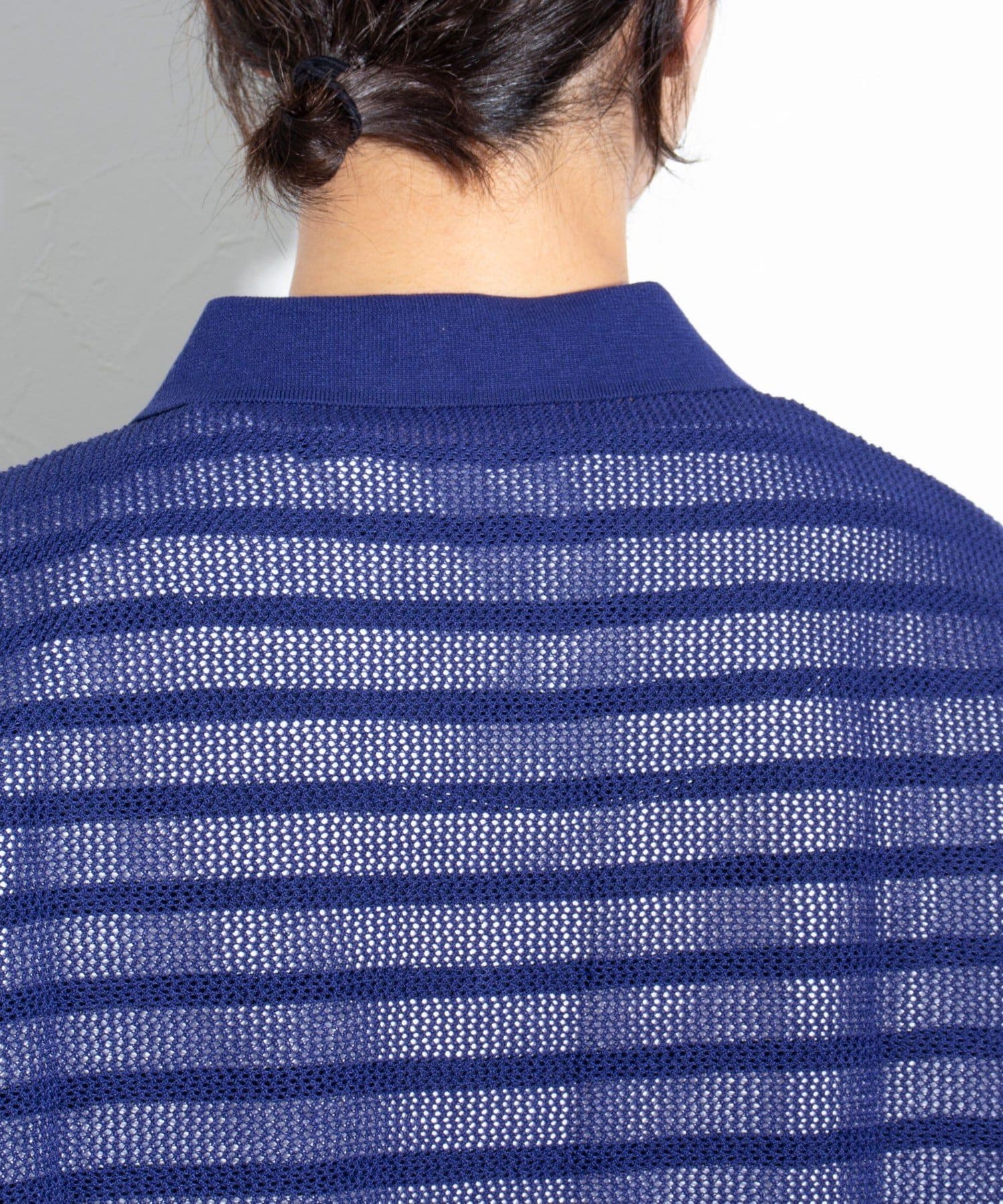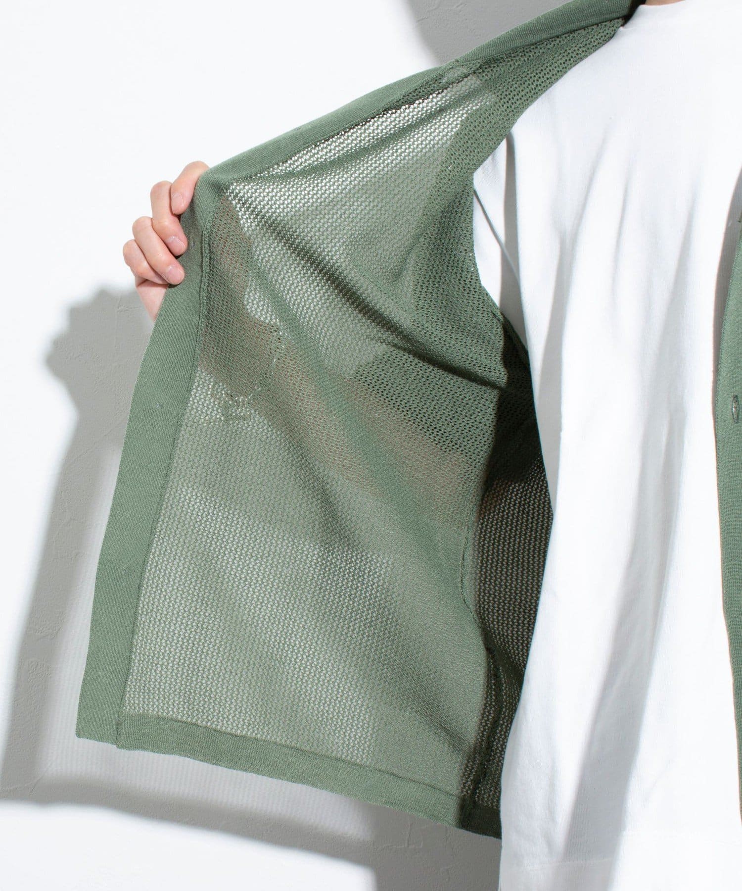メッシュ素材を採用したことで、軽やかな素材感とドライタッチな肌触り、透け感で暑い夏に最適な素材です。
