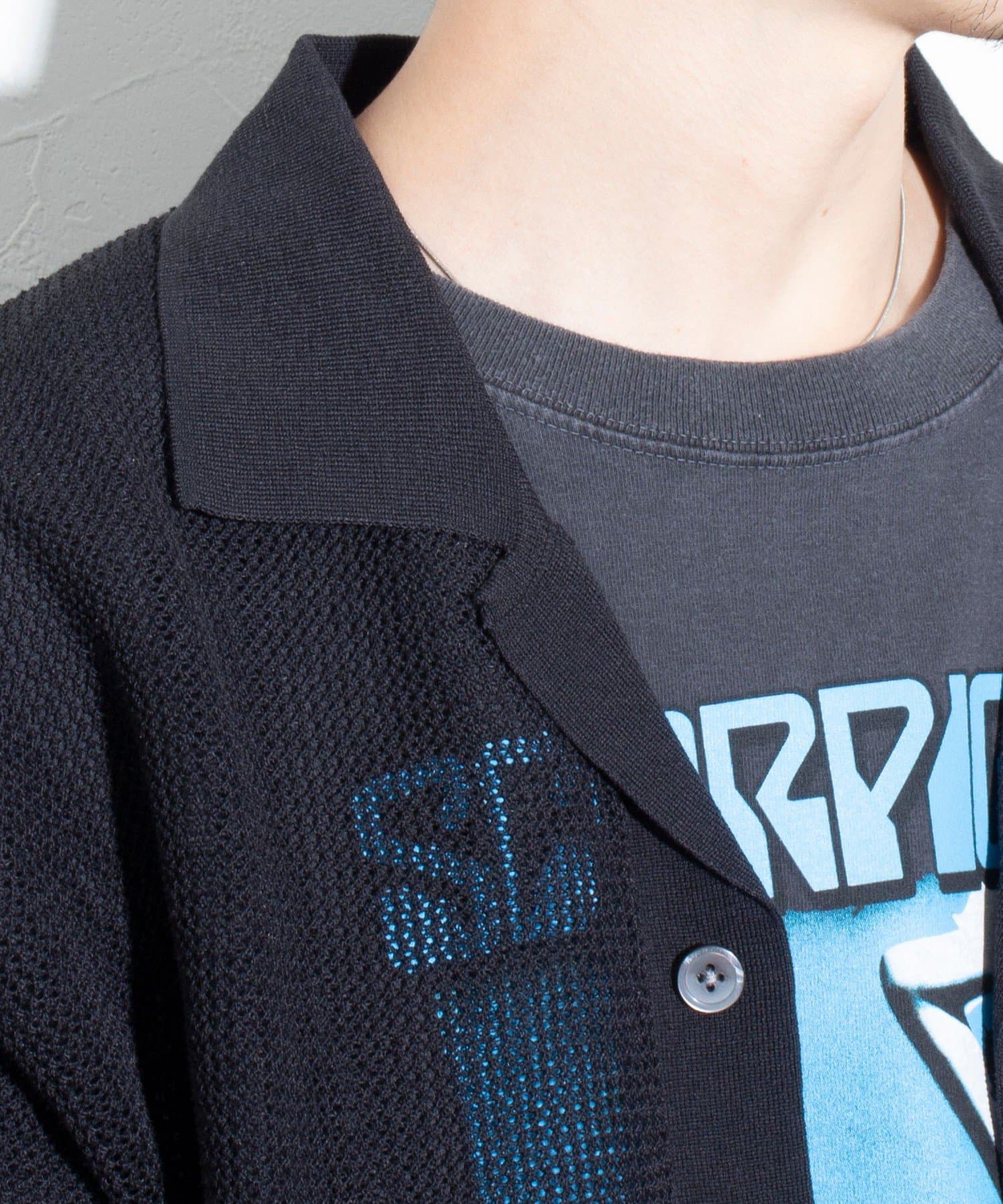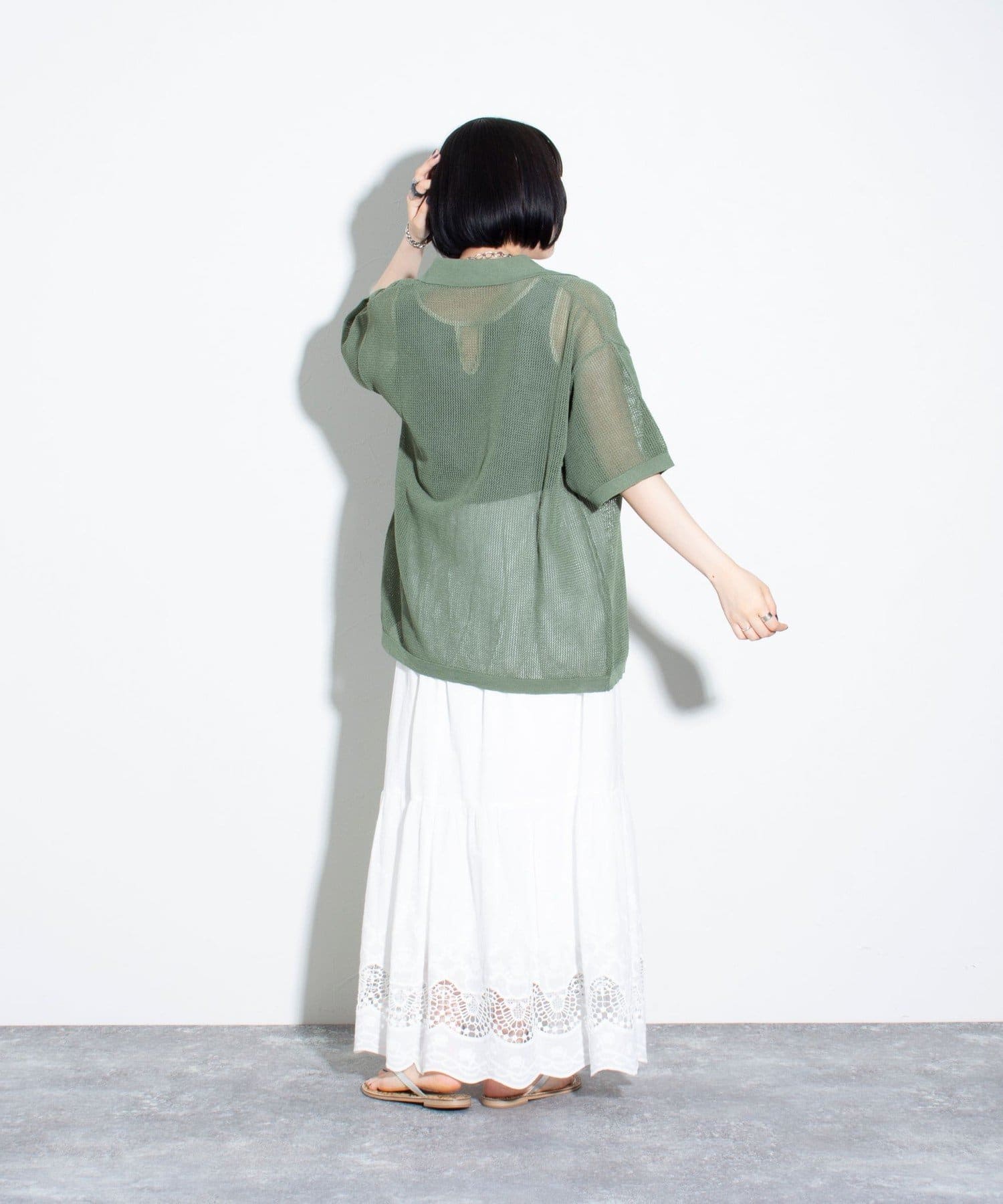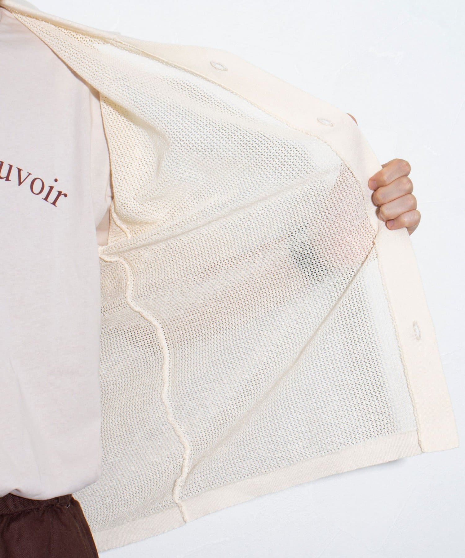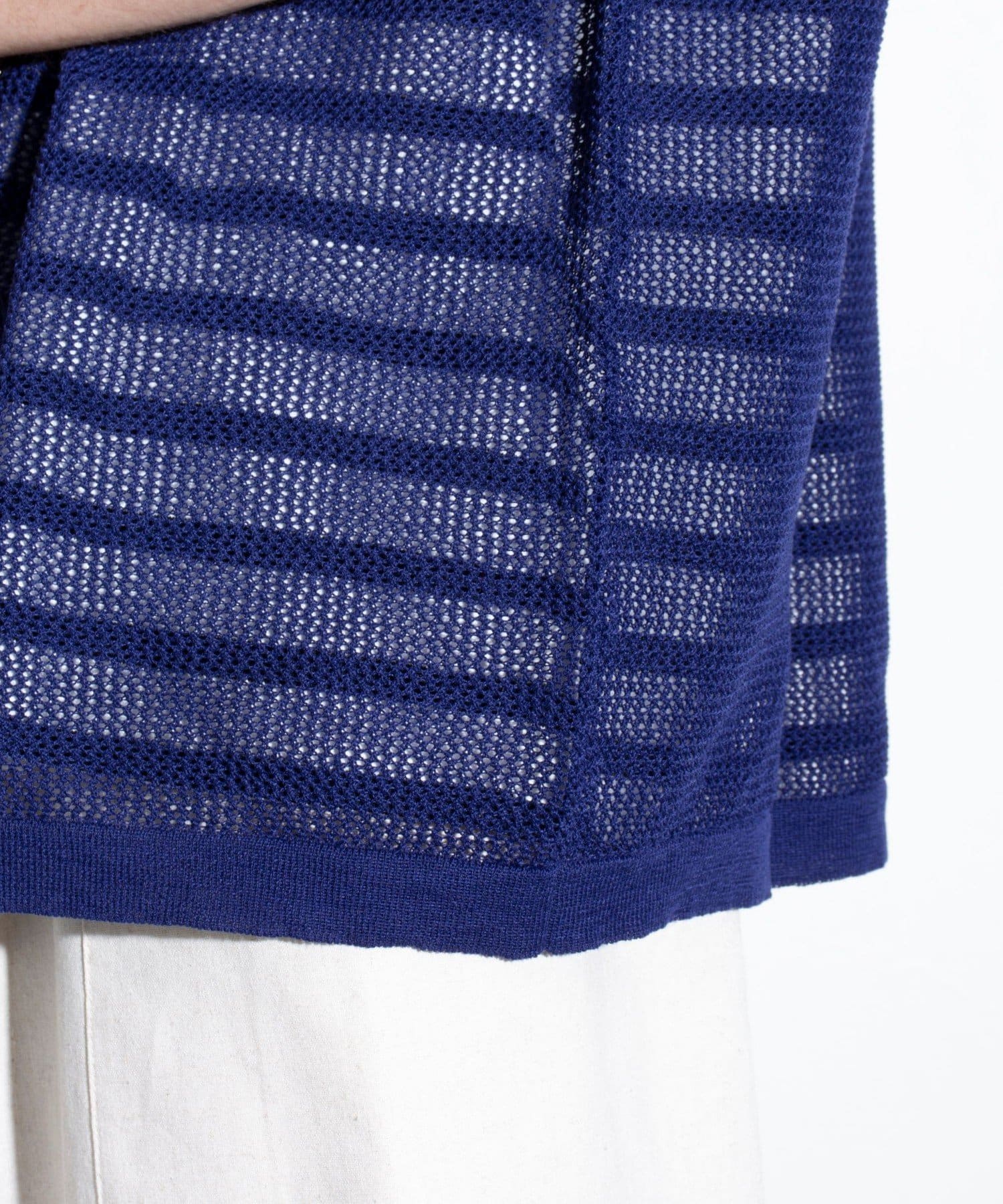 メッシュ素材を採用したことで、軽やかな素材感とドライタッチな肌触り、透け感で暑い夏に最適な素材です。