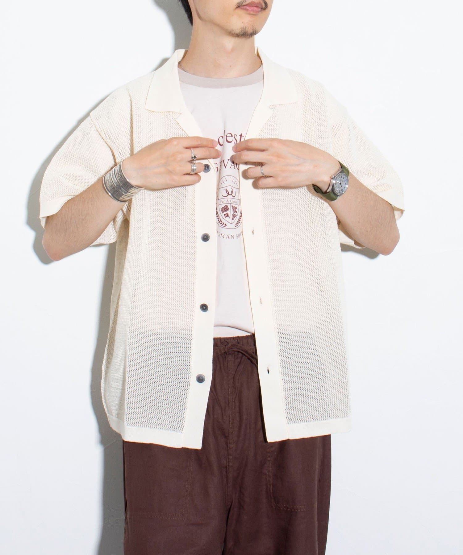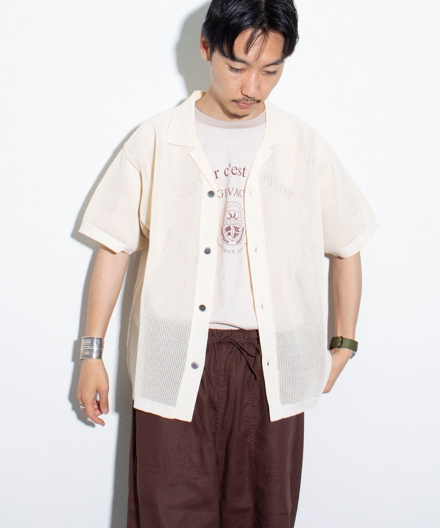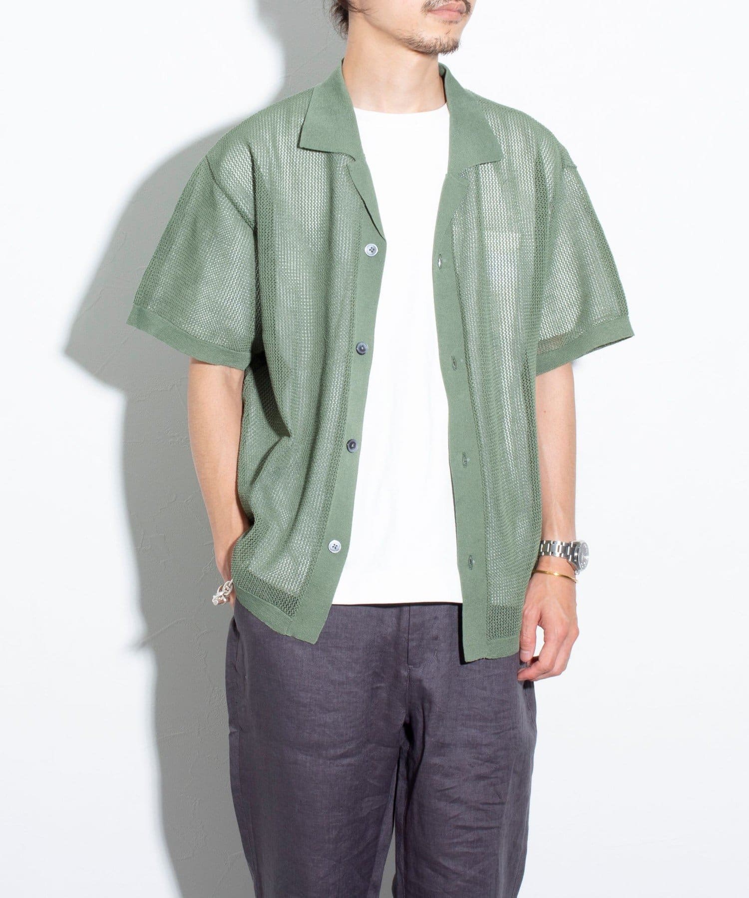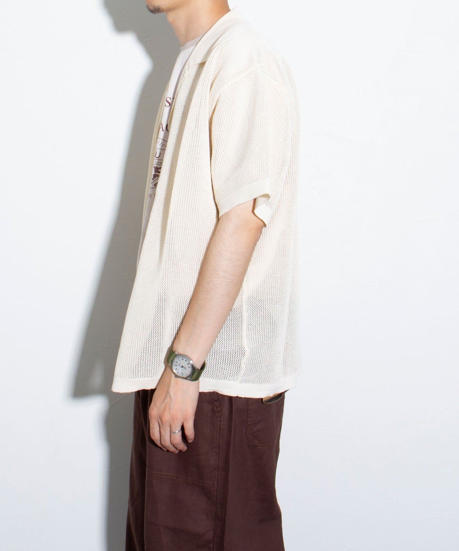 ■リラックス感と凹凸感による表情の豊かさが特長のメッシュ編み半袖シャツ