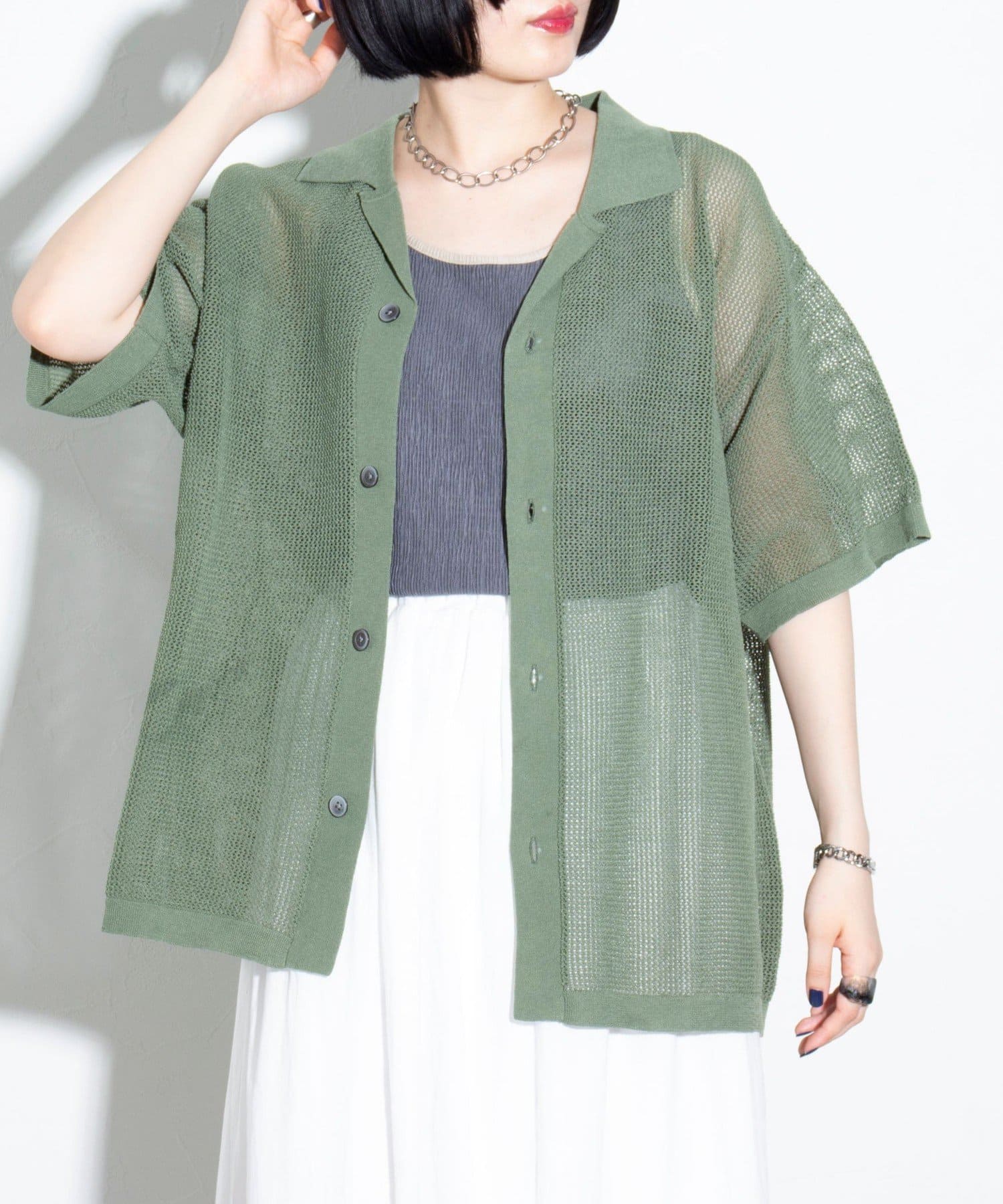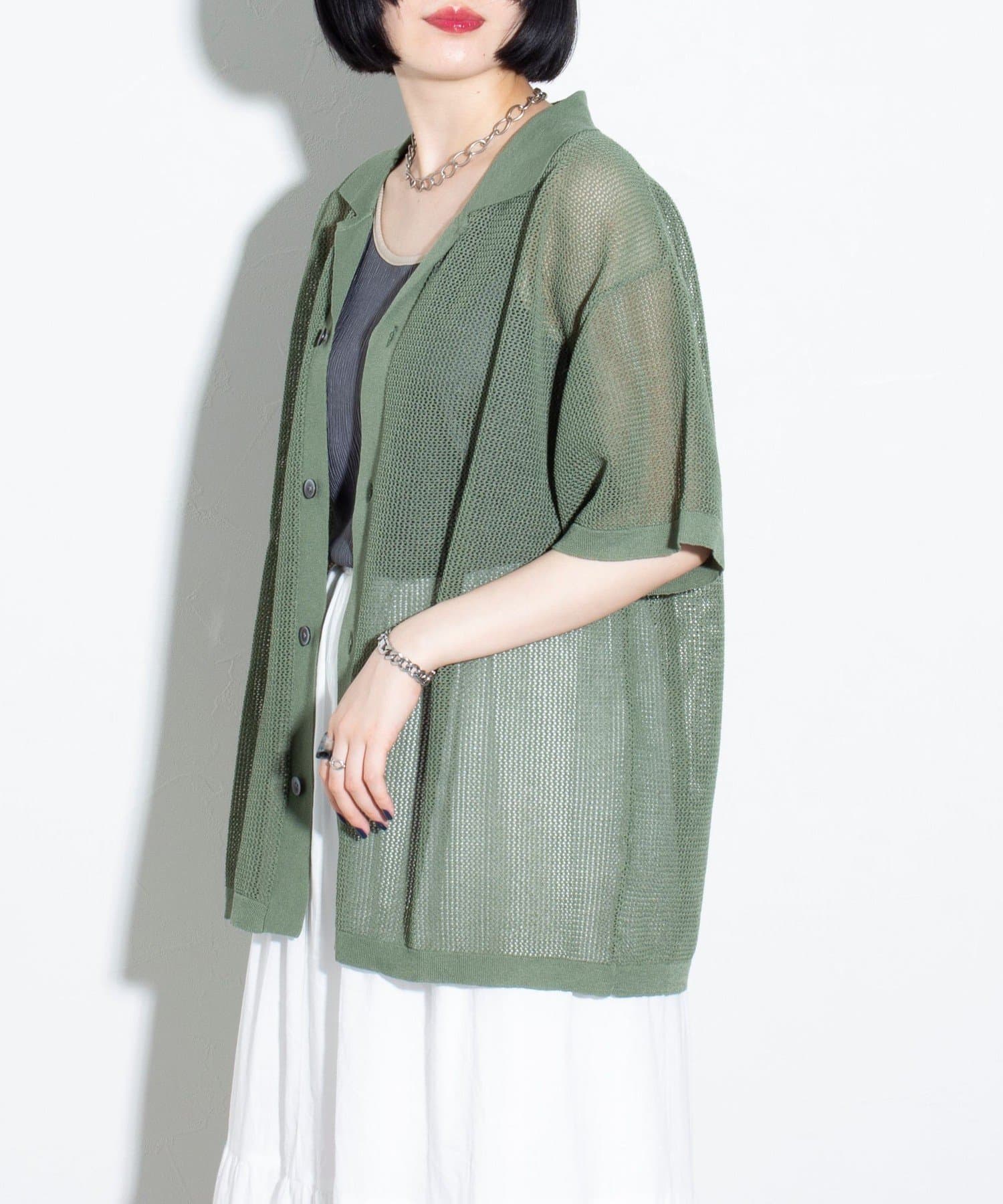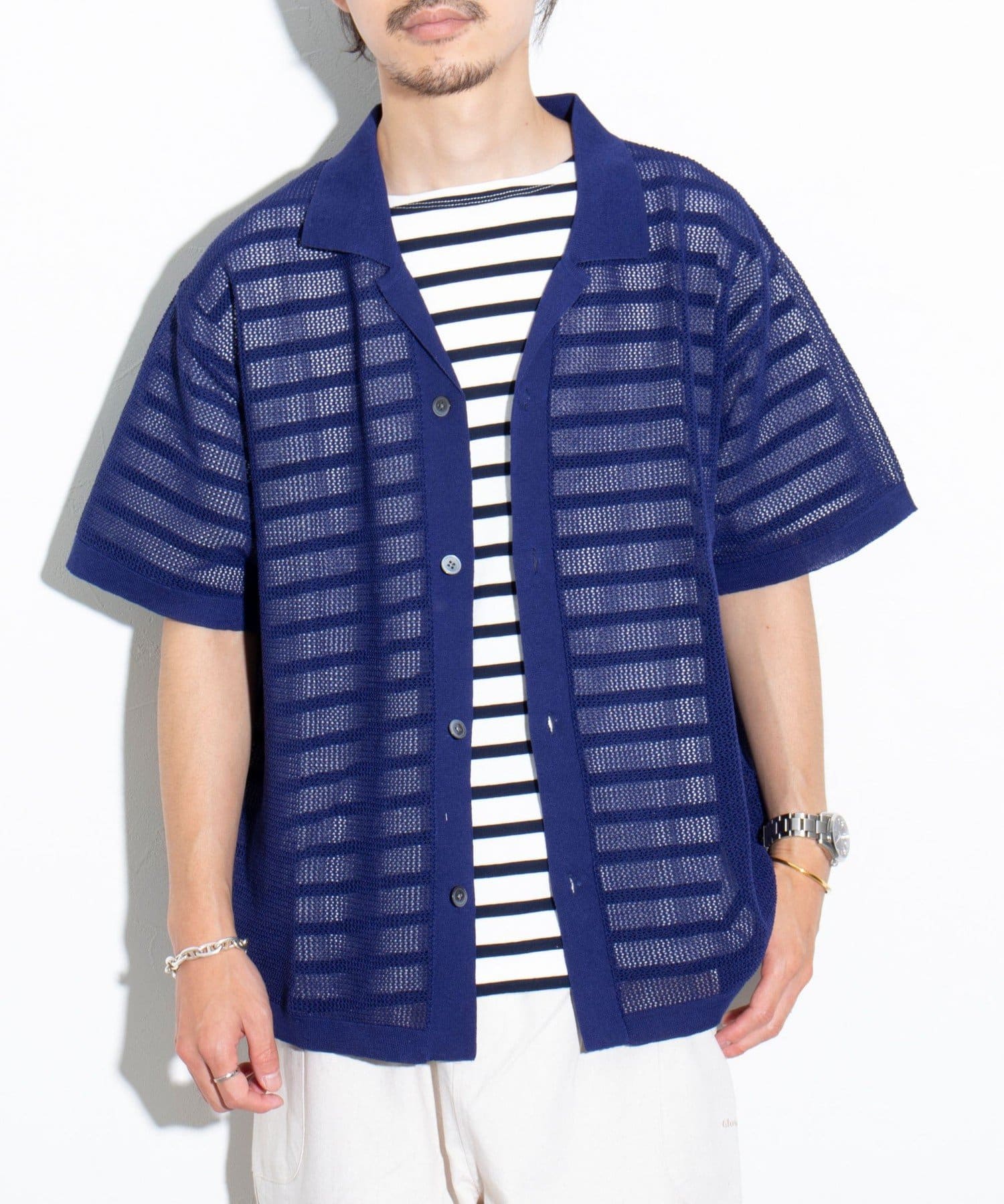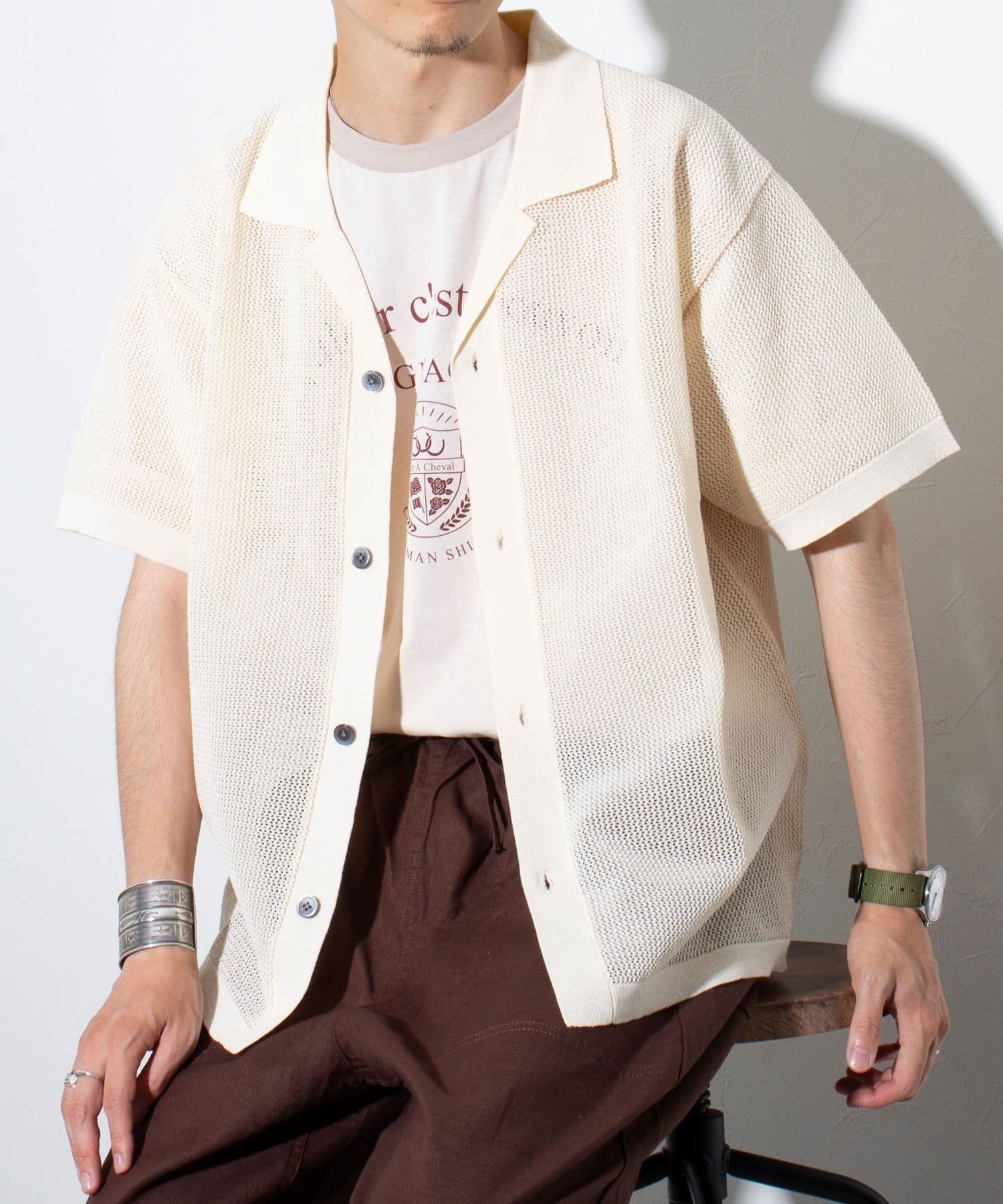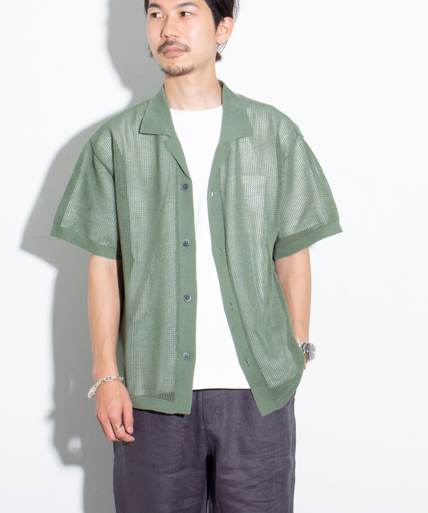 ■リラックス感と凹凸感による表情の豊かさが特長のメッシュ編み半袖シャツ