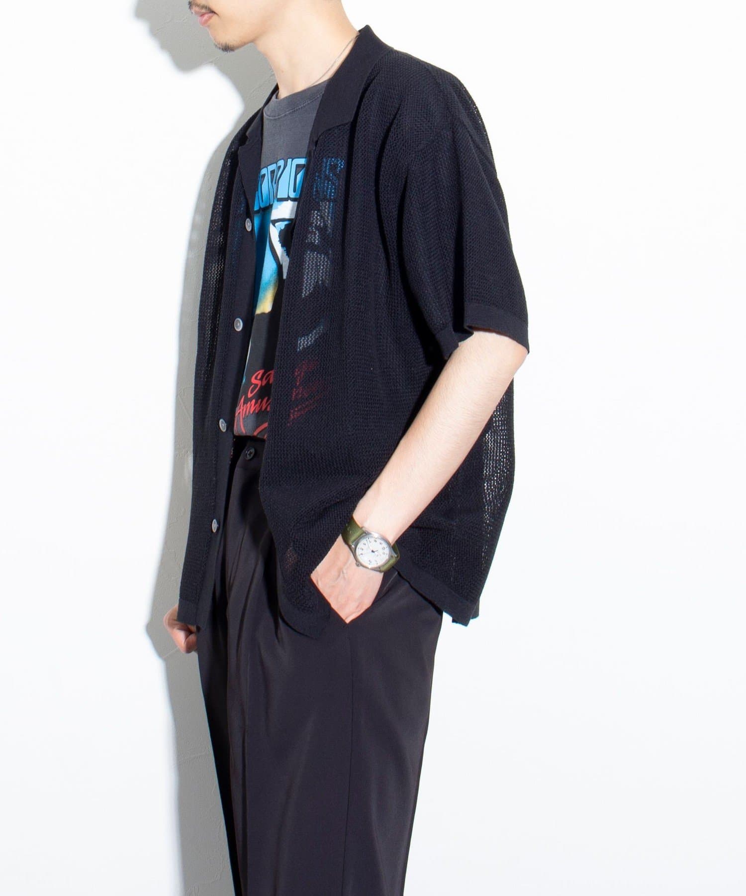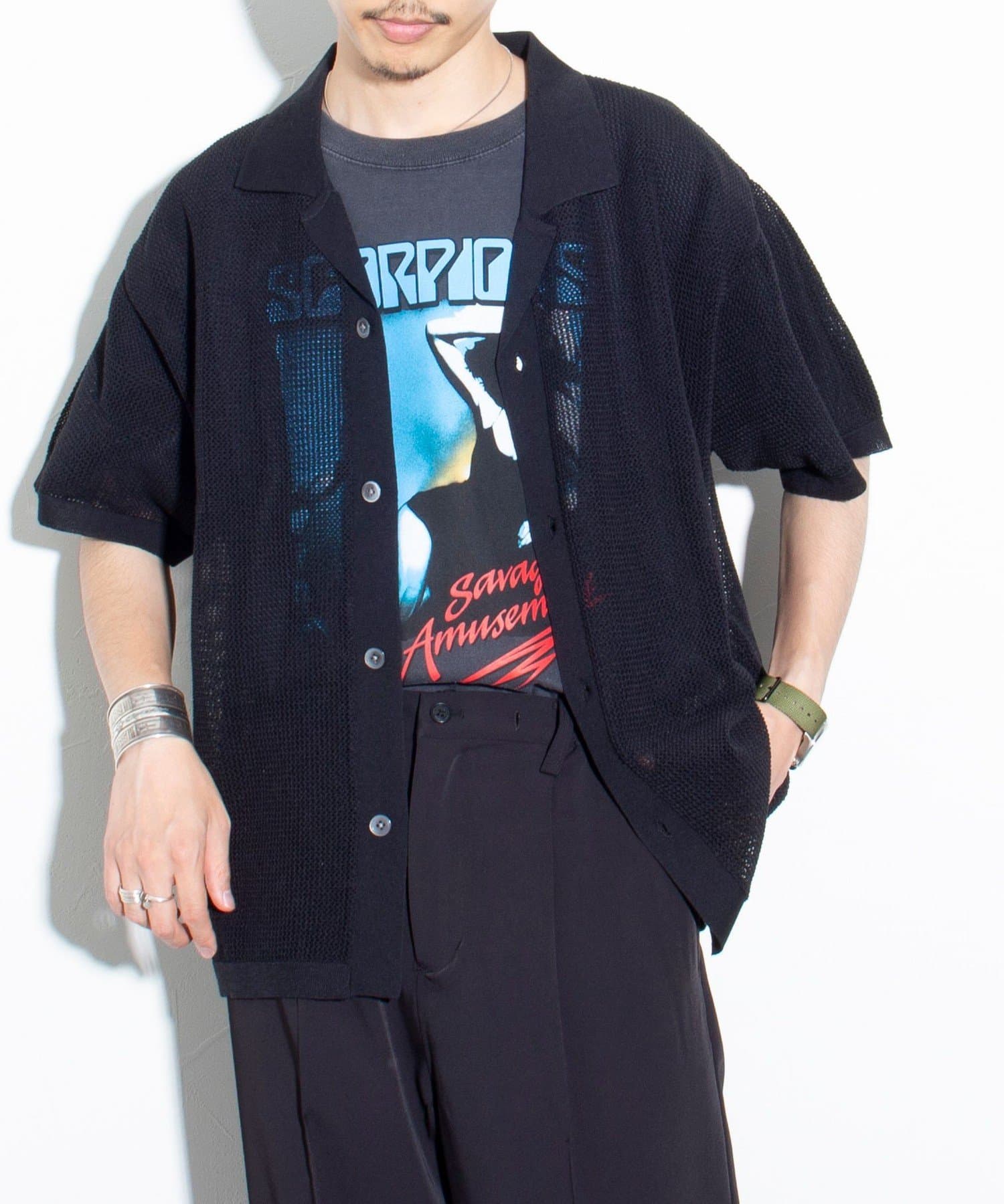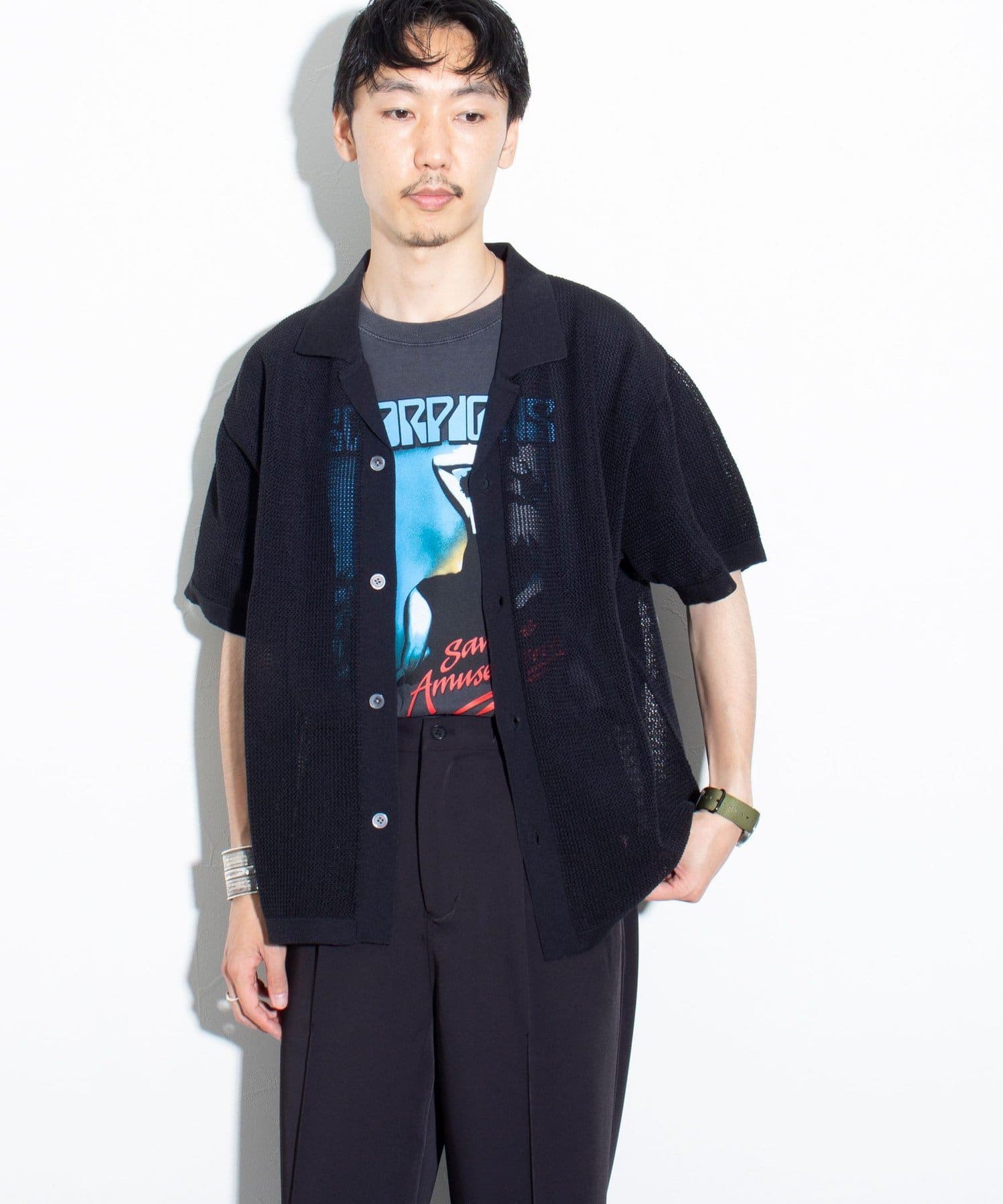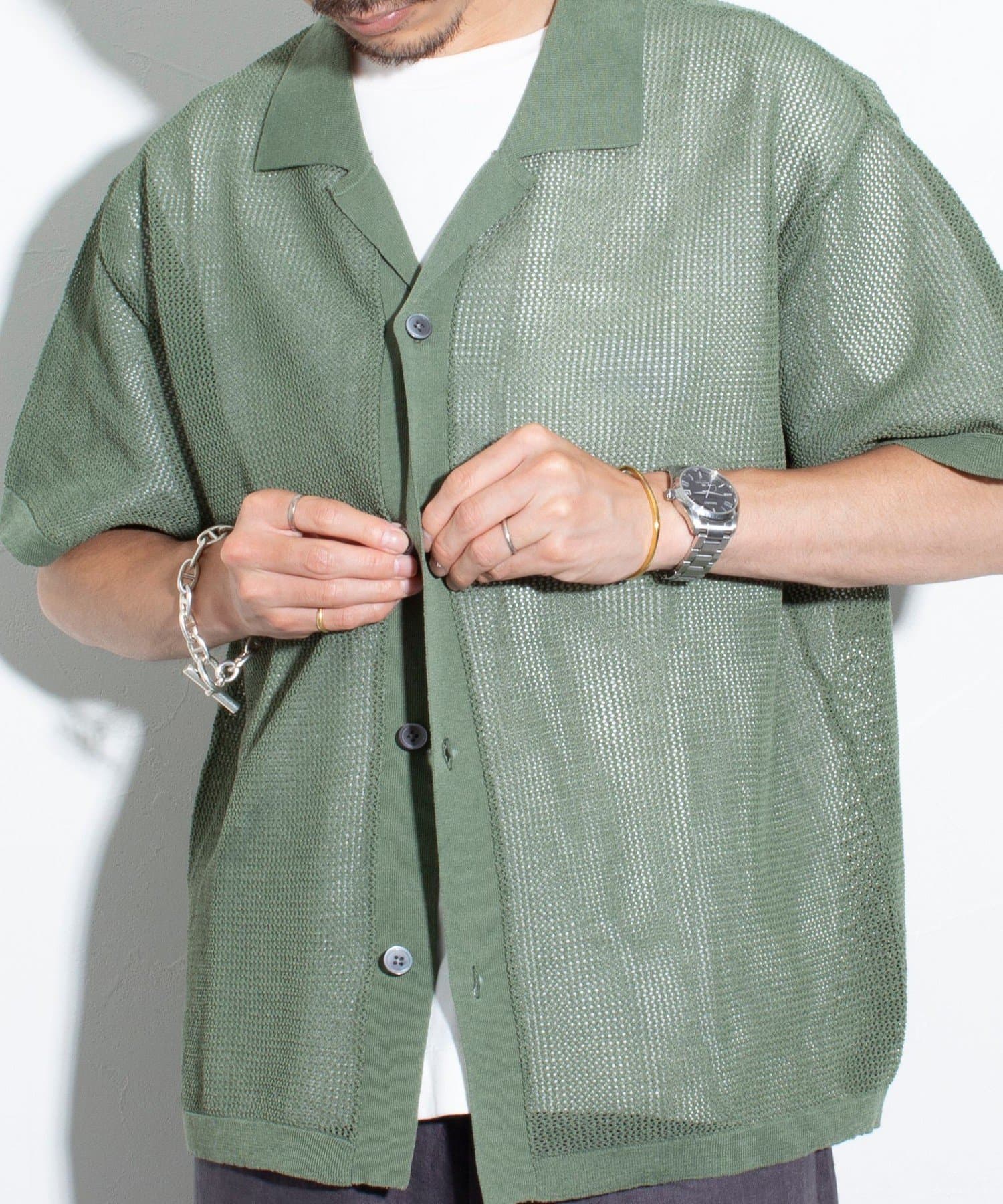 ■リラックス感と凹凸感による表情の豊かさが特長のメッシュ編み半袖シャツ