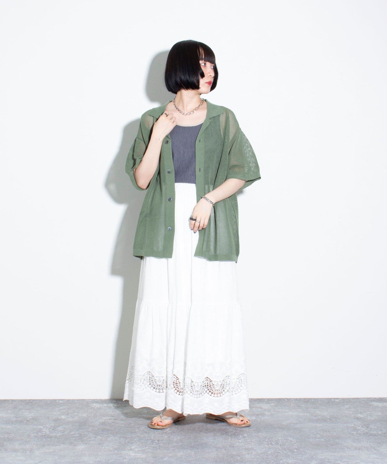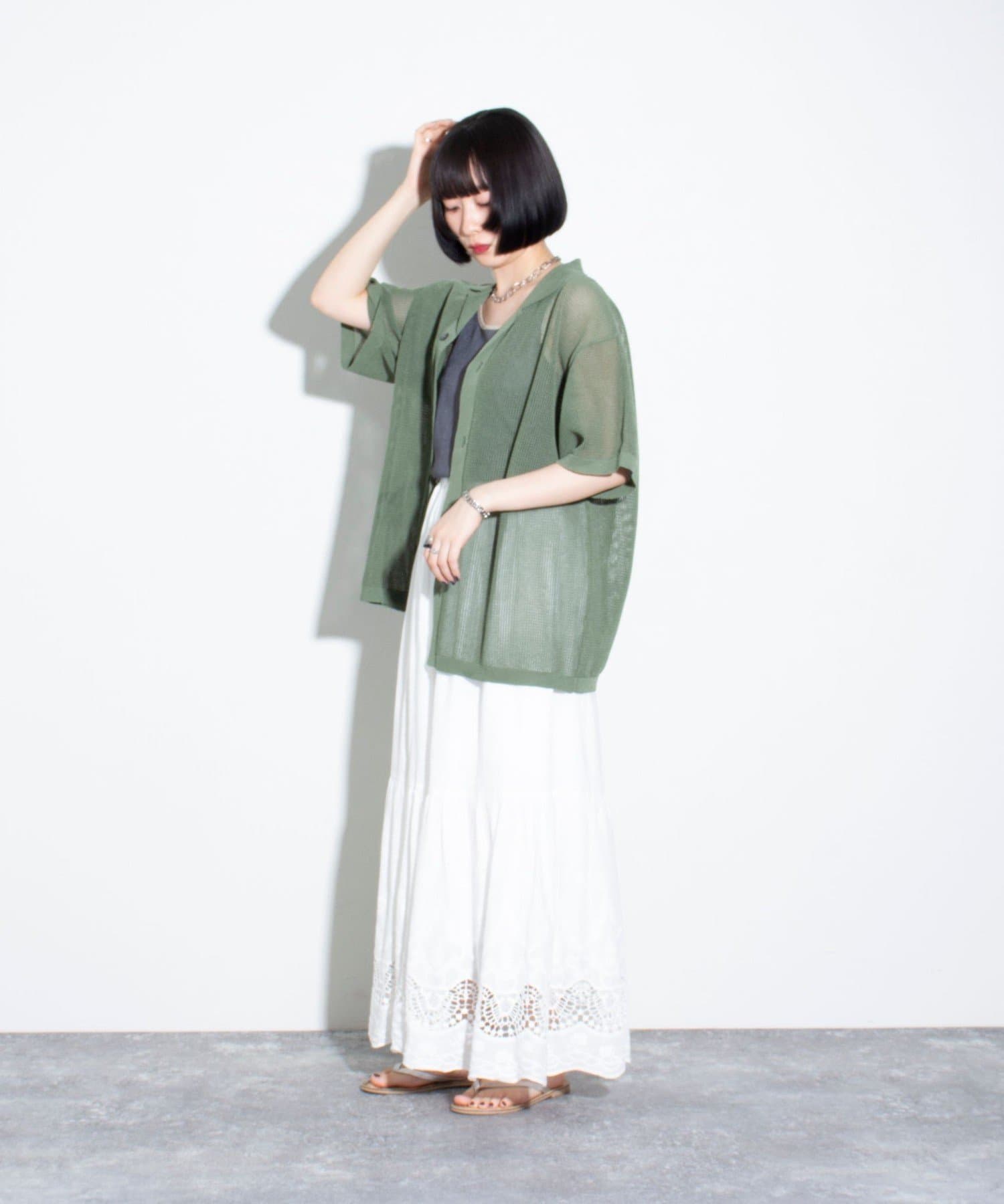 程よい透け感の編み地で普段の着こなしに取り入れやすく、ラフに羽織るだけでトレンドのスタイルnの完成です。