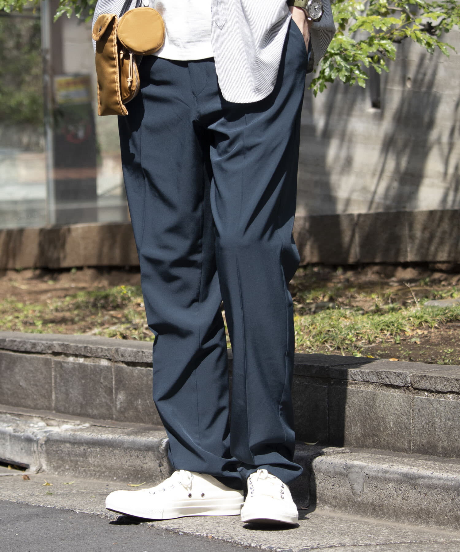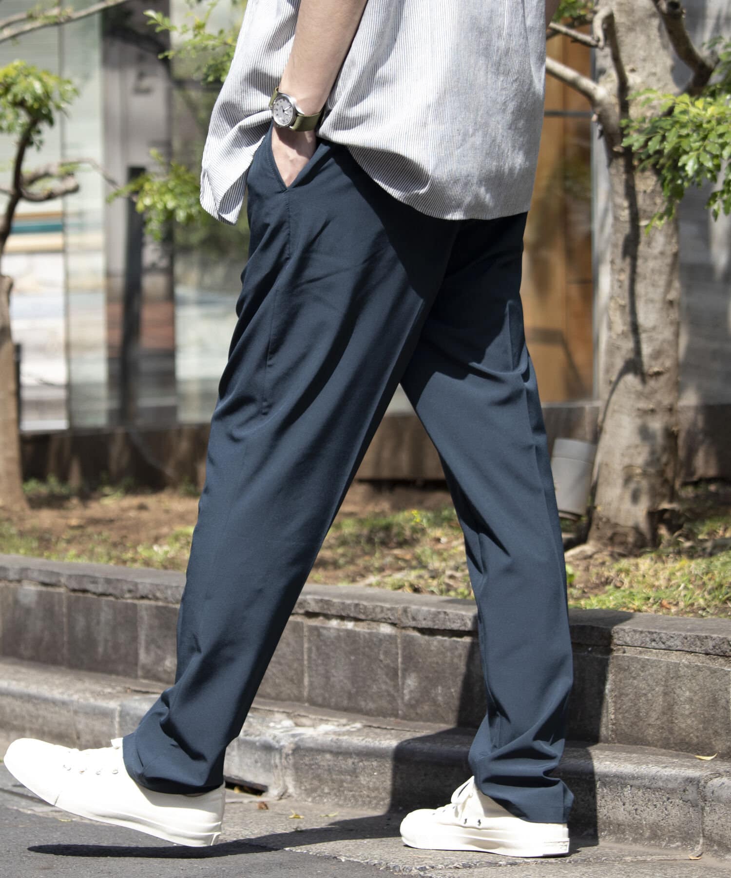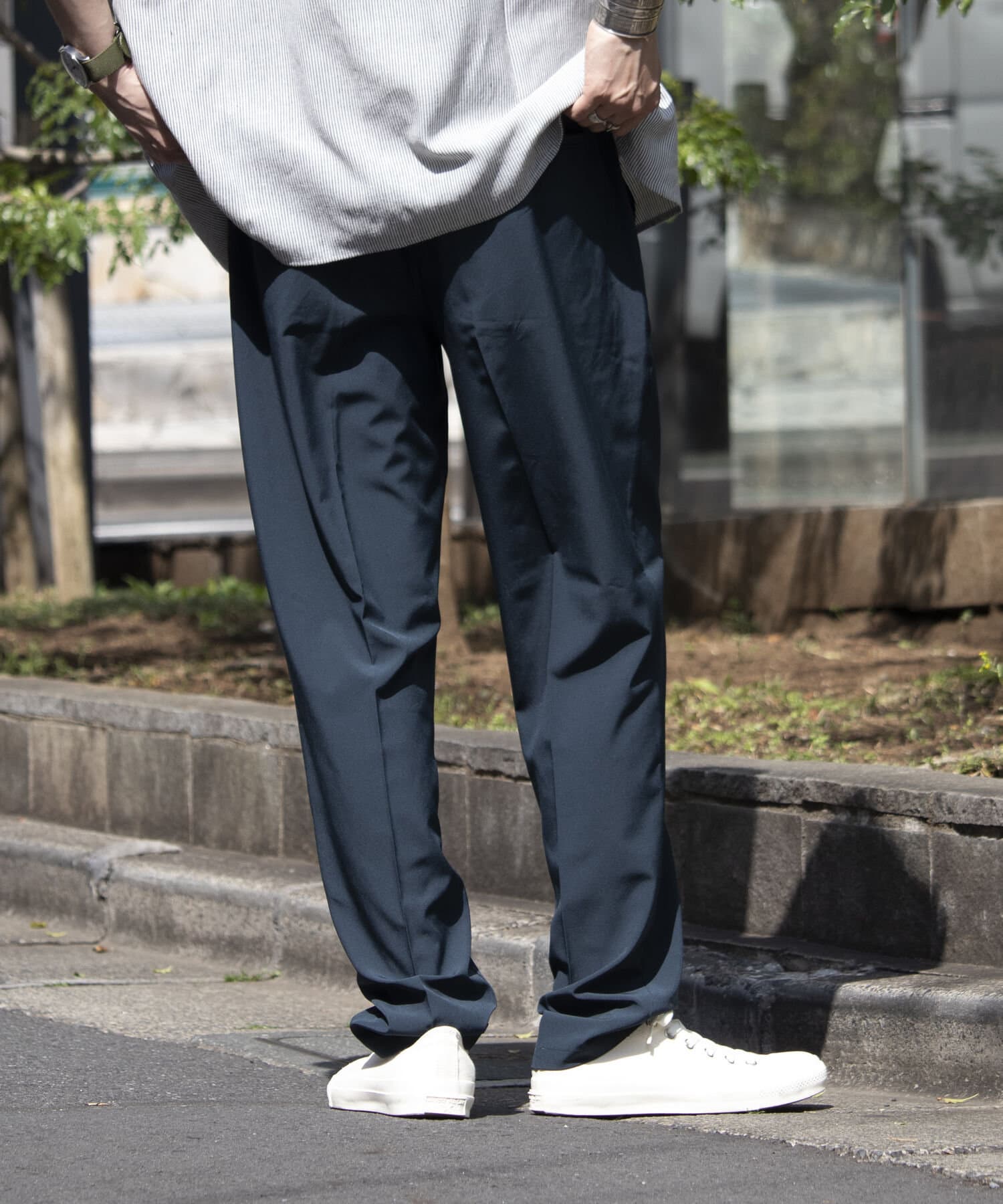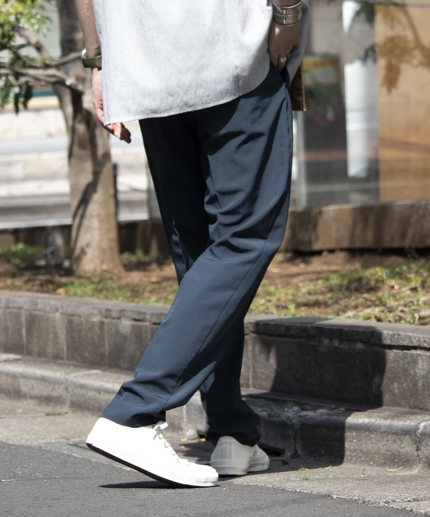 裾に向かってキレイにシェイプするスリムテーパードシルエットはどんなスタイルにもフィットする万能アイテムです。