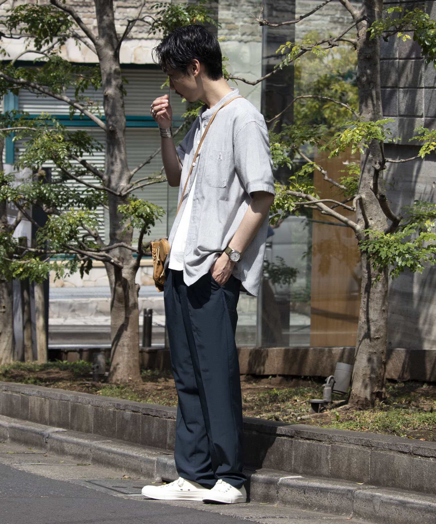 シャツやカーディガンなどのきれいめアイテムとの相性バツグン。