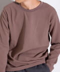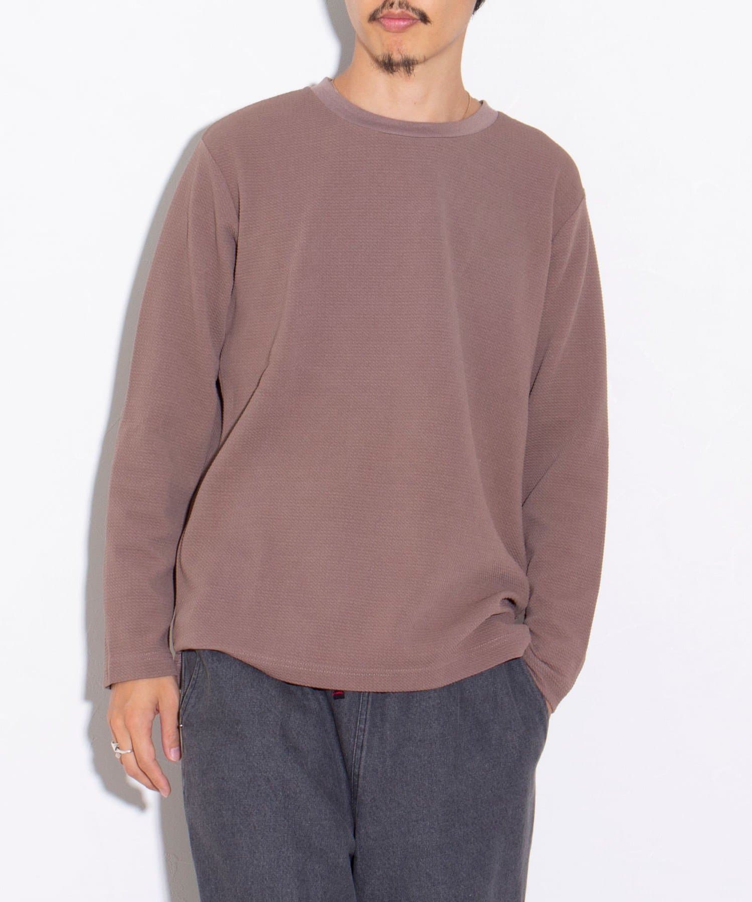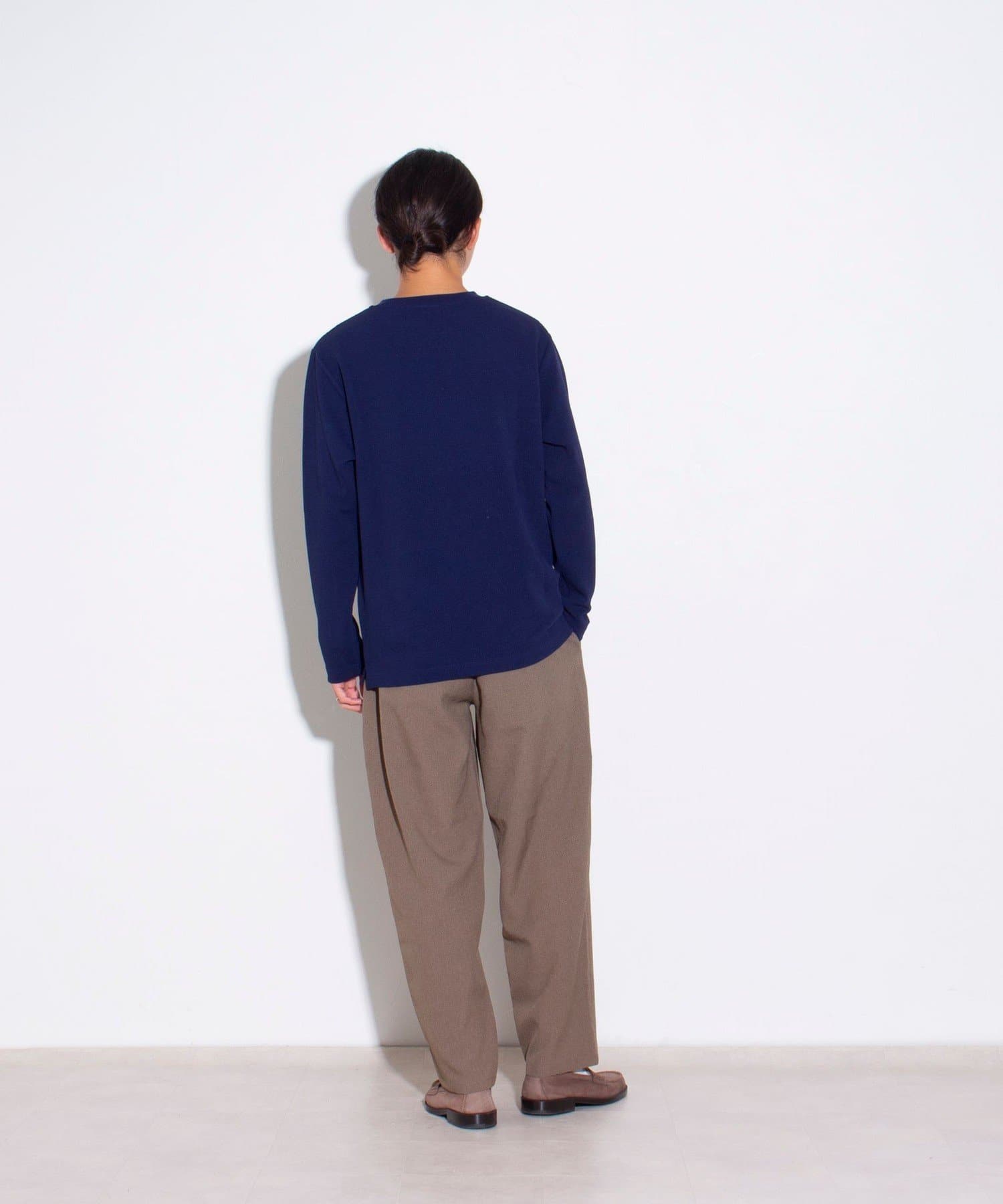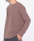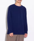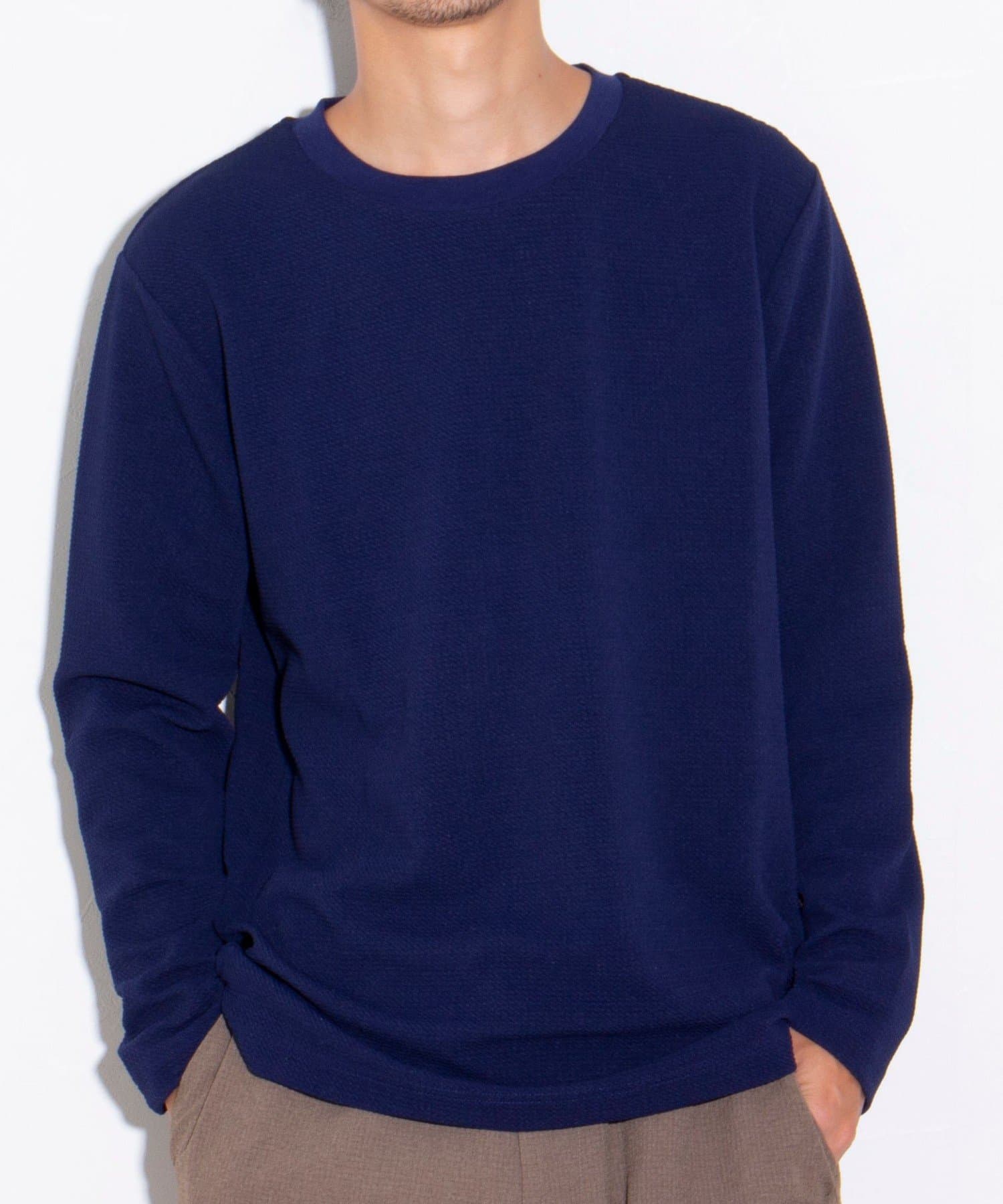 リンクス編みで格子柄を表現したクルーネック長袖Tシャツ。