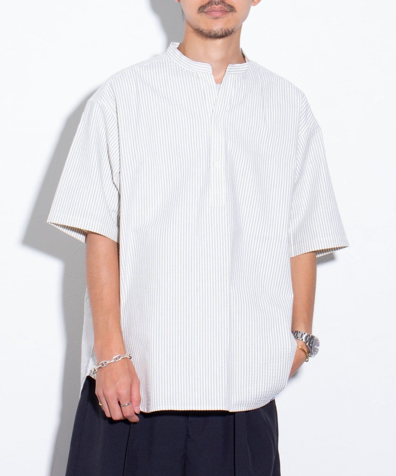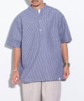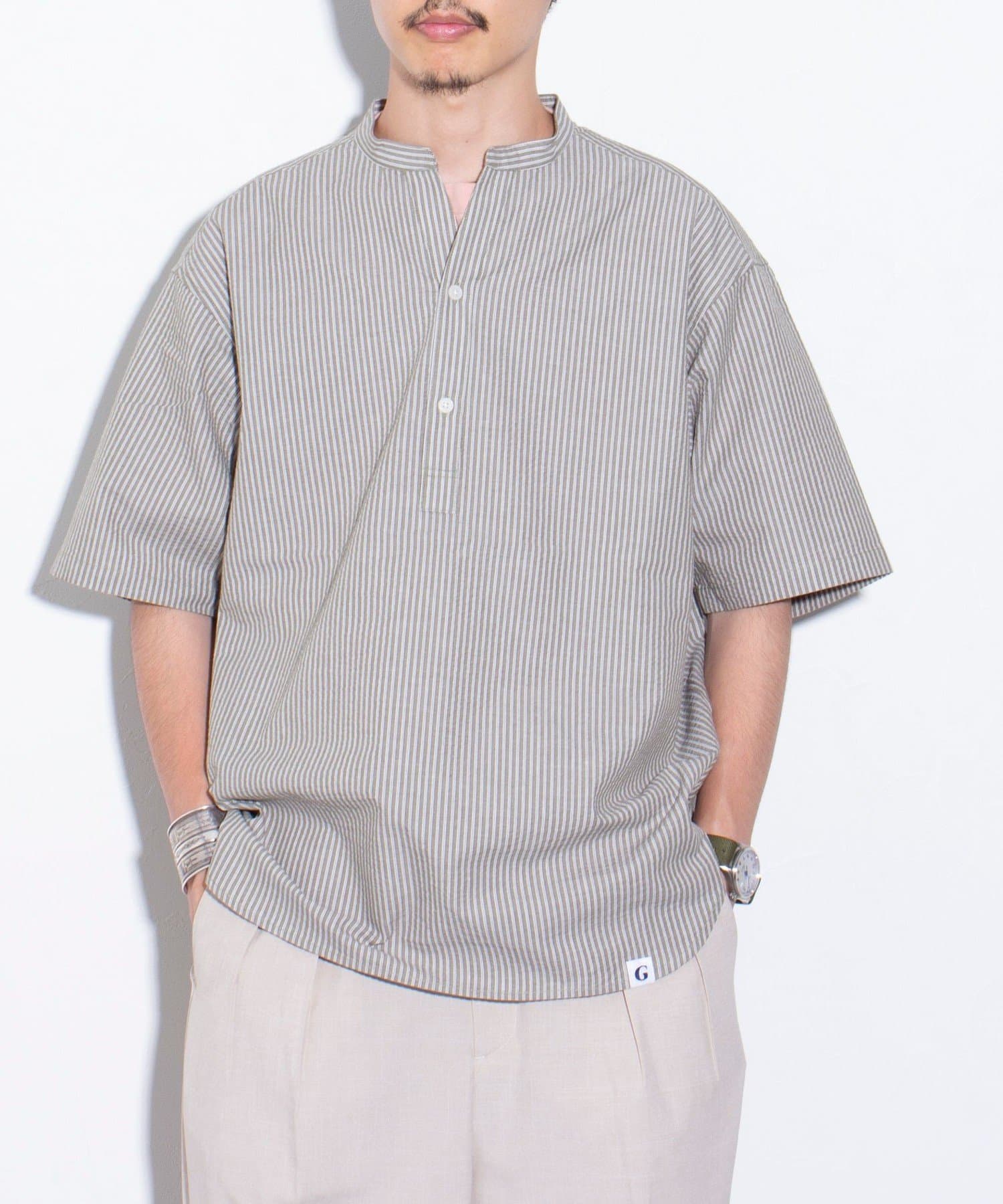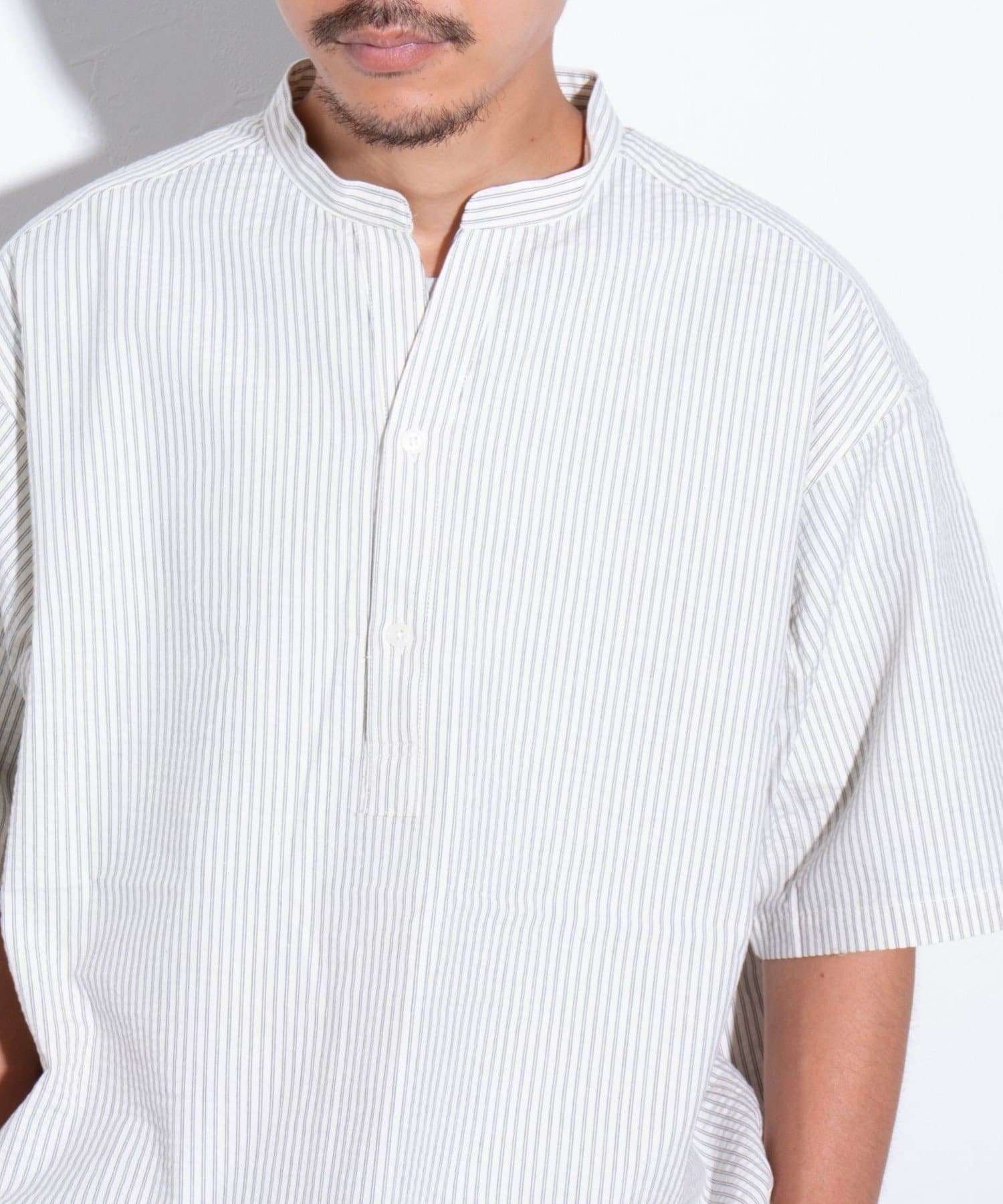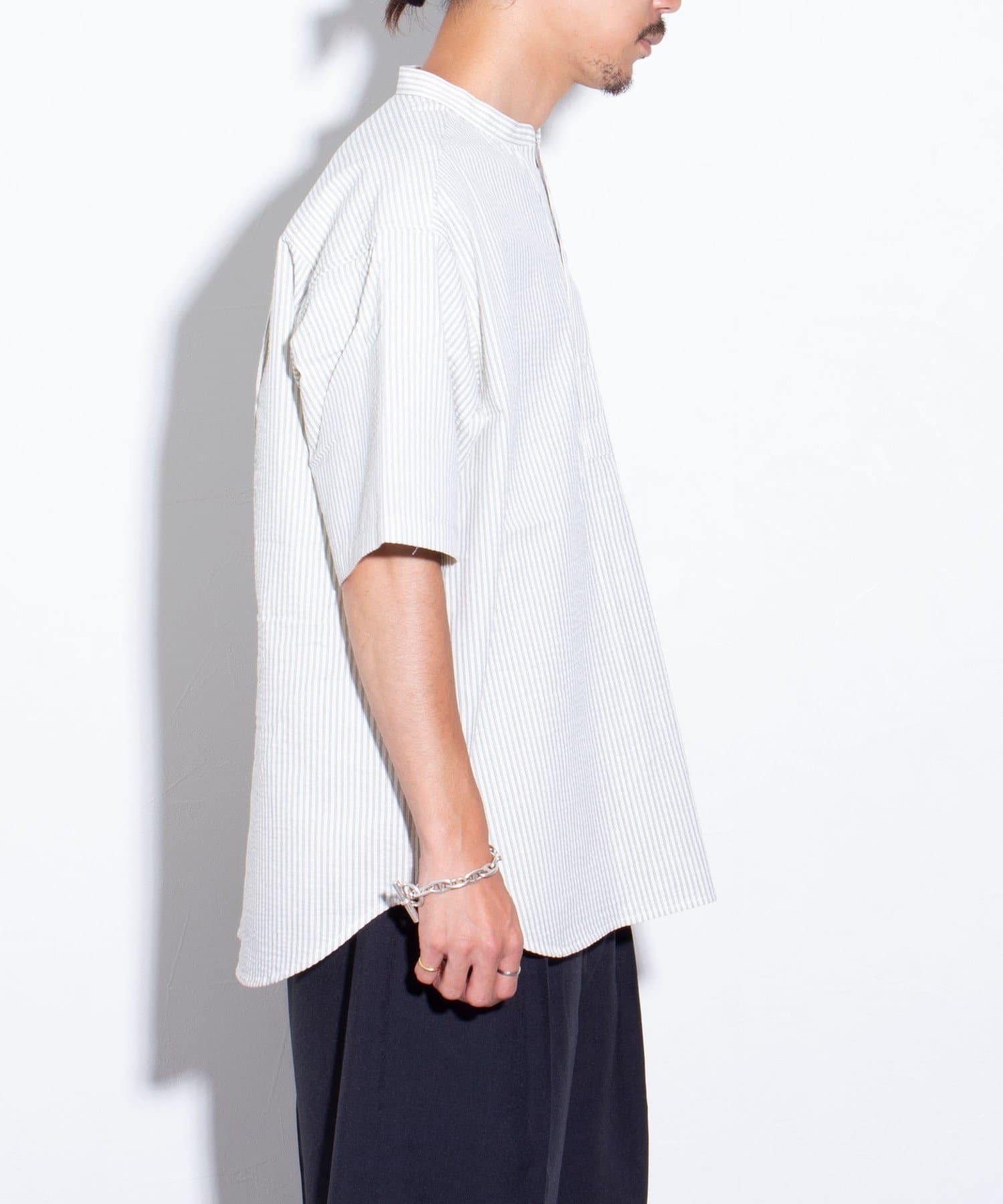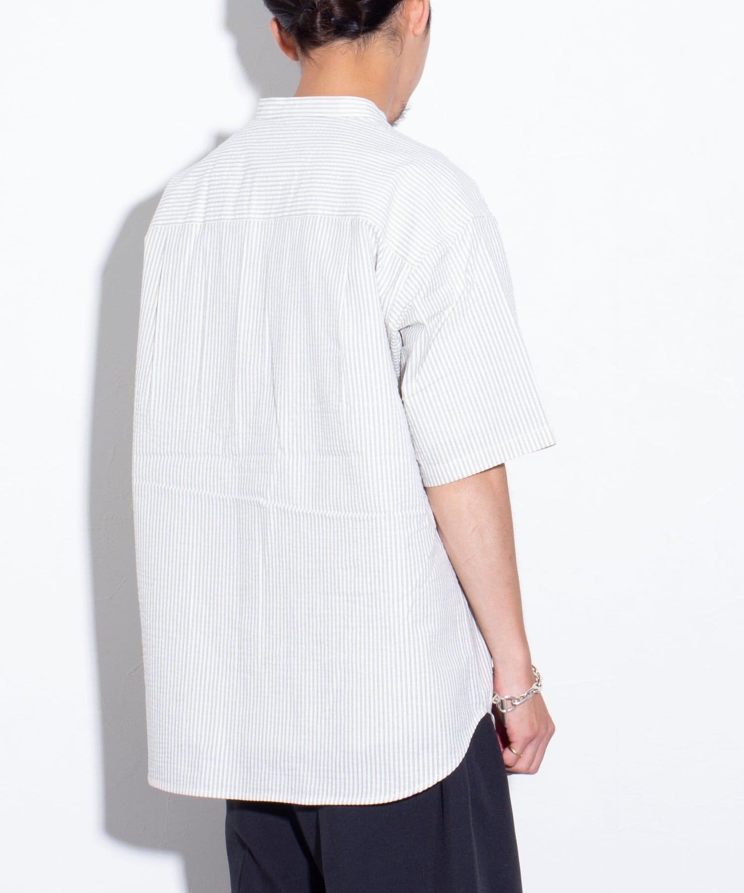 • FREDY & GLOSTER(フレディ アンド グロスター) 【GLOSTER】スキッパーバンドカラー半袖シャツ シアサッカー ストライプ