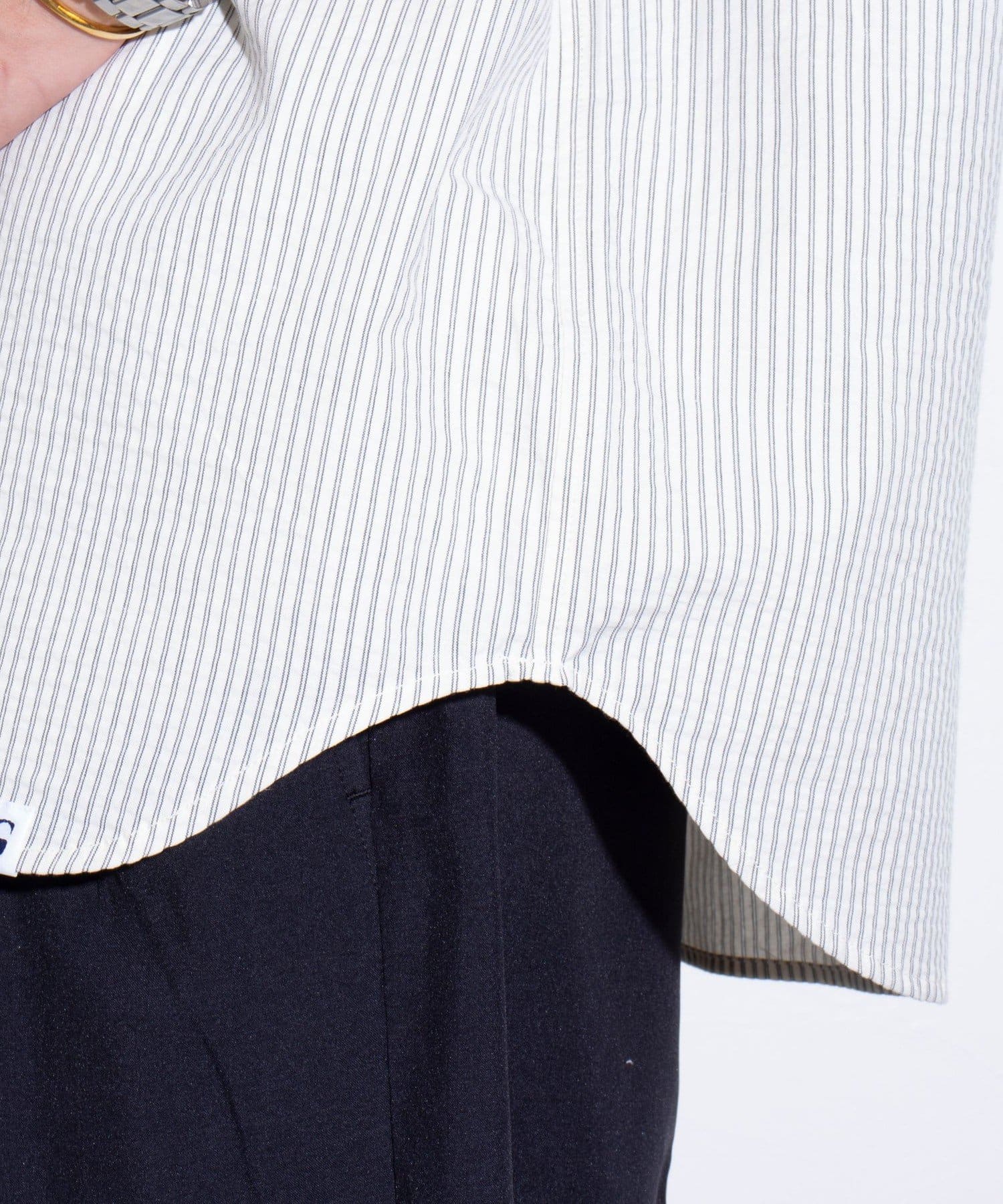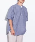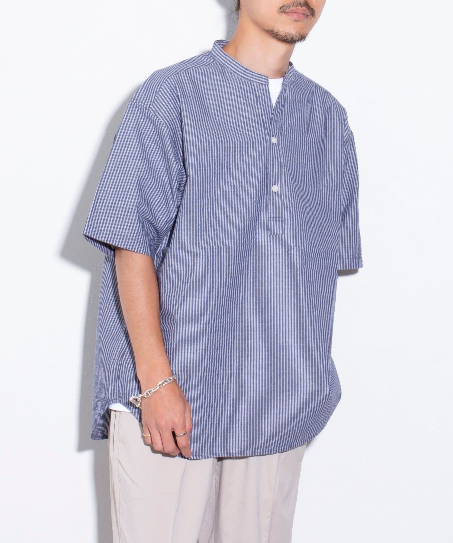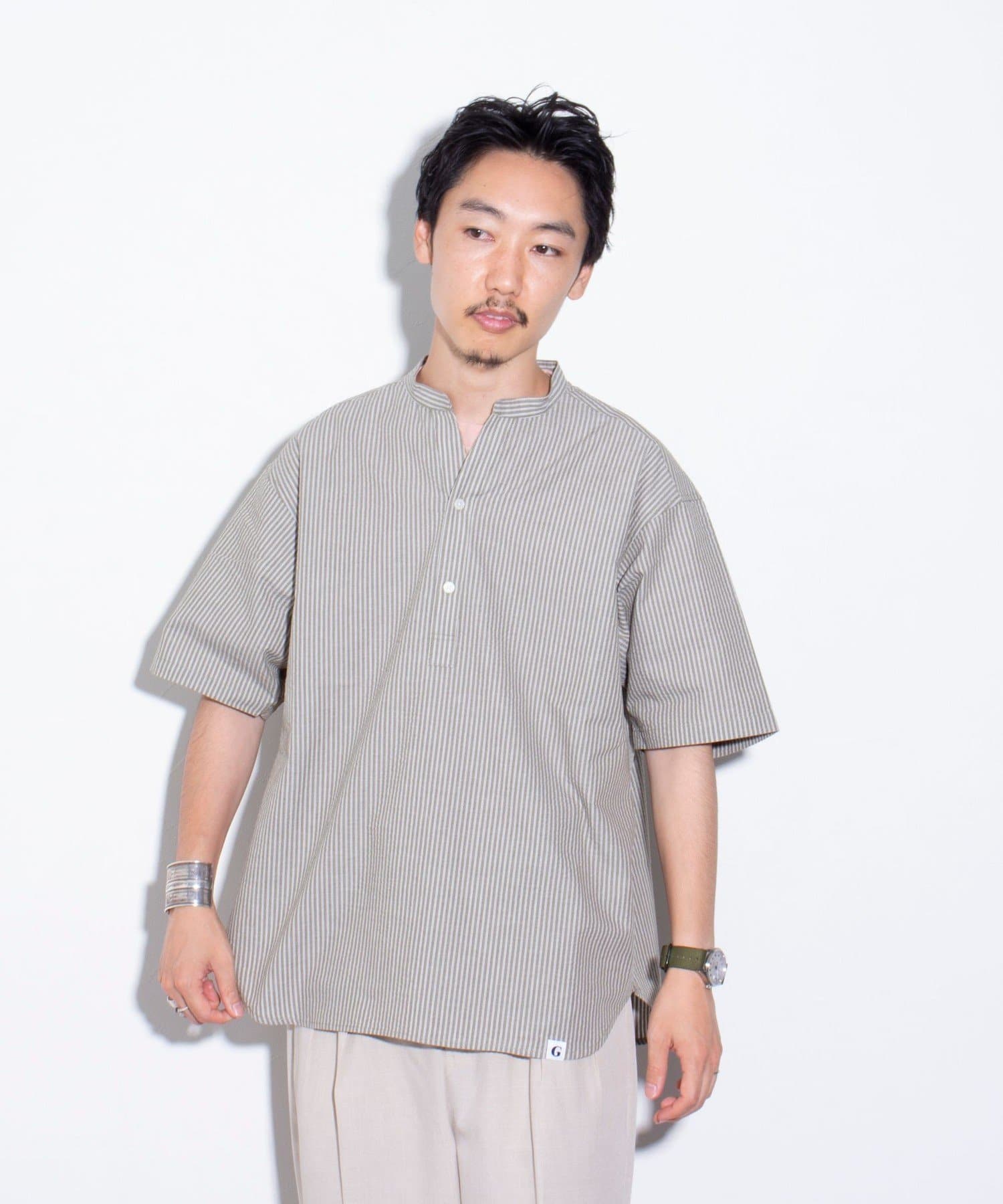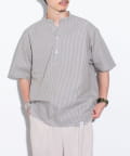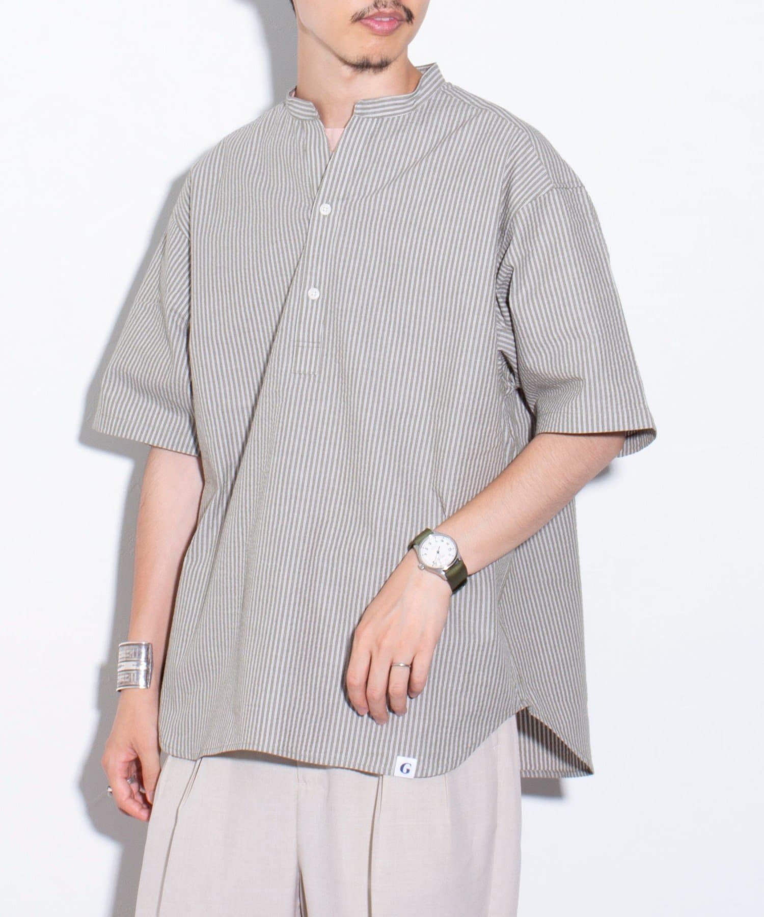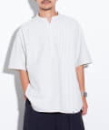 • FREDY & GLOSTER(フレディ アンド グロスター) 【GLOSTER】スキッパーバンドカラー半袖シャツ シアサッカー ストライプ