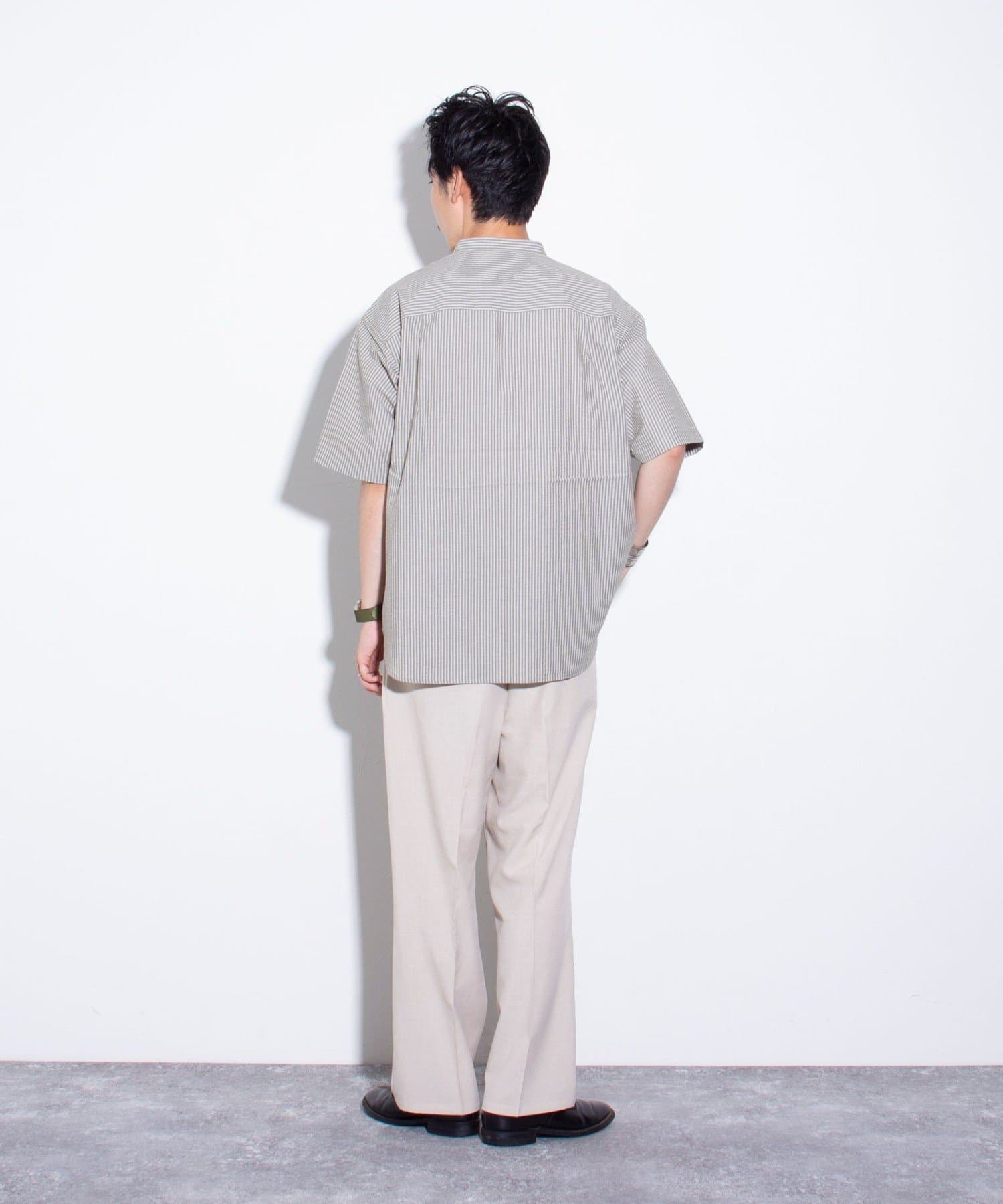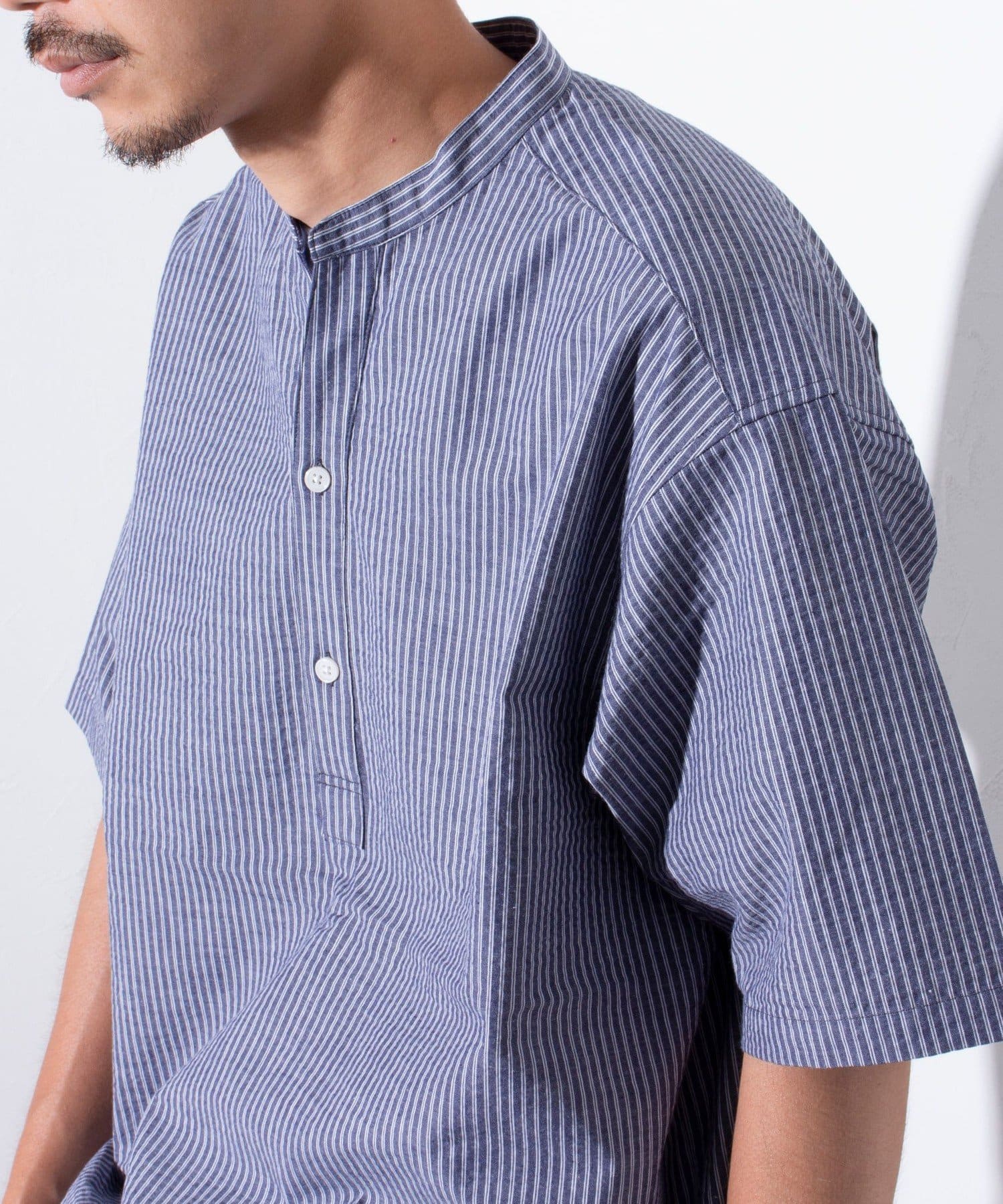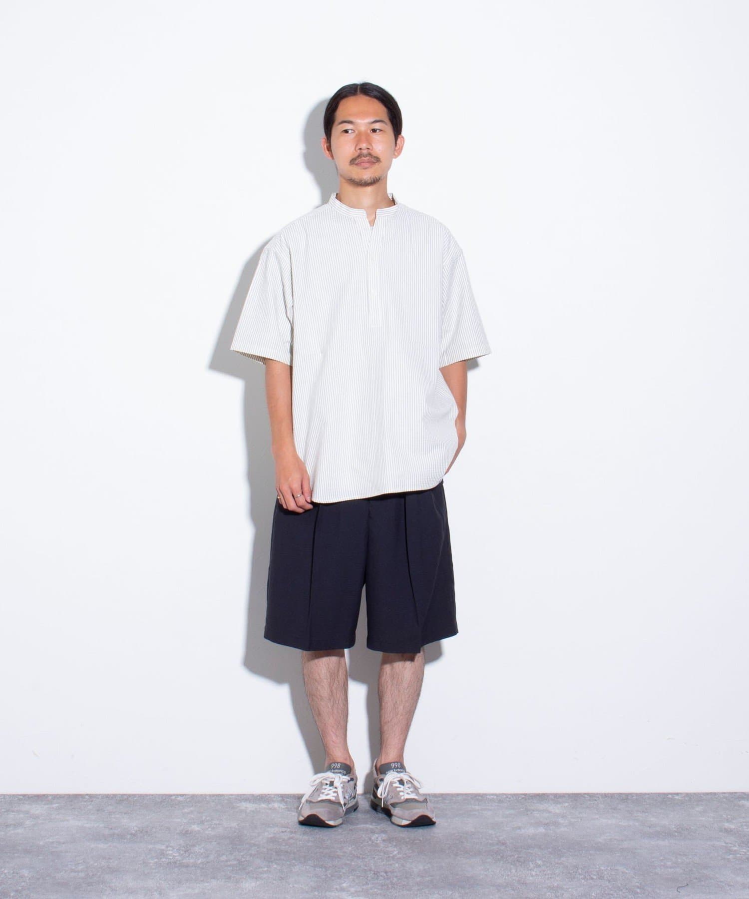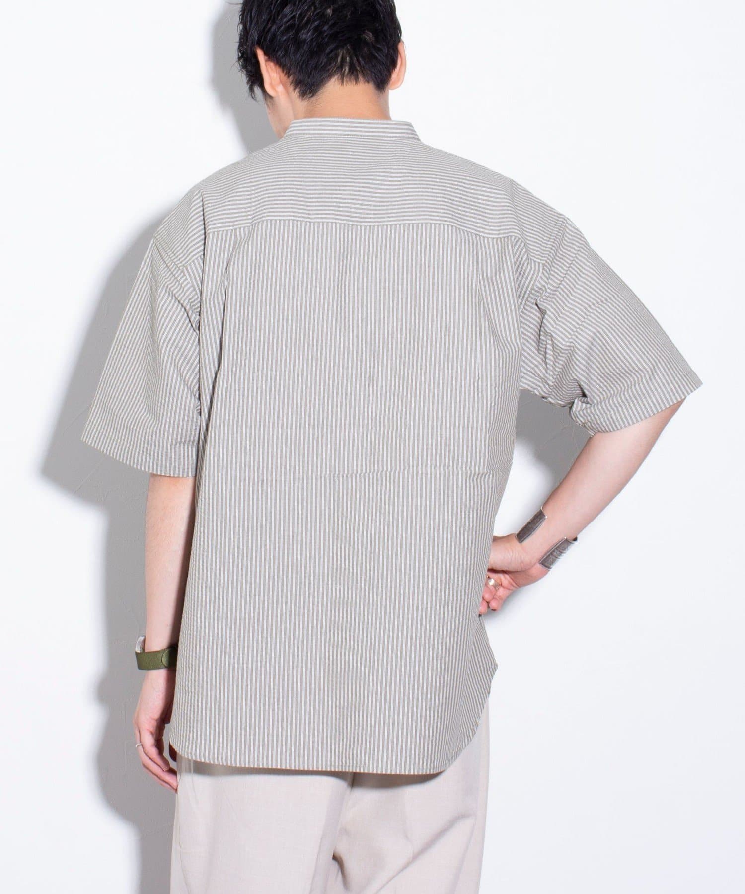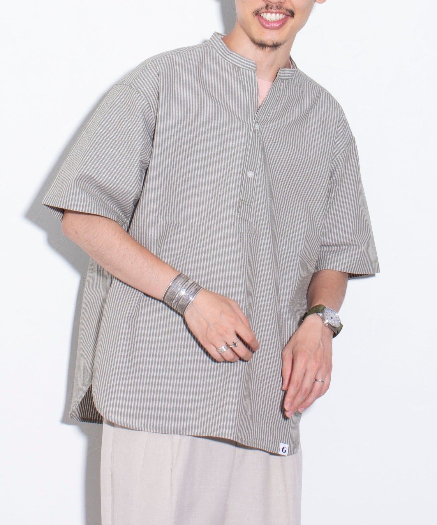 • FREDY & GLOSTER(フレディ アンド グロスター) 【GLOSTER】スキッパーバンドカラー半袖シャツ シアサッカー ストライプ