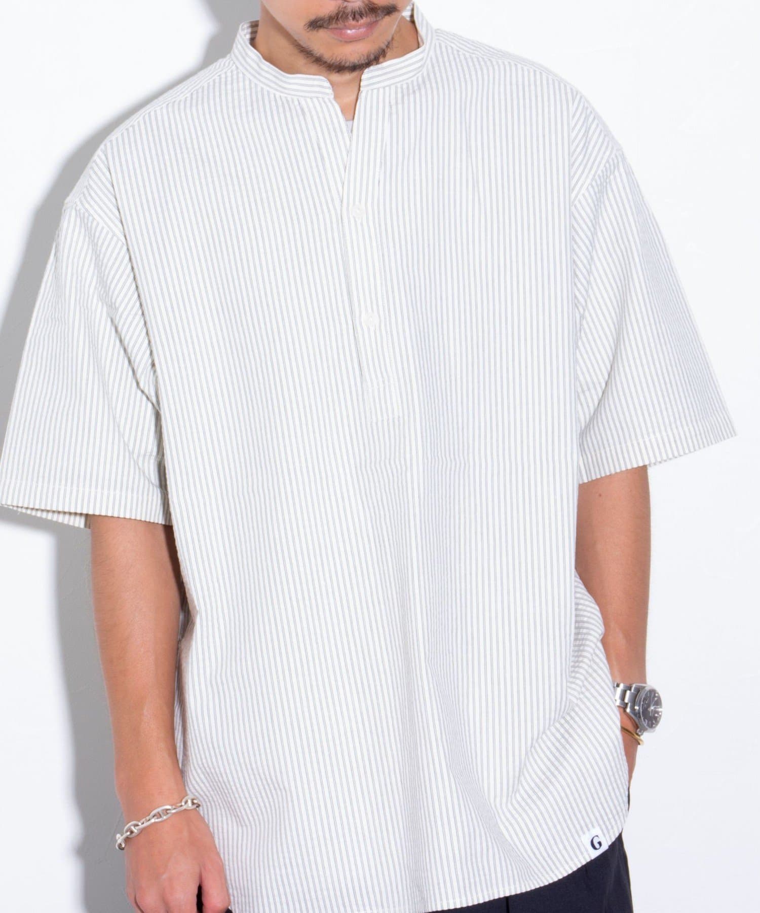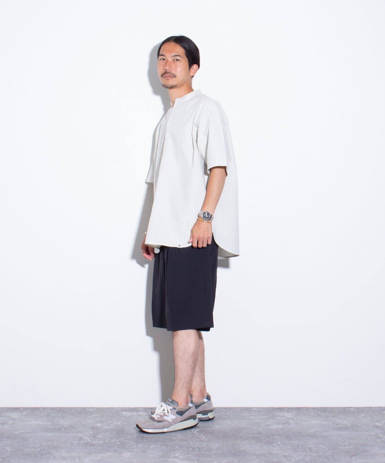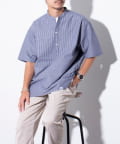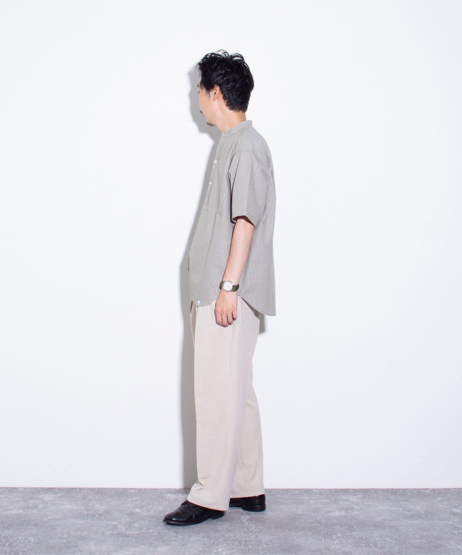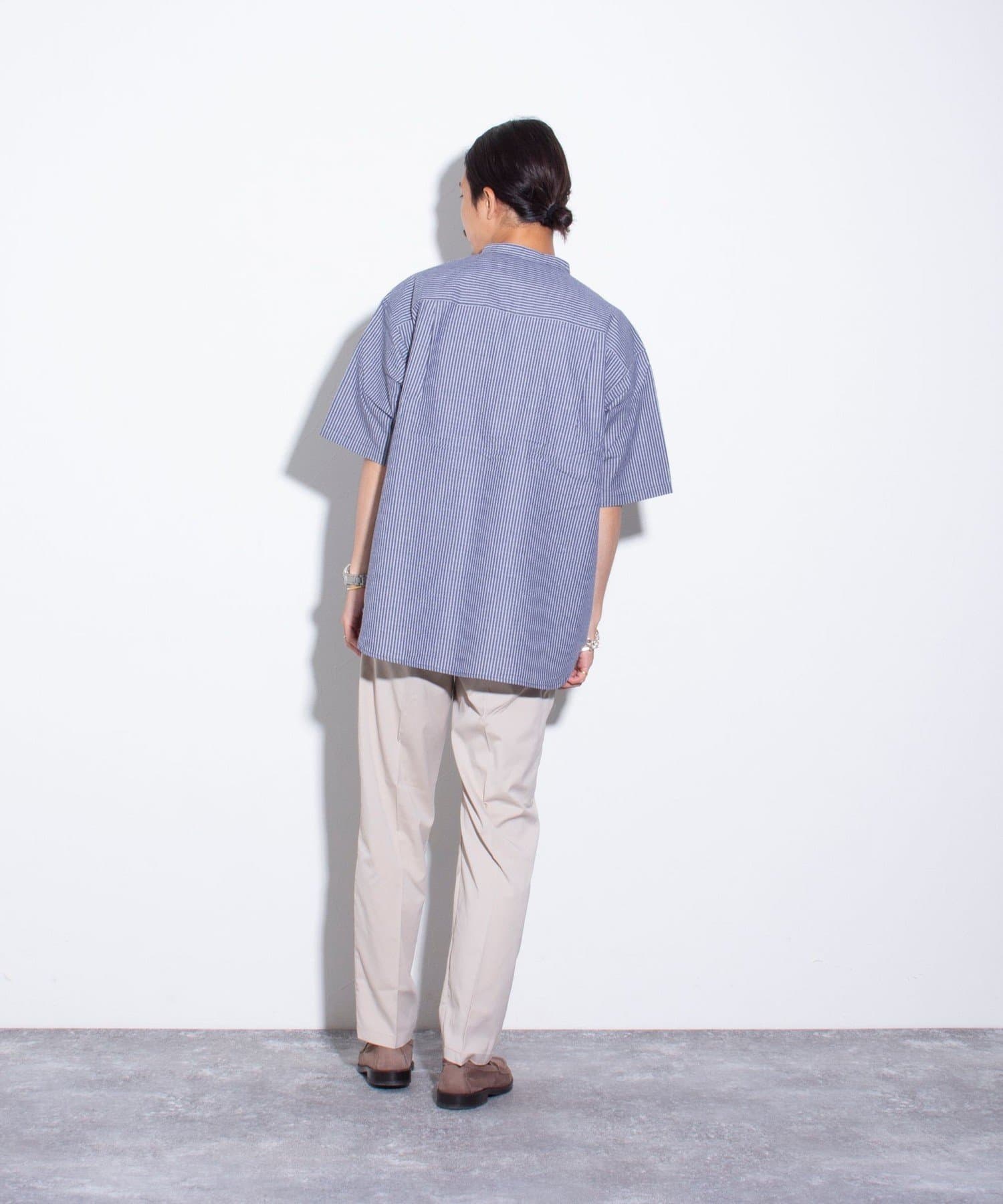 • FREDY & GLOSTER(フレディ アンド グロスター) 【GLOSTER】スキッパーバンドカラー半袖シャツ シアサッカー ストライプ