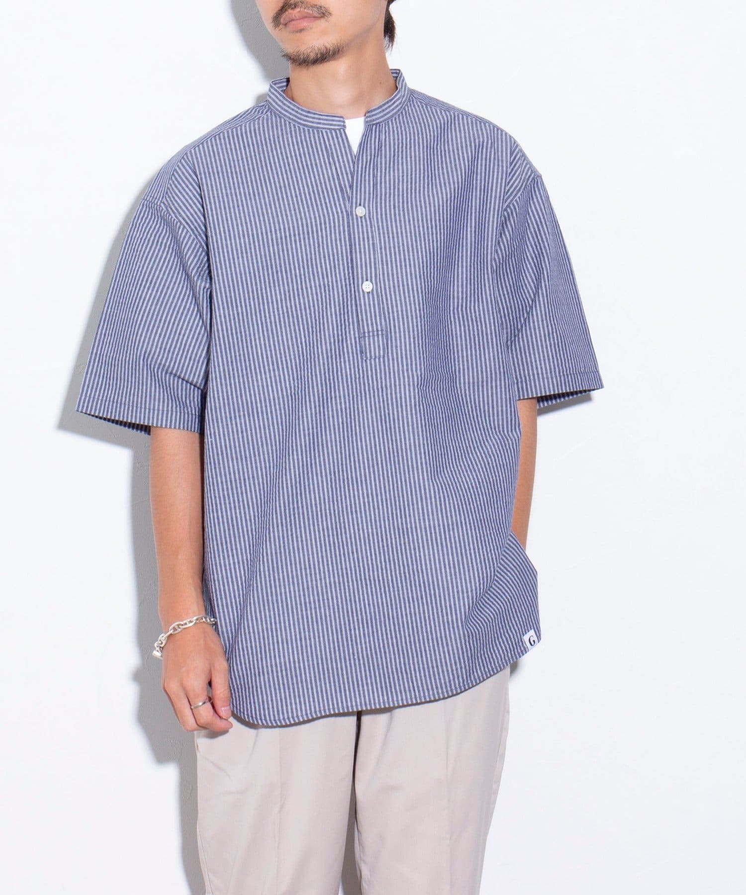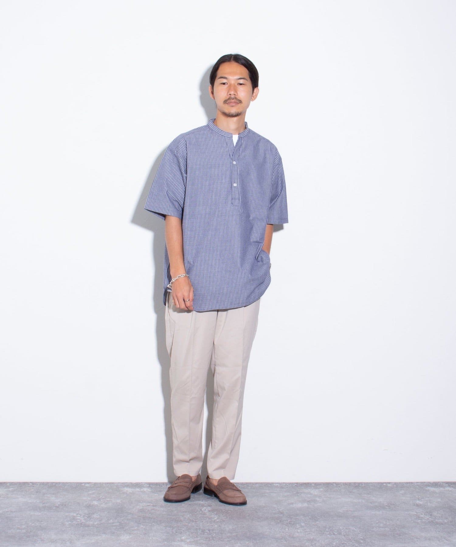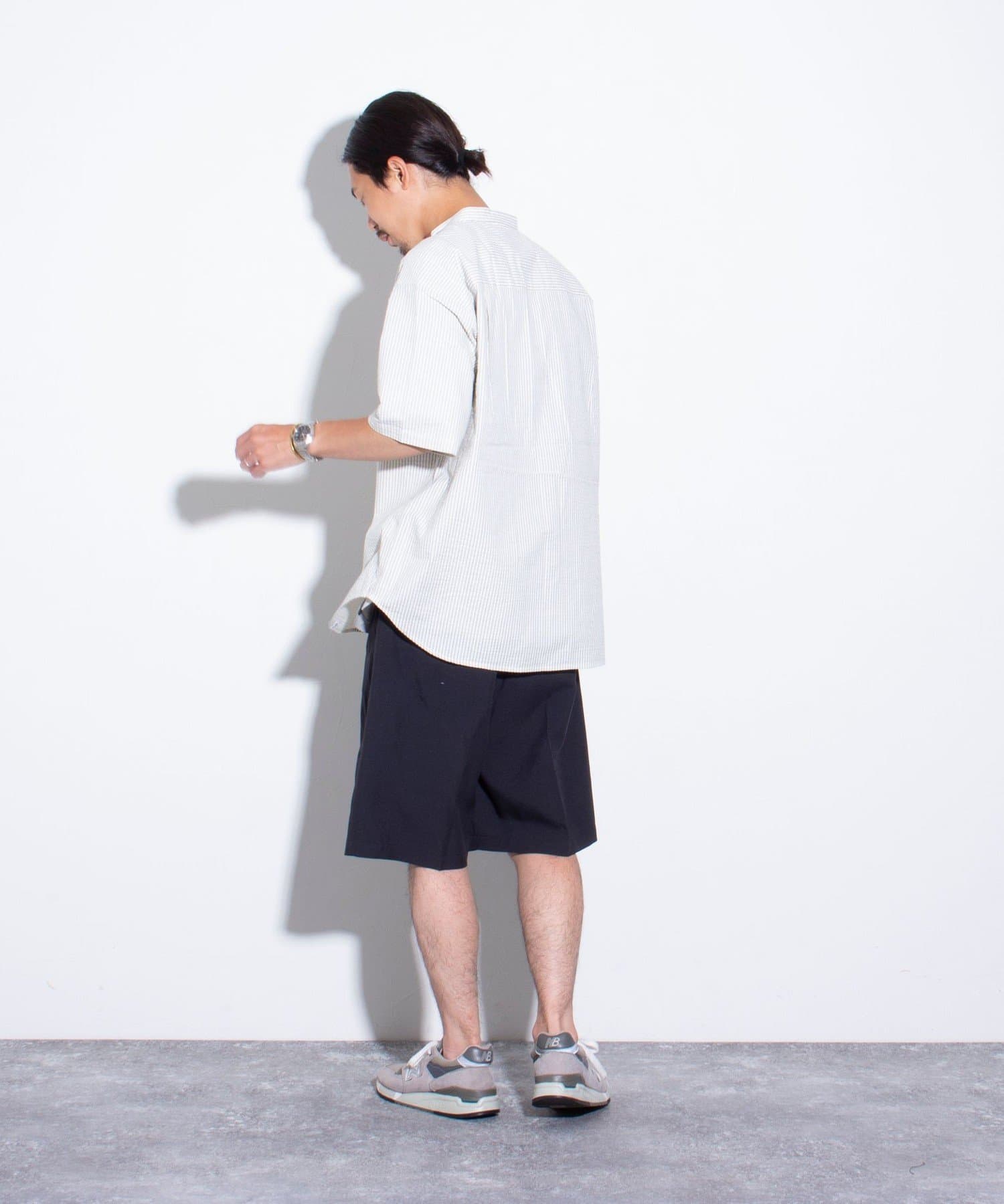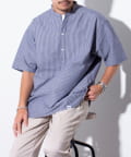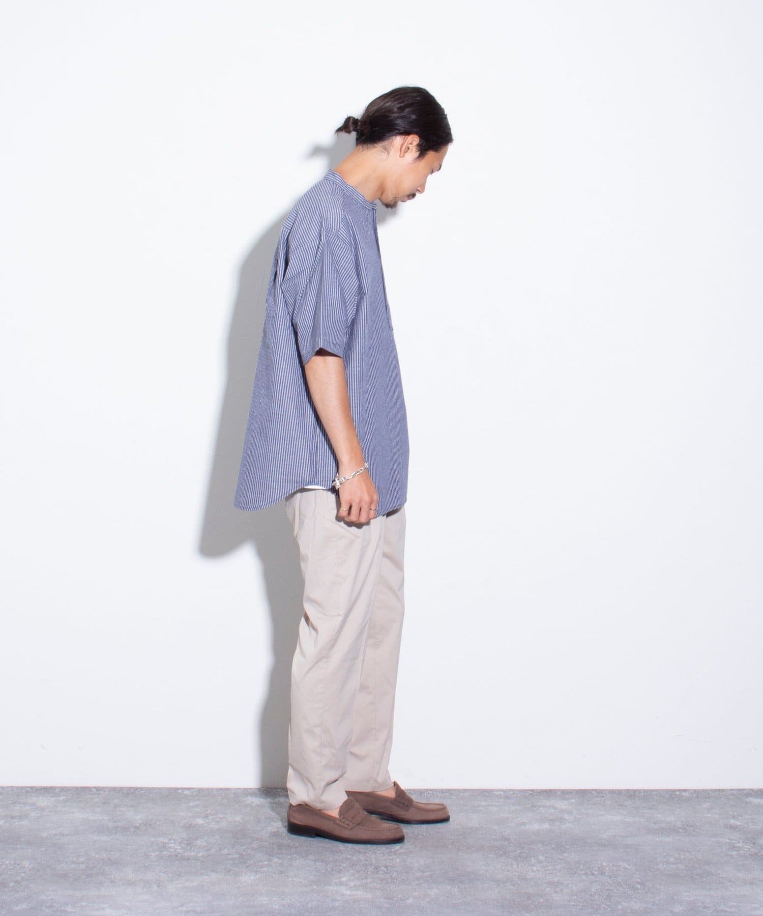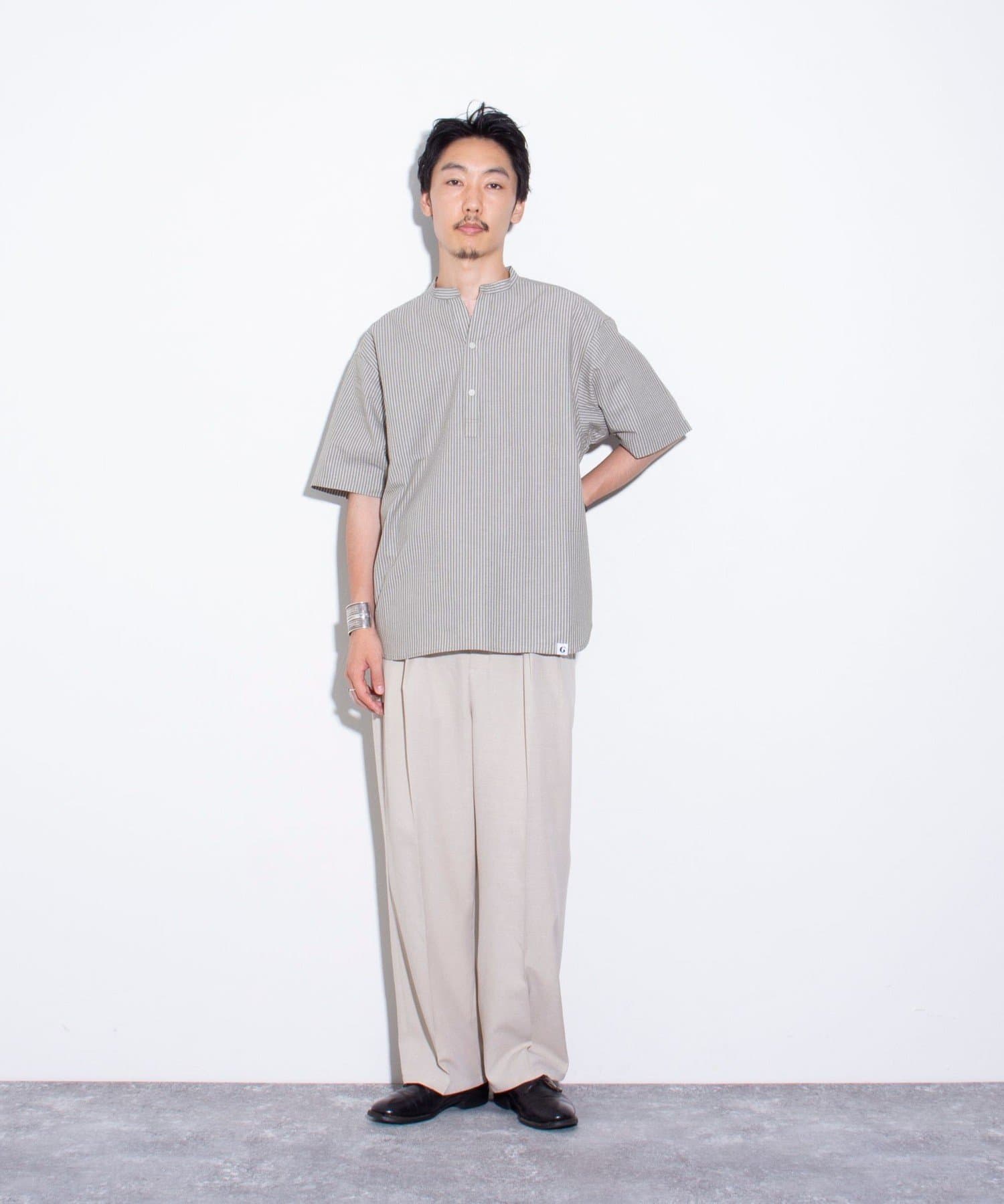 • FREDY & GLOSTER(フレディ アンド グロスター) 【GLOSTER】スキッパーバンドカラー半袖シャツ シアサッカー ストライプ