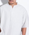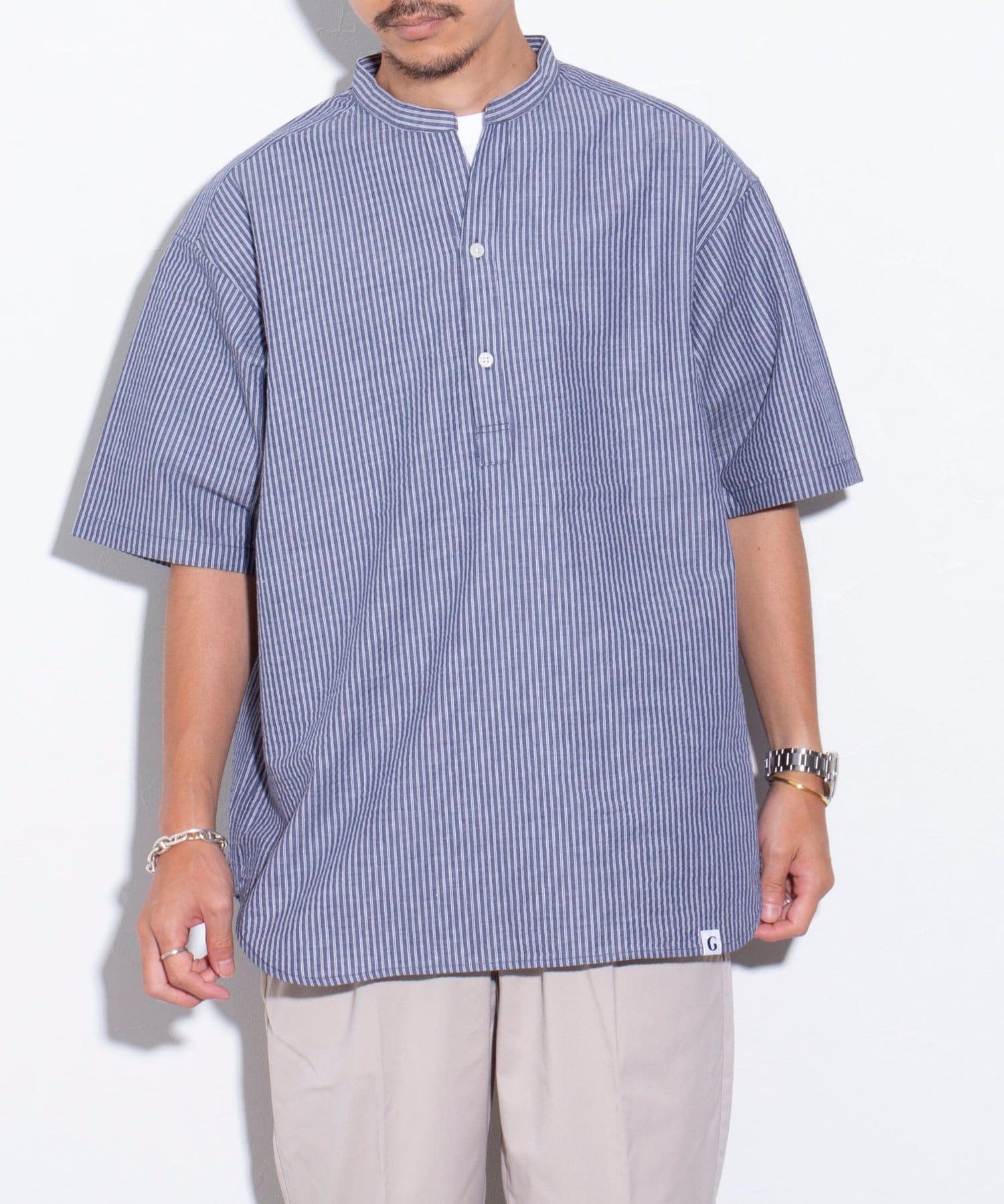 【GLOSTER】スキッパーバンドカラー半袖シャツ シアサッカー ストライプ