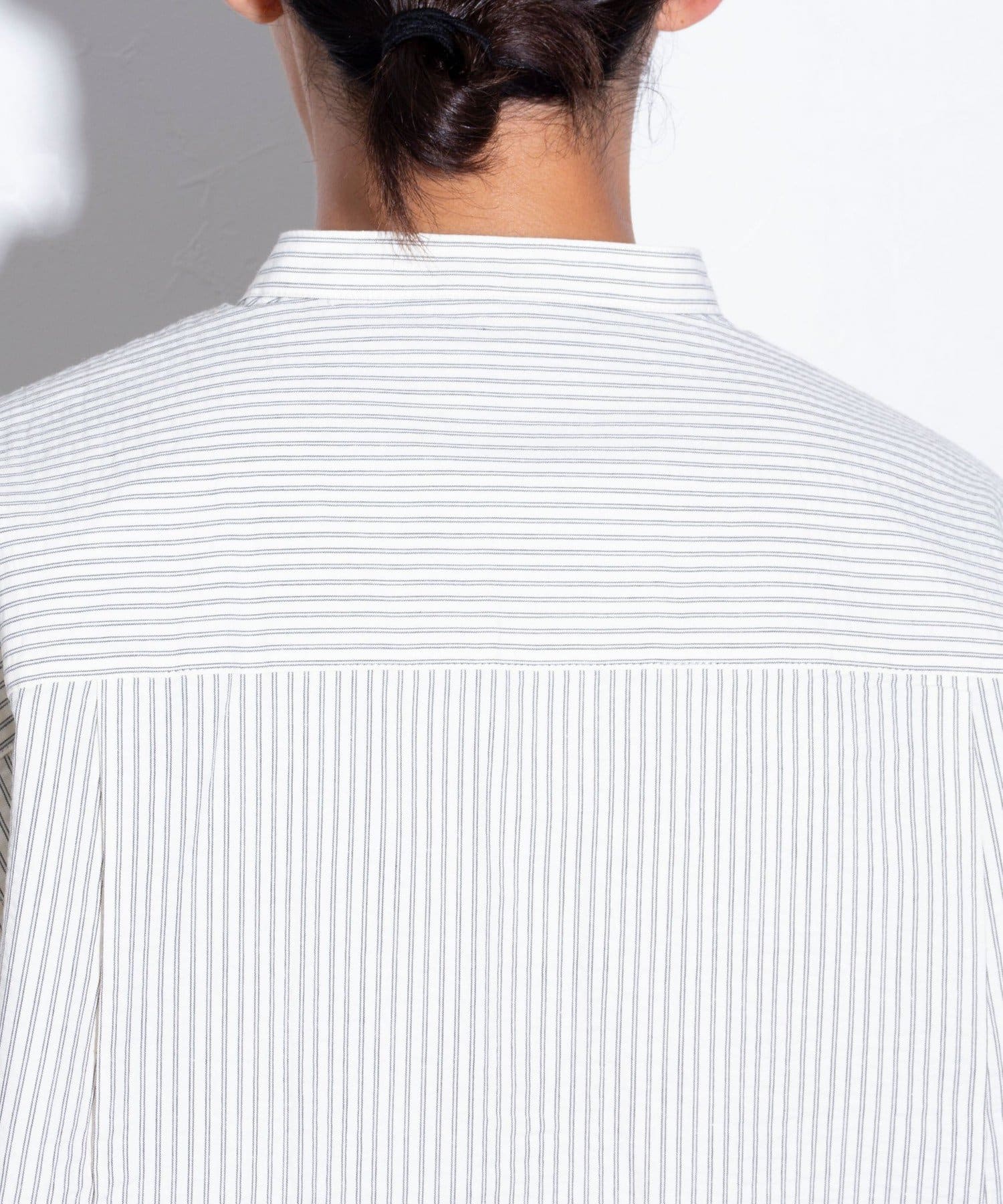 TOP > FREDY & GLOSTER > レディース > トップス > シャツ/ブラウス(ボタン) > 【GLOSTER】スキッパーバンドカラー半袖シャツ シアサッカー ストライプ