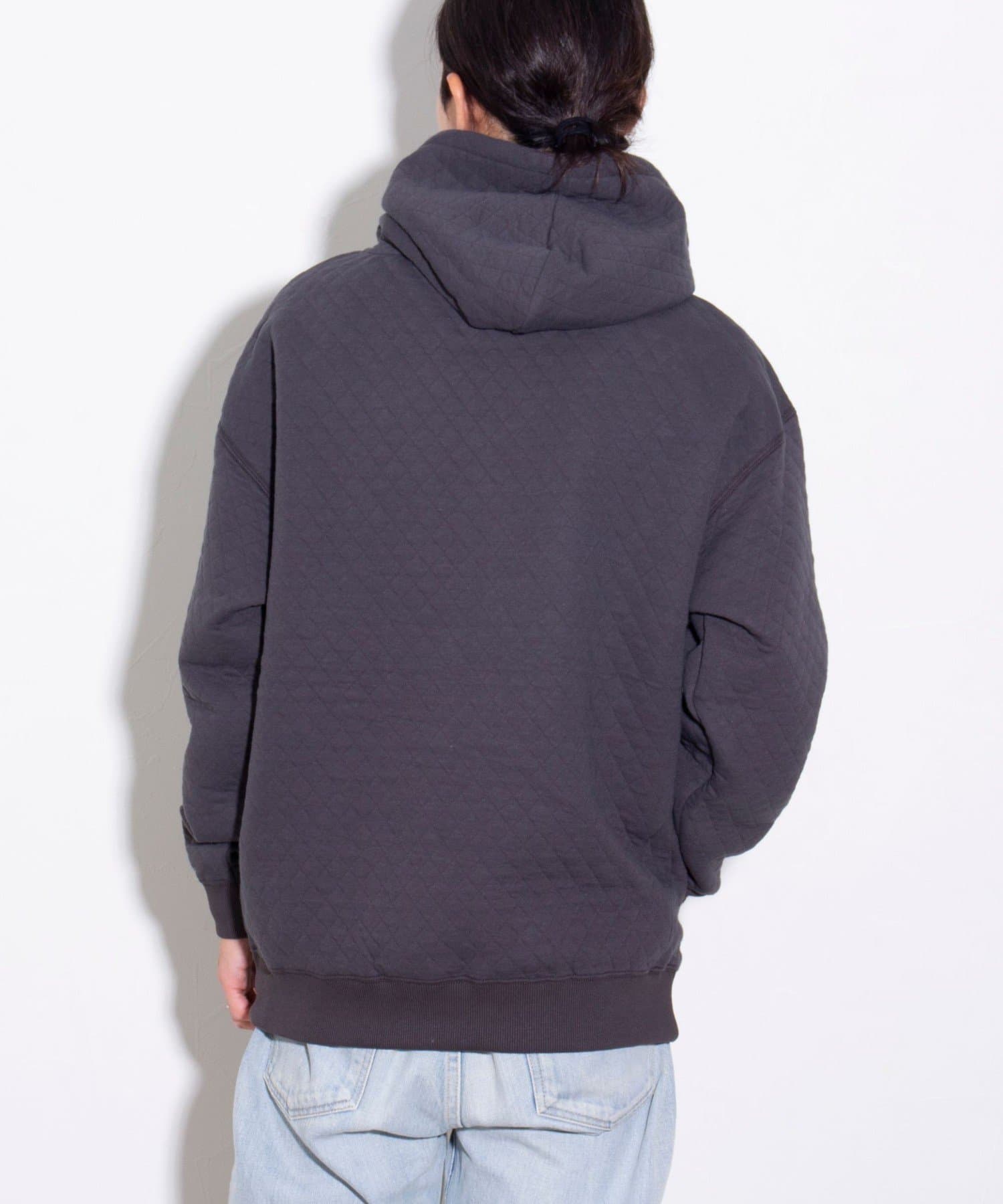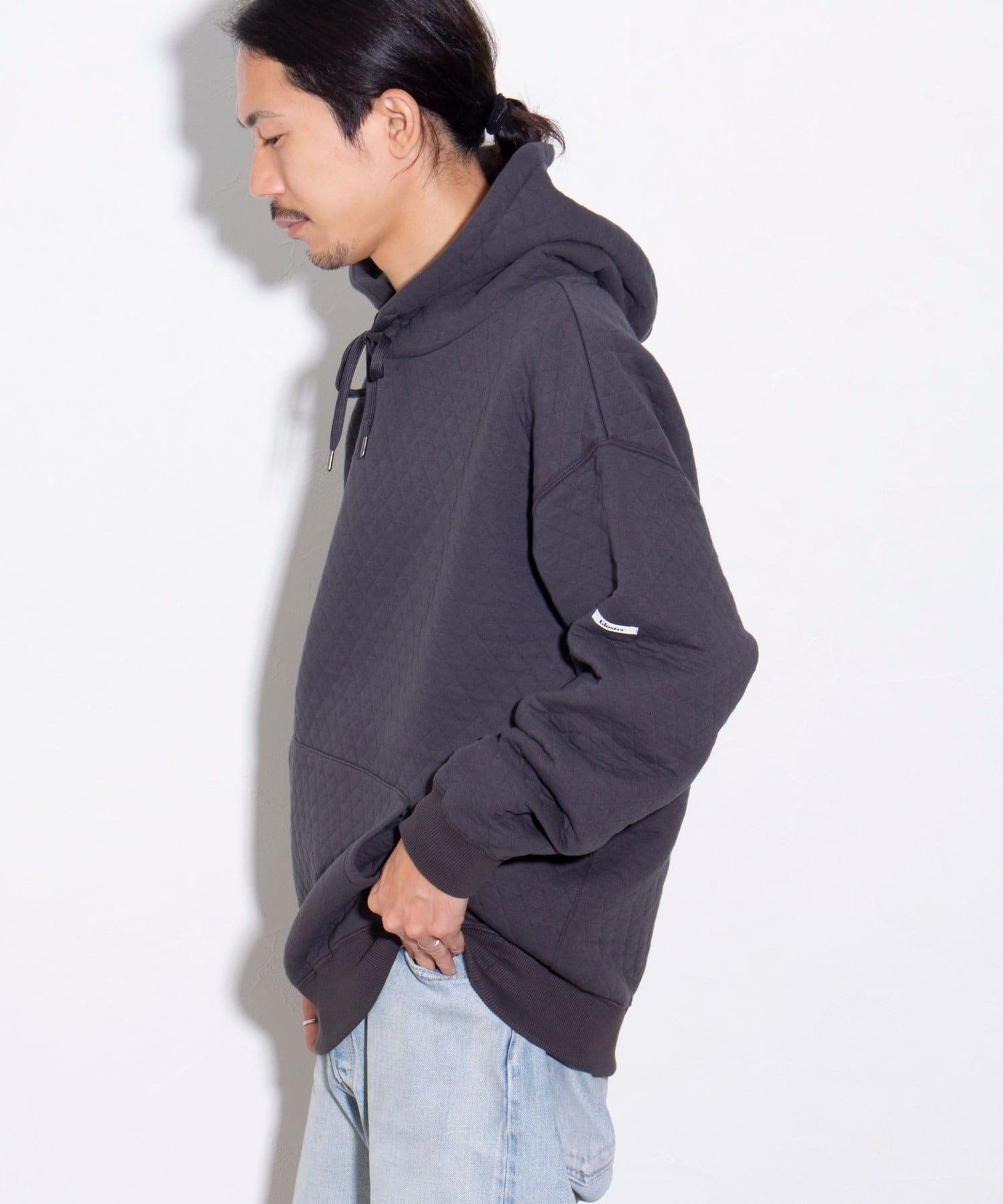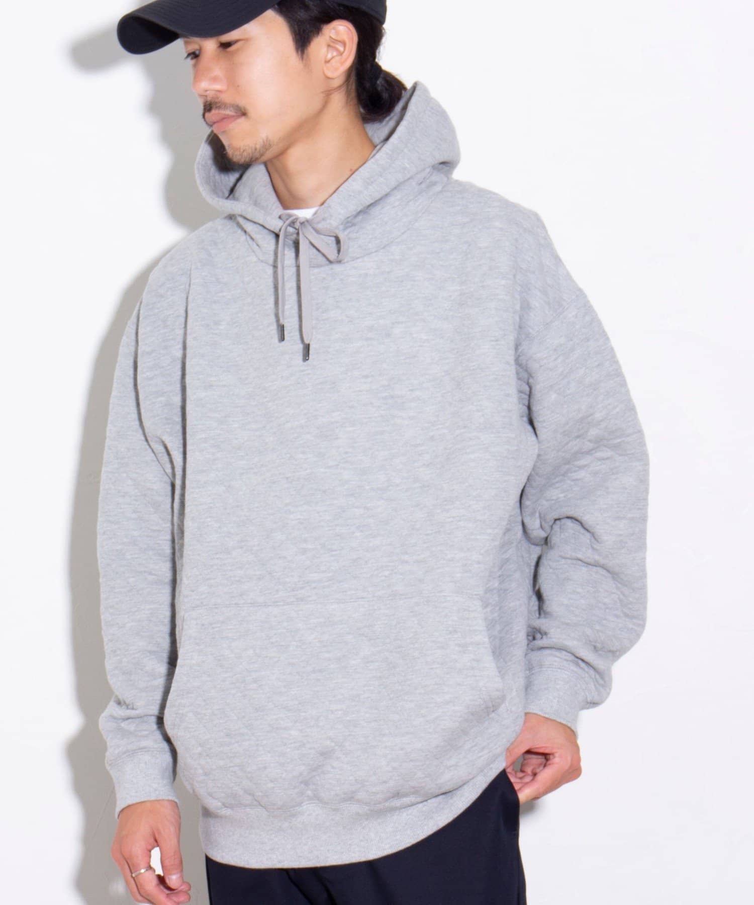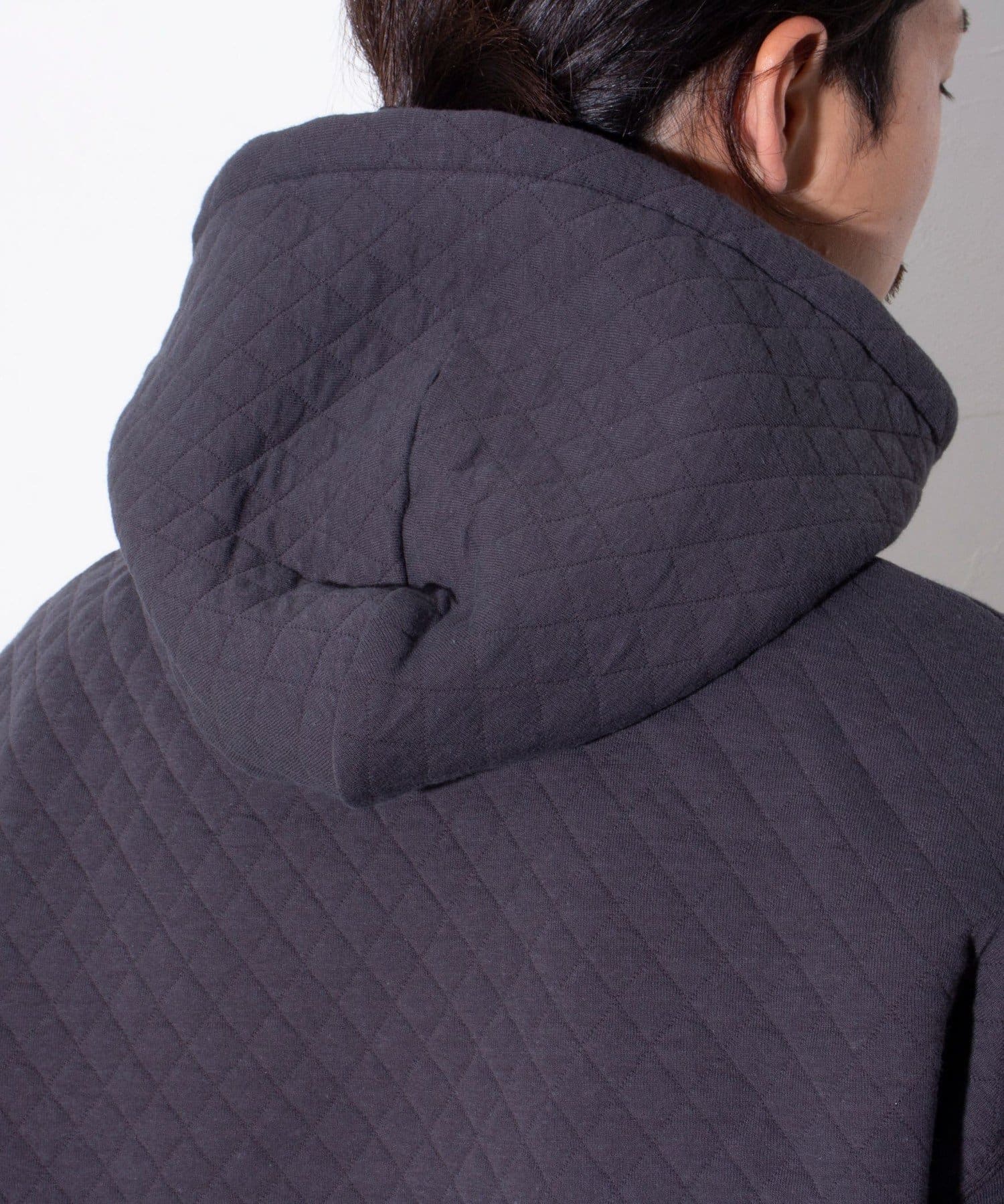 中綿キルティングのカットソー素材を採用したプルオーバーパーカー。