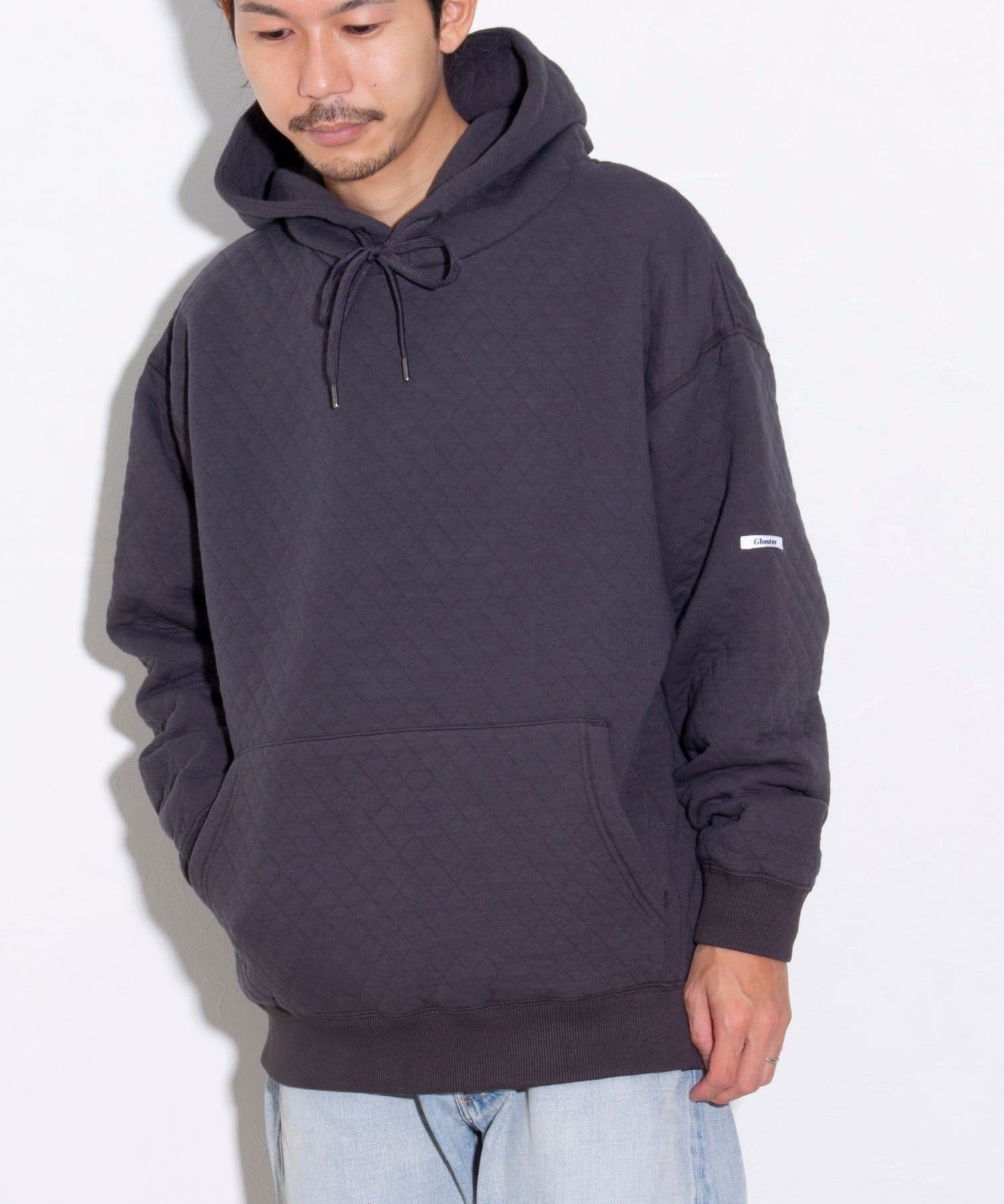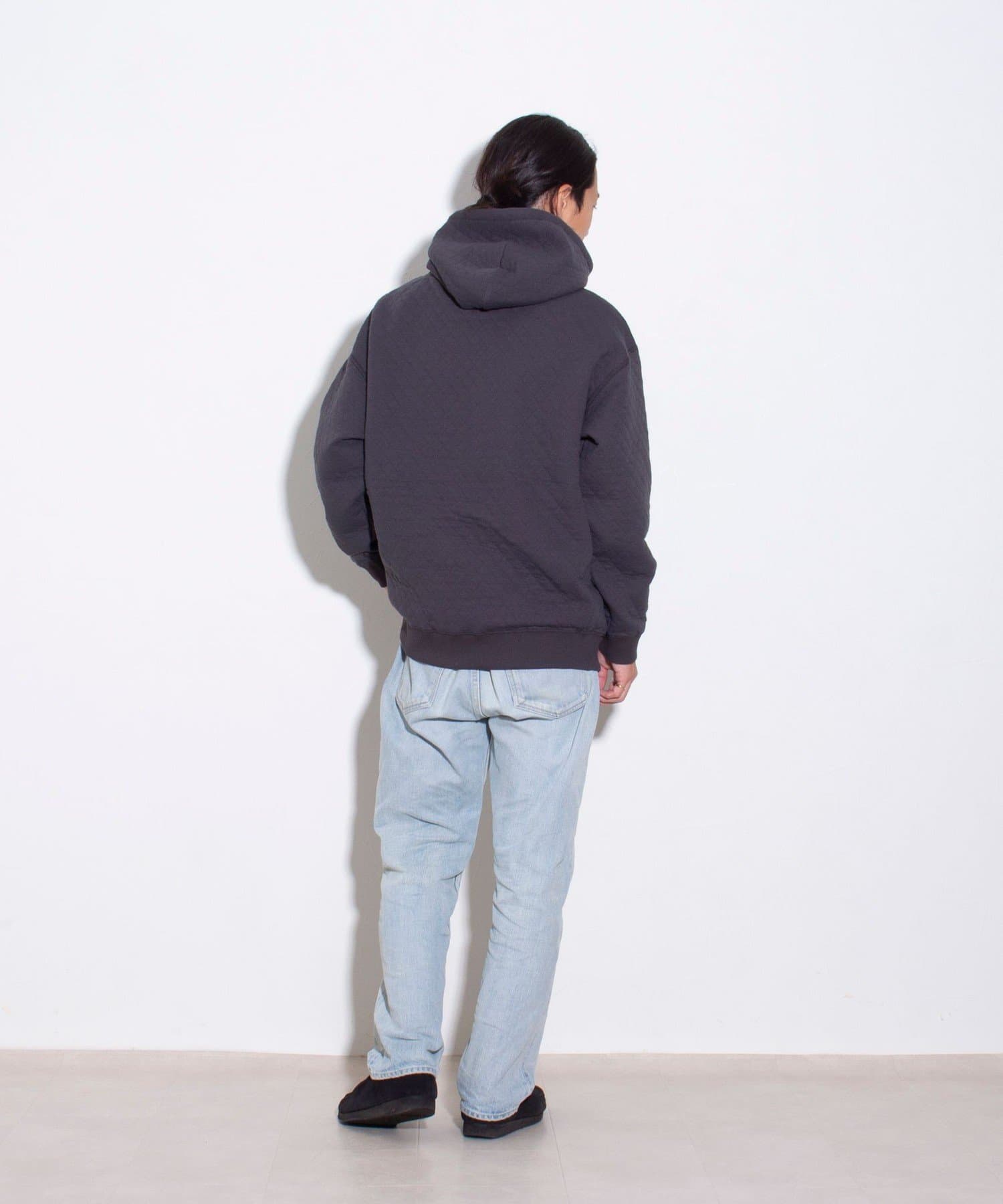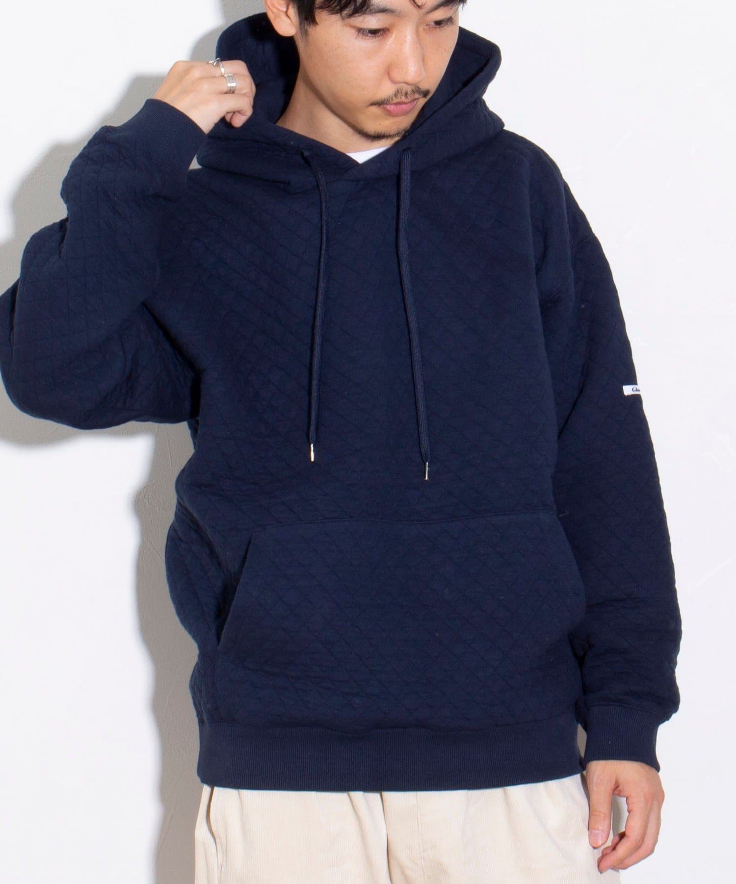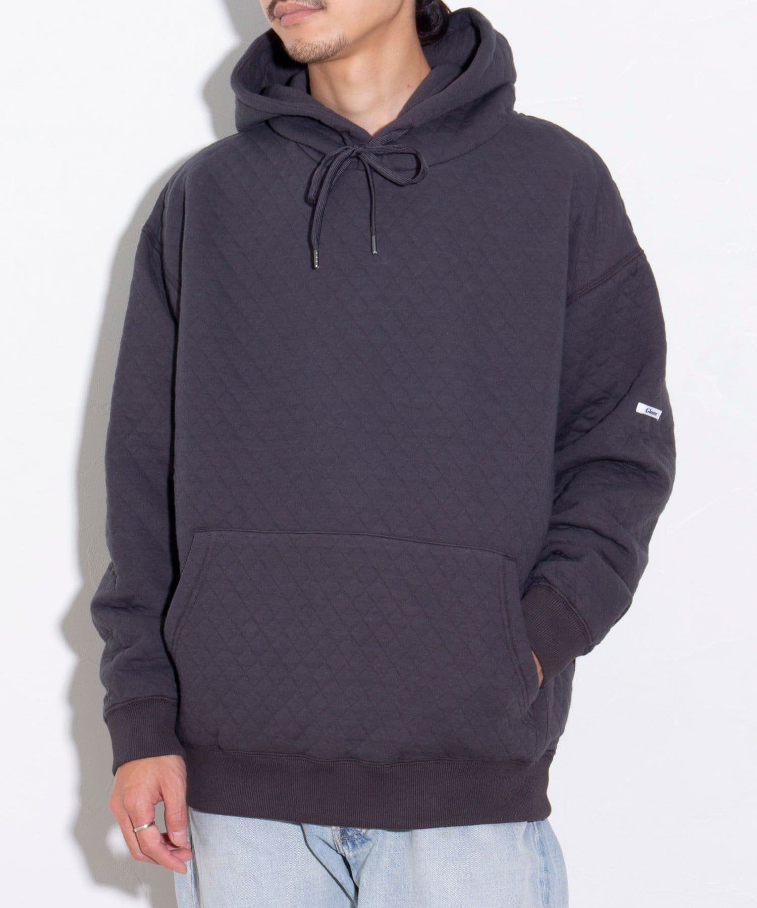 中綿キルティングのカットソー素材を採用したプルオーバーパーカー。