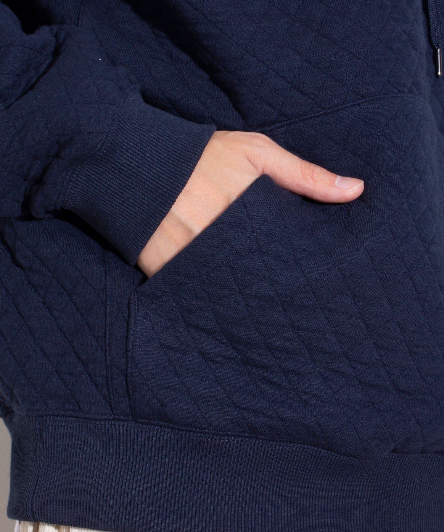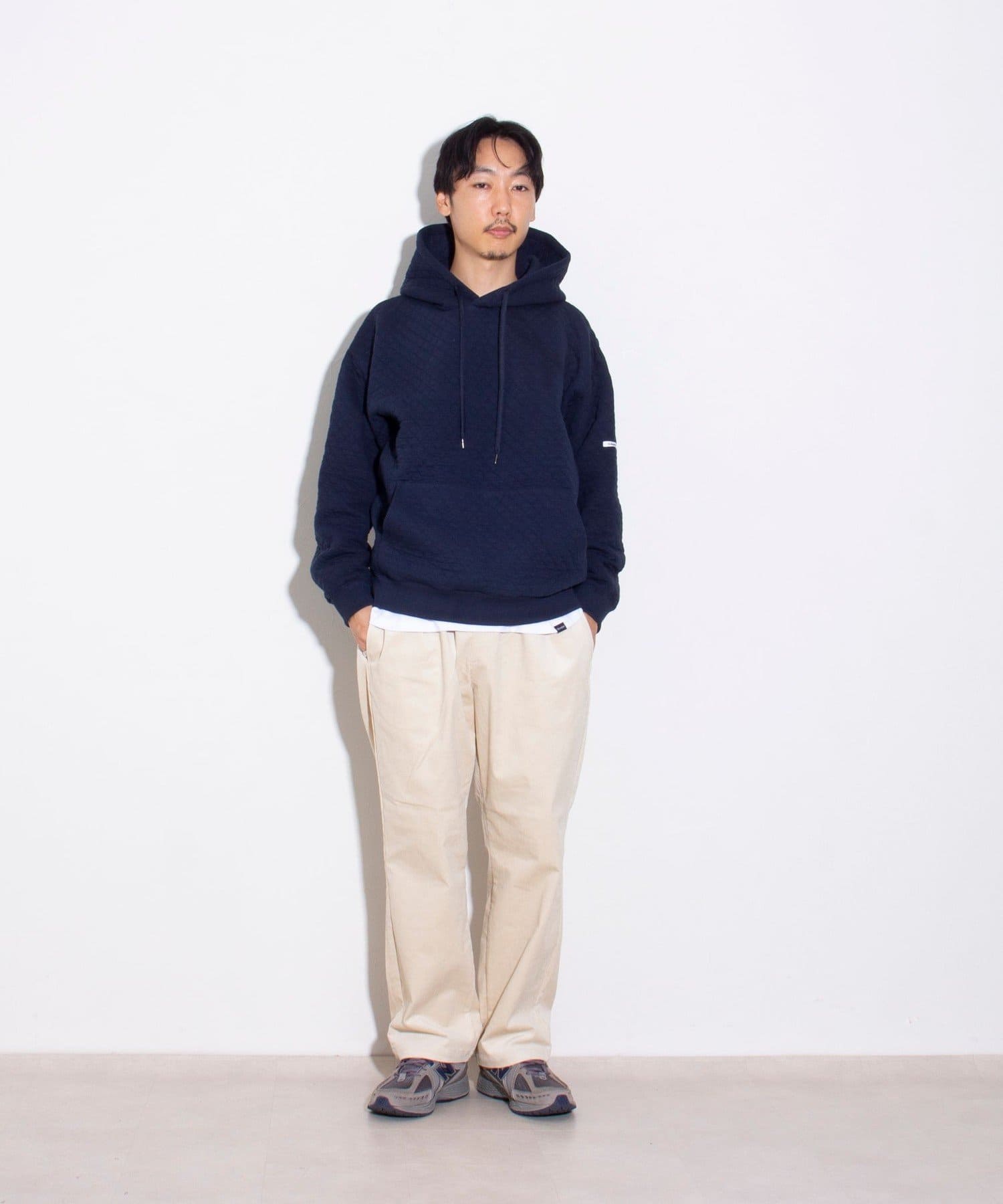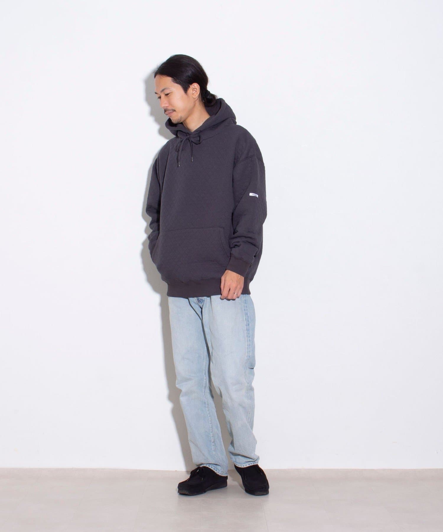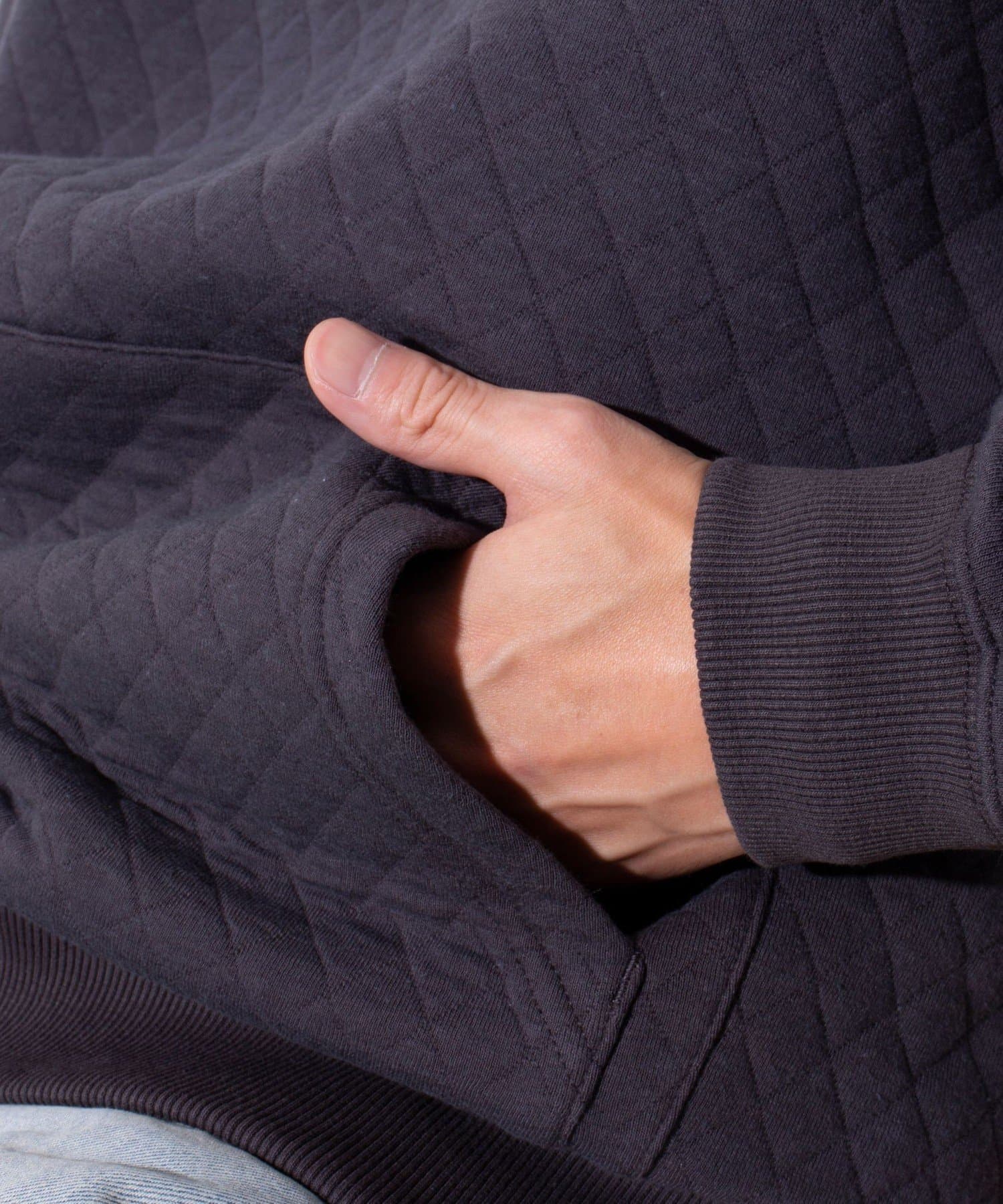 中綿キルティングのカットソー素材を採用したプルオーバーパーカー。